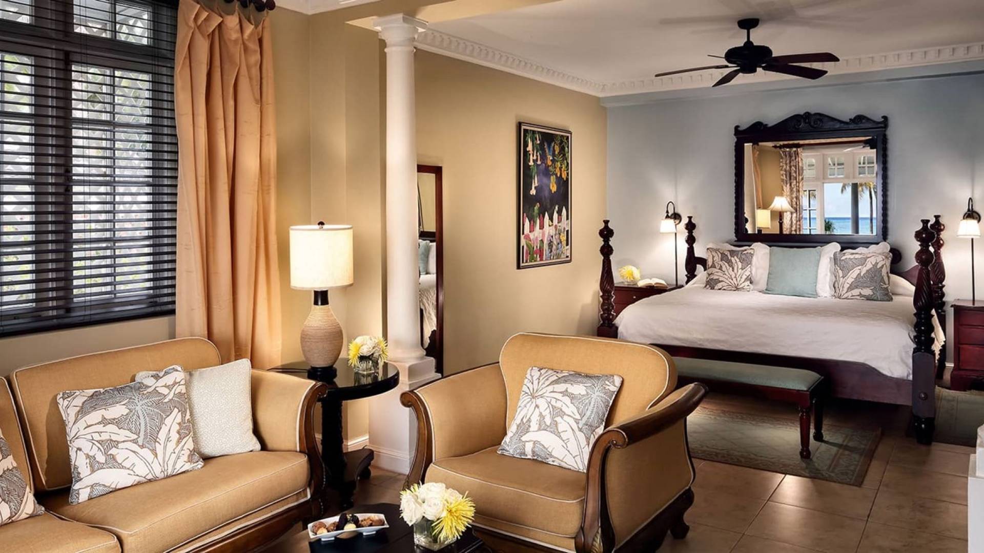 Classic and charming, each Ocean Junior Suite affords guests a relaxed living area and a balcony or patio with lovely views of the Caribbean Sea. Rooms feature king-sized beds.