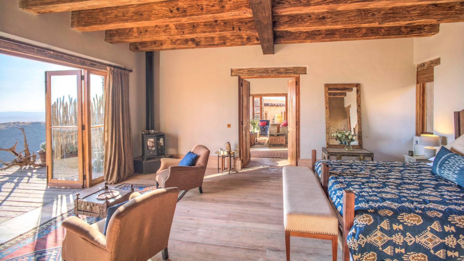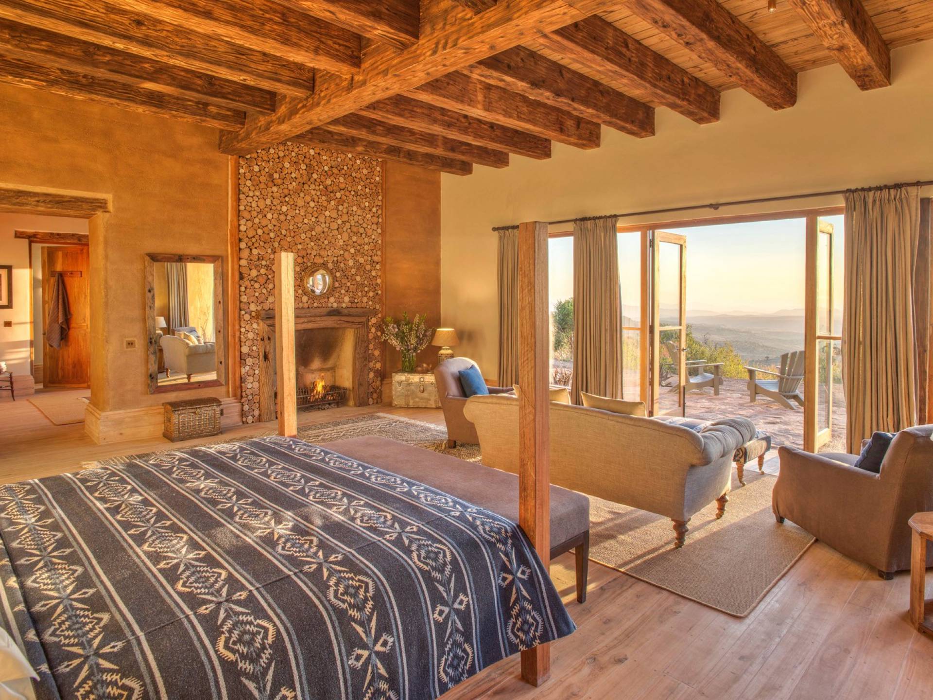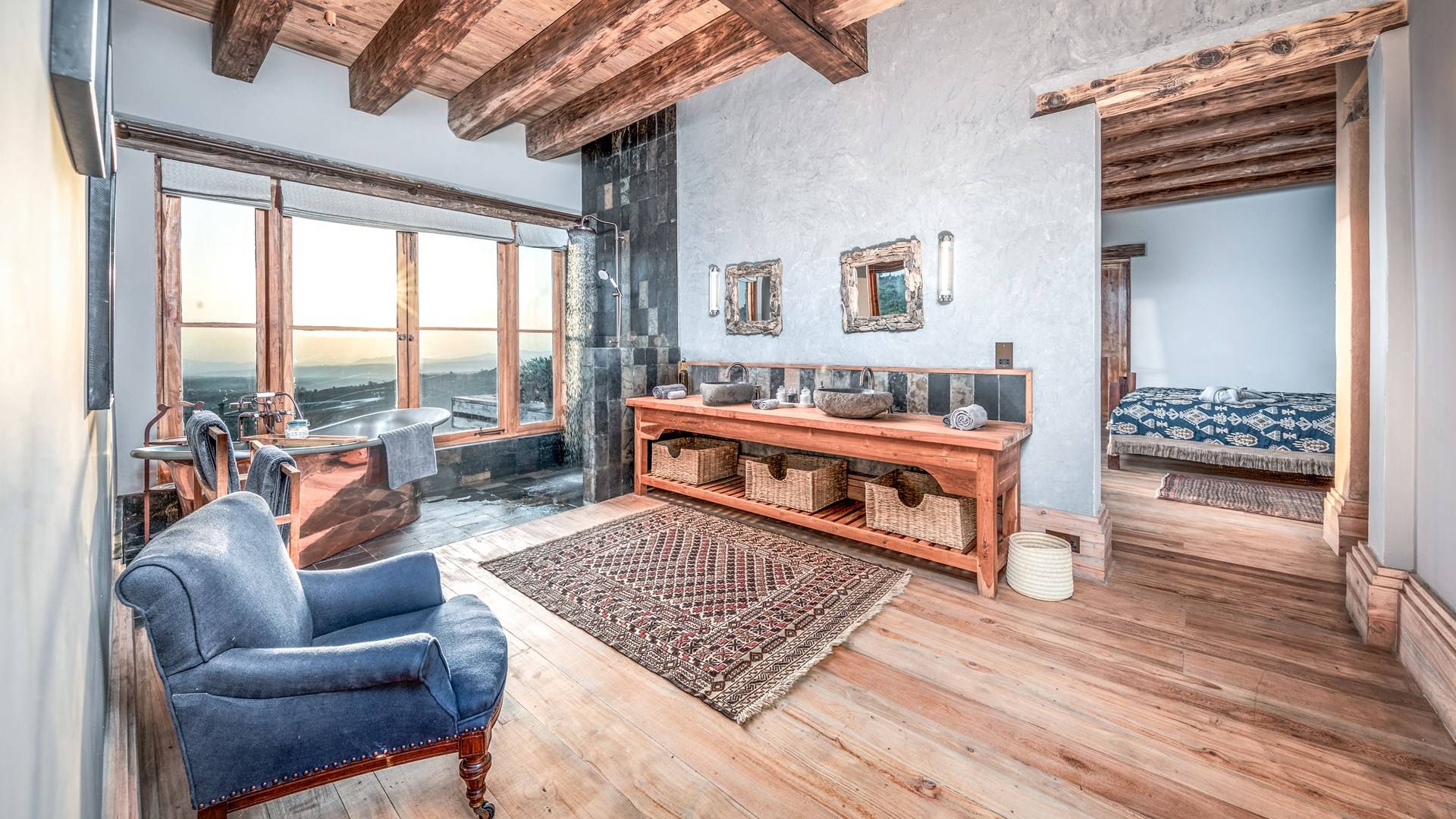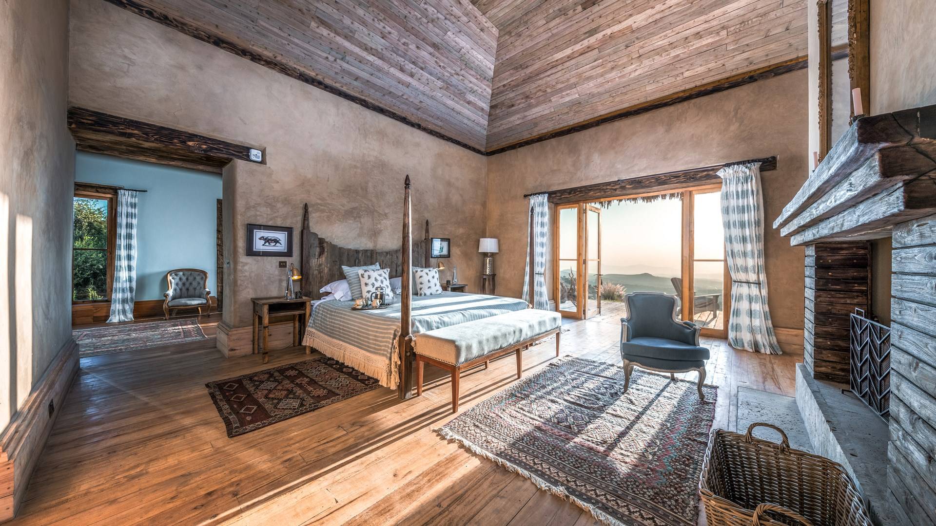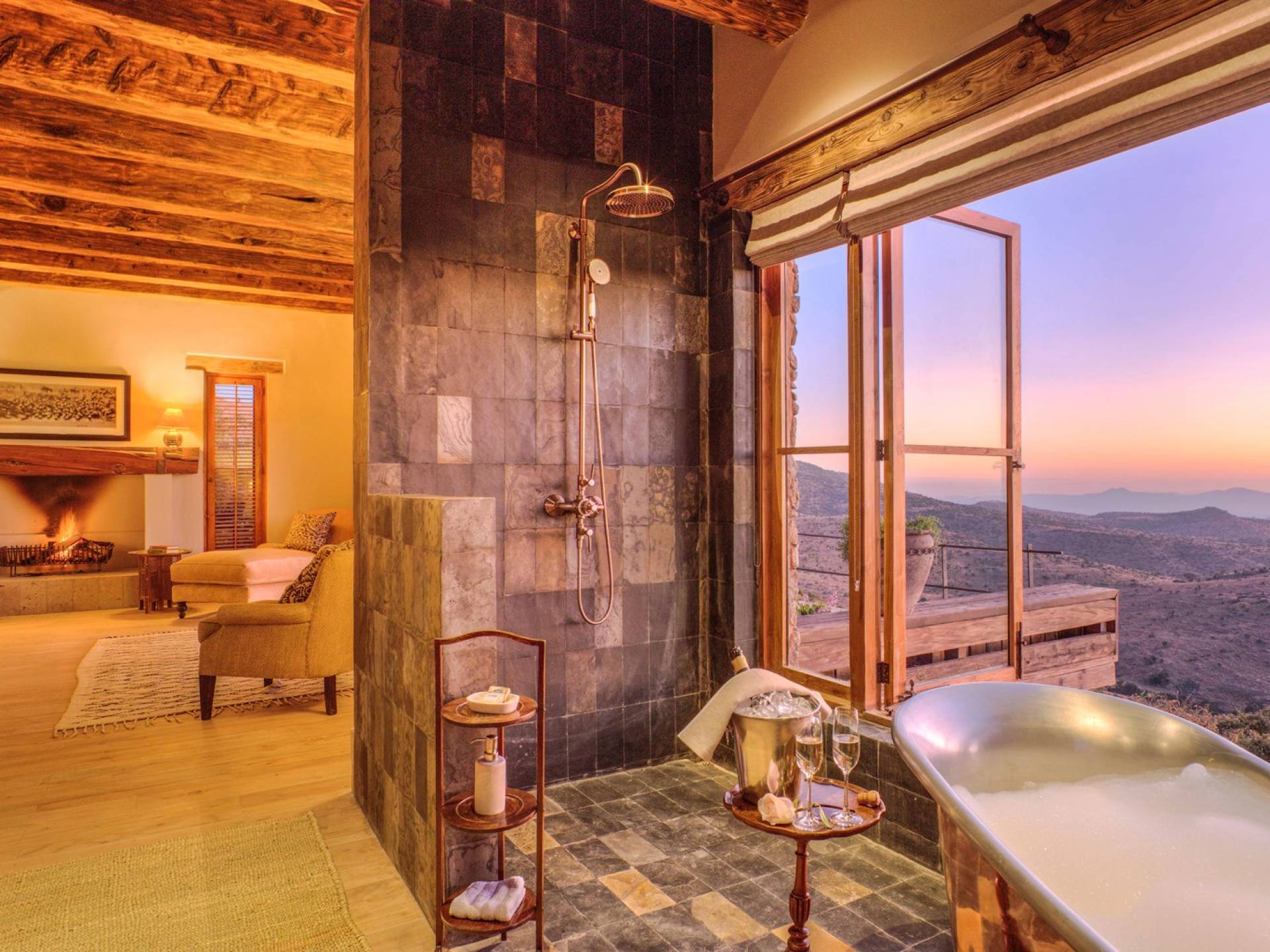 Nestled into a ridge with stunning views across the Laikipia plains and deep into the Northern Frontier, Lengishu is a luxury home for up to 12 guests, offering sustainable tourism and safari adventures in one of Kenya’s leading wildlife destinations. Villa Lengishu Kenya features six beautifully appointed bedrooms within four cottages, which are situated apart from the main house. All rooms face East over the valley below, offering spectacular sunrise views. All bedrooms are spacious with fireplaces or wood-burning stoves for the cooler evenings and have en-suite bathrooms with rain showers and freestanding copper bathtubs. Floor to ceiling windows provide majestic views of the undulating plains beyond, perfect for bathtub game viewing