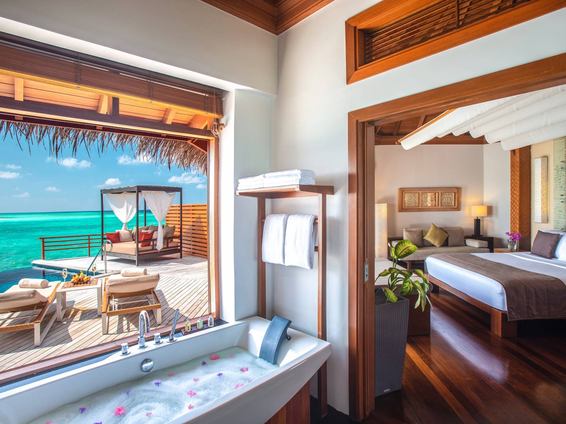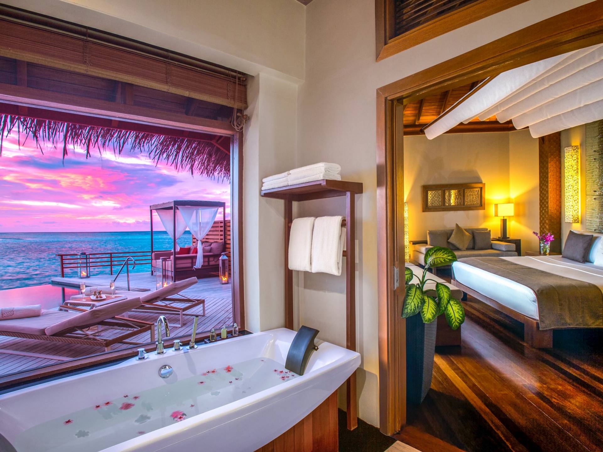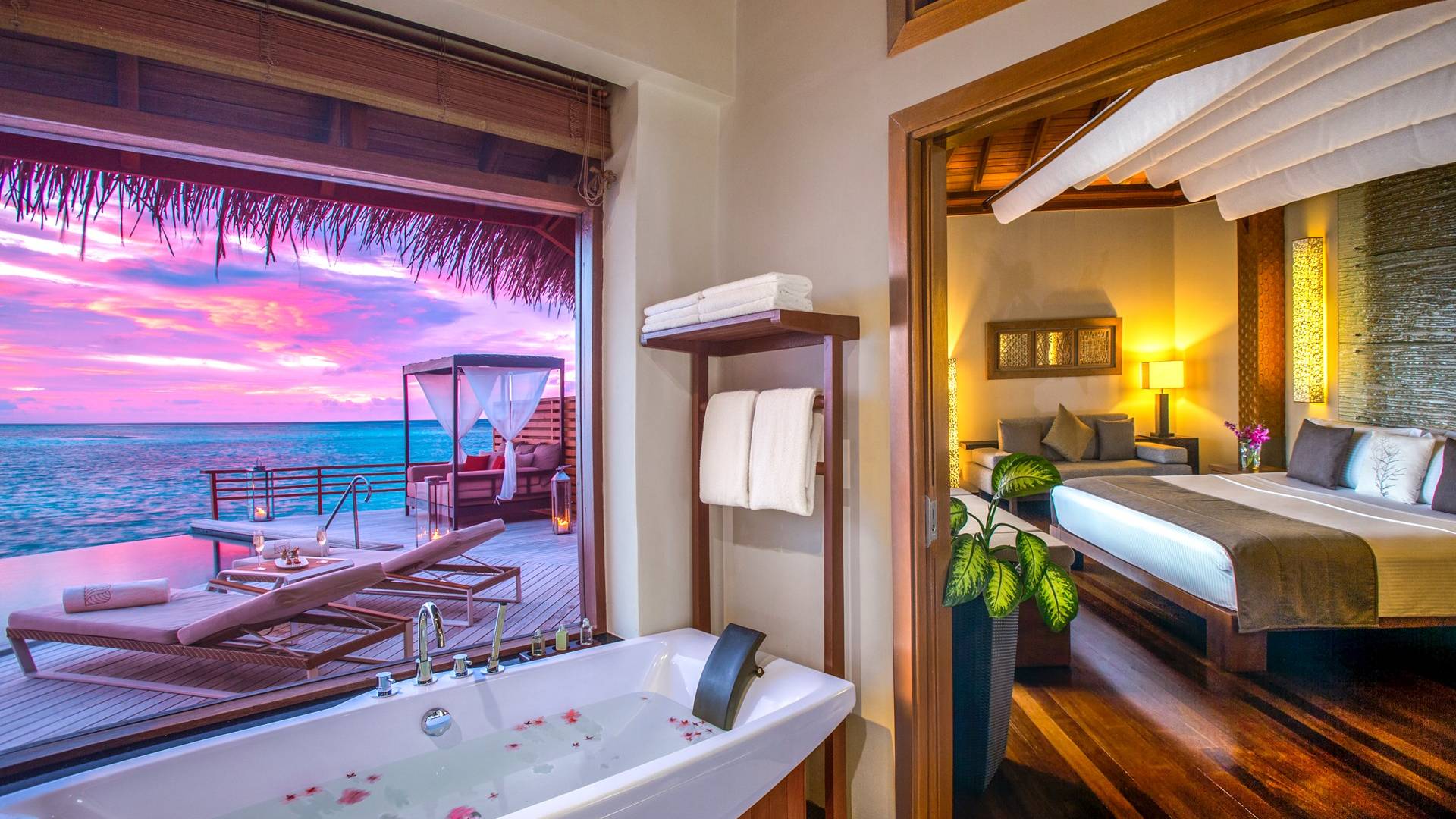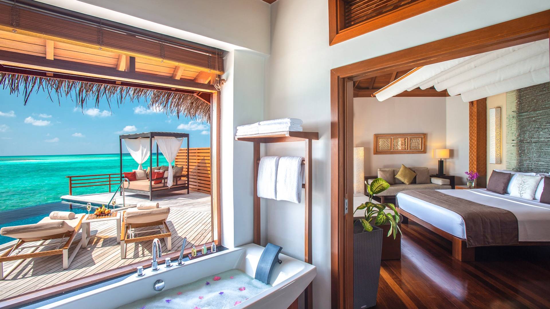 The turquoise of your plunge pool blends with the blues of our lagoon. Behind the daybed on your sun-soaked veranda, a stairway descends to crystal-clear waters, the house reef ready and waiting for exploration. Life at Baros is glorious, outside and in. You will find every comfort in your private cocoon over the water-rich teak floors, comfortable furniture, and luxurious bedding, a library of books and indoor games, and every modern convenience. Your tropical overwater haven gives you the perfect balance of privacy and access.
