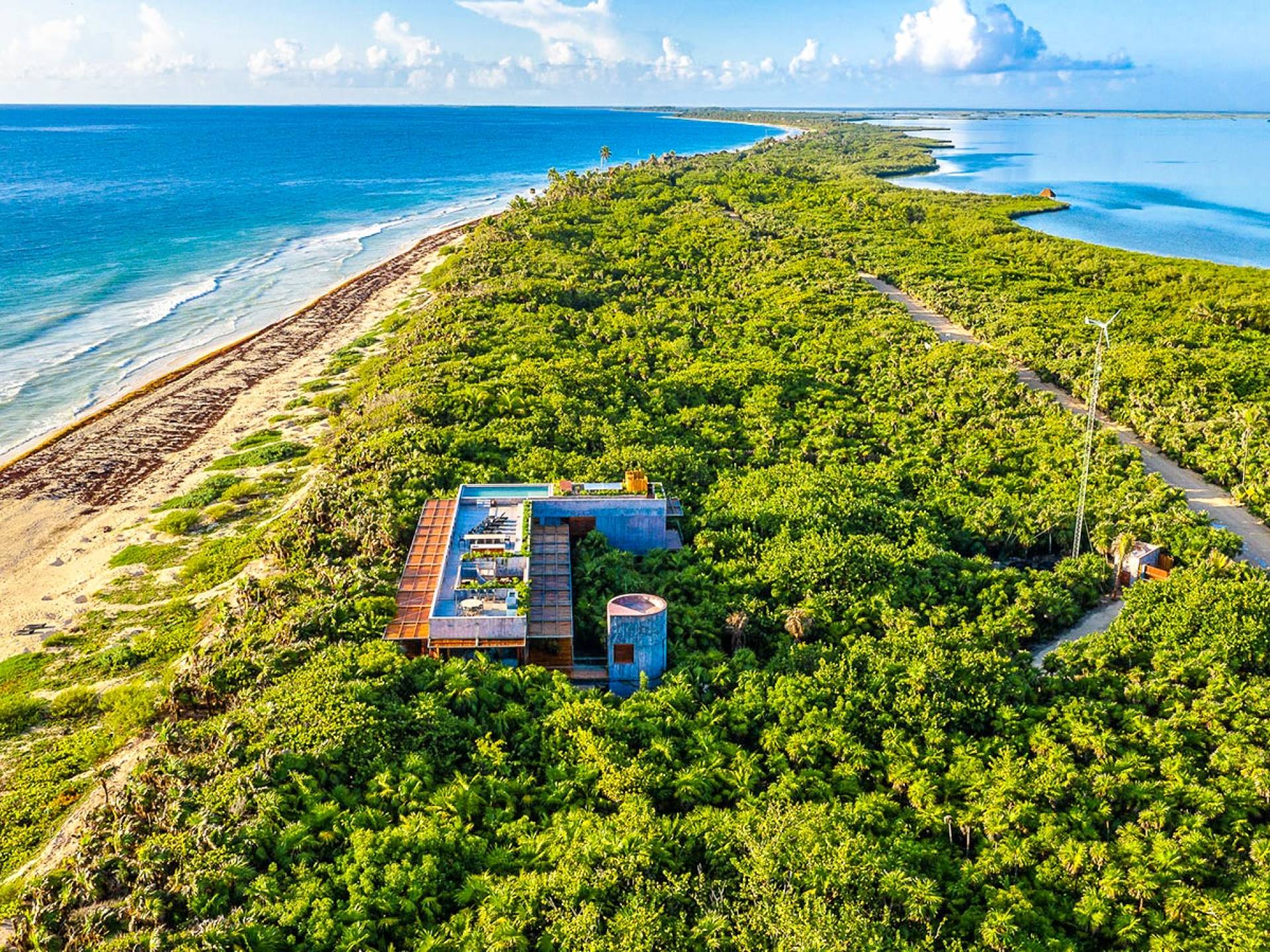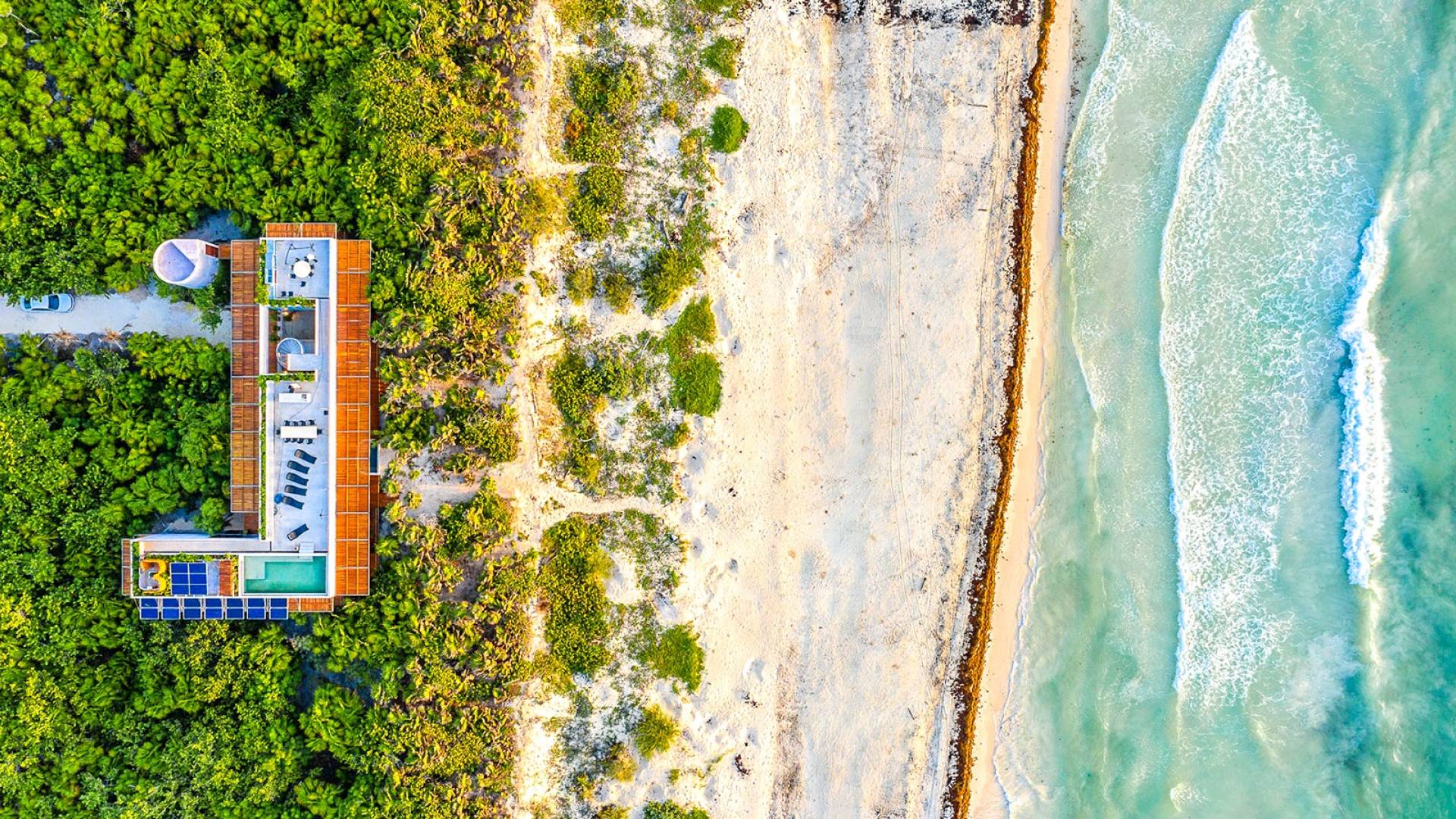 Furthering his vision of sustainable living based on honoring our intrinsic values, he enlisted the help of a leading architecture firm Productora from Mexico City to work on the project. The result has seen this villa win the 2020 Wallpaper Design Awards. As a founder of the village Pueblo del Sol, in Oaxaca, and as with everything that he does, indigenous, local people come first. You can sense that intention and kindness transferred to the experience of the house as well. Newly inaugurated Casa Bautista is tucked in the Sian Ka’an Biosphere, Tulum’s Unesco Heritage protected jungle, it is promising to be an ultimate experience in truly sustainable luxury.