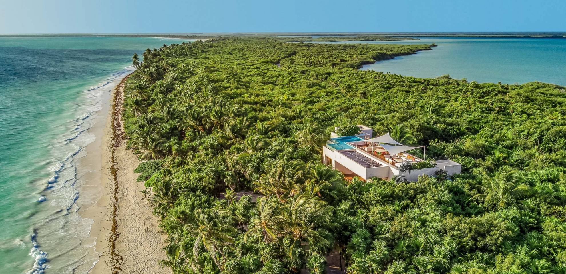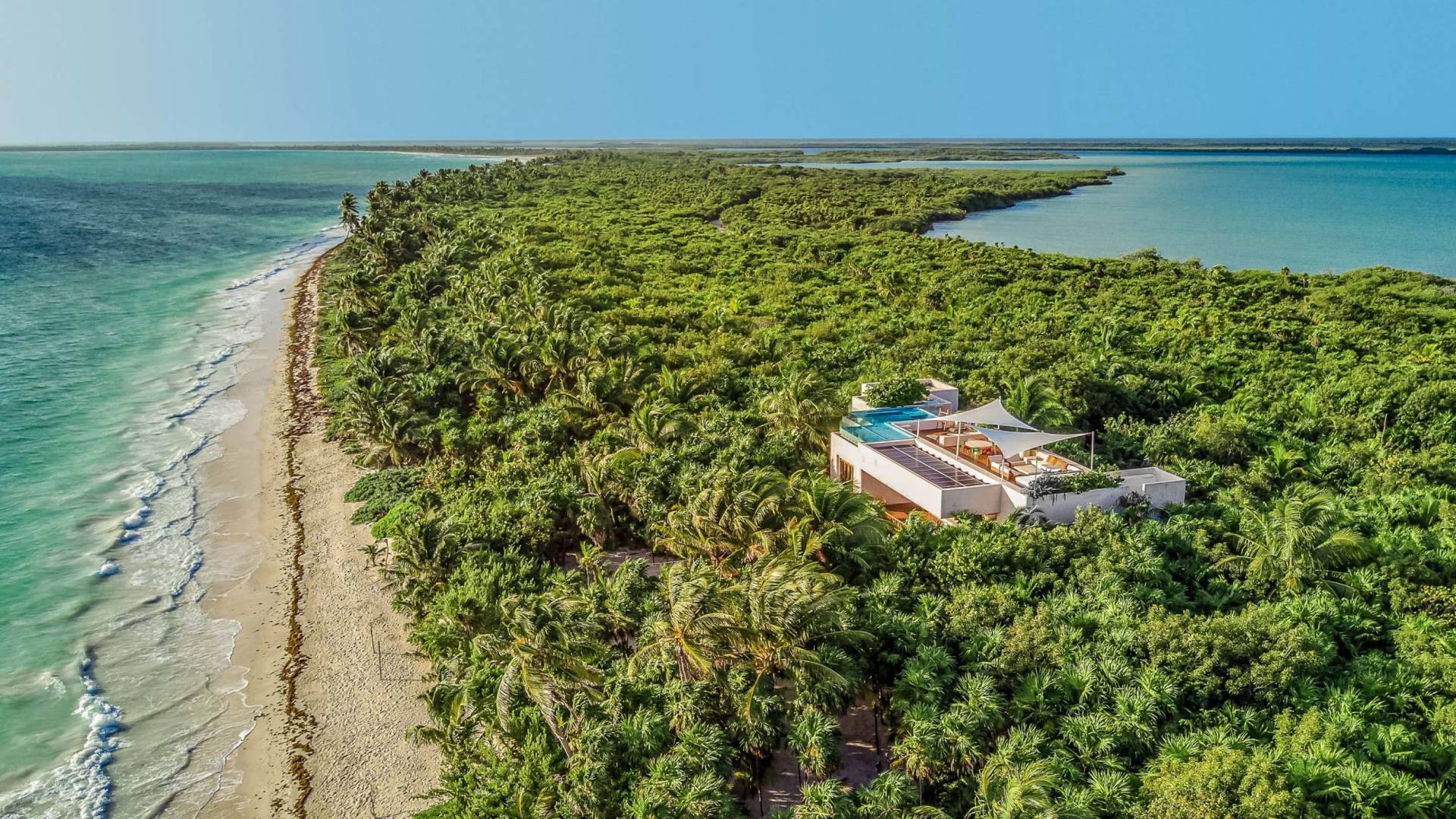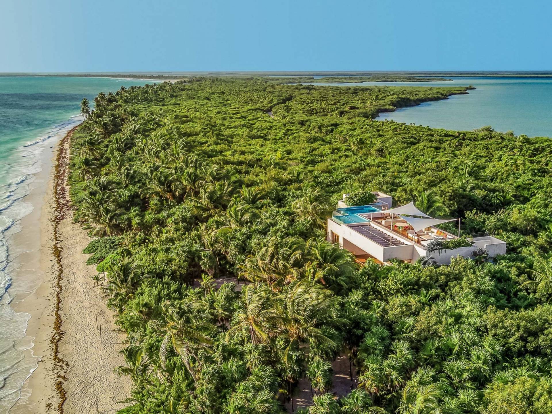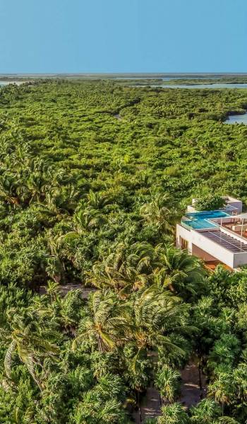 Casa Ikal Tulum is a very contemporary house designed by world-renowned De Yturbe architects and sits on a 5-acre estate that has 300 feet of the pristine seafront and 300 feet of lagoon front, 300 sq meters of roofed space and another 350 sq meters of exteriors.