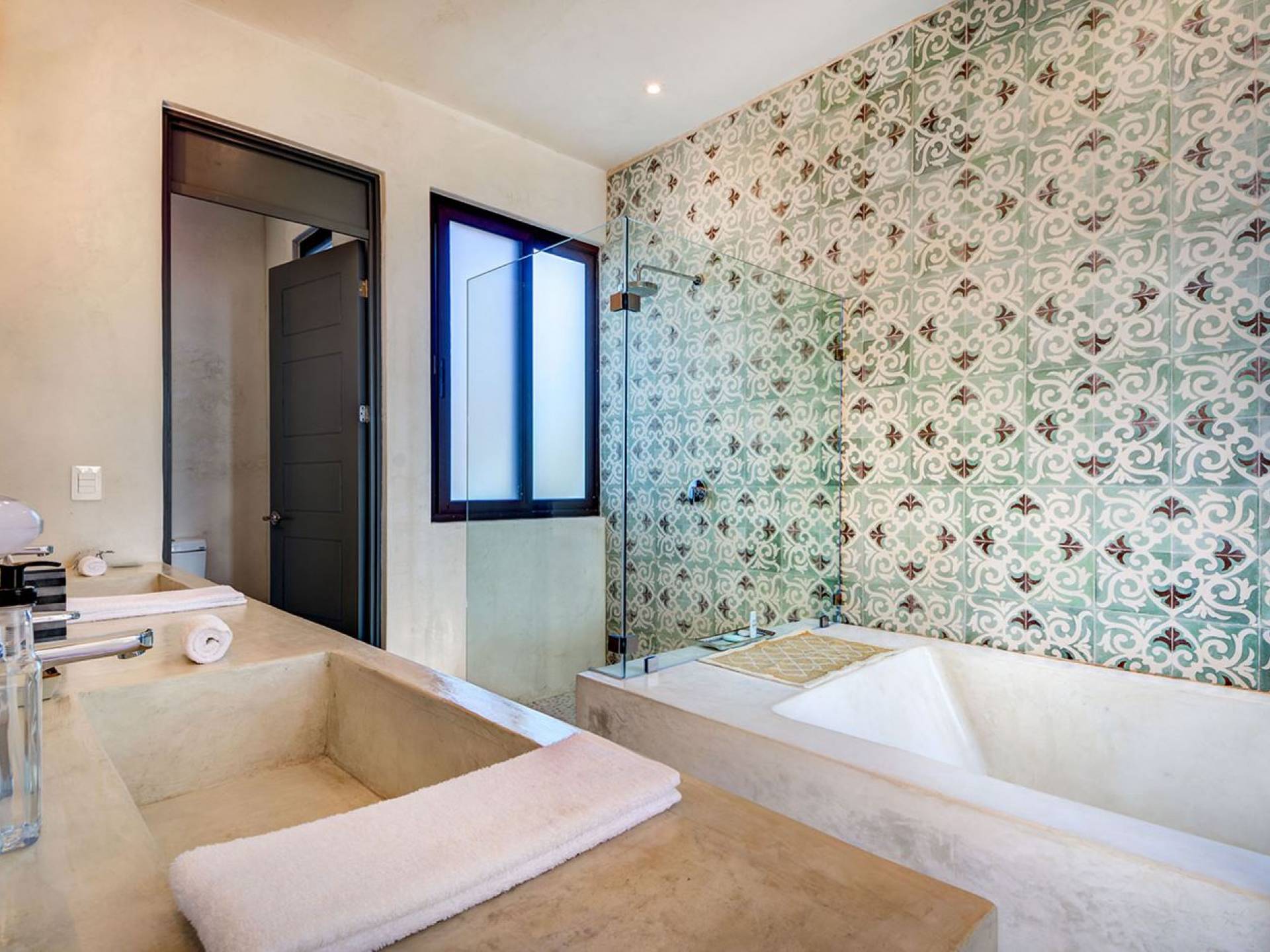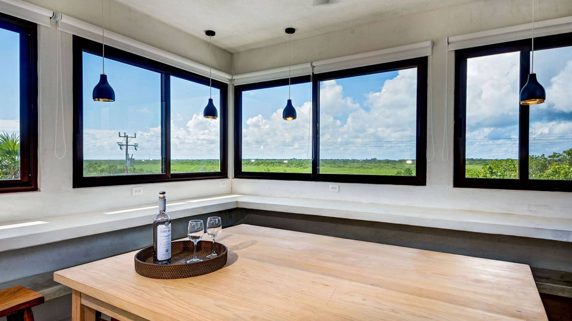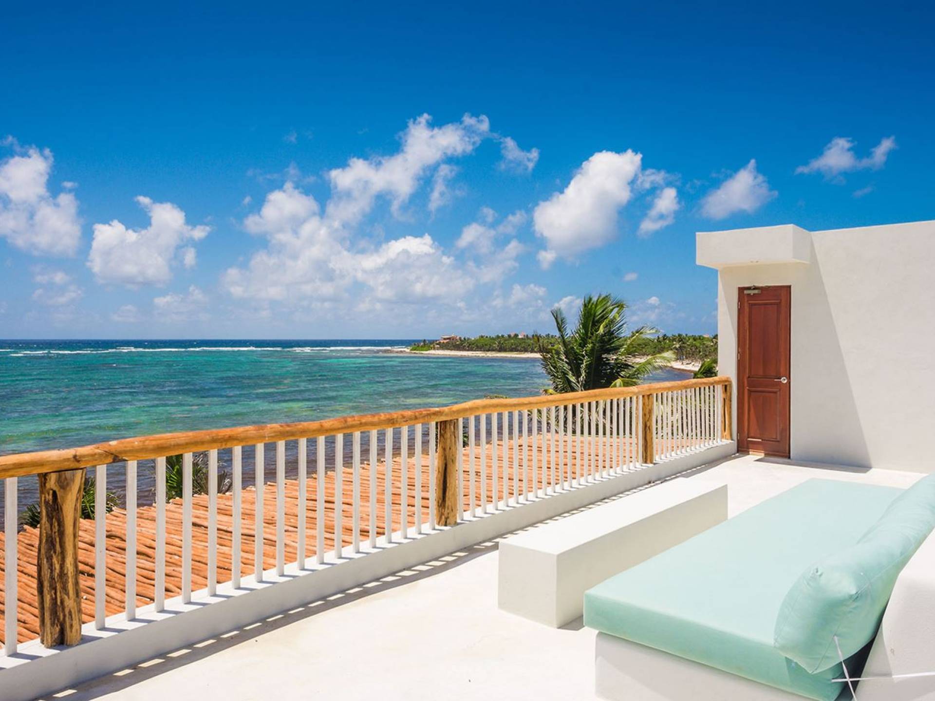 This 6 bedroom, 5.5 bathroom luxury villa is situated in a beachfront location in Soliman Bay, Tulum. It’s absolutely perfect for water and nature lovers as the villa is surrounded by ocean on one side and lush jungle on the other. You can catch spectacular views of both the sunrise and sunset from the rooftop.
