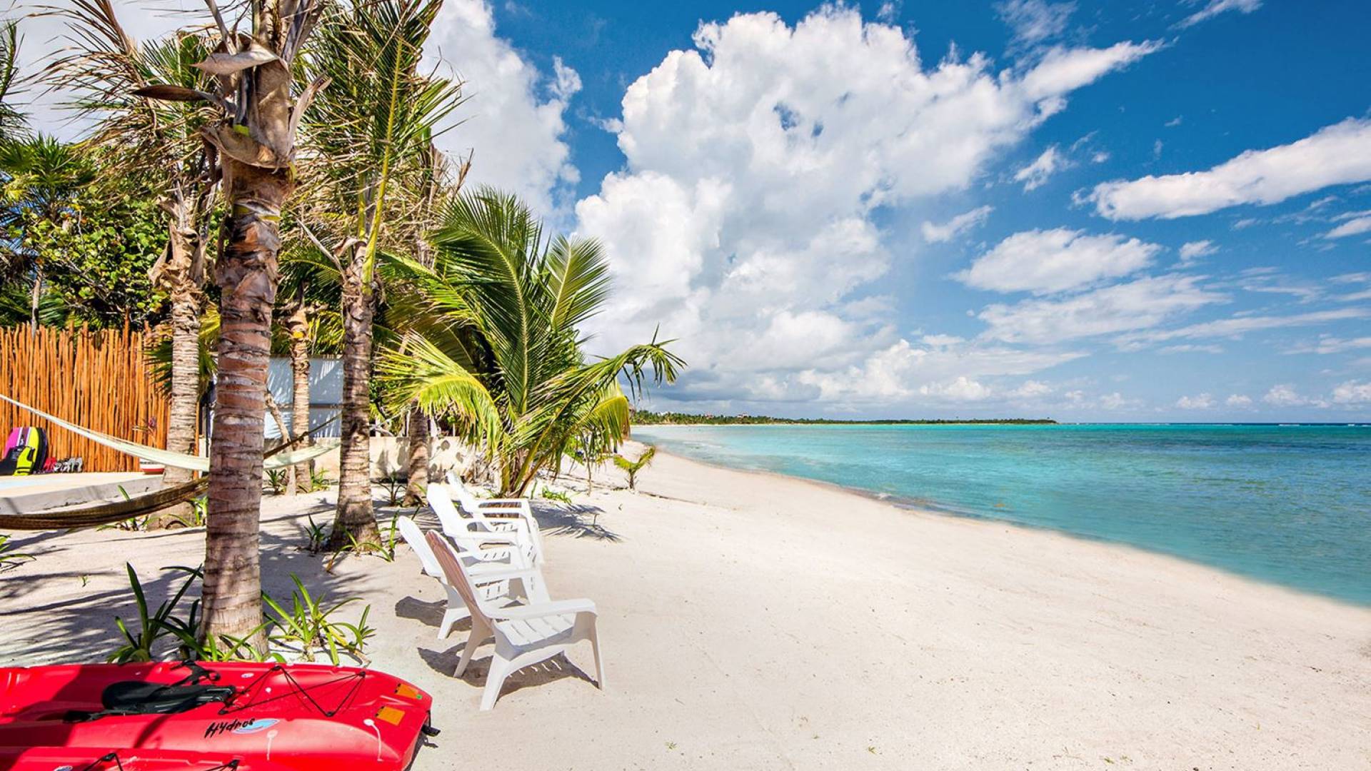 Soliman Bay is an exclusive and gorgeous bay. Enjoy the warm waters of the Caribbean sea with Mesoamerican Reef nearby. The reef is only about a mile (1.6km) from shore and you can easily paddle, kayak, or swim out there to snorkel. Soliman Bay is also only a 10-minute drive to Tulum Pueblo (town) and the ruins. It is also not far from the other Mayan archaeological sites of Cobá and Chichén Itzá and only minutes north of Tulum’s beach hotspot with many restaurants, beach clubs, boutique shops, and more.