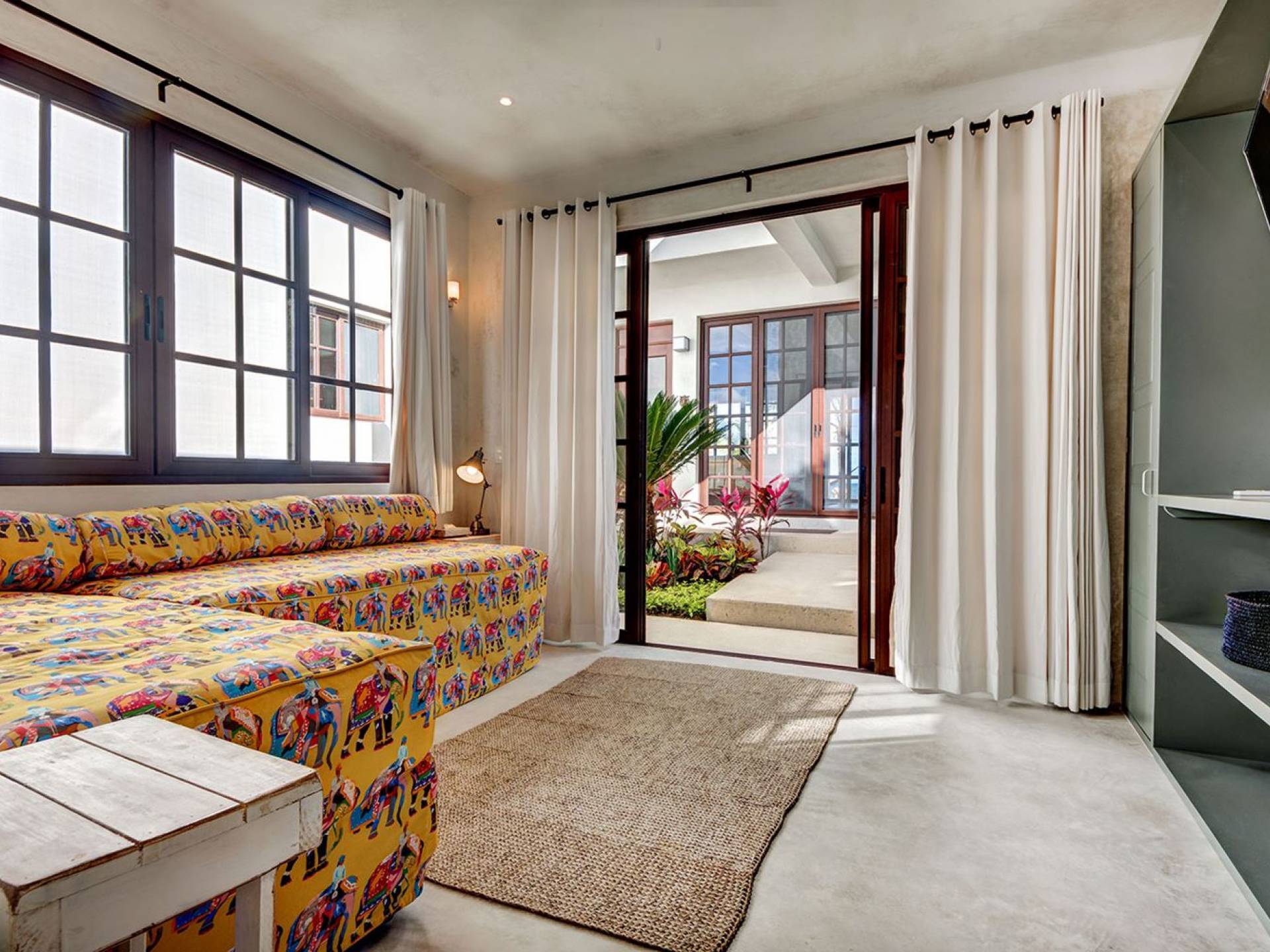 As you step into this grandiose villa through a wide landscaped entry, you get a sense of spaciousness as you see straight through the house to the sea. The main floor presents a large living room, dining room, and kitchen area that opens up via sliding panoramic doors to allow for an indoor/outdoor connection. As the indoor flow onto a large terrace, you gain additional space to dine poolside with a sea view. This area is wonderful for large groups and entertaining as it was intentionally designed for “group togetherness” and enjoying the company you’re with. The decor includes opulent fabrics and gorgeous wall hangings from India.