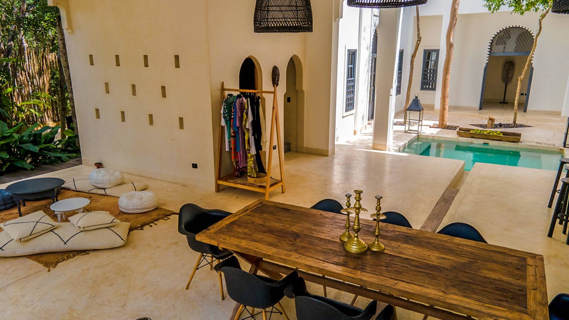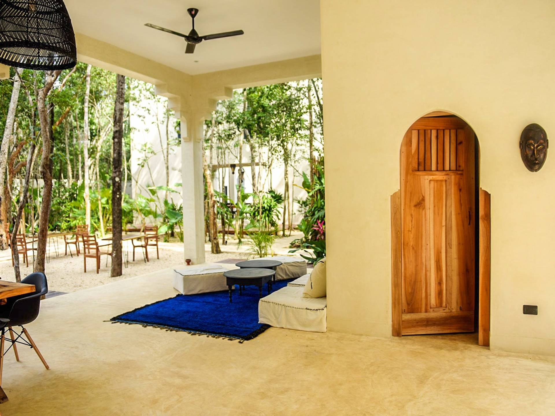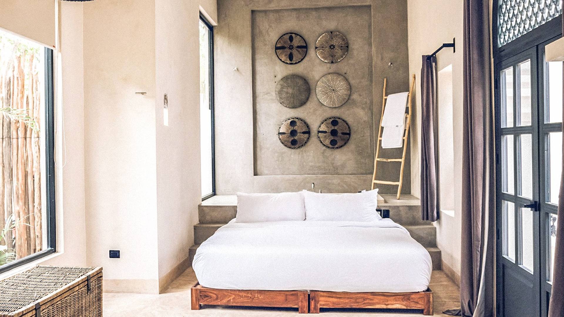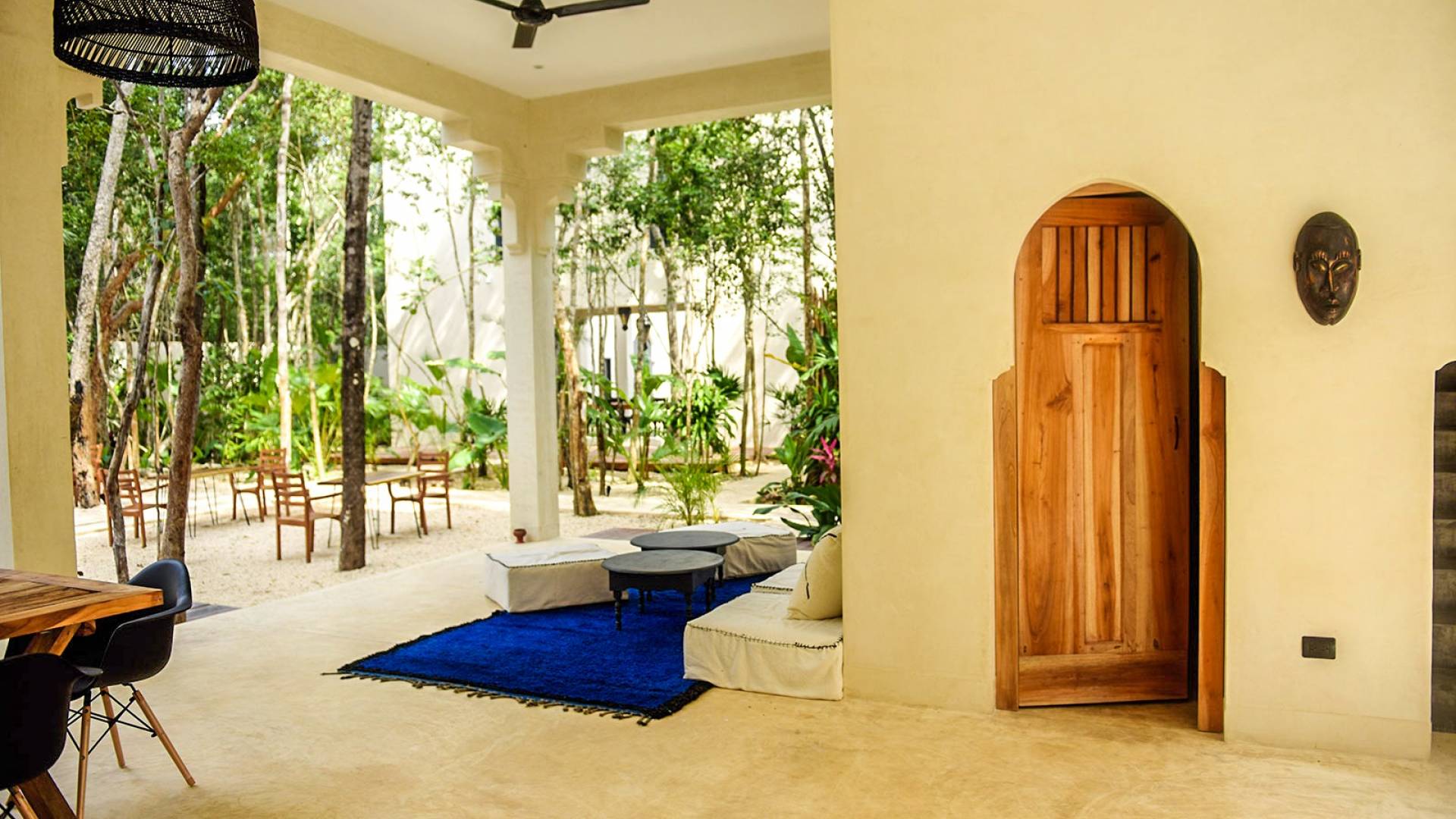 The openness of the architecture, distributed around the courtyards, is an invitation to enjoy outdoor living. The large dining tables by the pools integrate into the gardens and their endemic trees, while fully-equipped kitchens are perfect for preparing large family meals. There is even a personal chef available during your stay. Further, both homes are equipped with air conditioning, Wi-Fi. Villa Riad Ambre et Epices is located in one of Tulum’s newest neighborhoods, just 15 minutes away from the beach and very close to the town’s vibrant center.