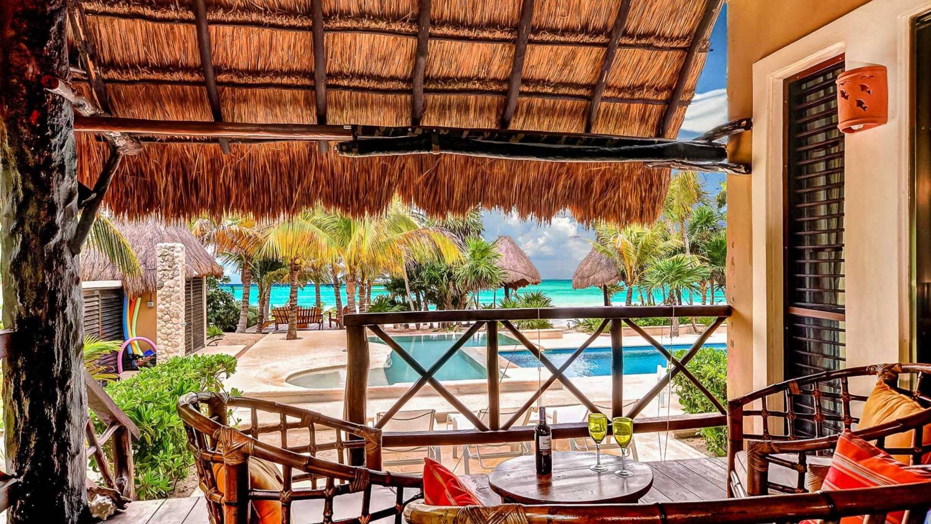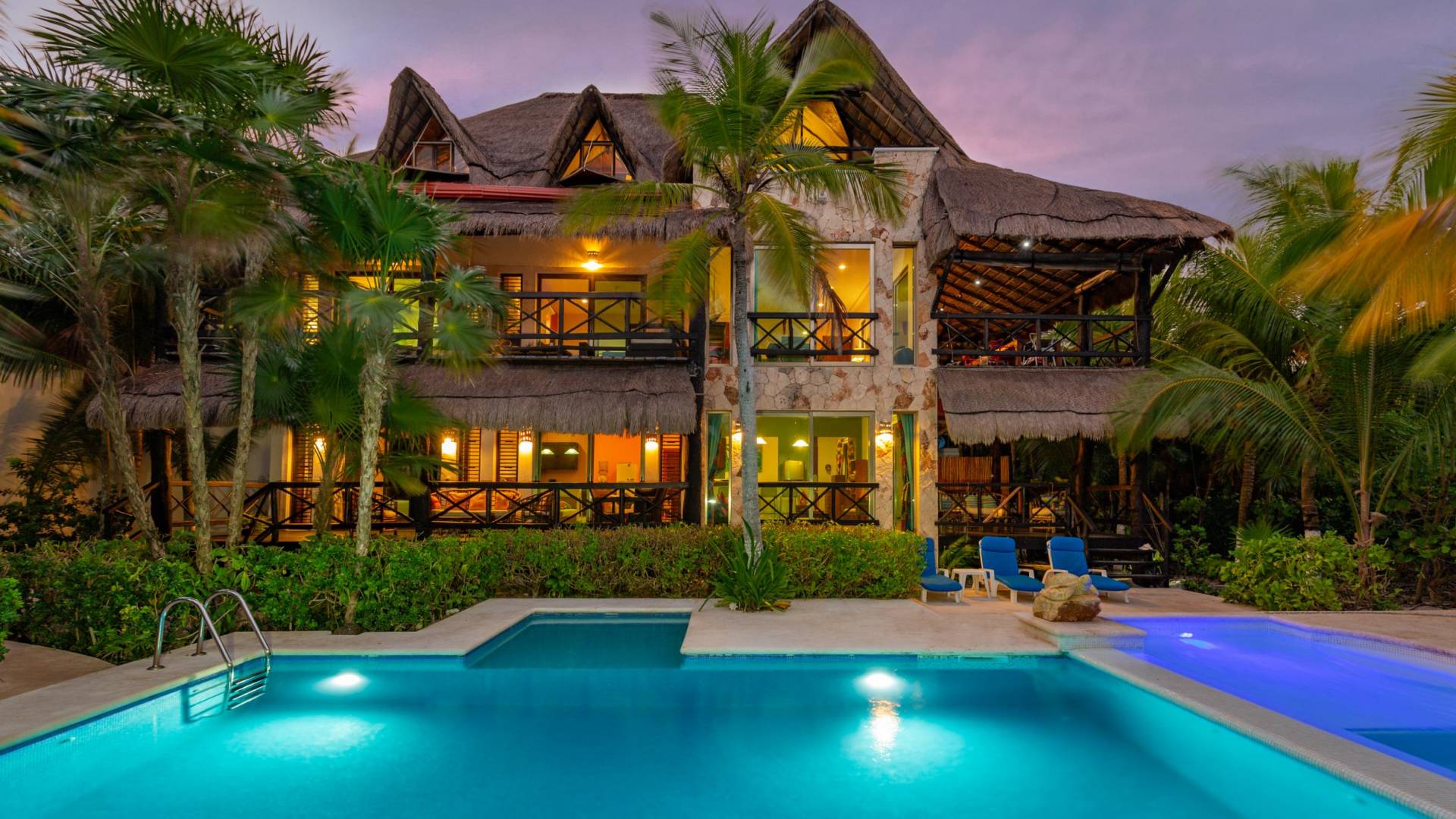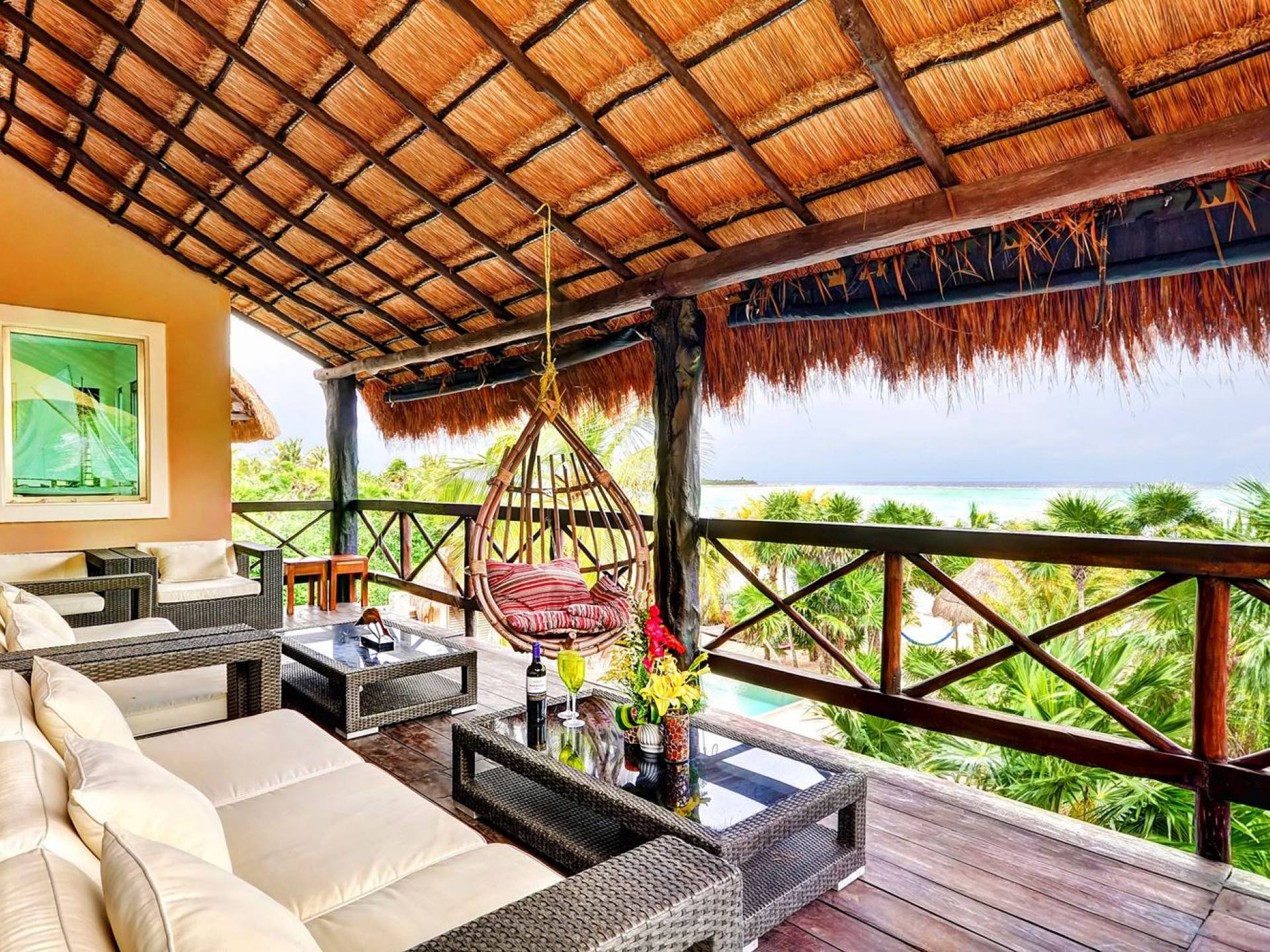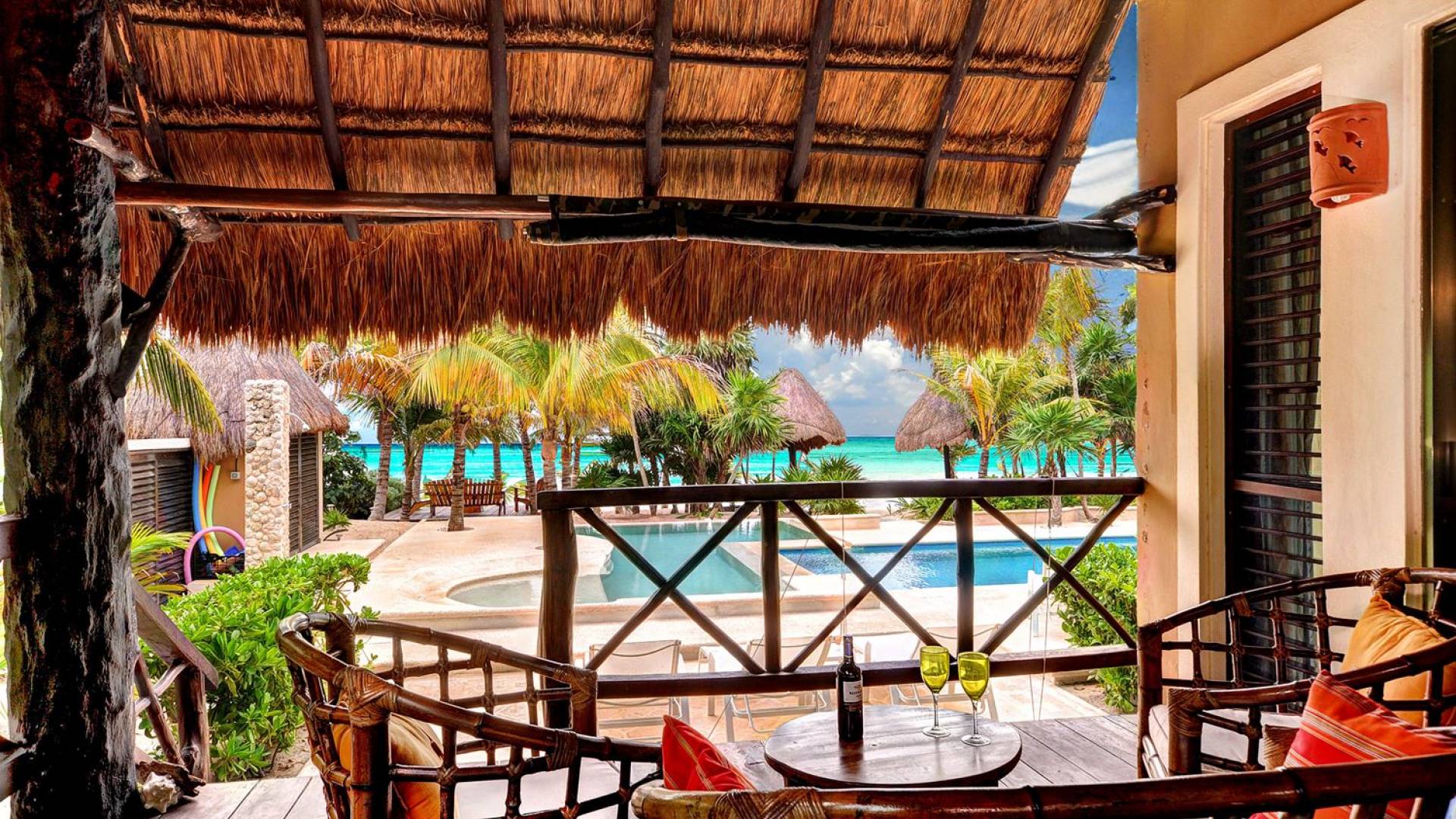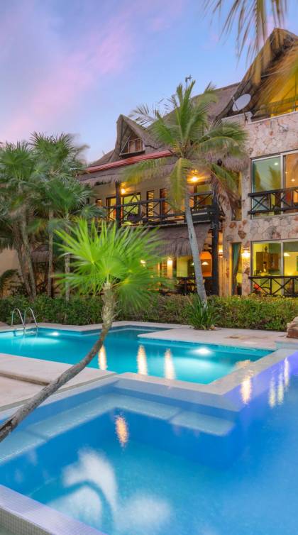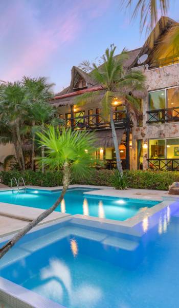 Sombras del Viento is nestled between the lush tropical jungle and Soliman Bay, a beautiful nature reserve. This tropical haven will encourage you to relax while admiring the magnificent colors of the Caribbean Sea. Its blend of natural materials (exotic woods, palapas) with luxurious finishes (marble, granite), graced with the presence of the sea and breathtaking ocean views make Sombras del Viento one of the nicest private villas in Soliman Bay.