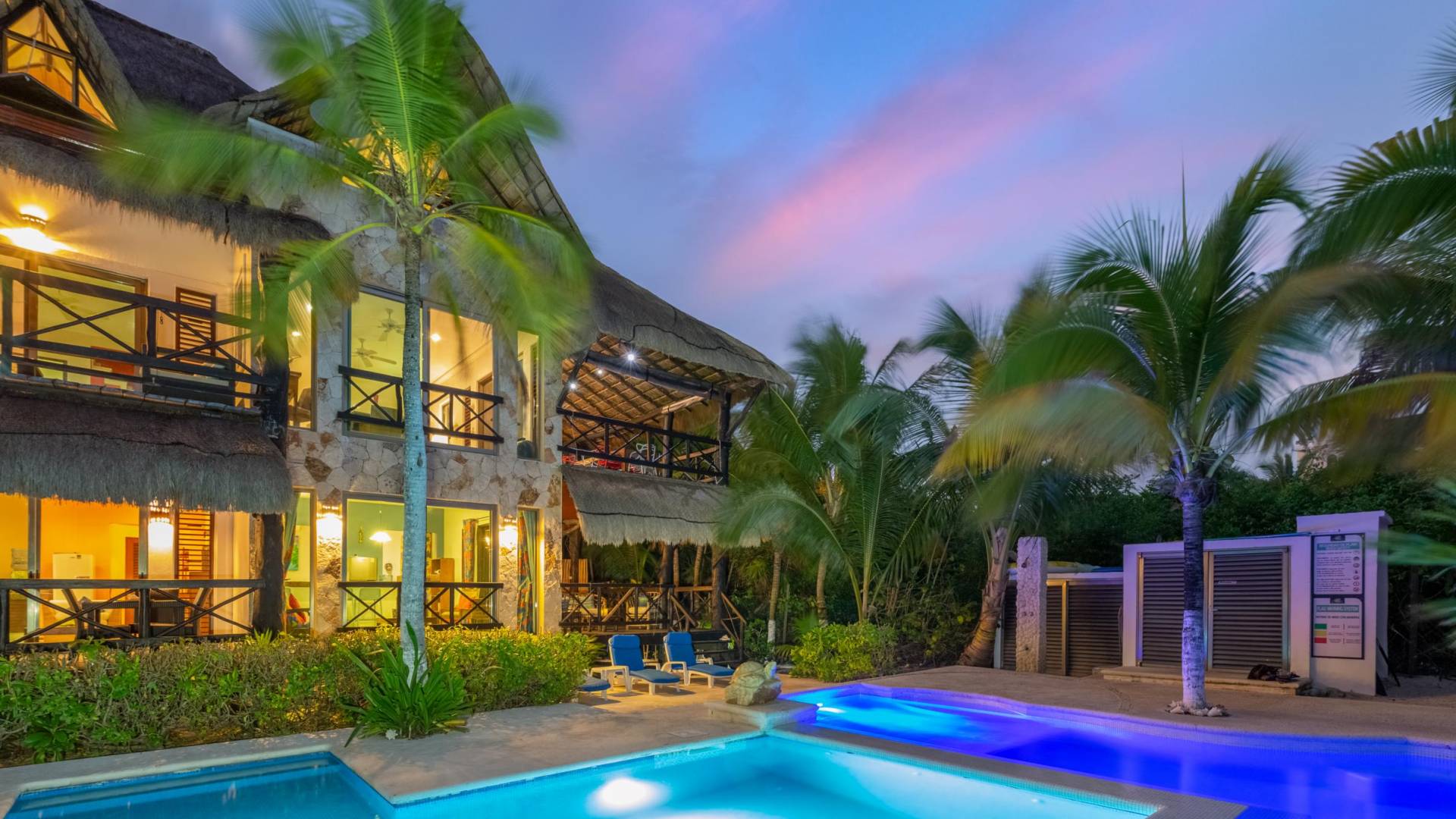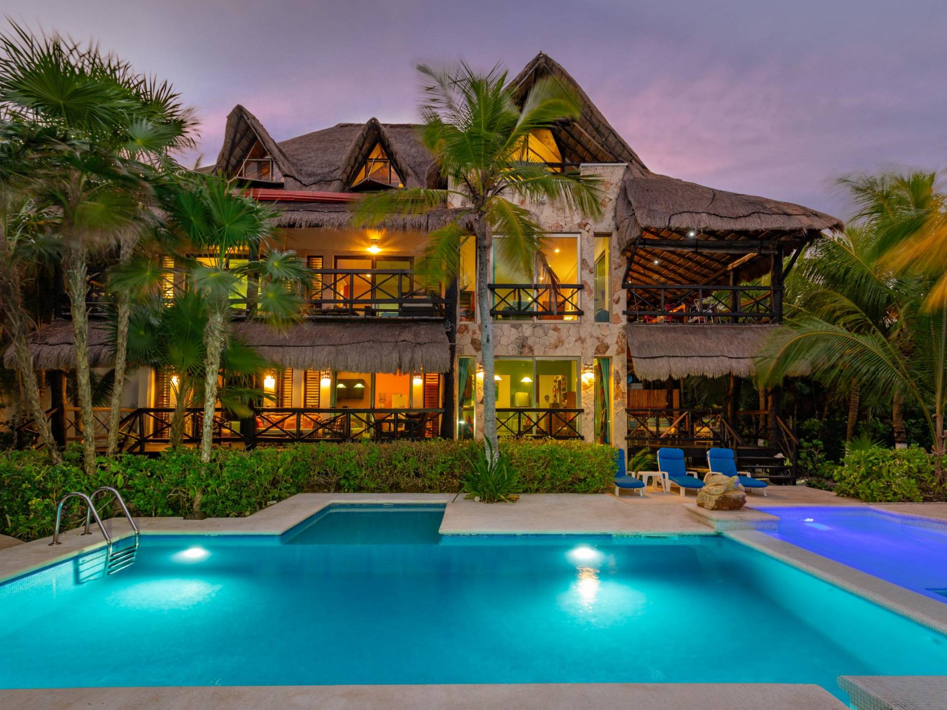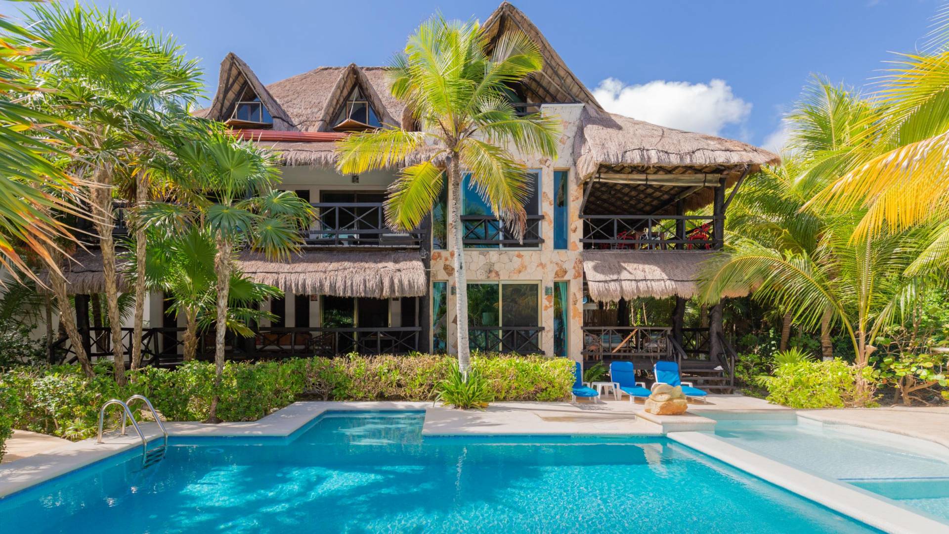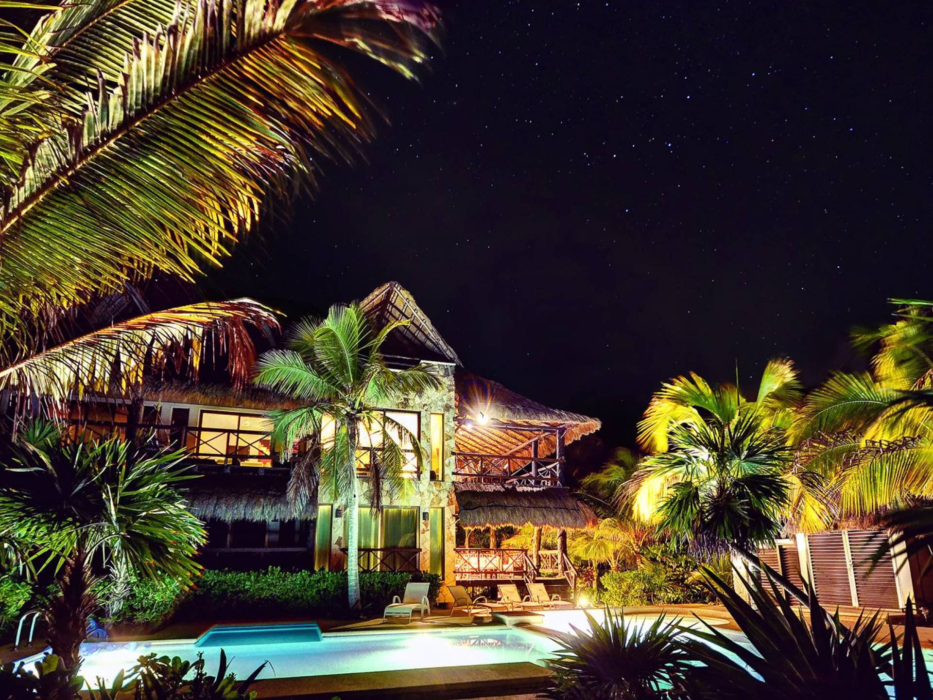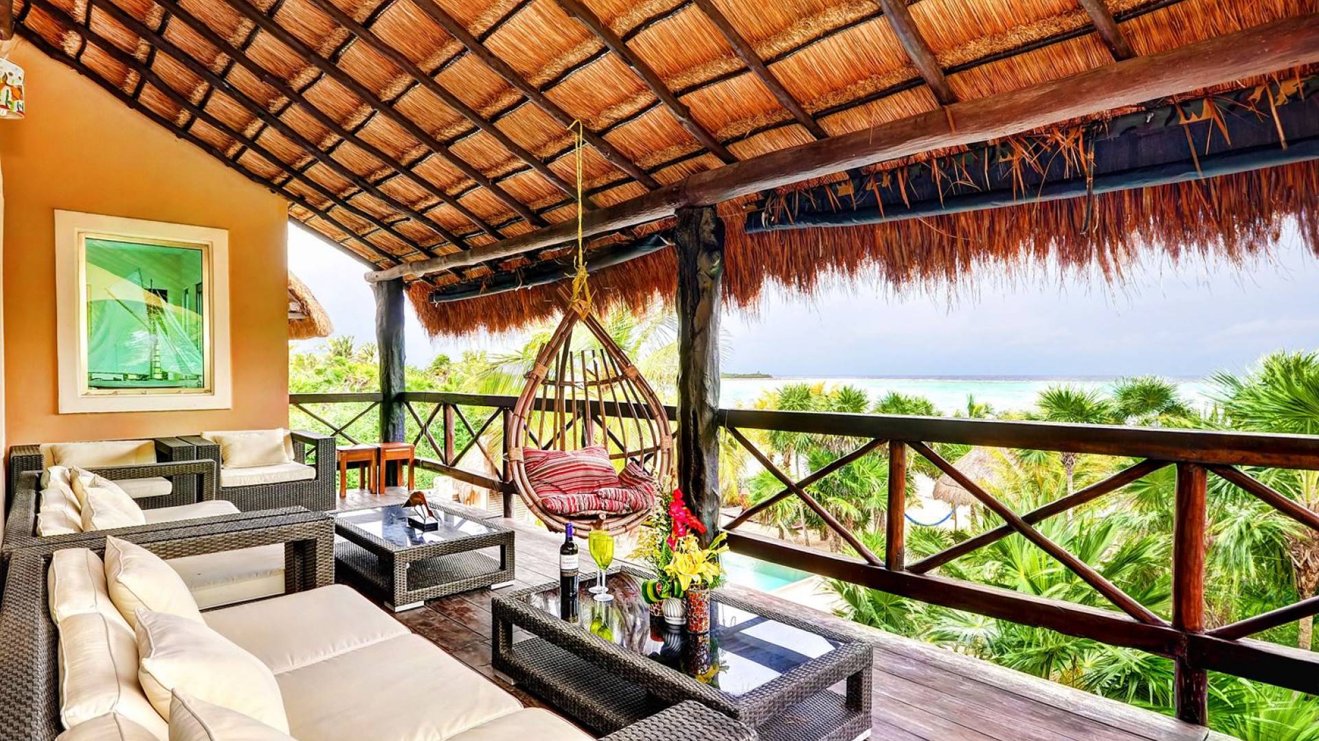 Sombras del Viento is nestled between the lush tropical jungle and Soliman Bay, a beautiful nature reserve. This tropical haven will encourage you to relax while admiring the magnificent colors of the Caribbean Sea. Its blend of natural materials (exotic woods, palapas) with luxurious finishes (marble, granite), graced with the presence of the sea and breathtaking ocean views make Sombras del Viento one of the nicest private villas in Soliman Bay.