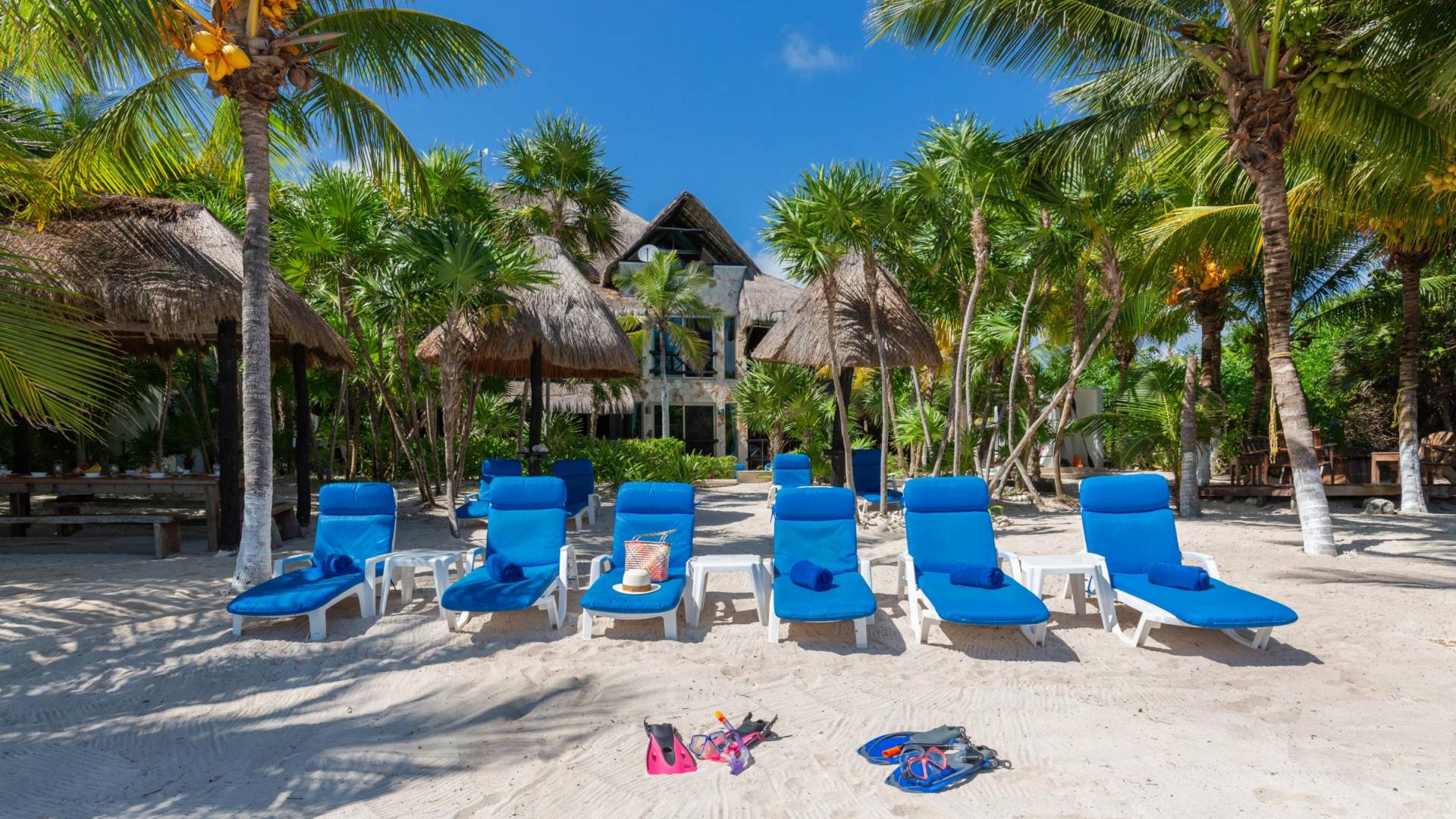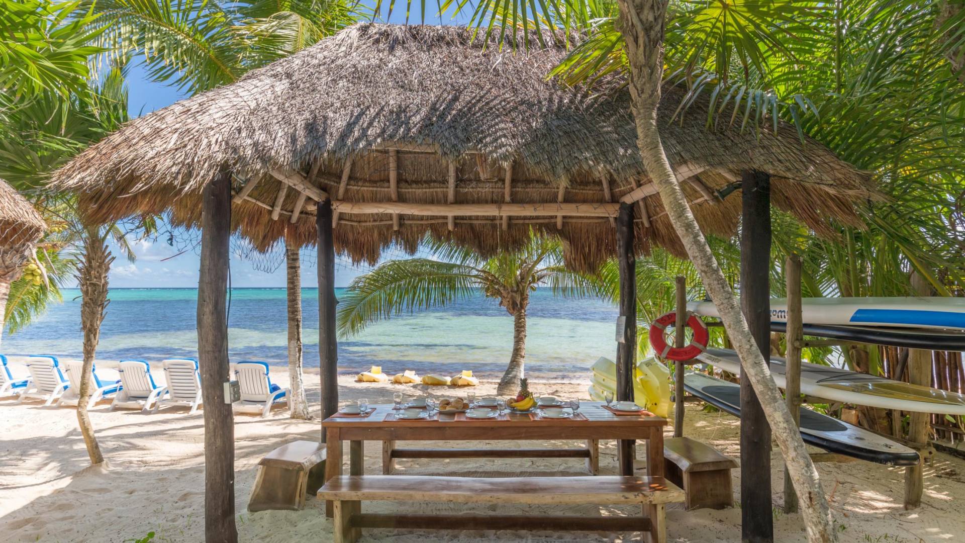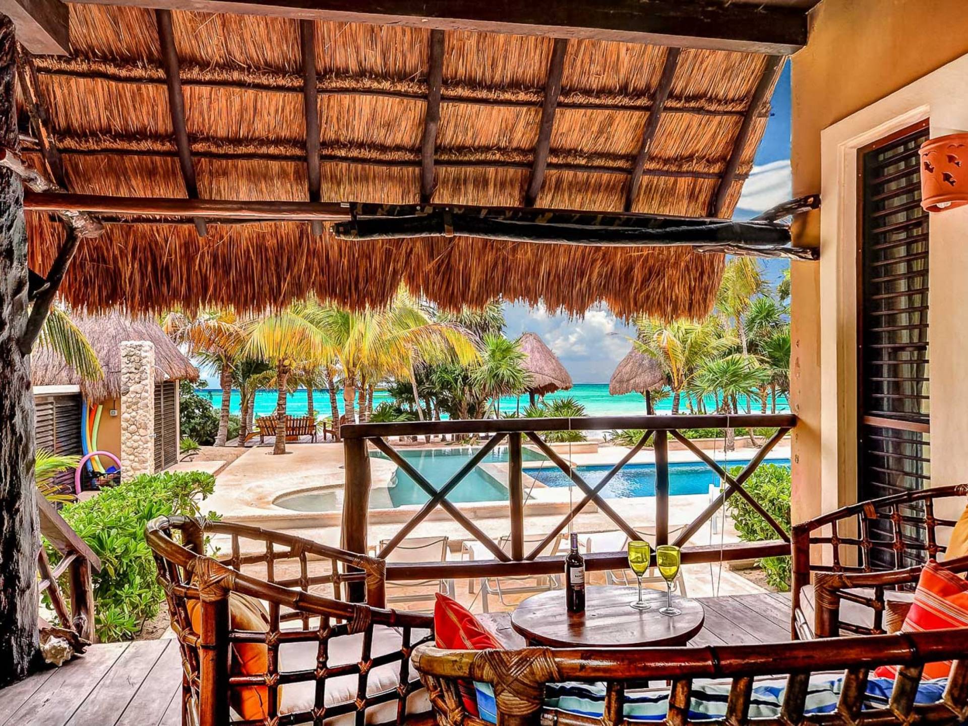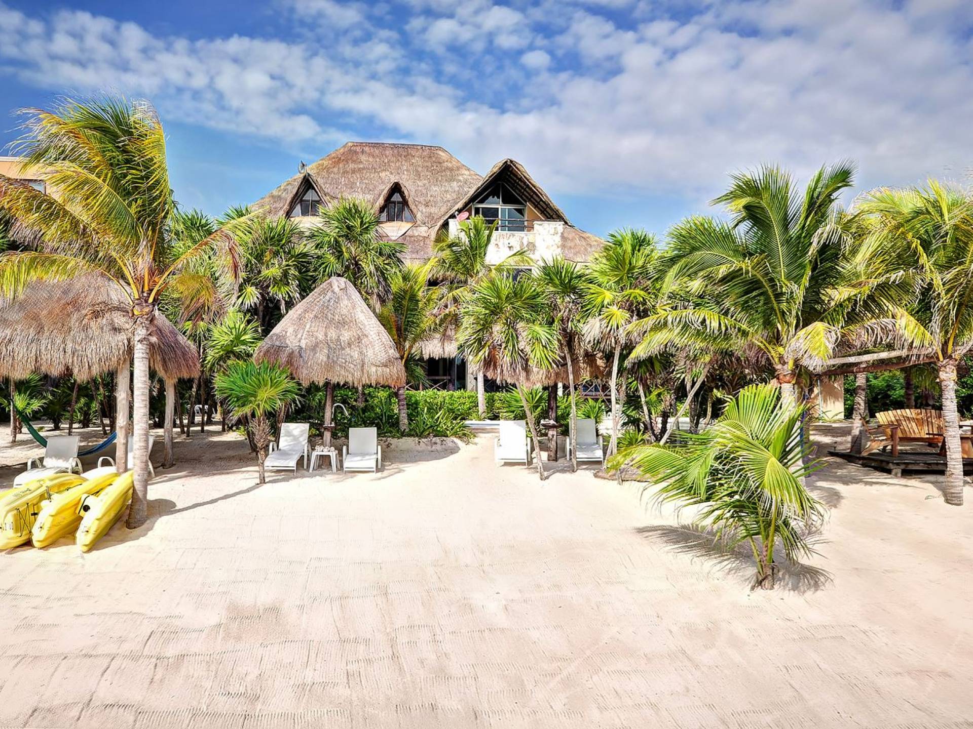 Sombras del Viento is nestled between the lush tropical jungle and Soliman Bay, a beautiful nature reserve. This tropical haven will encourage you to relax while admiring the magnificent colors of the Caribbean Sea. Its blend of natural materials (exotic woods, palapas) with luxurious finishes (marble, granite), graced with the presence of the sea and breathtaking ocean views make Sombras del Viento one of the nicest private villas in Soliman Bay.