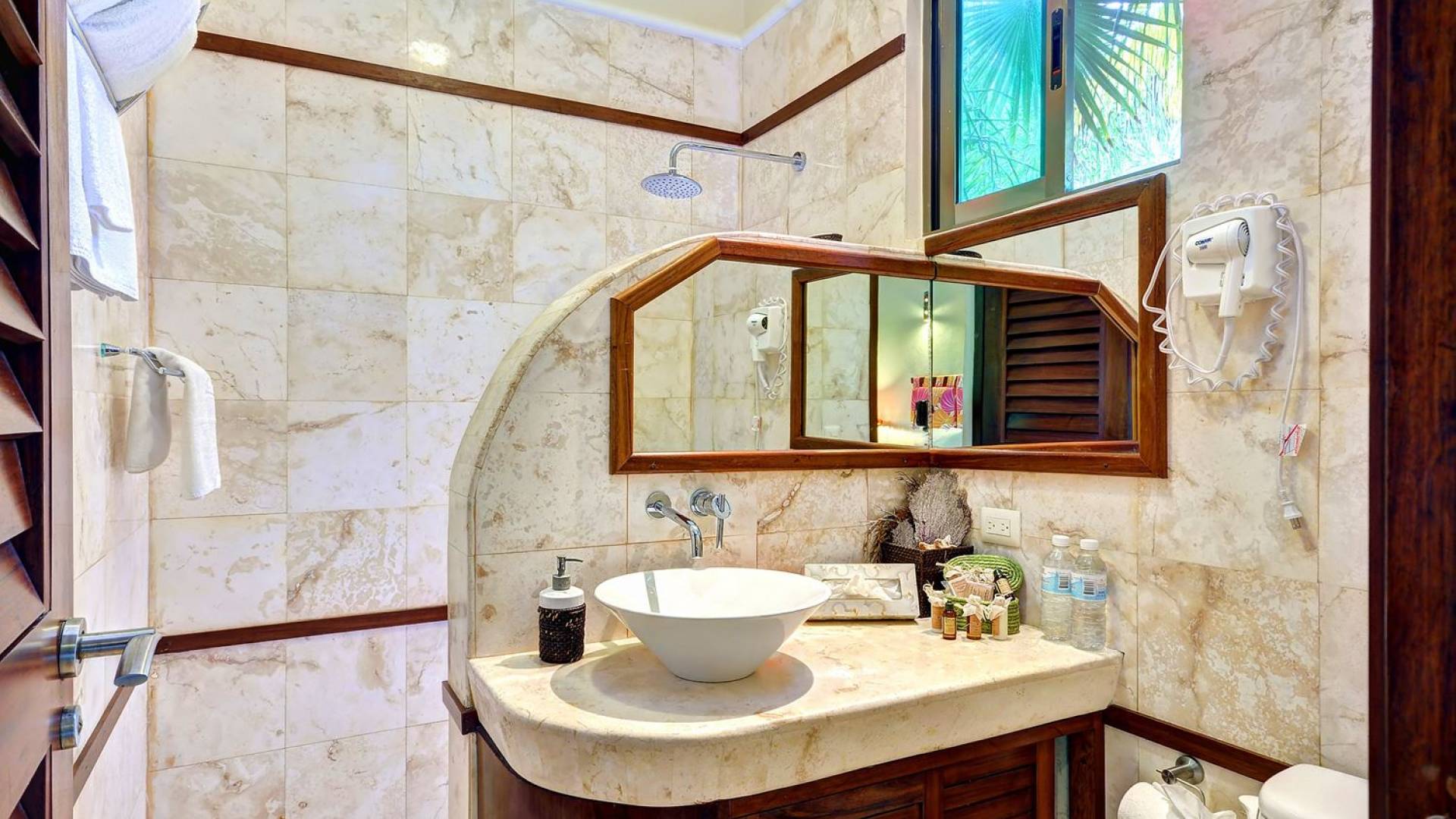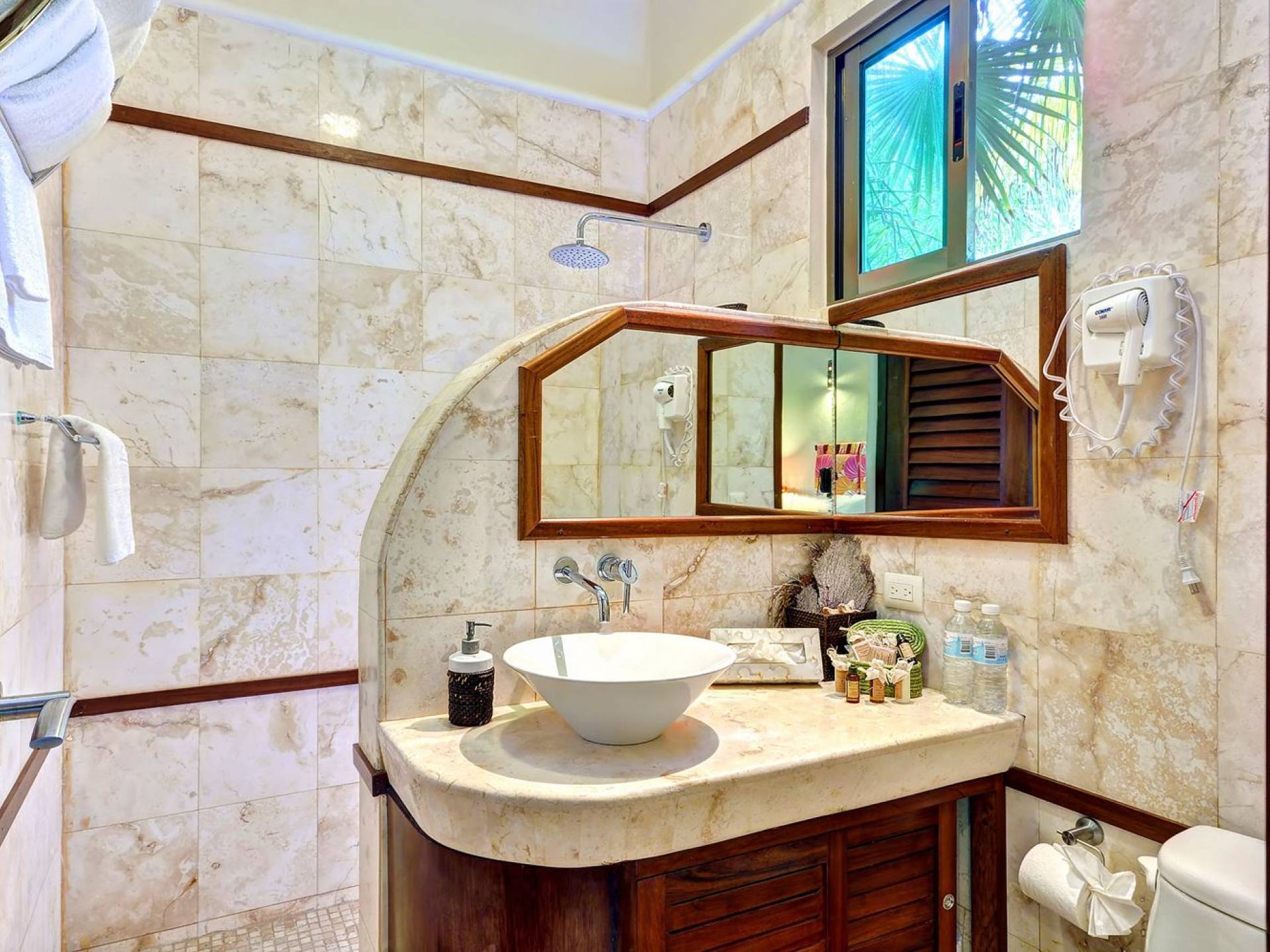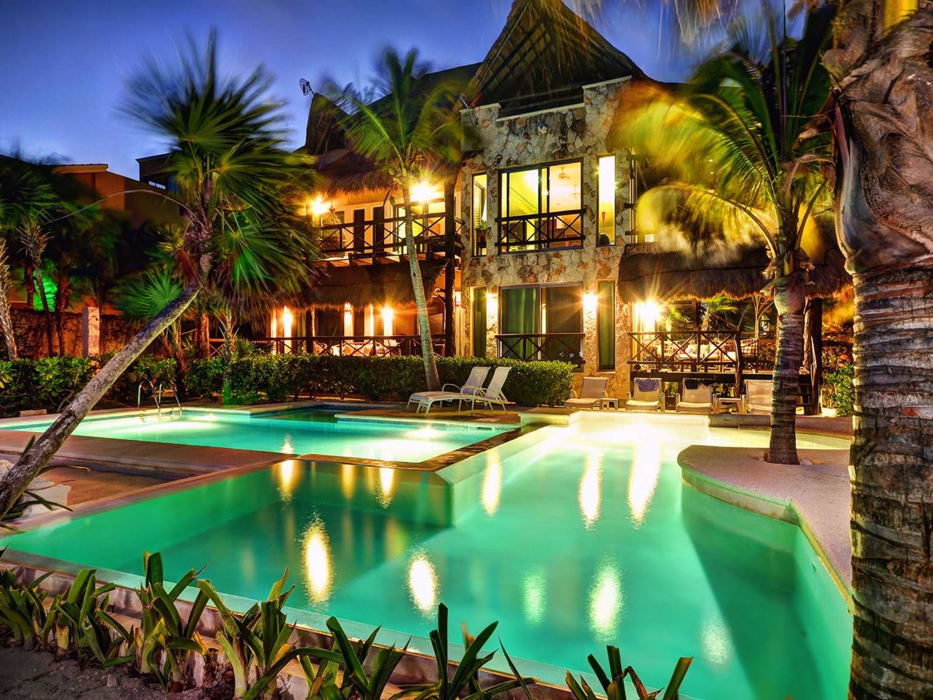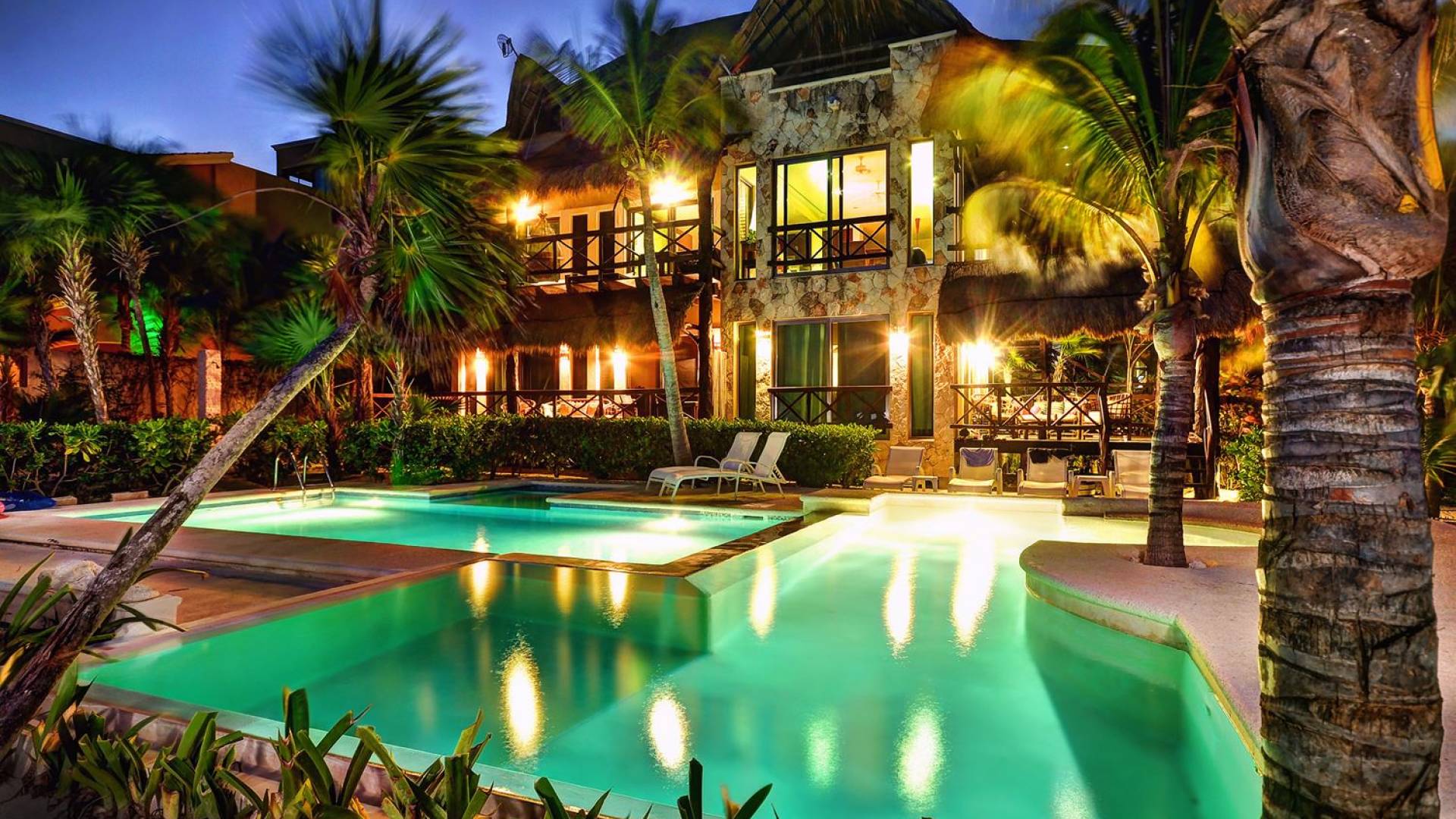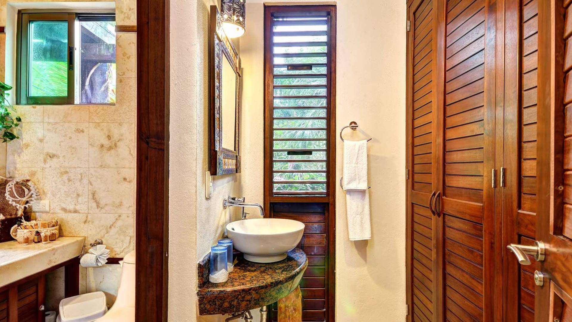 Sombras del Viento is nestled between the lush tropical jungle and Soliman Bay, a beautiful nature reserve. This tropical haven will encourage you to relax while admiring the magnificent colors of the Caribbean Sea. Its blend of natural materials (exotic woods, palapas) with luxurious finishes (marble, granite), graced with the presence of the sea and breathtaking ocean views make Sombras del Viento one of the nicest private villas in Soliman Bay.