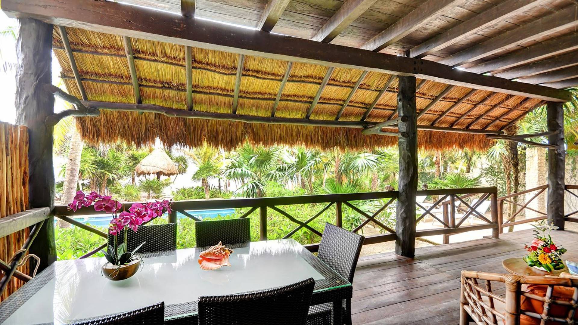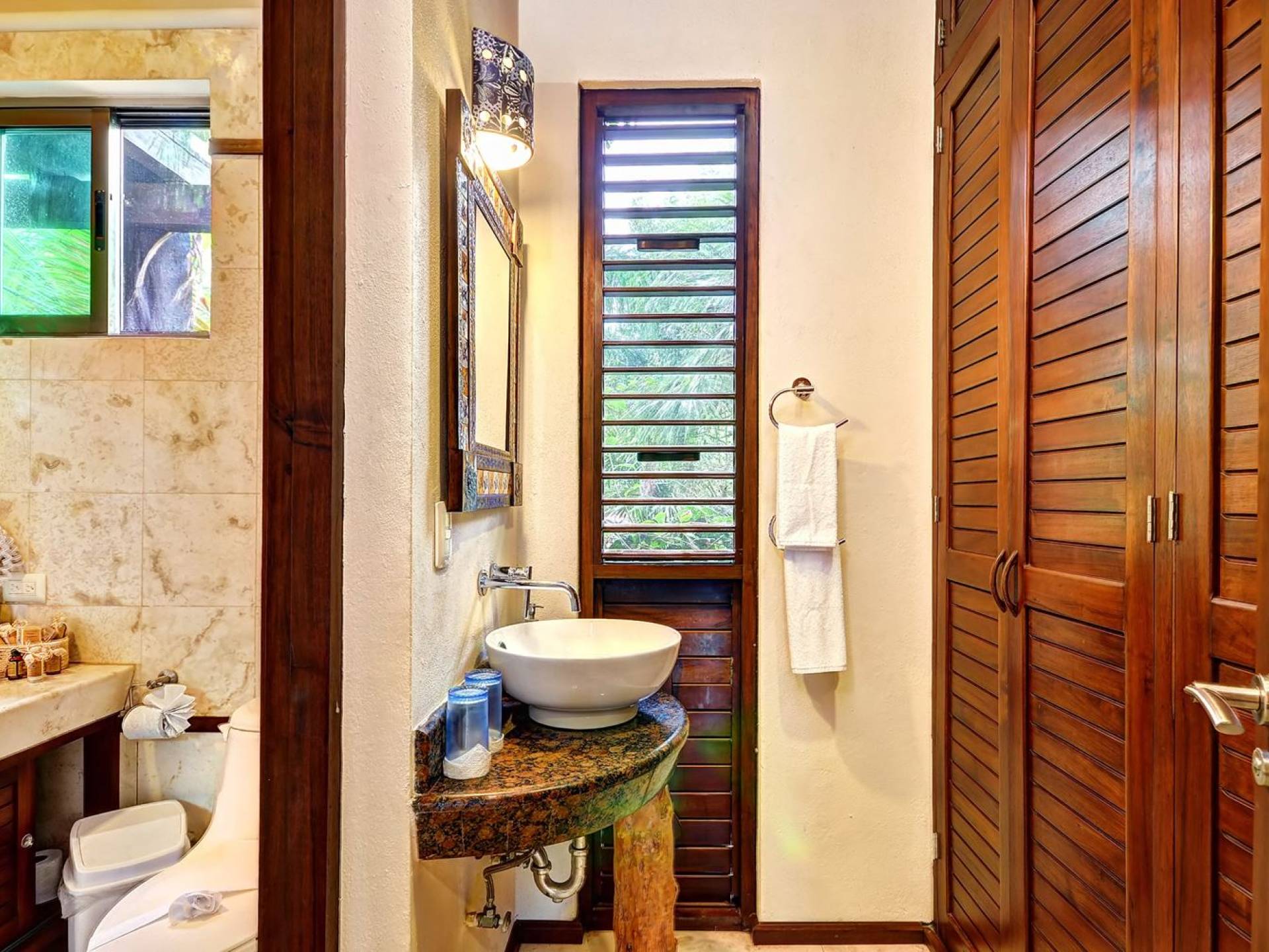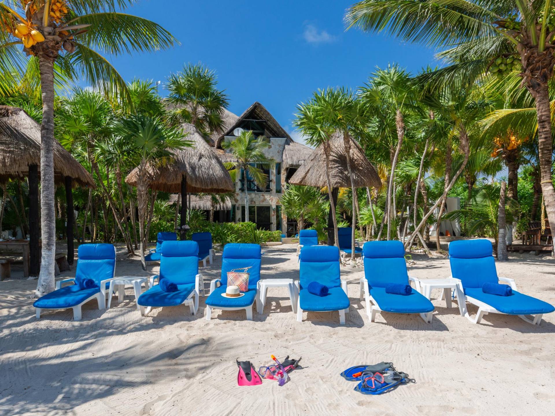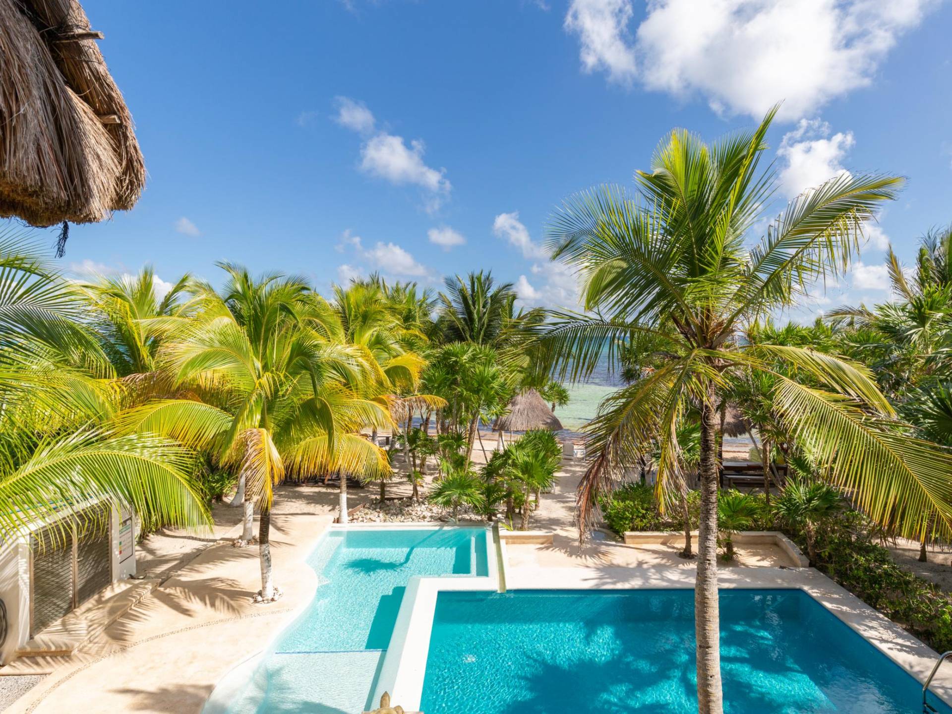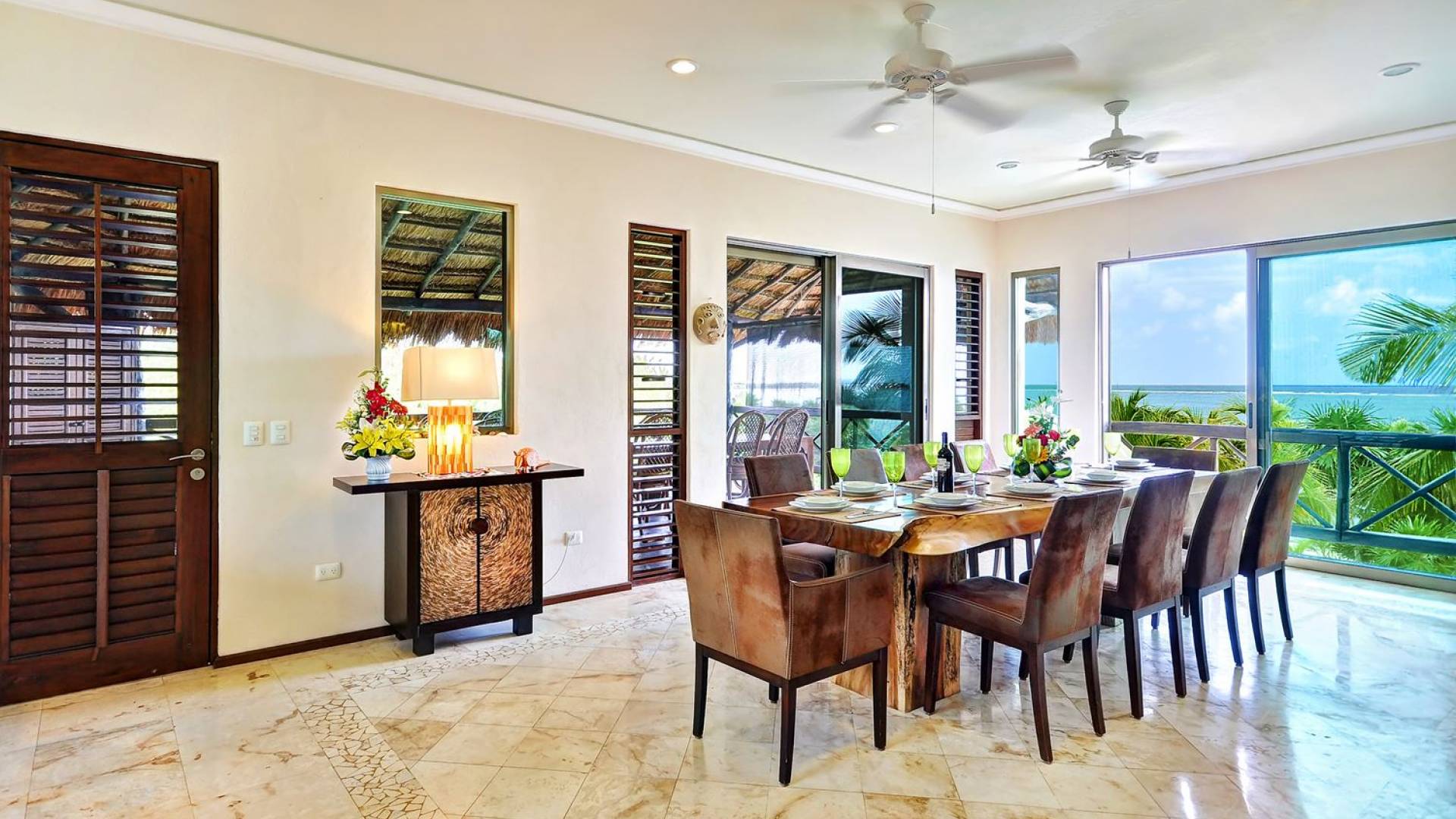 Sombras del Viento is nestled between the lush tropical jungle and Soliman Bay, a beautiful nature reserve. This tropical haven will encourage you to relax while admiring the magnificent colors of the Caribbean Sea. Its blend of natural materials (exotic woods, palapas) with luxurious finishes (marble, granite), graced with the presence of the sea and breathtaking ocean views make Sombras del Viento one of the nicest private villas in Soliman Bay.