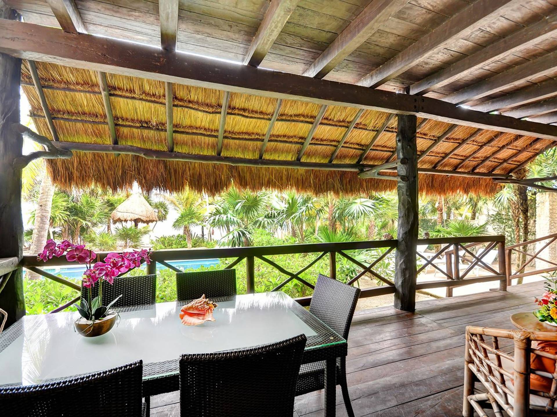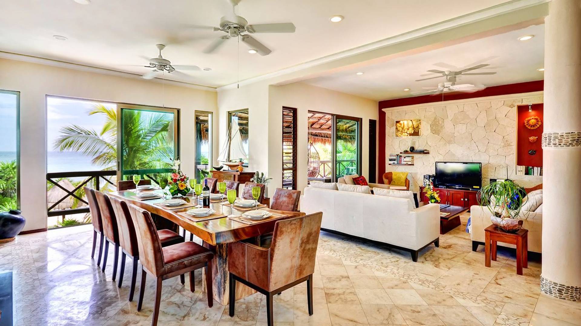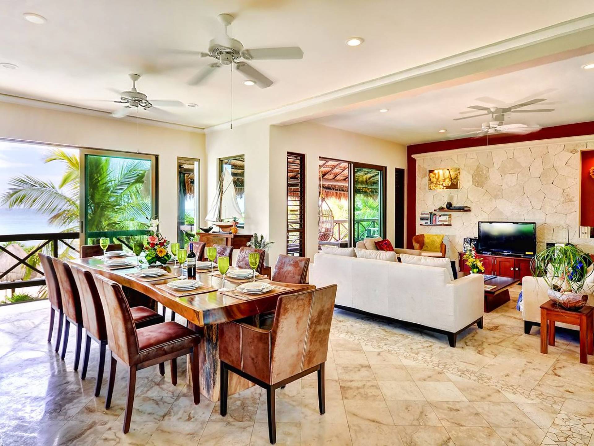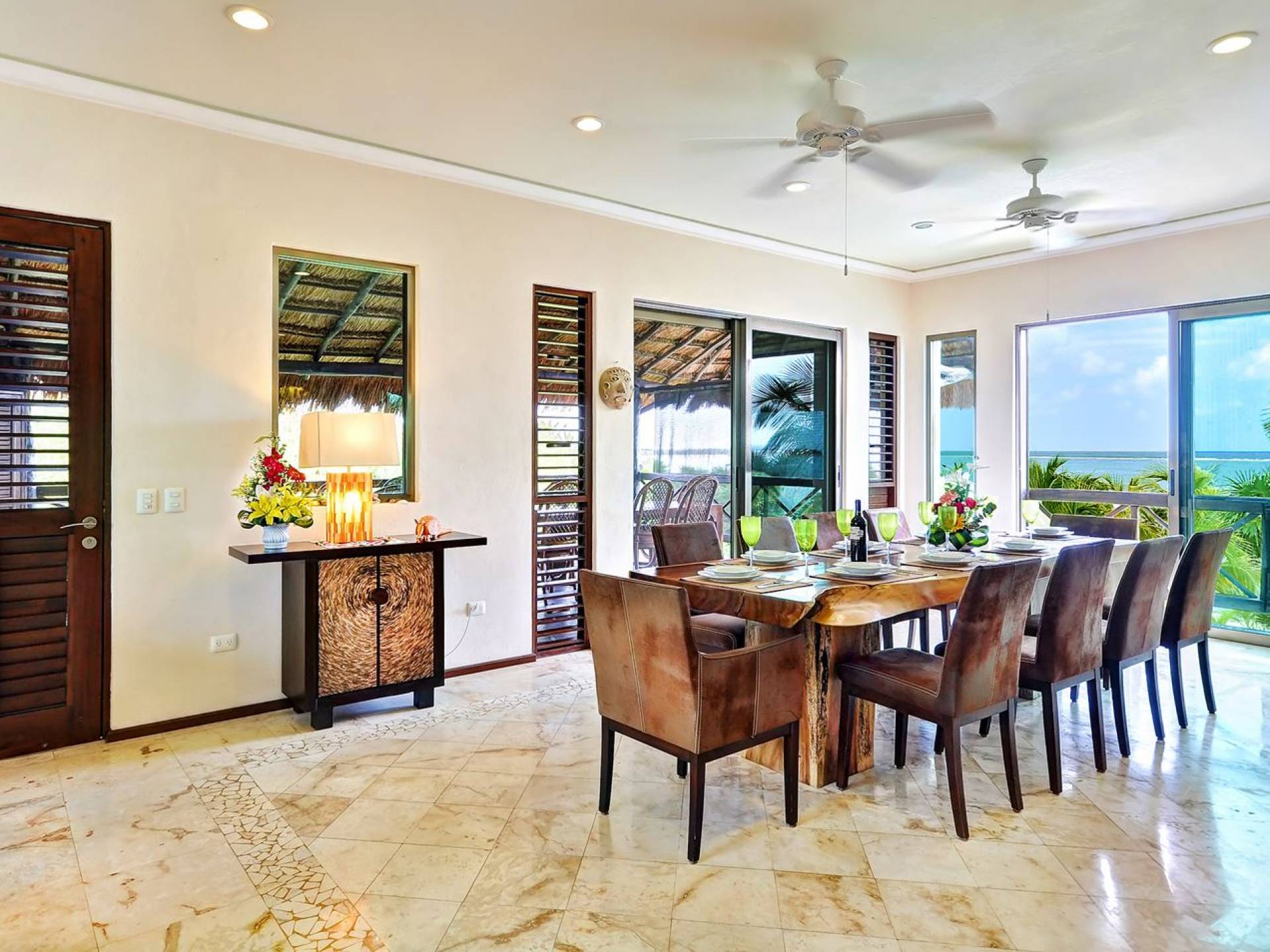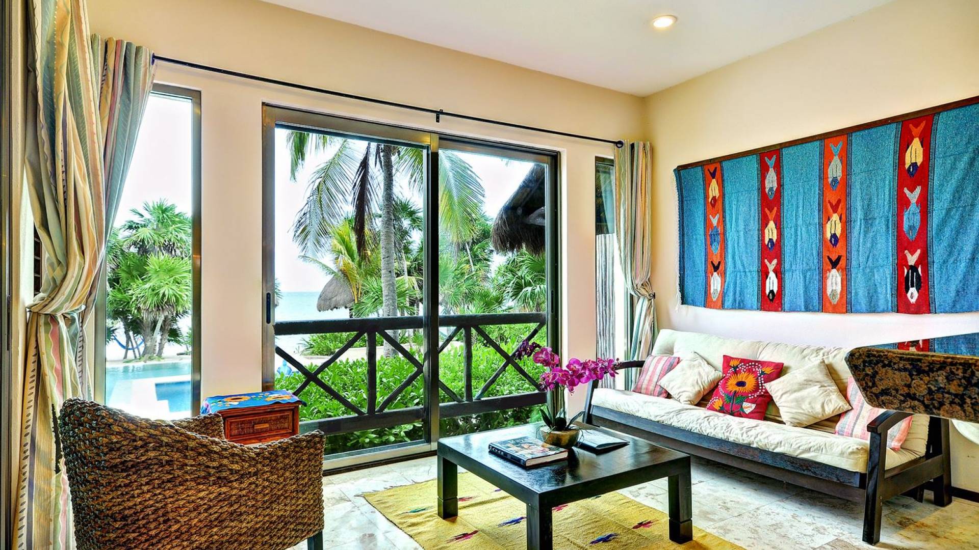 Sombras del Viento is nestled between the lush tropical jungle and Soliman Bay, a beautiful nature reserve. This tropical haven will encourage you to relax while admiring the magnificent colors of the Caribbean Sea. Its blend of natural materials (exotic woods, palapas) with luxurious finishes (marble, granite), graced with the presence of the sea and breathtaking ocean views make Sombras del Viento one of the nicest private villas in Soliman Bay.