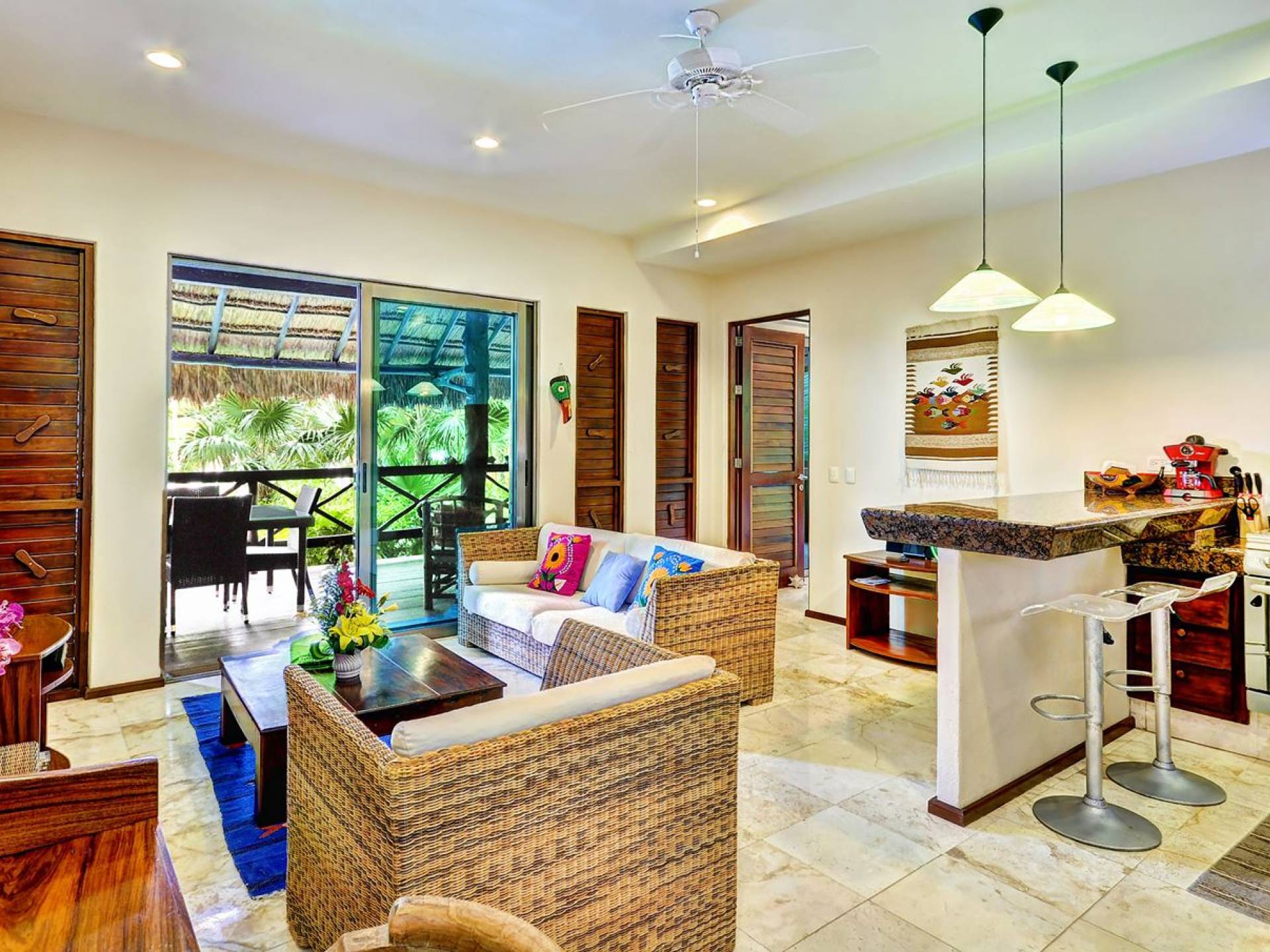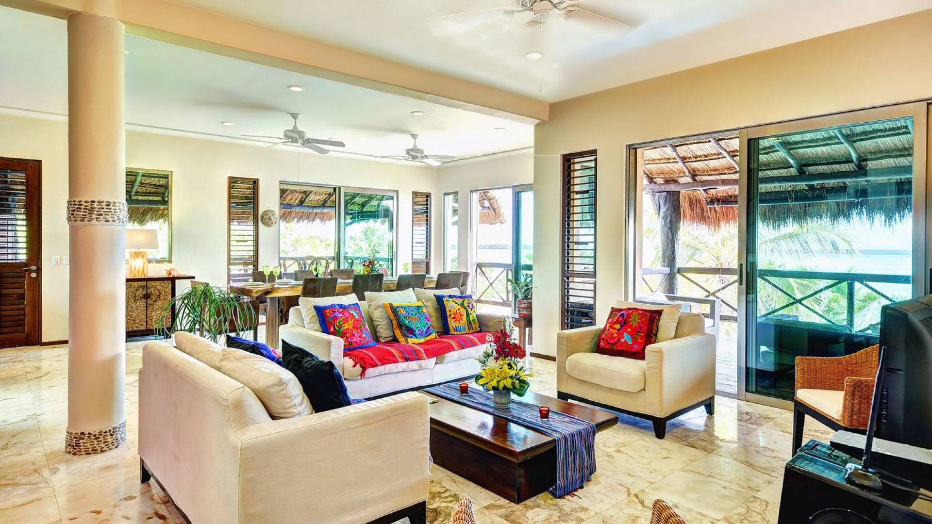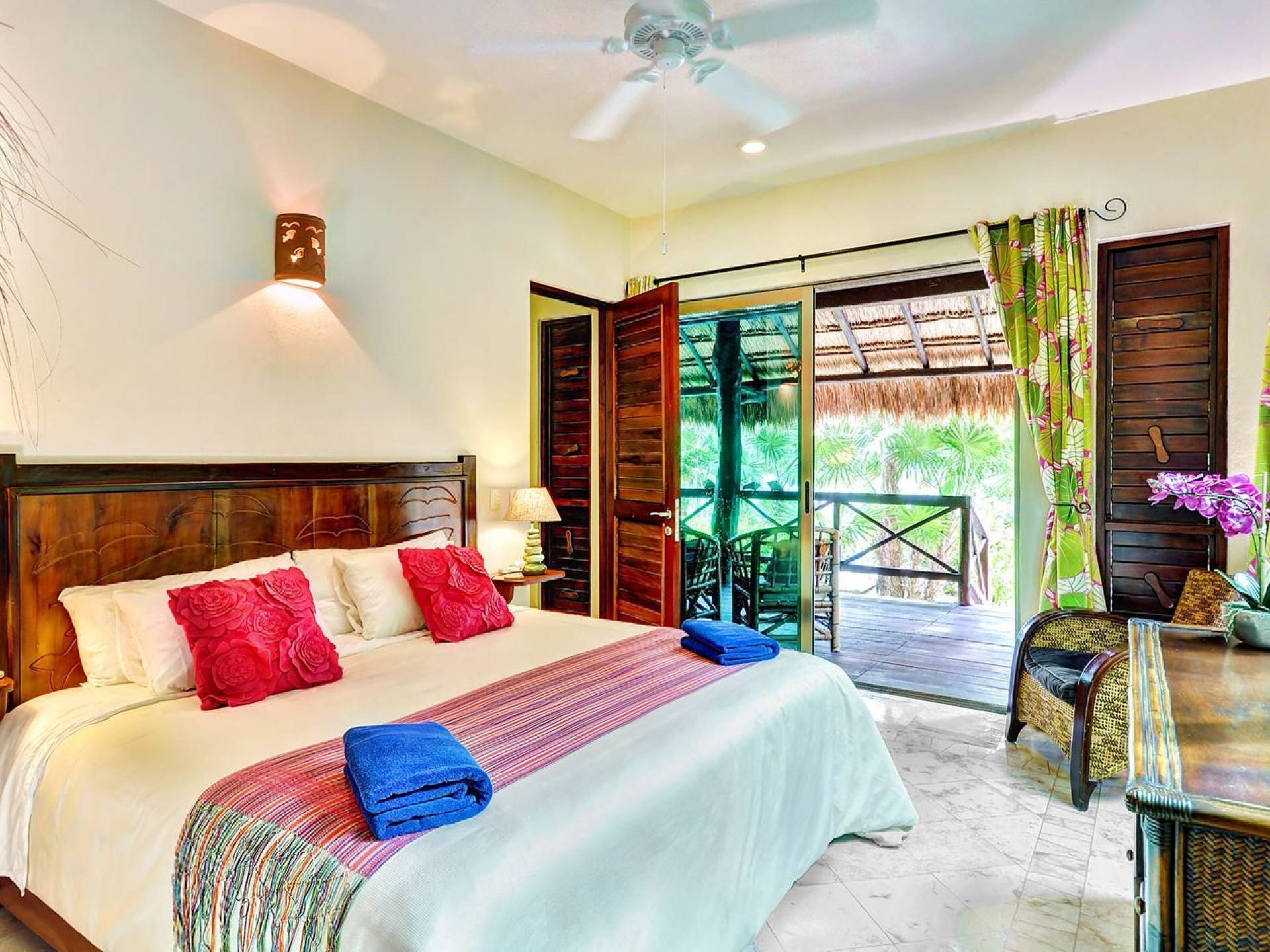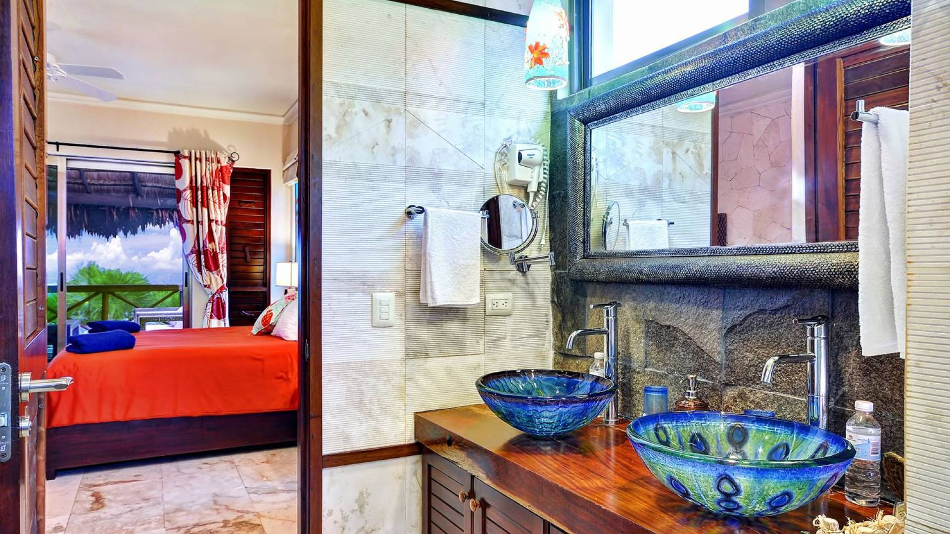 Sombras del Viento is nestled between the lush tropical jungle and Soliman Bay, a beautiful nature reserve. This tropical haven will encourage you to relax while admiring the magnificent colors of the Caribbean Sea. Its blend of natural materials (exotic woods, palapas) with luxurious finishes (marble, granite), graced with the presence of the sea and breathtaking ocean views make Sombras del Viento one of the nicest private villas in Soliman Bay.