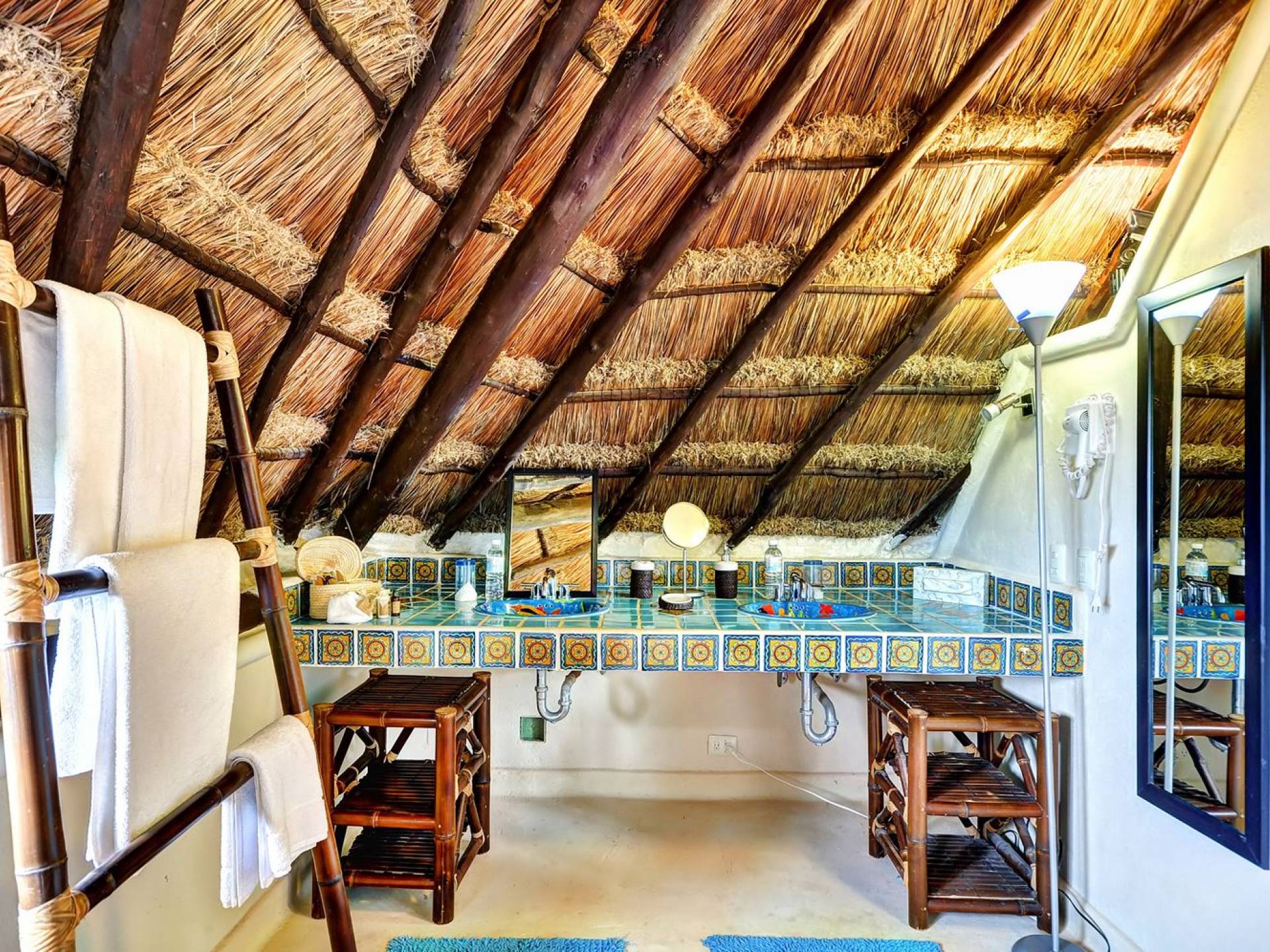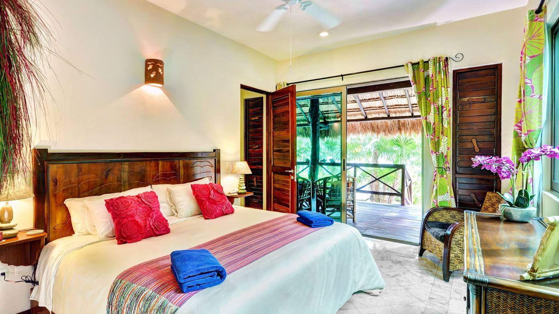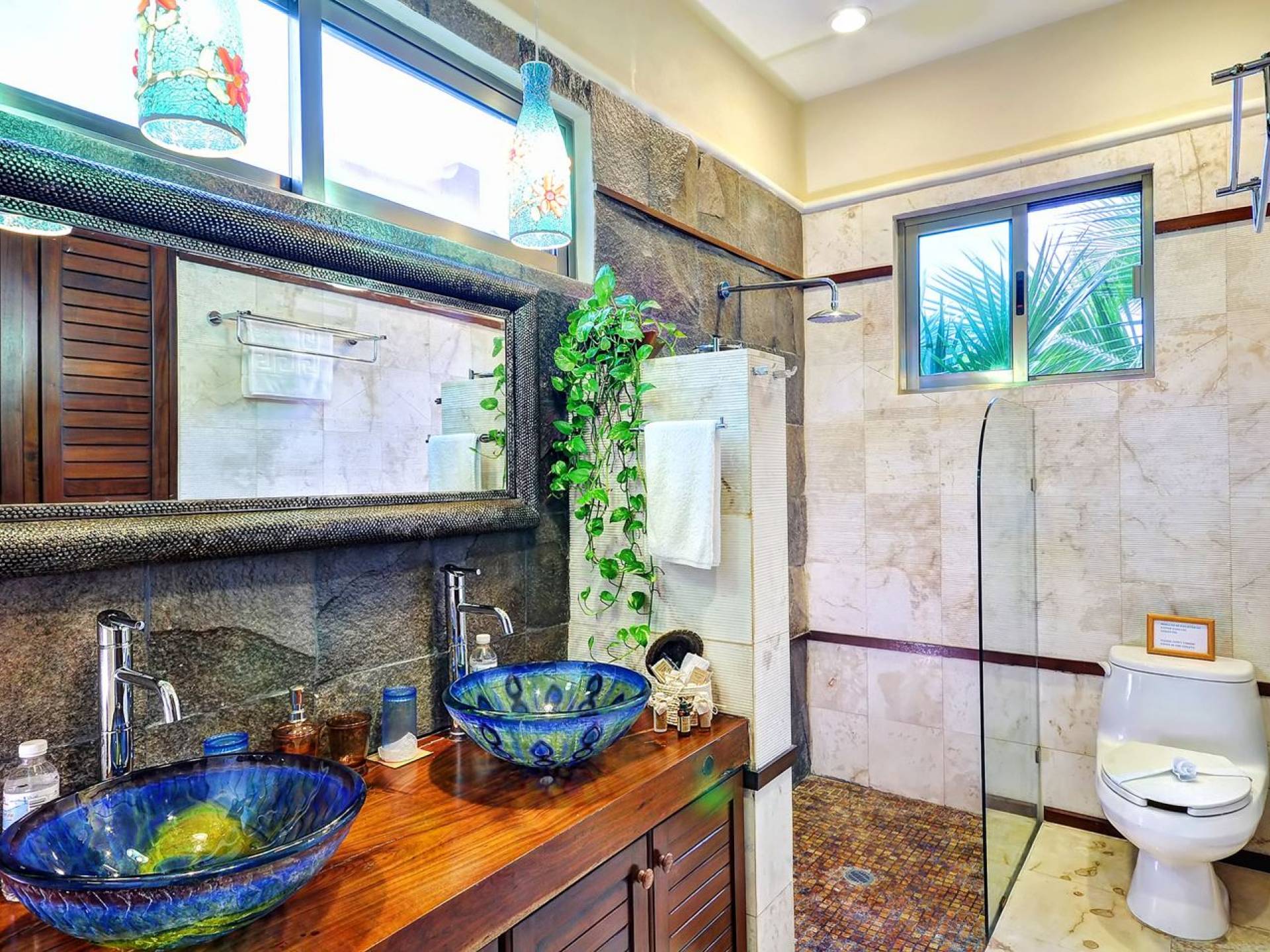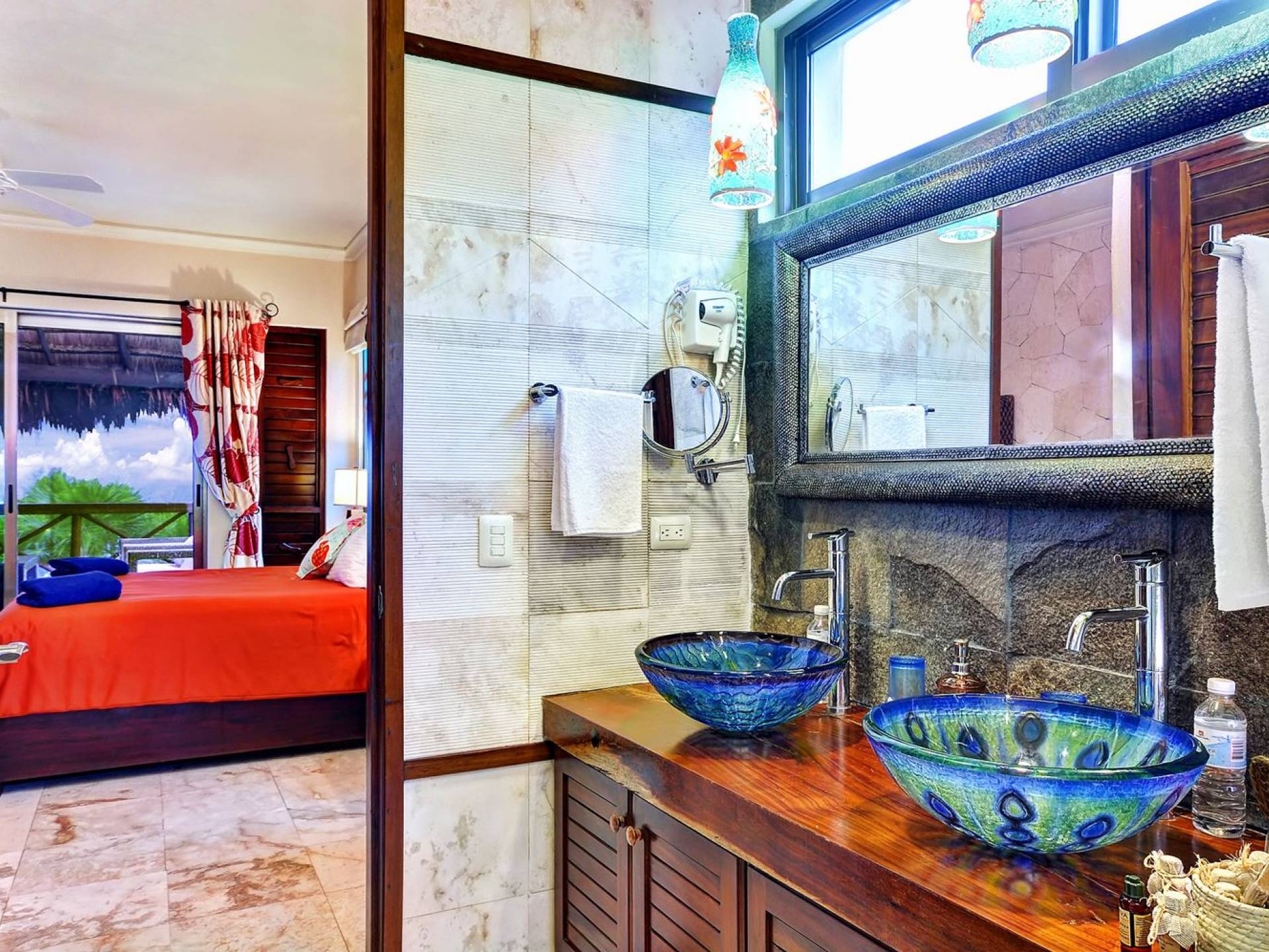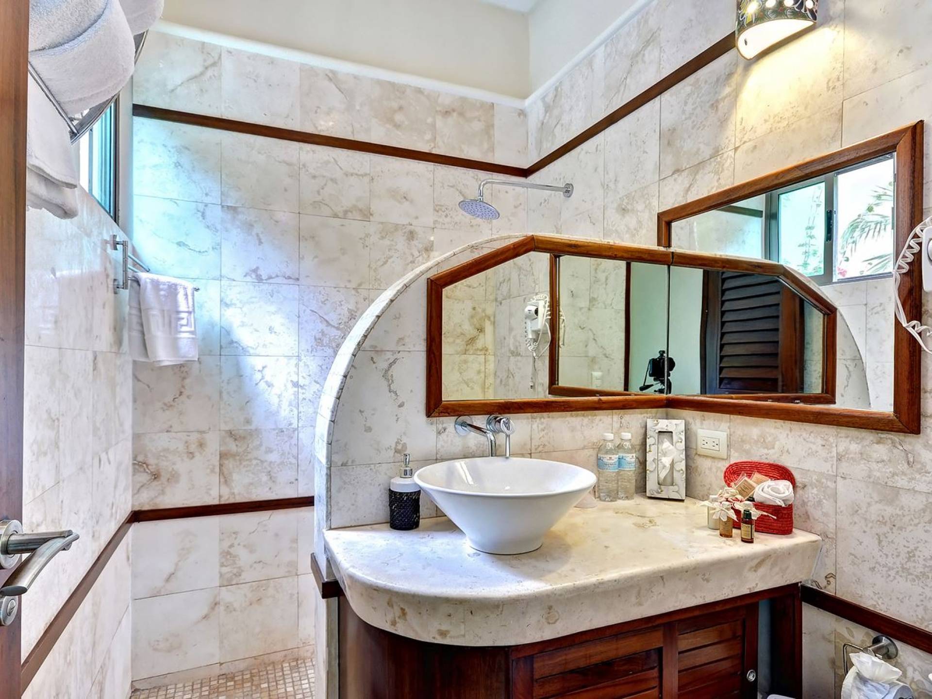 Sombras del Viento is nestled between the lush tropical jungle and Soliman Bay, a beautiful nature reserve. This tropical haven will encourage you to relax while admiring the magnificent colors of the Caribbean Sea. Its blend of natural materials (exotic woods, palapas) with luxurious finishes (marble, granite), graced with the presence of the sea and breathtaking ocean views make Sombras del Viento one of the nicest private villas in Soliman Bay.