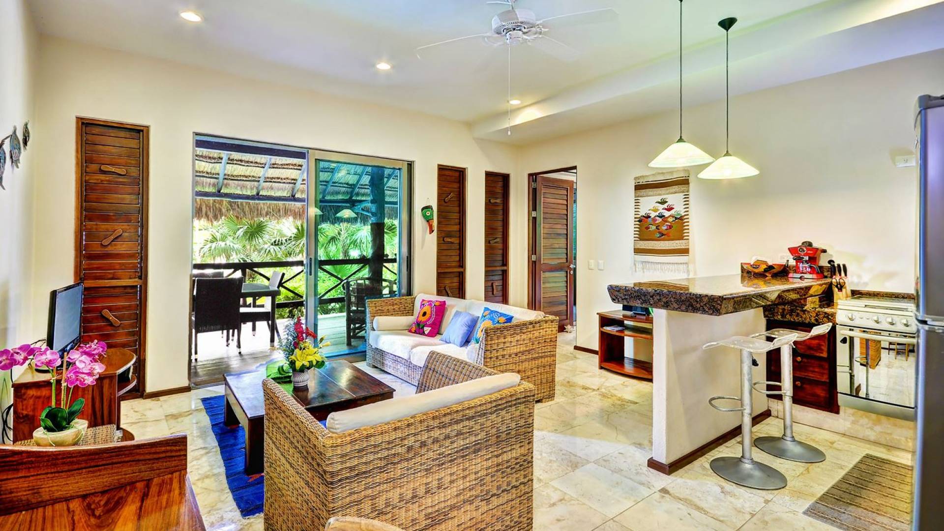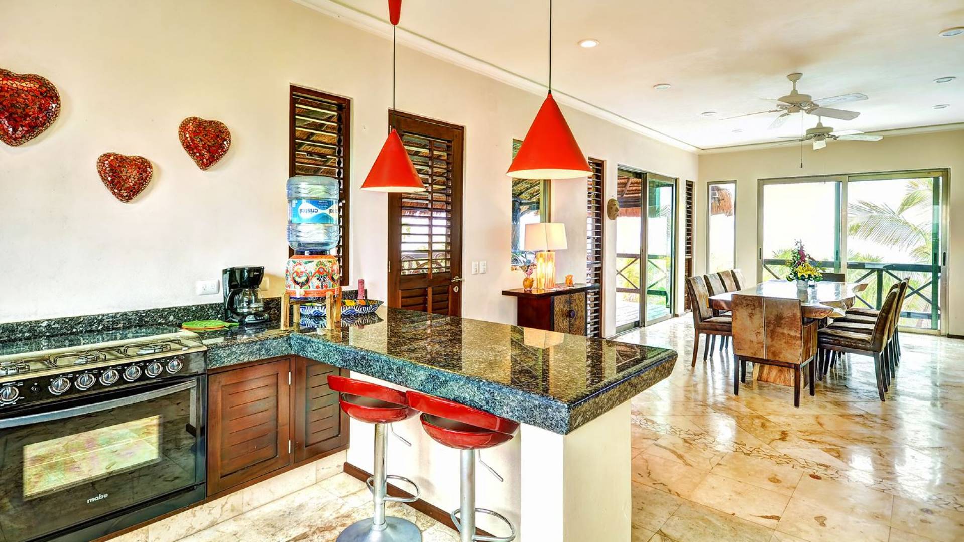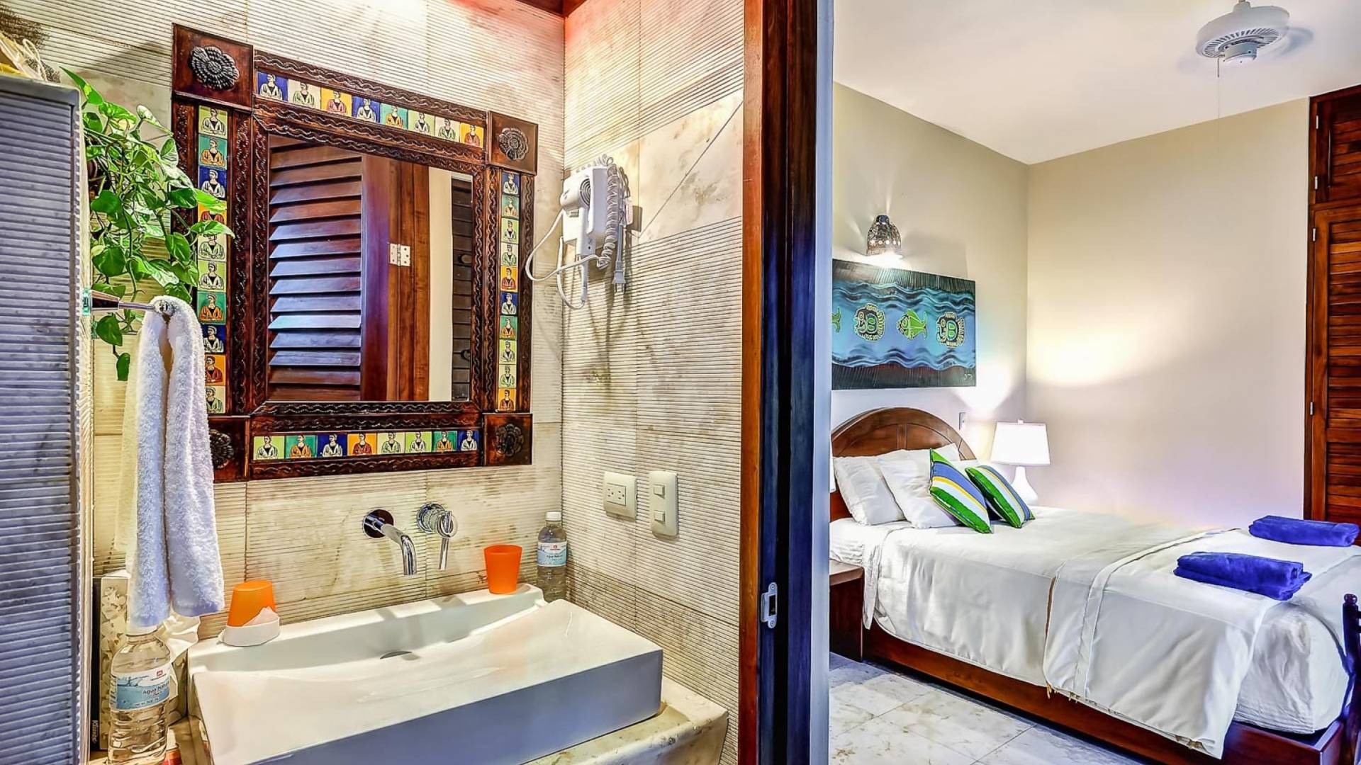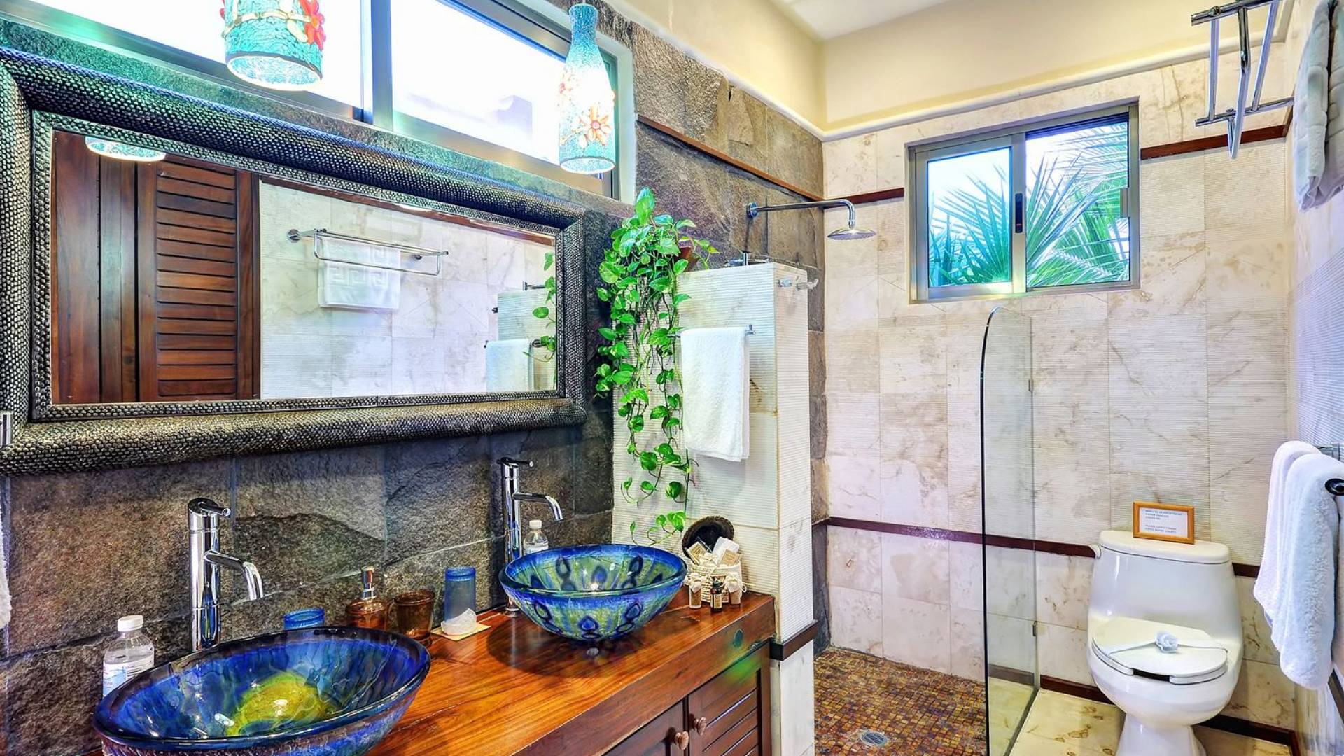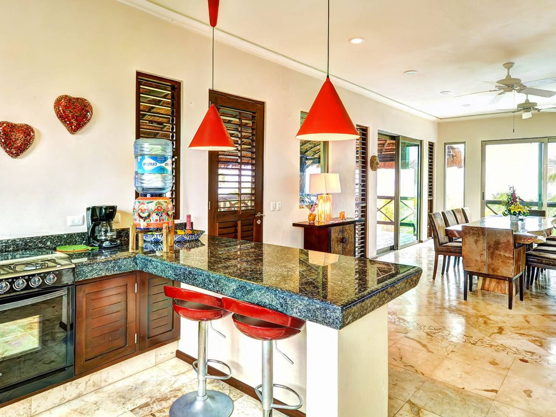 Sombras del Viento is nestled between the lush tropical jungle and Soliman Bay, a beautiful nature reserve. This tropical haven will encourage you to relax while admiring the magnificent colors of the Caribbean Sea. Its blend of natural materials (exotic woods, palapas) with luxurious finishes (marble, granite), graced with the presence of the sea and breathtaking ocean views make Sombras del Viento one of the nicest private villas in Soliman Bay.