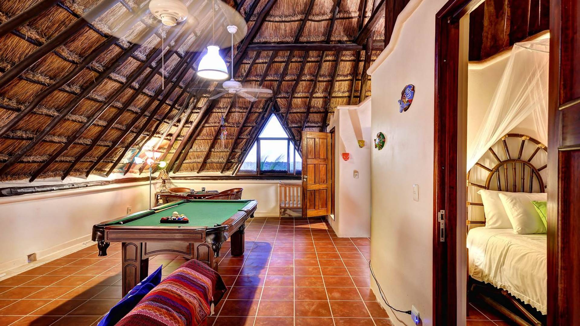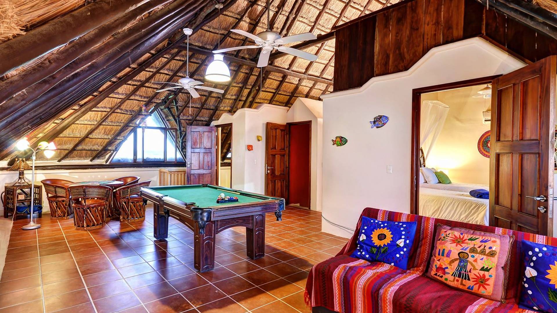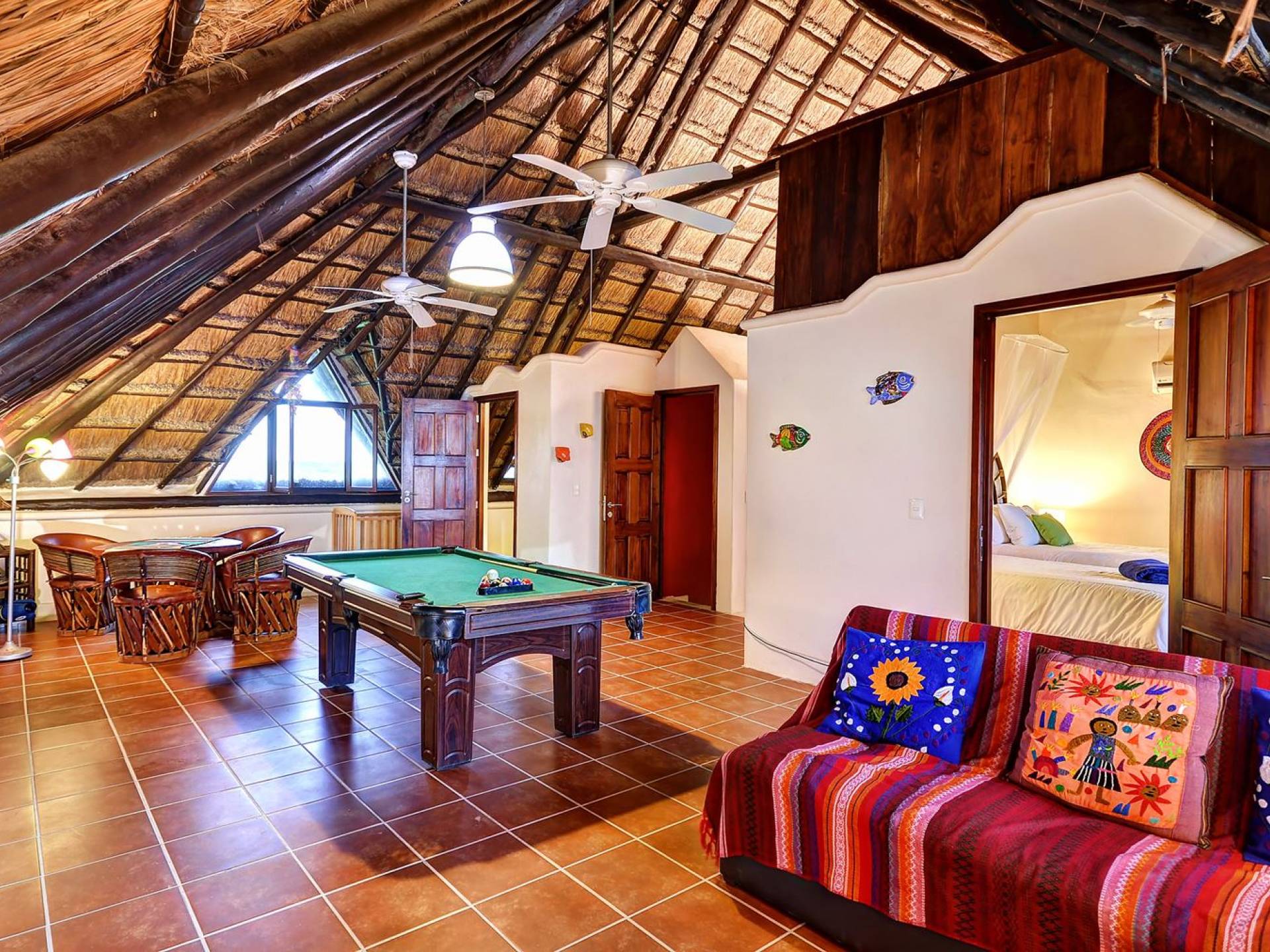 Last but not least, Sombras del Viento features a final ocean view room with 2 single beds with shared bathroom. The rest of the space has been converted into a game room with a pool table, chess, and darts.