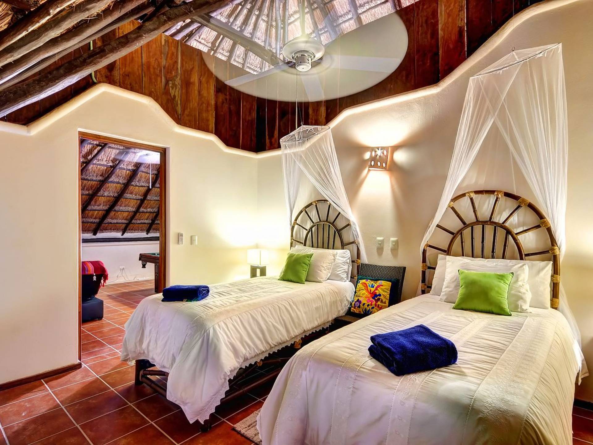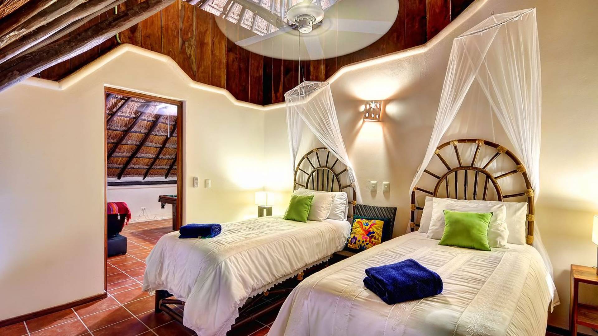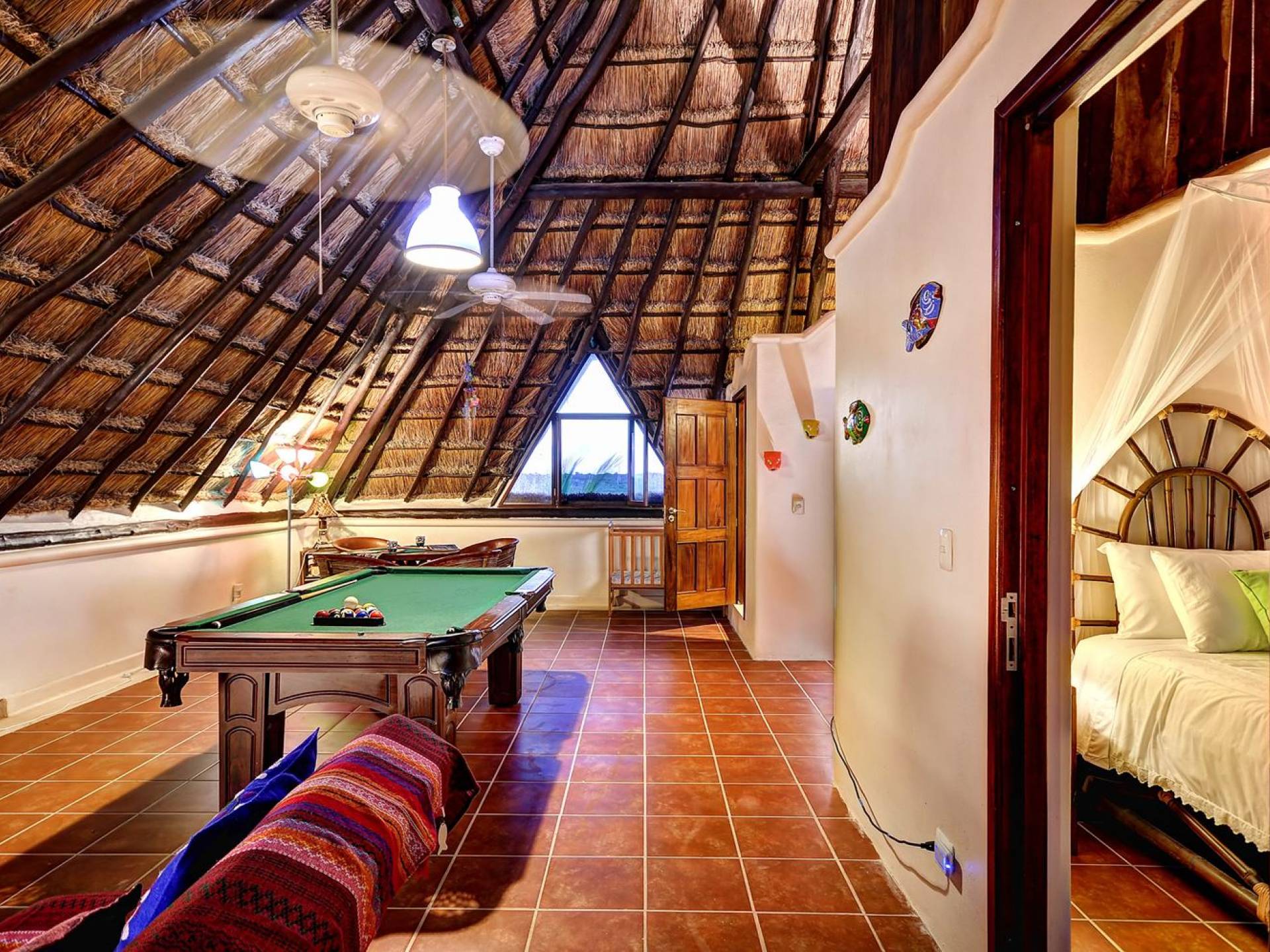 Last but not least, Sombras del Viento features a final ocean view room with 2 single beds with shared bathroom. The rest of the space has been converted into a game room with a pool table, chess, and darts.