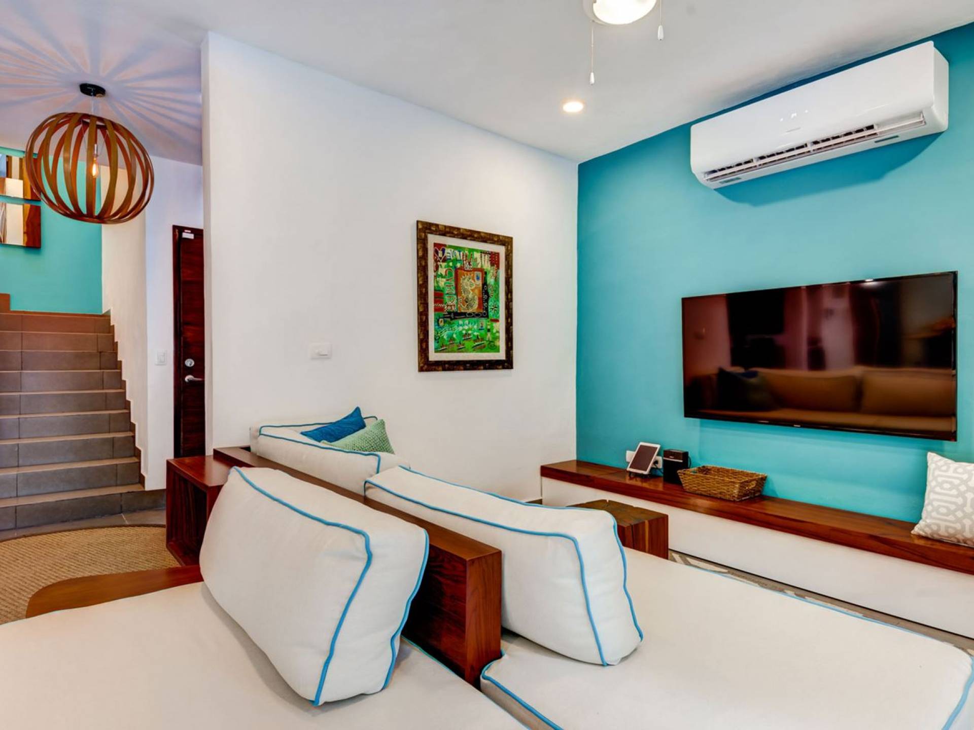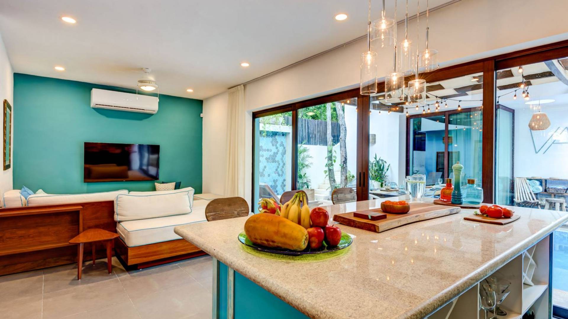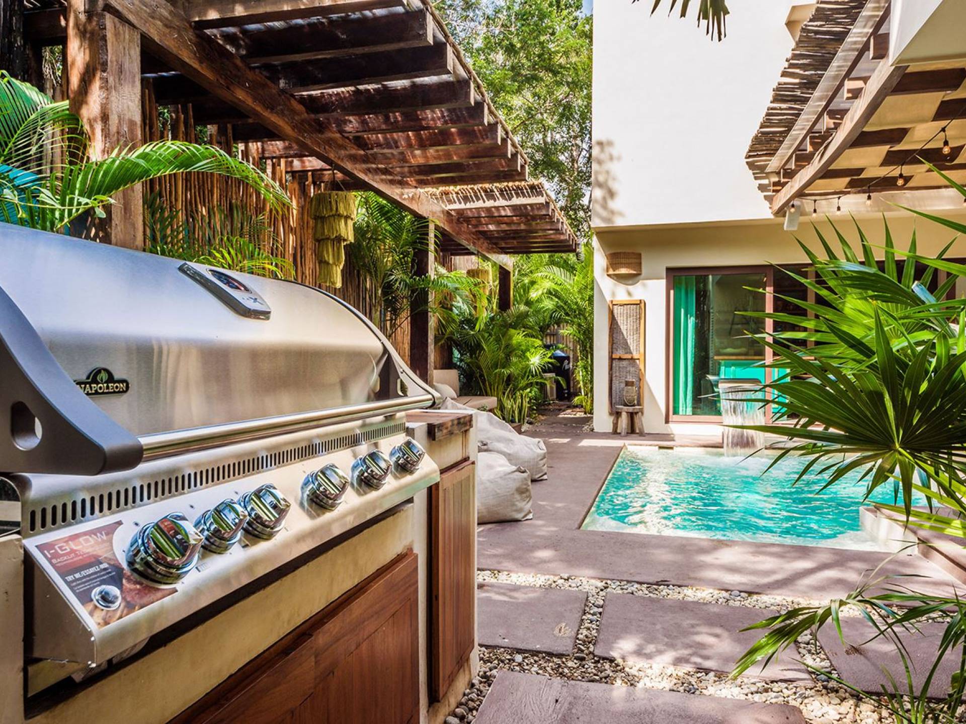 Villa Amalfi Tulum is a luxury villa rental with 4 bedrooms and private pool. This gorgeous villa is characterized by clean lines, open spaces, and huge windows to give the feeling of spacious outdoor living in harmony with a tropical setting. The smart design is energy efficient and in perfect harmony with its surroundings while packed with modern amenities such as: air-conditioning, modern lighting solutions, water heater, water pressurized system, granite counter-tops and beautifully designed common areas with all the comforts of home.