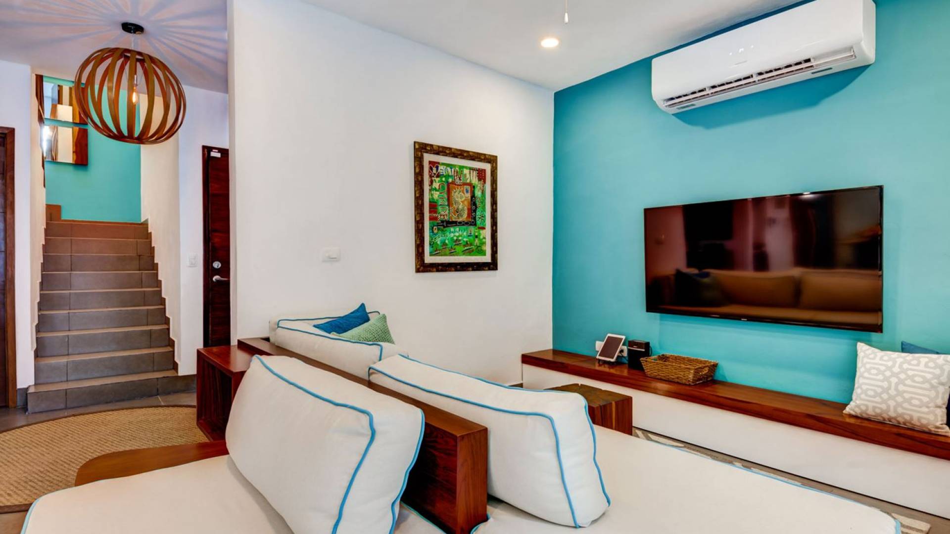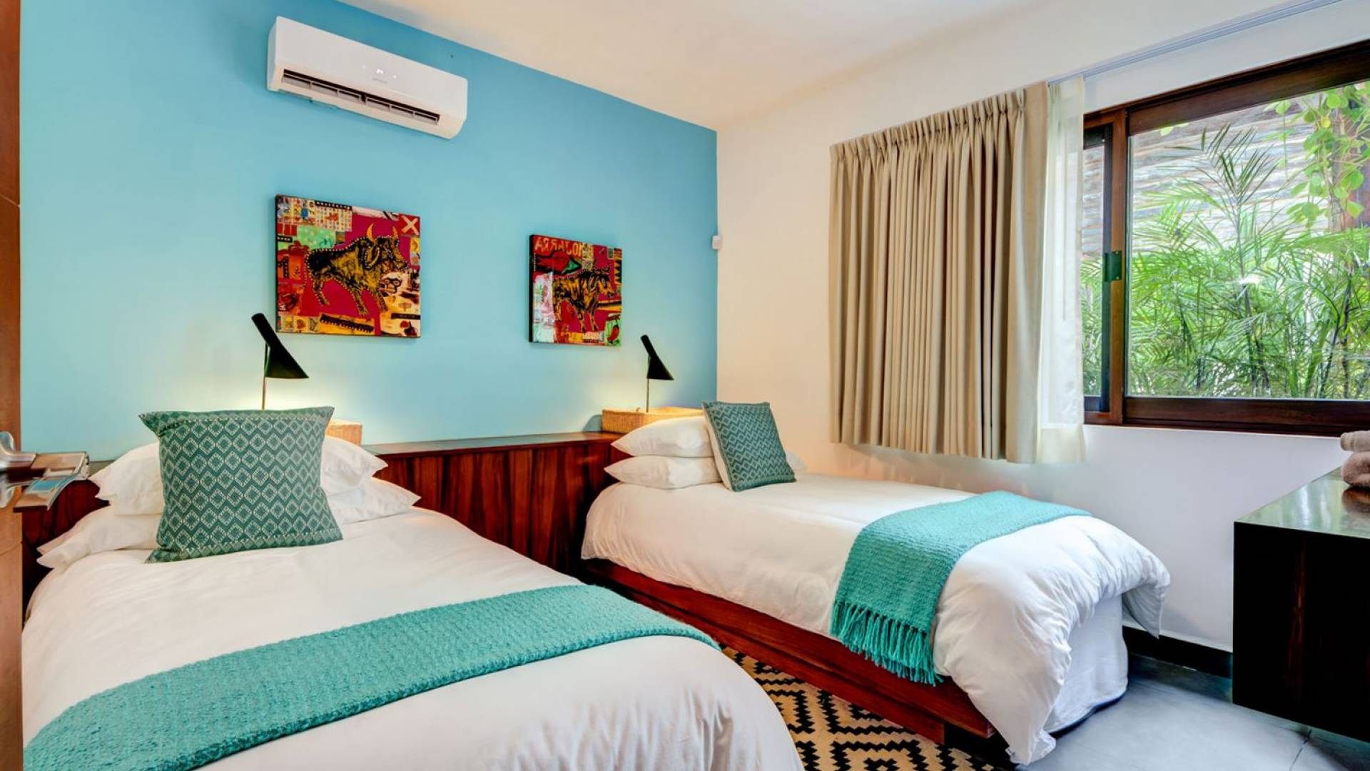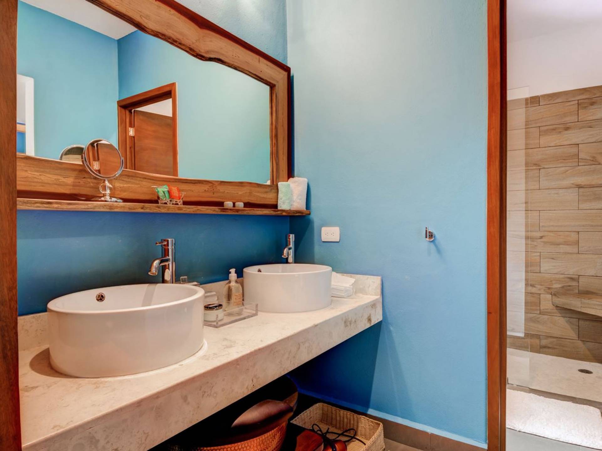 Villa Amalfi Tulum is a luxury villa rental with 4 bedrooms and private pool. This gorgeous villa is characterized by clean lines, open spaces, and huge windows to give the feeling of spacious outdoor living in harmony with a tropical setting. The smart design is energy efficient and in perfect harmony with its surroundings while packed with modern amenities such as: air-conditioning, modern lighting solutions, water heater, water pressurized system, granite counter-tops and beautifully designed common areas with all the comforts of home.