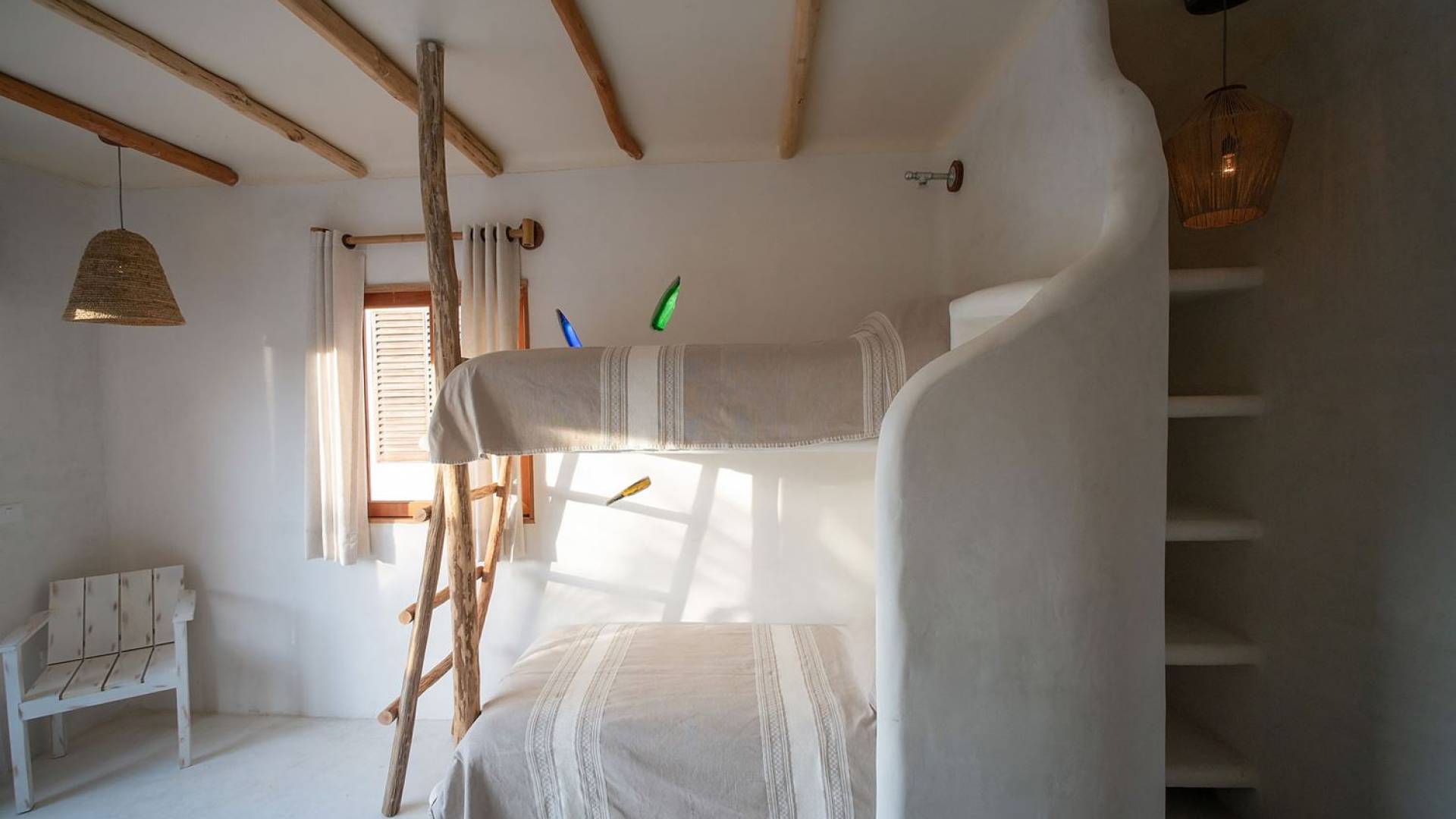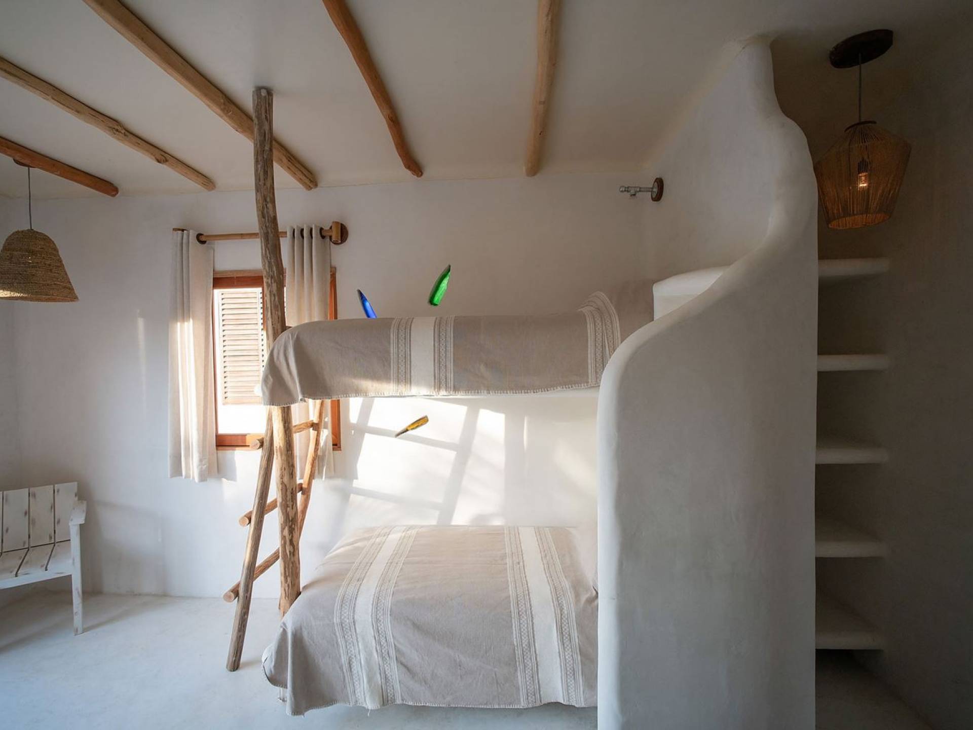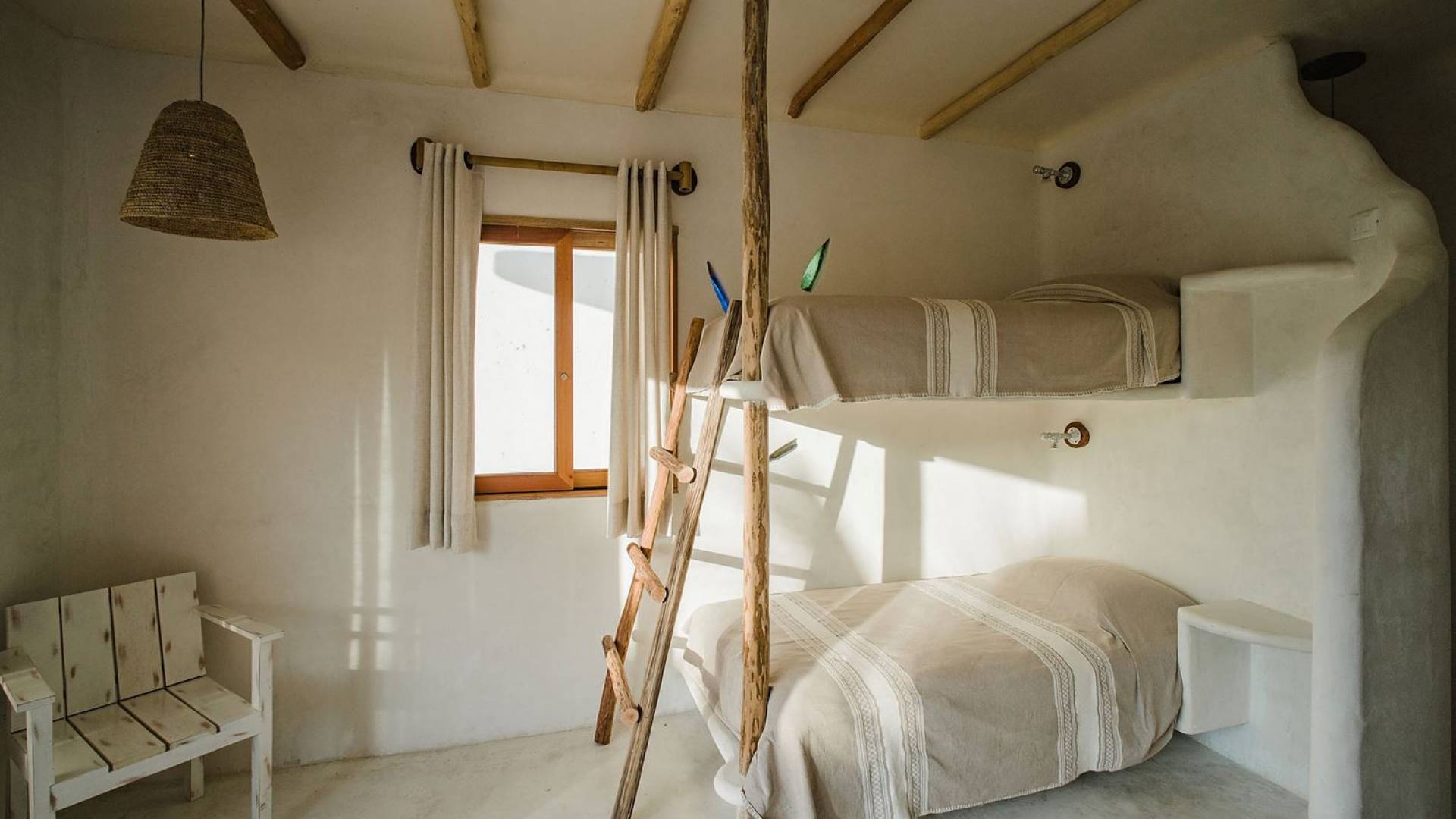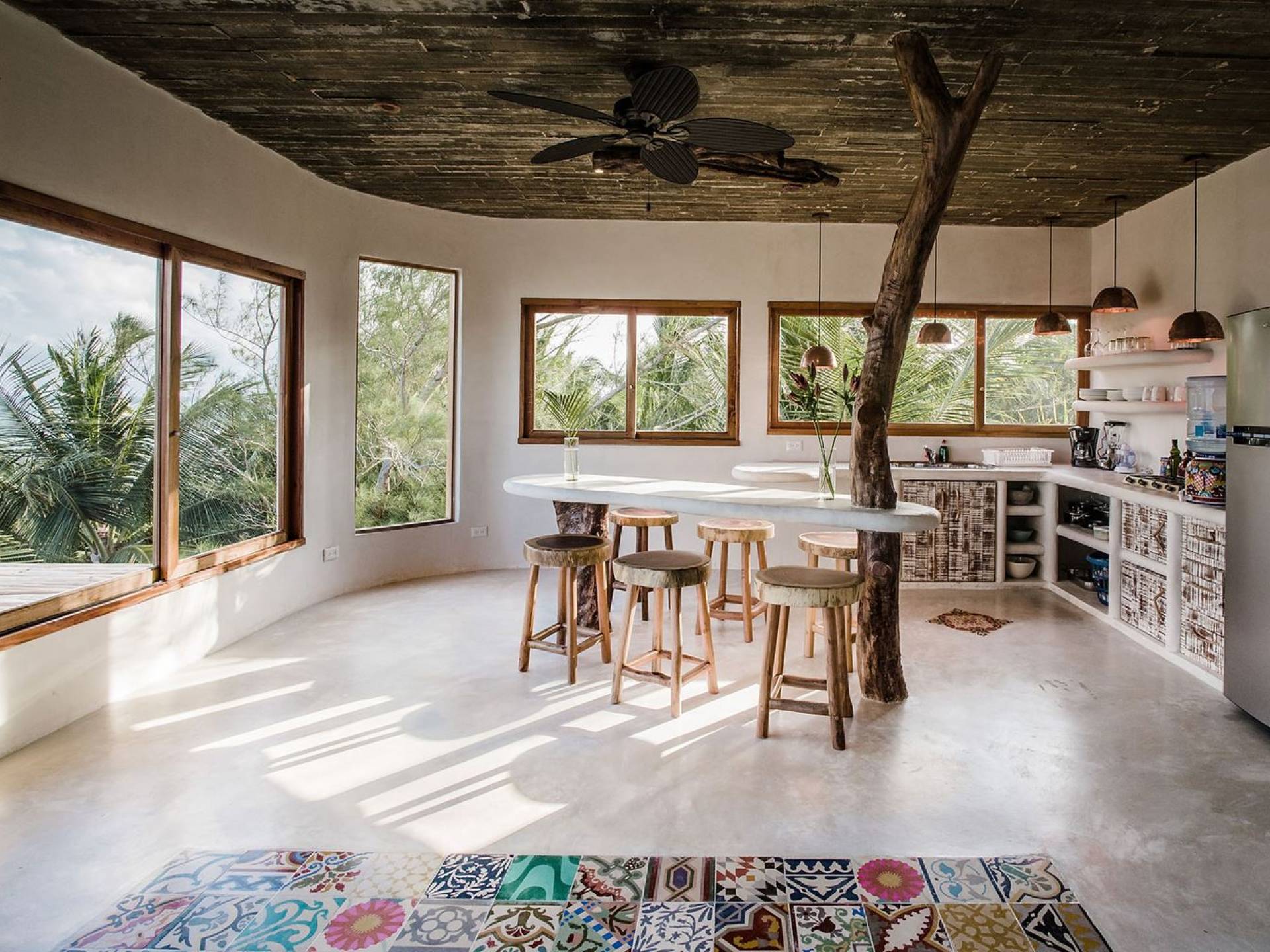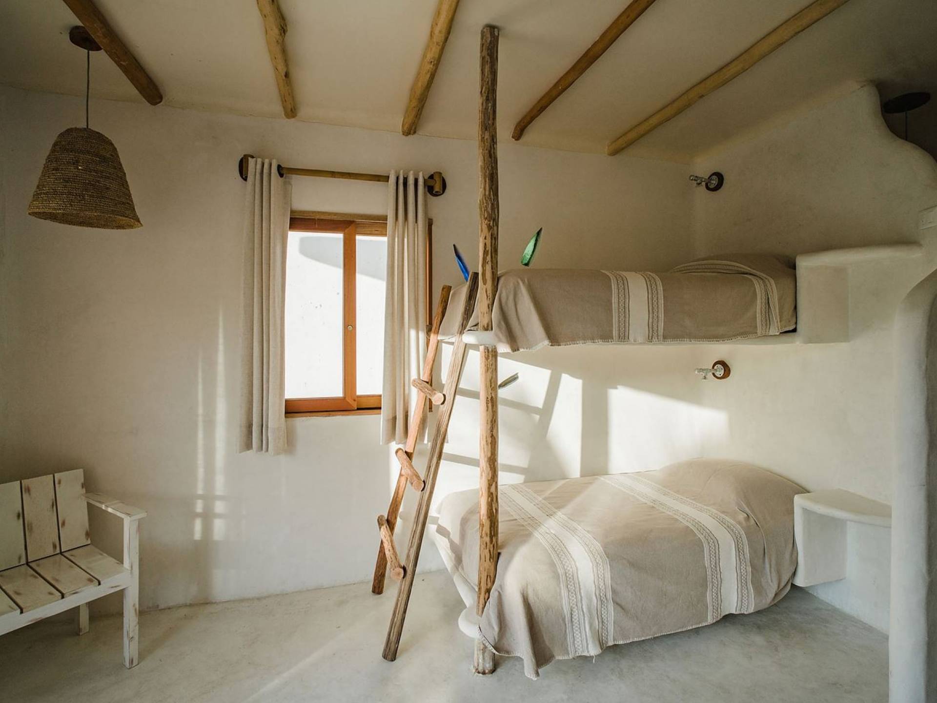 Carefully designed to connect with the breathtaking beauty of Tulum from each room. Natural elements and artistic touches throughout the house reflect the lovely laid-back vibe and feel of Tulum. Prepare meals in the kitchen and enjoy the sounds of the sea. The layout provides a home suitable for two couples or a family. The master bedroom has a king-size bed and ensuite bathroom. The second bedroom has a queen bed and two singles with an ensuite bathroom. Sleeps 4-6. Both bedrooms overlook the pool. This home is accessed by a private entrance via an exterior staircase.