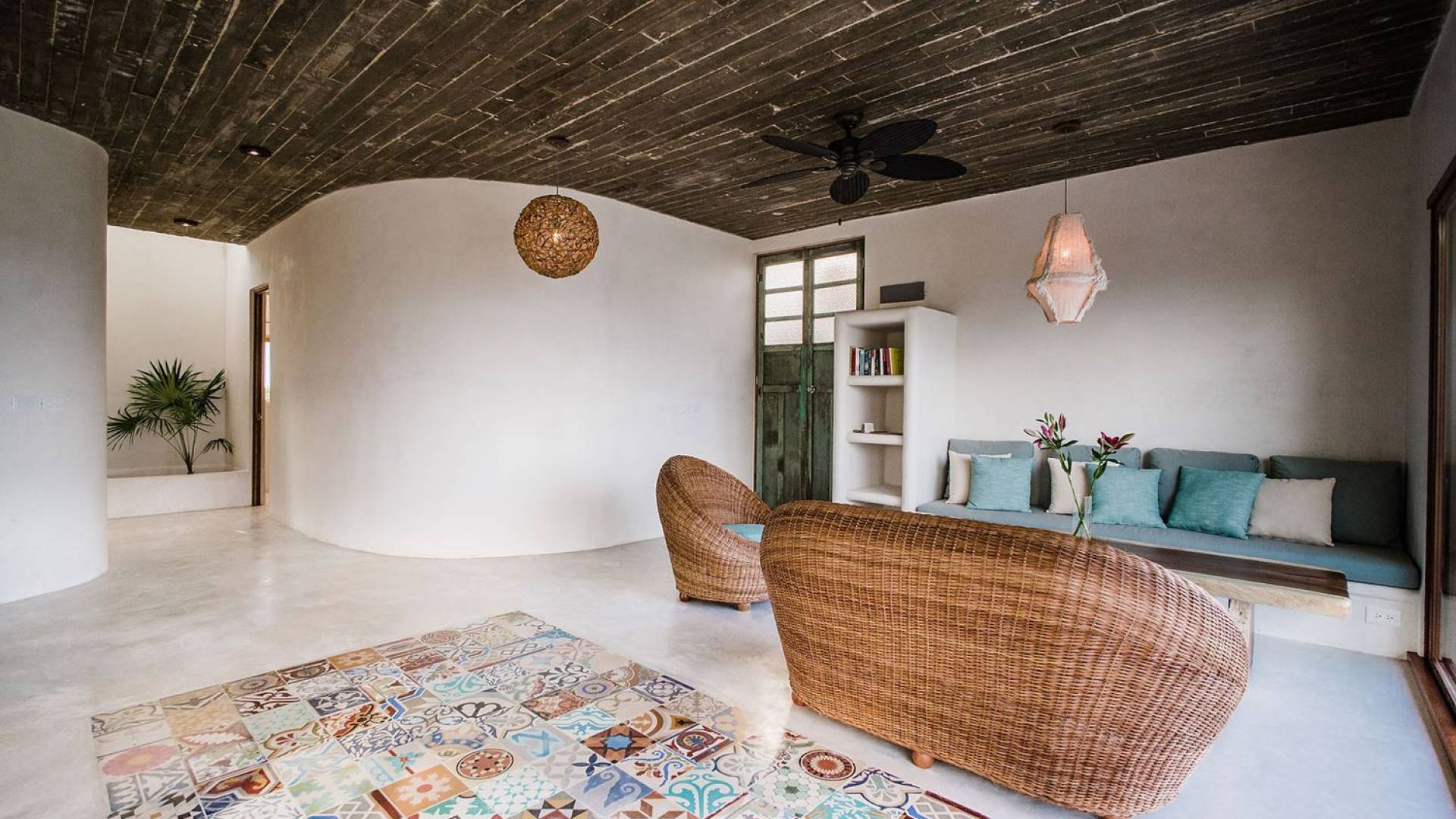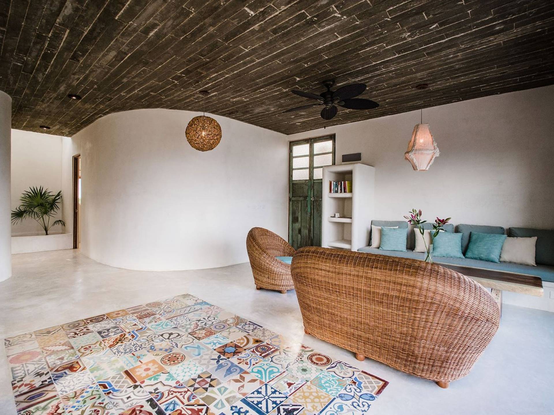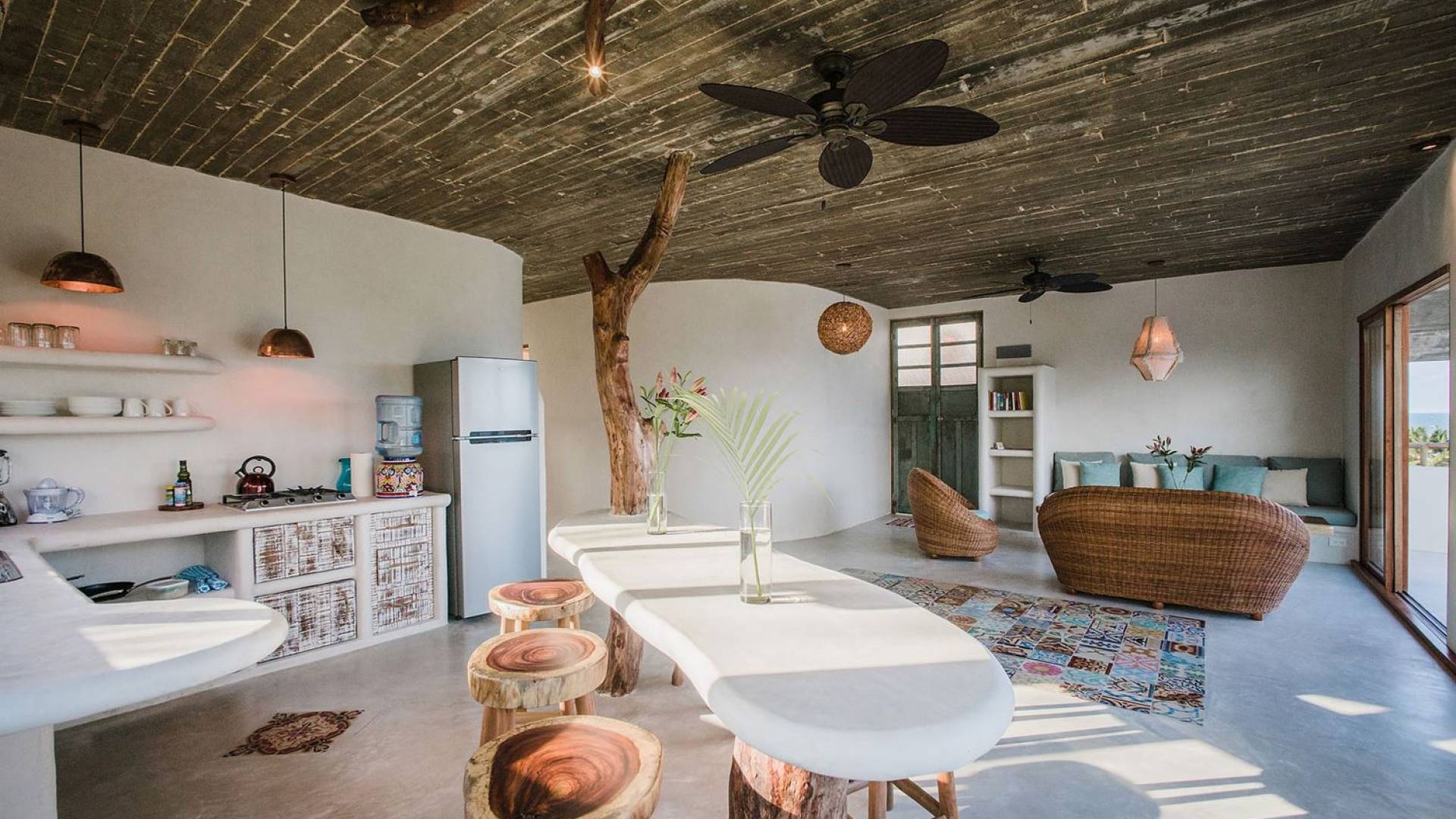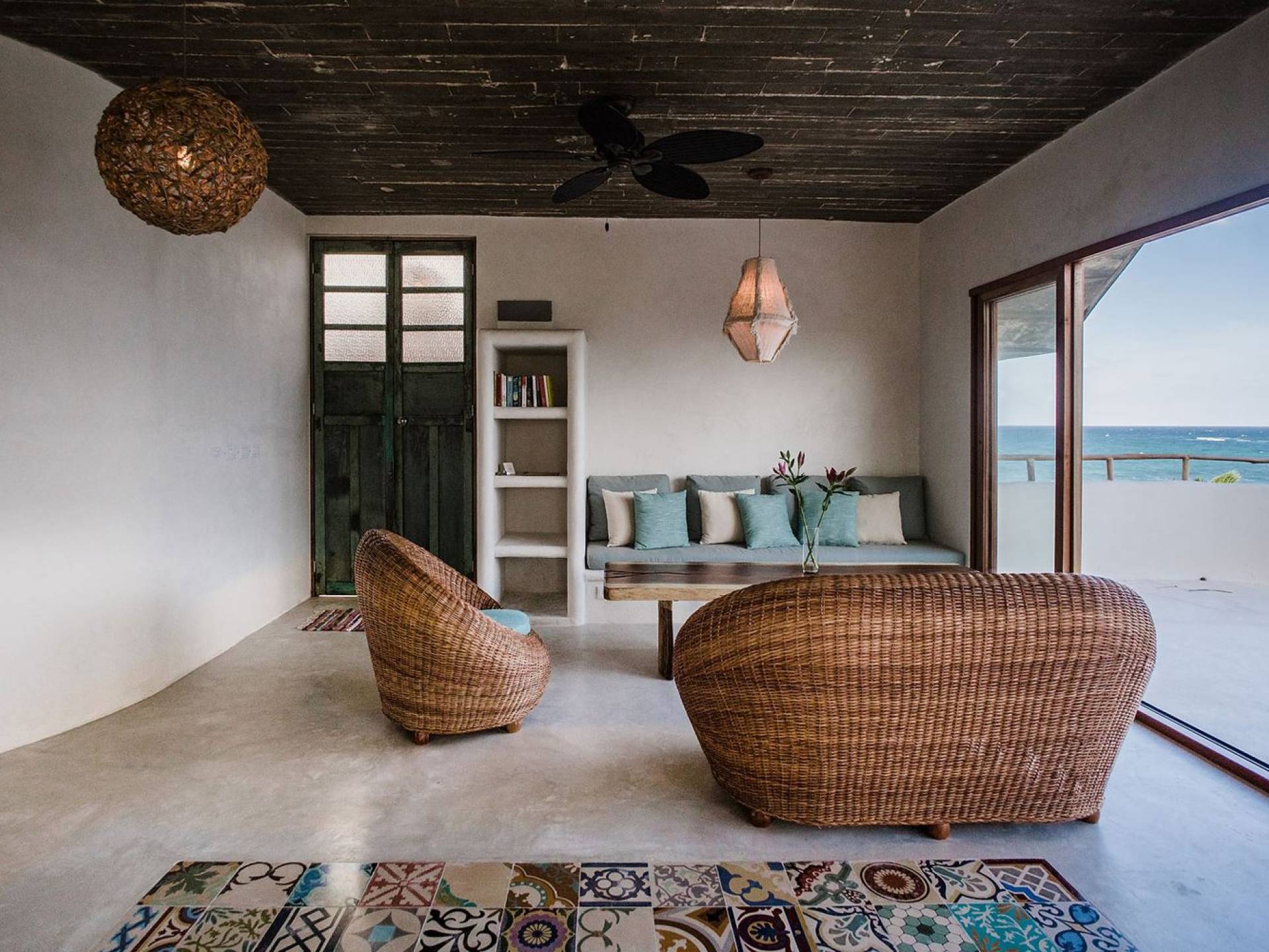 Zorba PenthouseTulum is a luxury villa rental with 2 bedrooms. Enjoy stellar views of Tulum beach from this incredible penthouse perch! Bird’s eye view of the white sand and turquoise sea from this exclusive 2BR home. Let the sea breezes flow through the glass doors into your open living area or sit outside on the patio to enjoy the incredible vista.