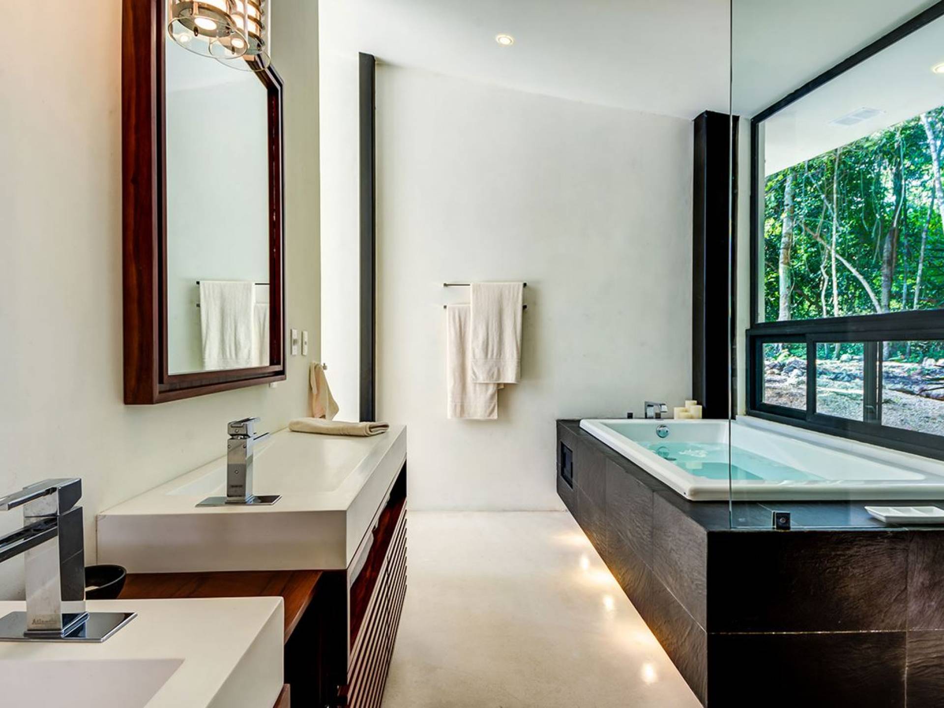 Spaces are open and functional. The two main ensuite bathrooms have private jungle views directly from the baths. The living room and kitchen allow for great cooking and dining. With consideration for the environment, the villa has been equipped with brand new, state of the art, energy plant technology. Meaning even deep in the Maya jungle, you’ll never run out of energy.