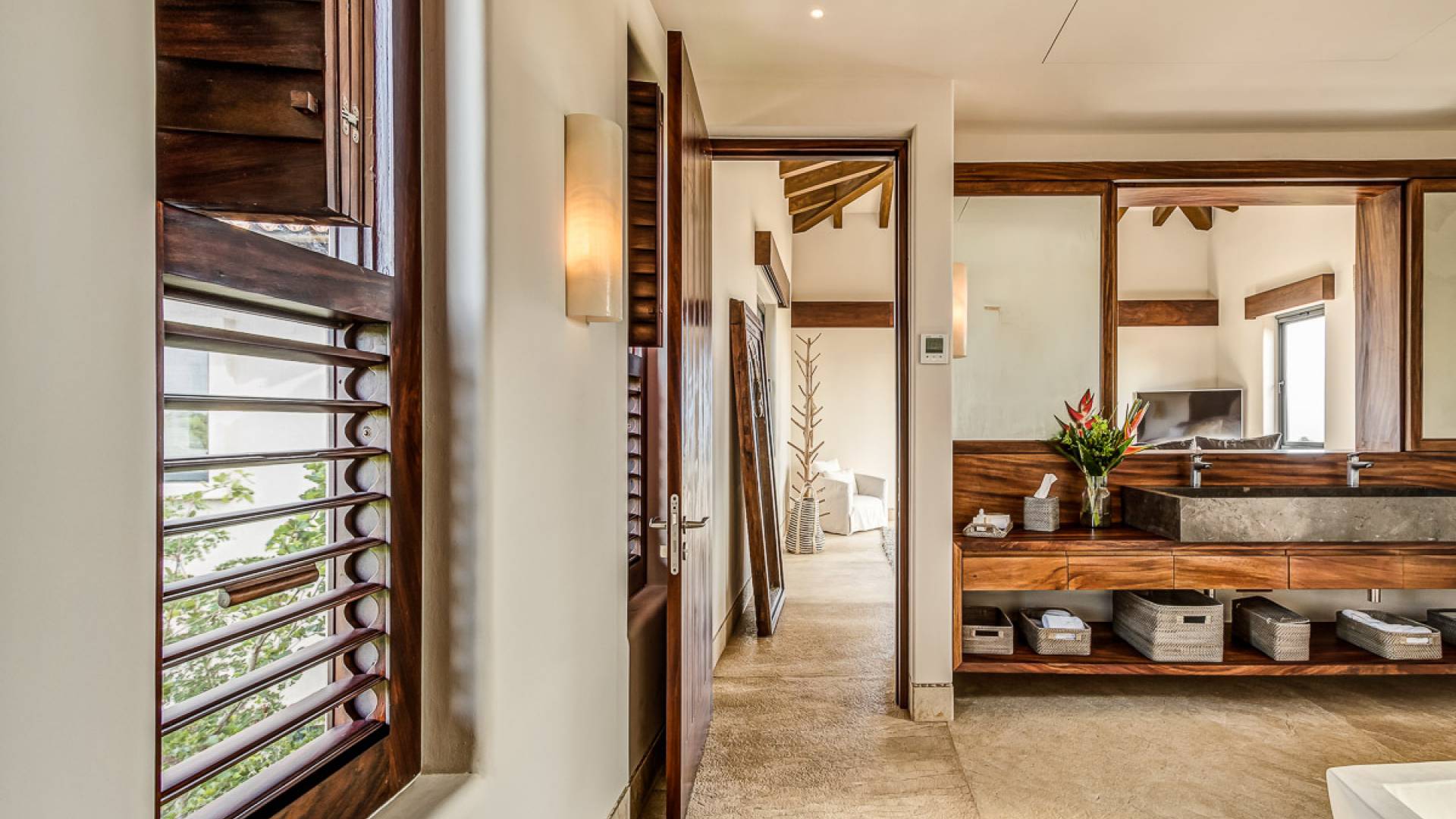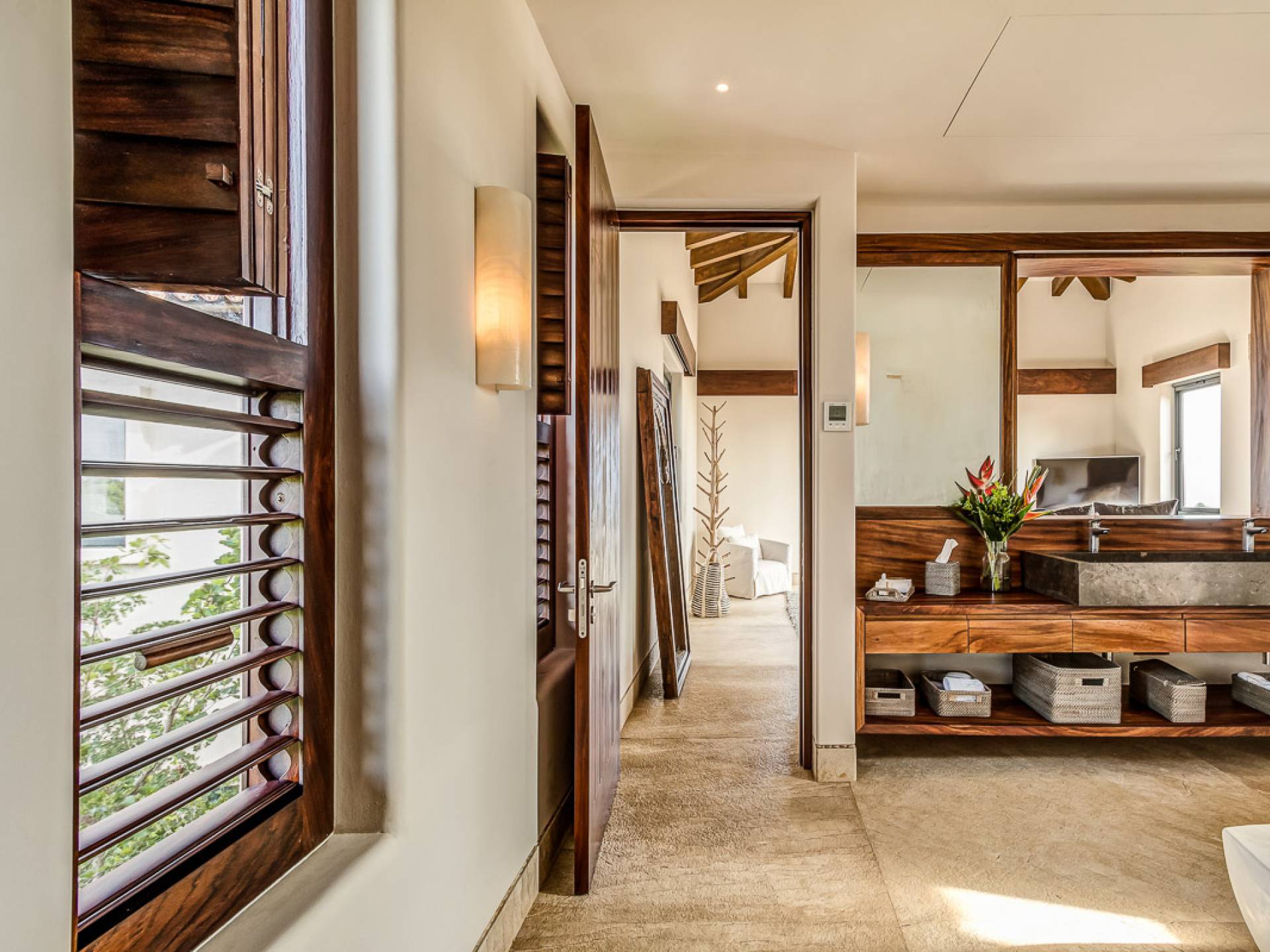 The master suite features a king size bed facing French doors that open onto the outer terrace, a beautiful ocean view, and an ensuite bathroom with stand-alone shower and bathtub. Of the four other bedrooms, three feature king beds while the fourth has two queens, and all have ensuite bathrooms. Varying color palettes, charming decorative touches, and traditional art make each room unique and memorable.