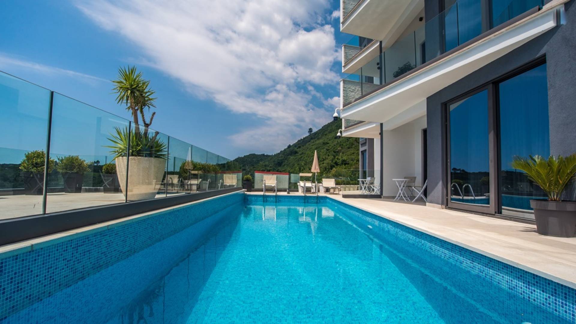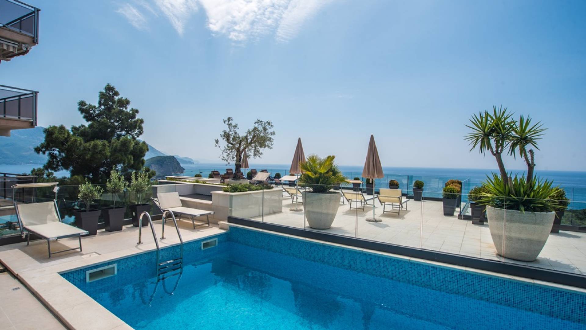 New and Modern villa Diamond has a surface of 331,41m2. It is a luxury villa with a swimming pool and breathtaking view of the open sea. It is located above Mogren Beach, in Budva, Montenegro.