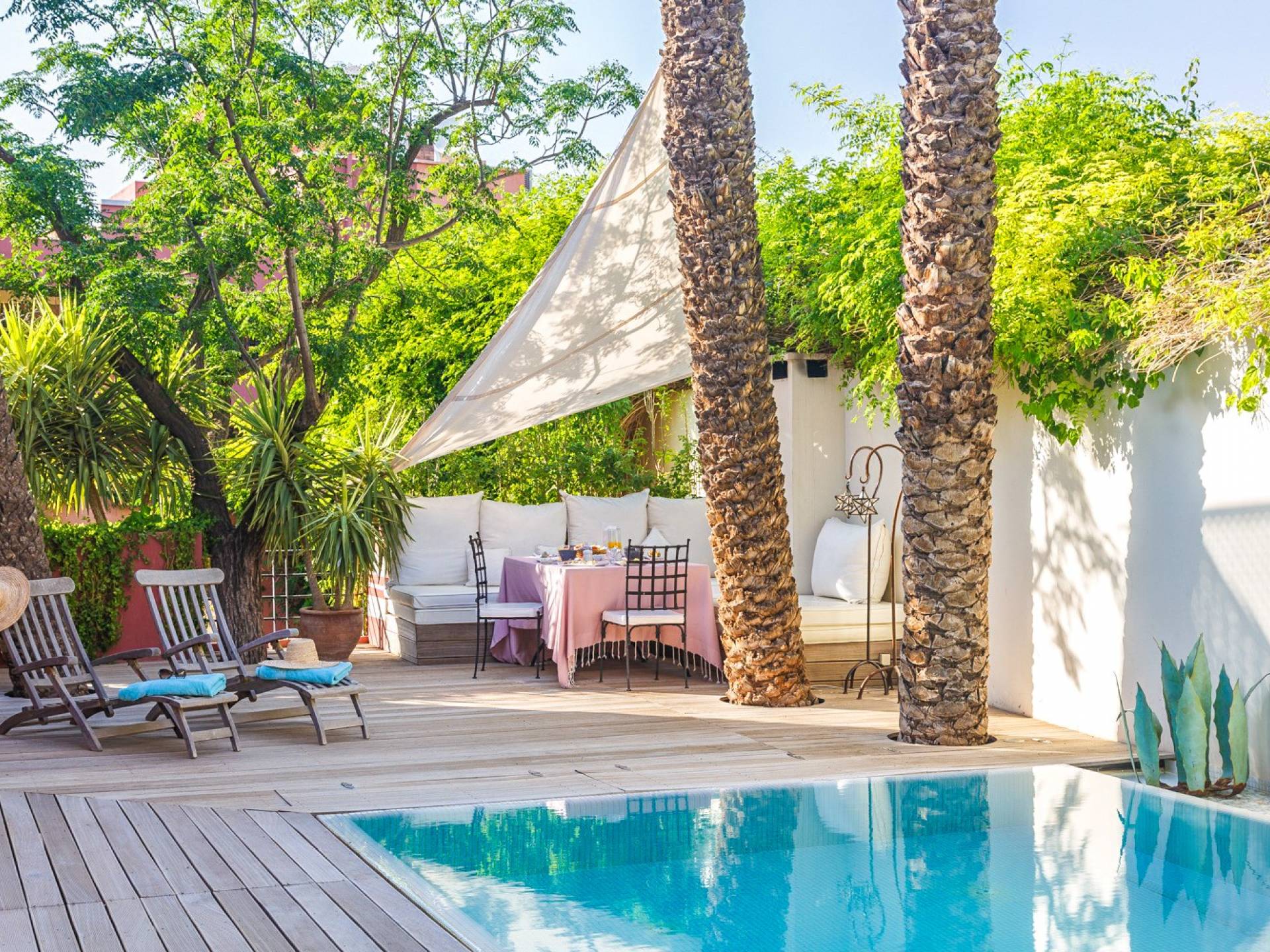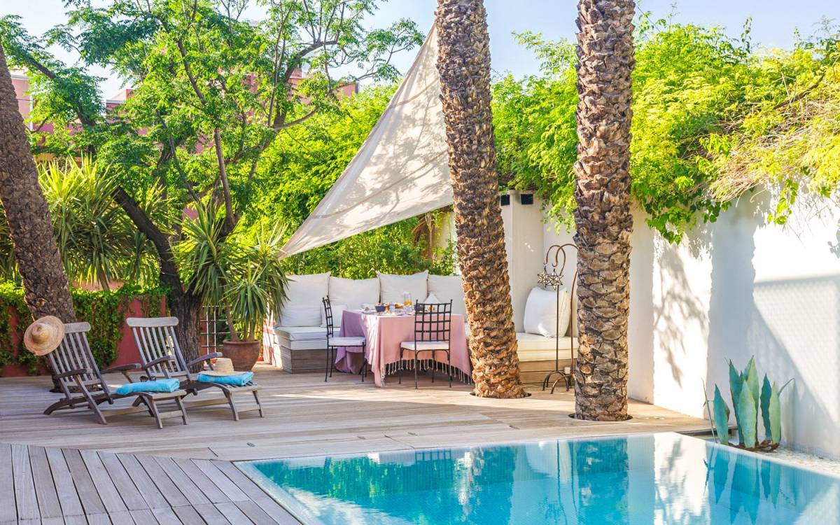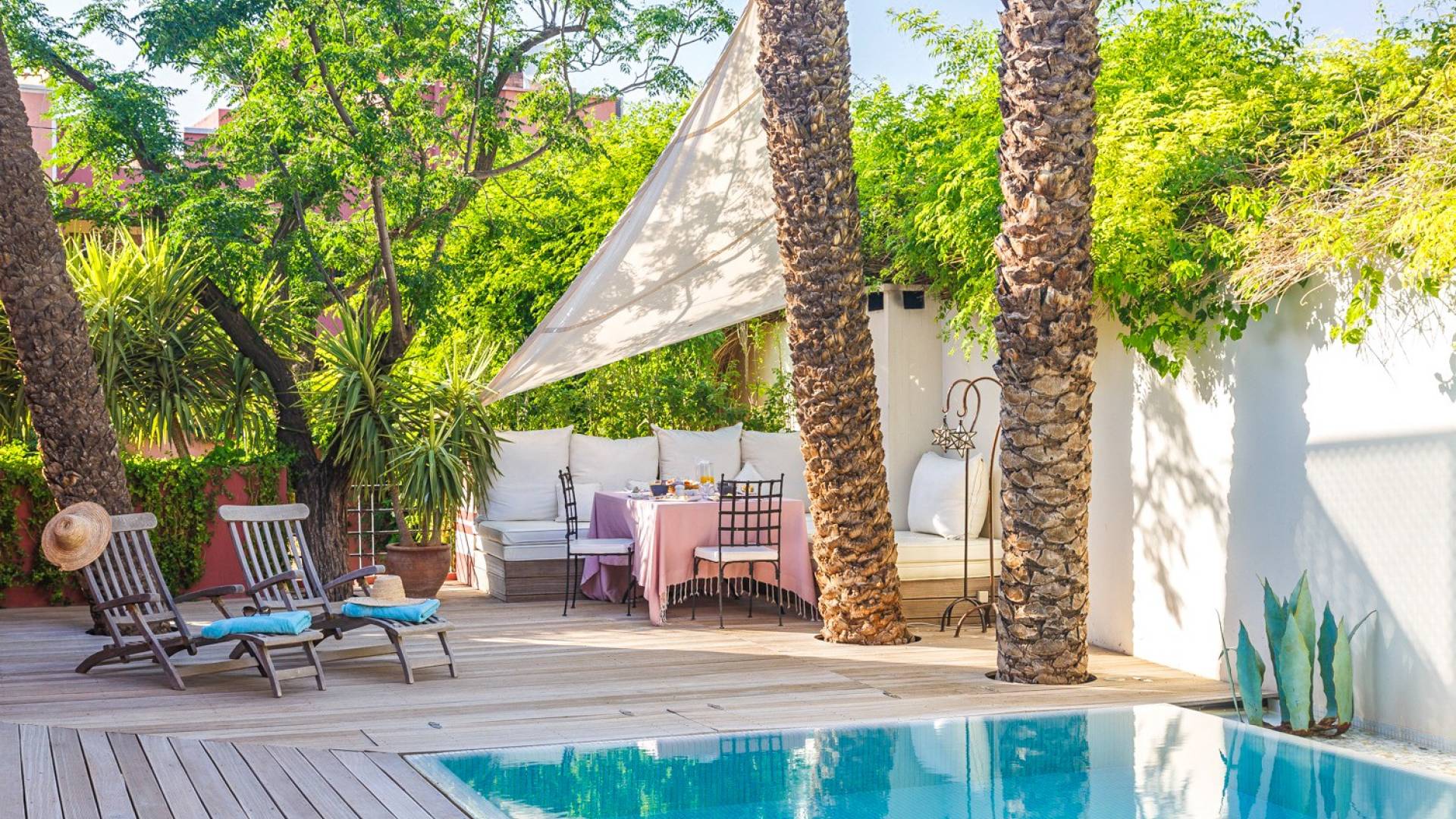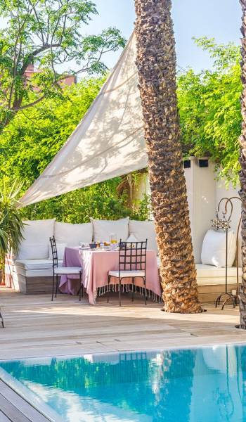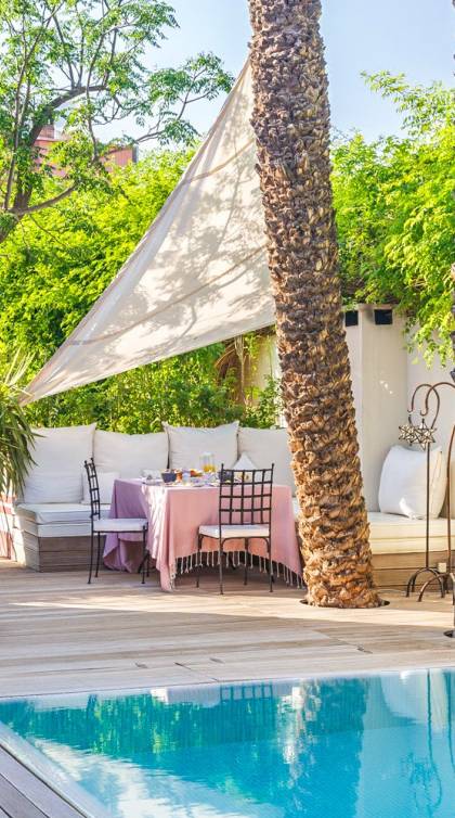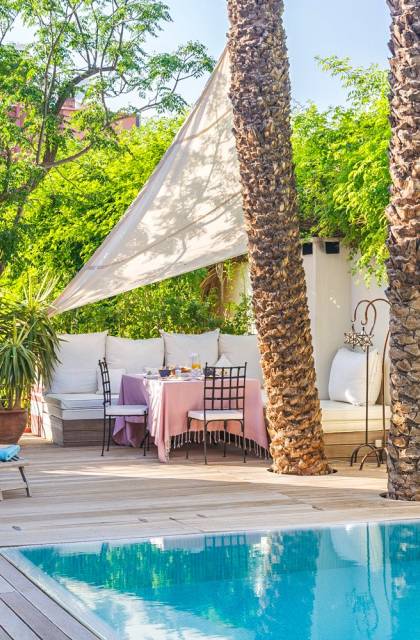 Nestled in a quiet street, near the Majorelle Garden, the Villa Kallaris benefits from a lush garden: giant palm trees and bougainvilleas are the garden's main characters.