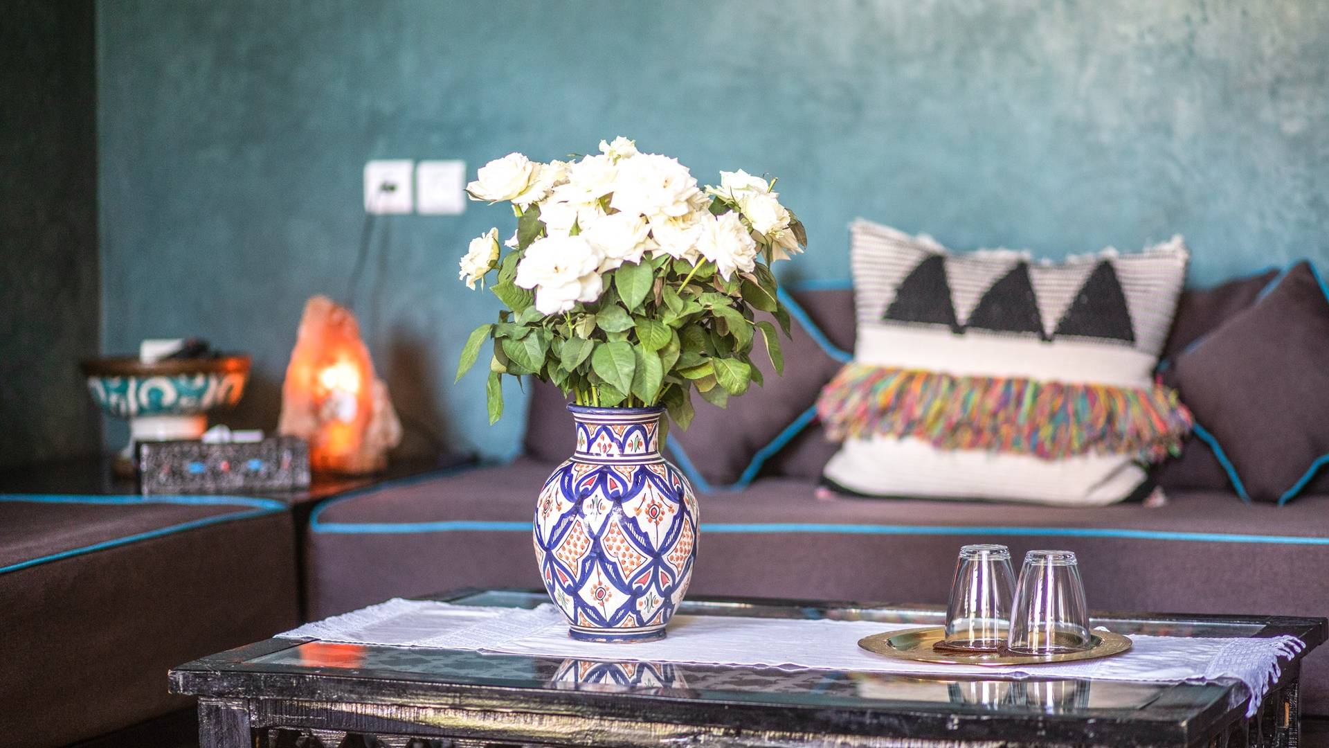 Villa Riad Mur Akush Marrakesh has a unique way with its colours, sounds and enchanting smells creating a sense of tranquillity and well-being as soon as you walk into the house, a genuine hide-away in this intense city.