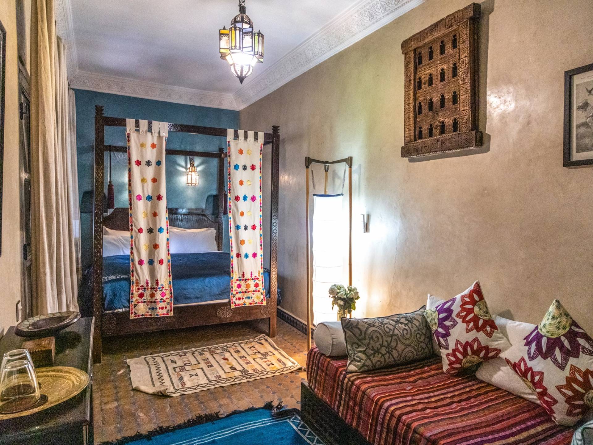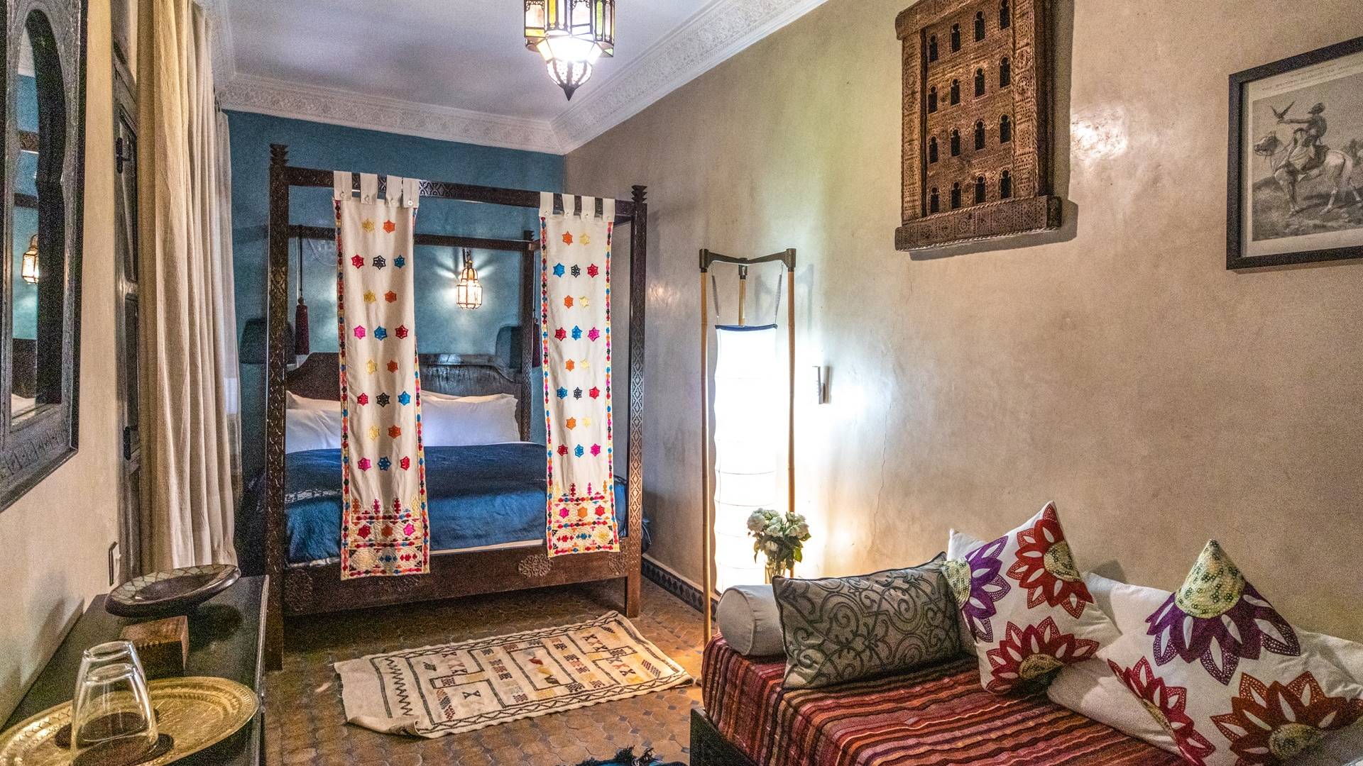 You will love the individually furnished rooms and private bathrooms, you will sleep on big, comfortable beds, specifically designed and handmade in Marrakesh exclusively for the riad. You will savour the wonderful views of the terraces and enjoy the delicious food prepared by the inspired cooks. Most importantly of all though, you will be spoiled by the amazing team who will make sure your needs are their priority and will make sure you will have a wonderful stay with us.