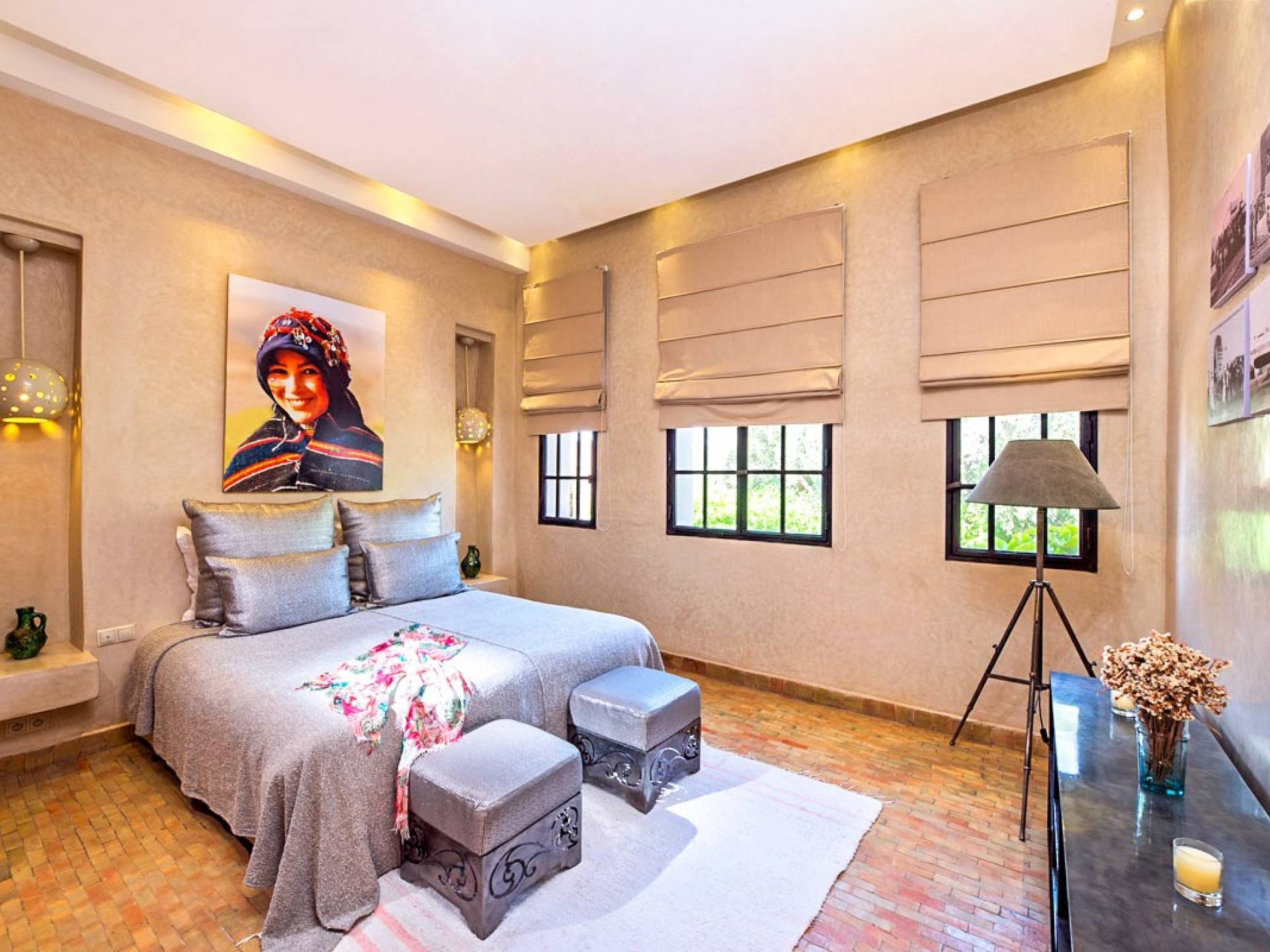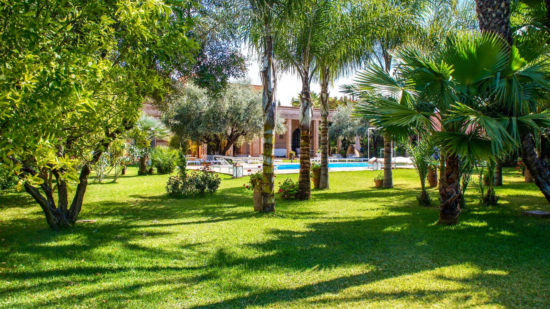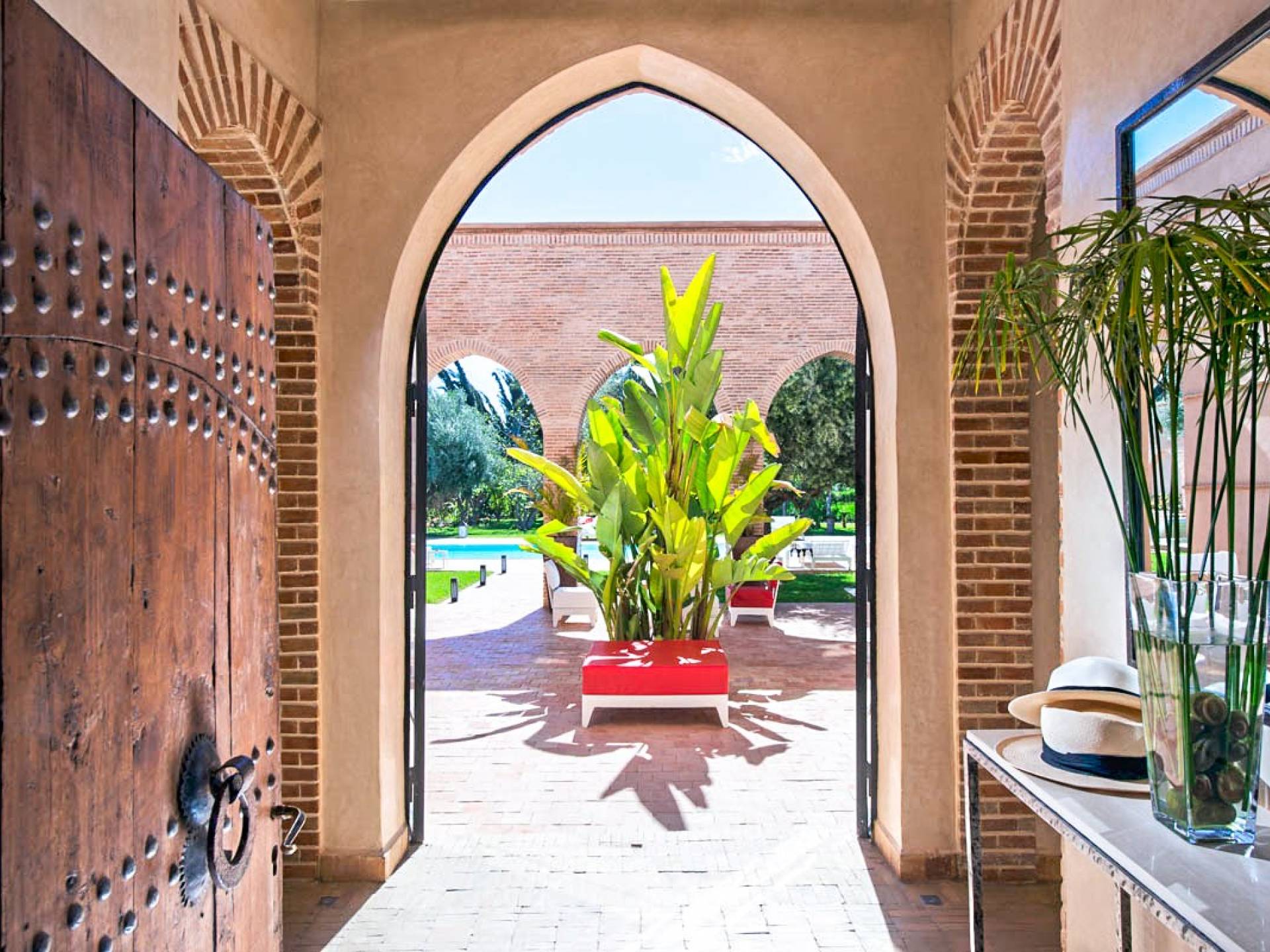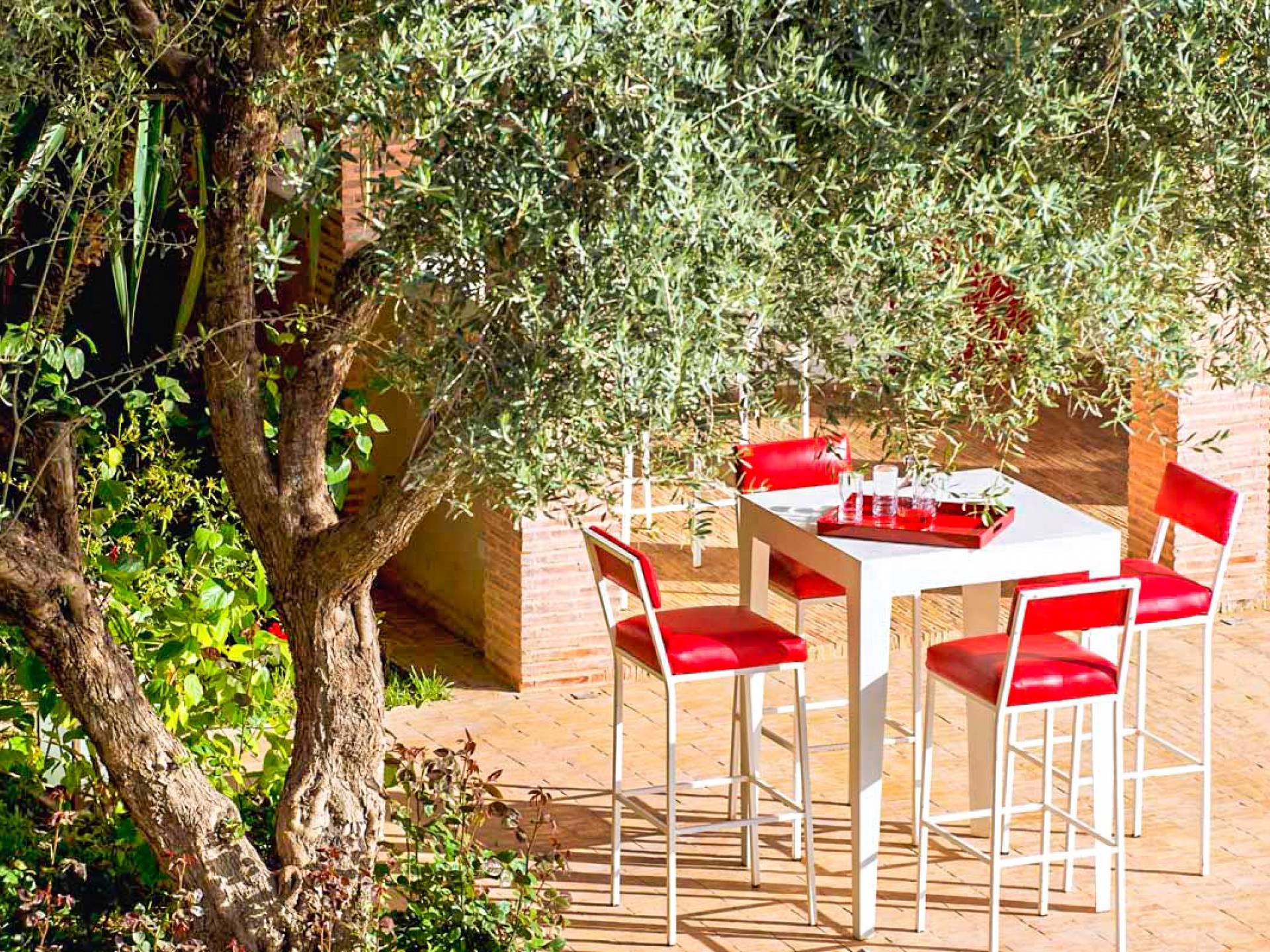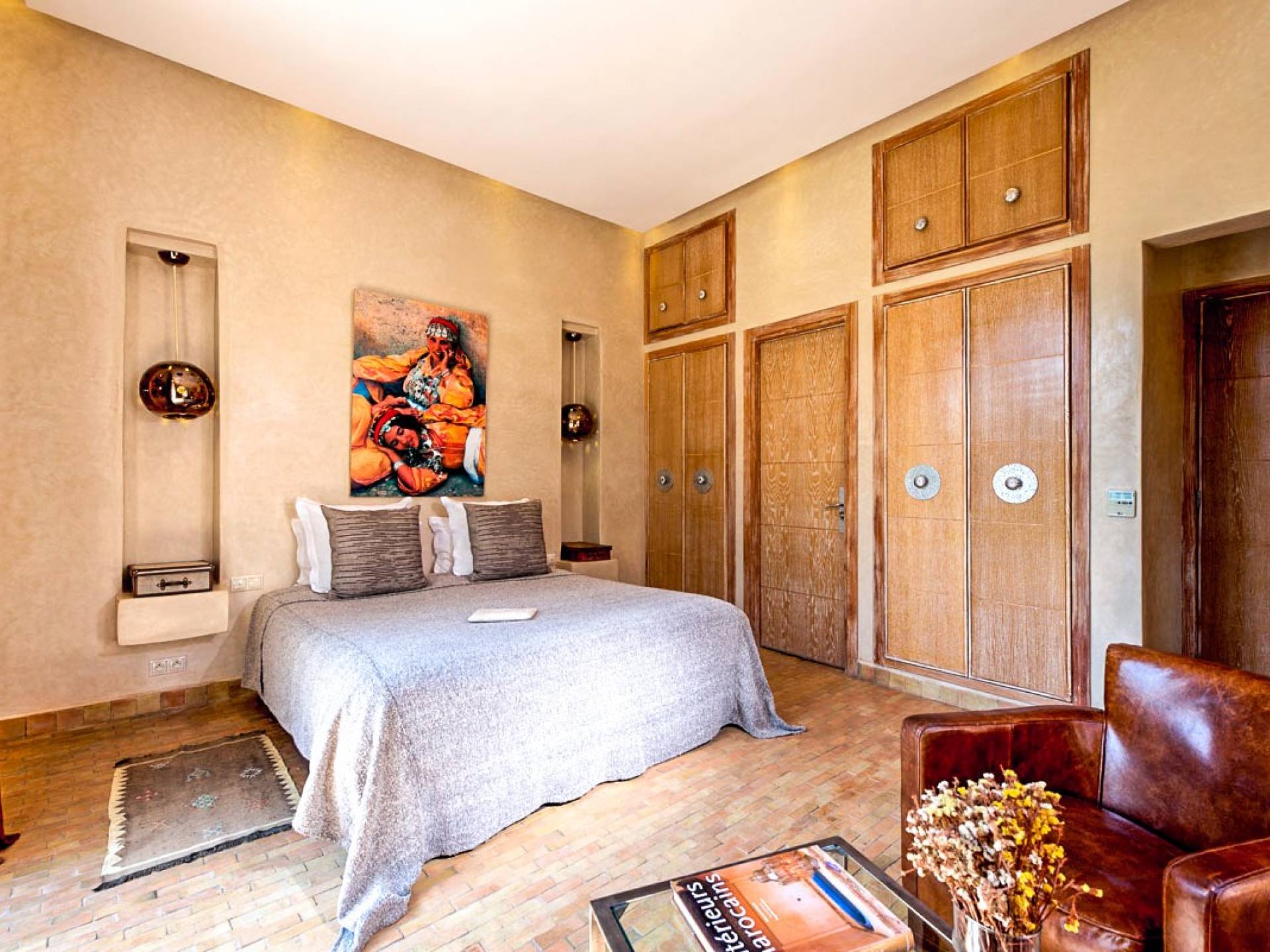 A large terrace overlooking the garden and the swimming pool where you can eat and relax in the open air and a perfectly fitted interior kitchen. An outdoor kitchen with plancha and barbecue and a laundry/laundry room. Villa Saada is designed around a patio pierced with arches of red briquettes over a large lush garden where the different species (olive trees, palm trees, orange trees, lemon trees, etc.) combine in perfect harmony. This villa is ideal for your stay with friends or family in Marrakech, 7 minutes from the famous Jemaa El Fna square in the Medina and from Guéliz the modern city.