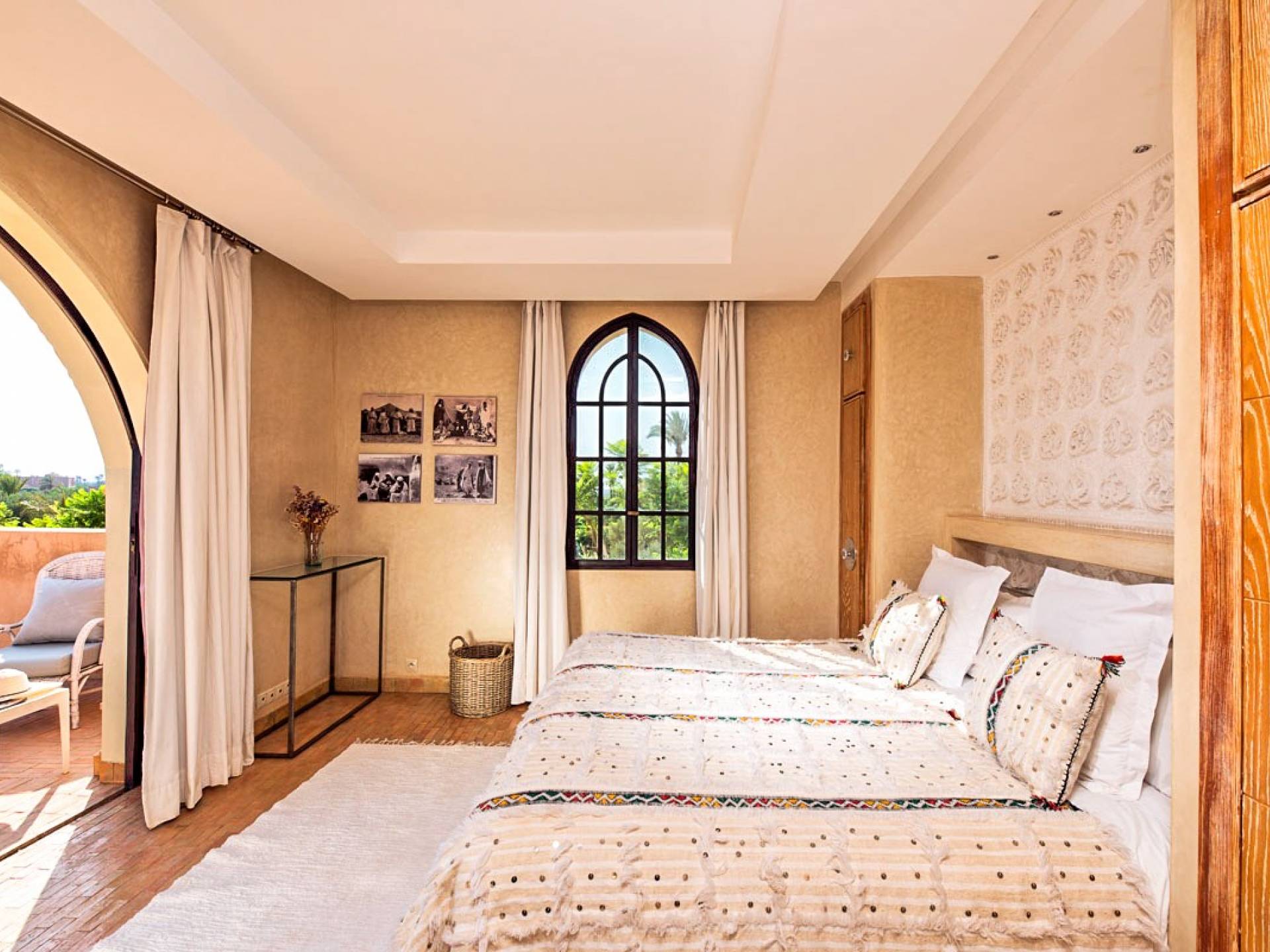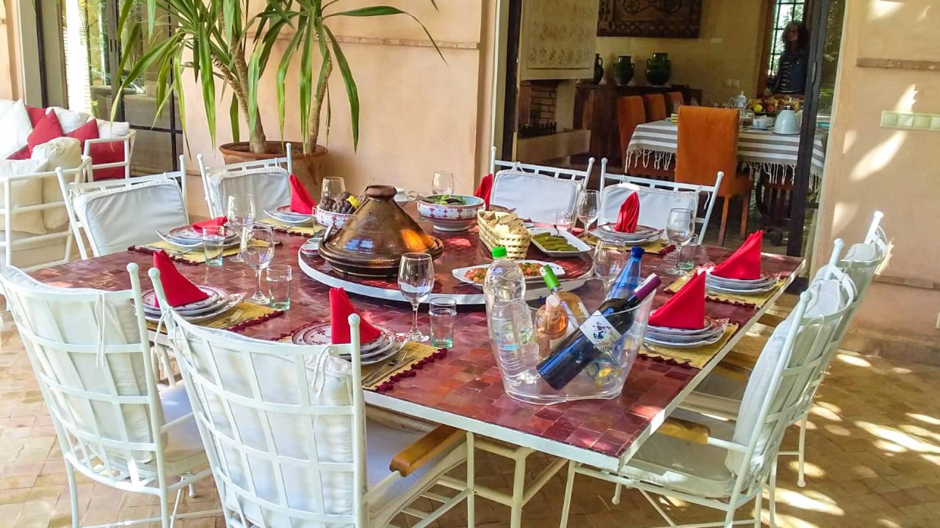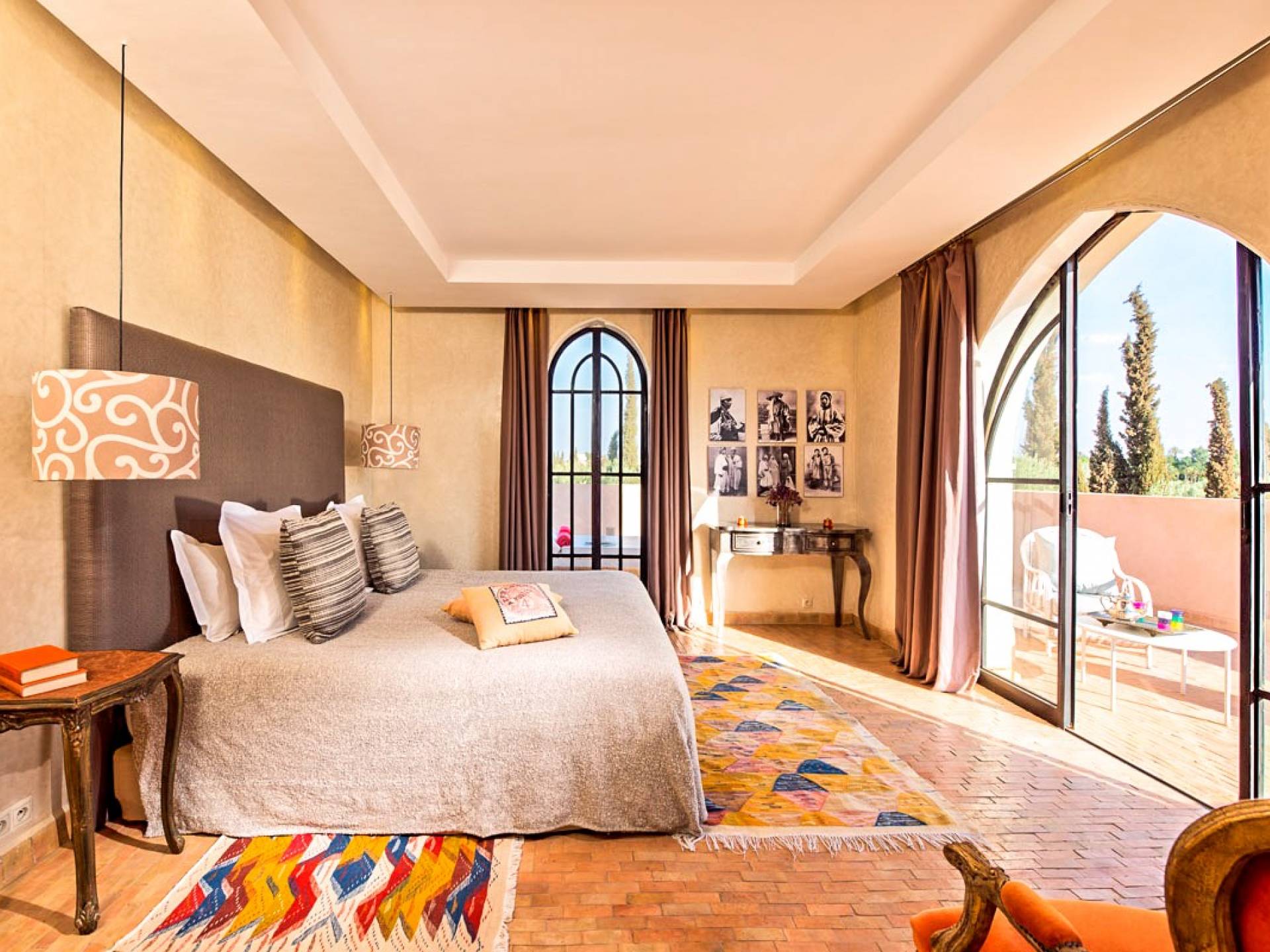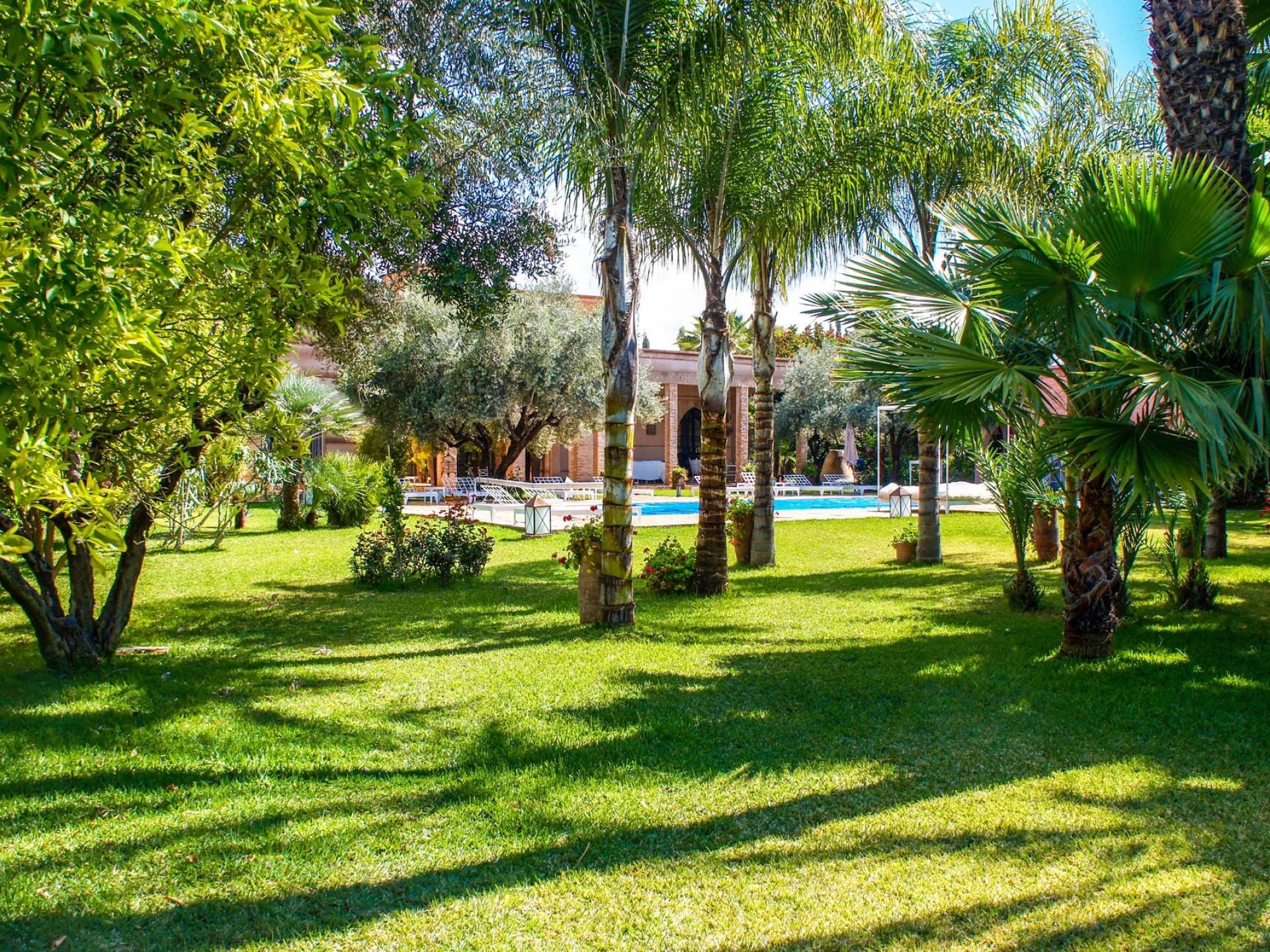 A large terrace overlooking the garden and the swimming pool where you can eat and relax in the open air and a perfectly fitted interior kitchen. An outdoor kitchen with plancha and barbecue and a laundry/laundry room. Villa Saada is designed around a patio pierced with arches of red briquettes over a large lush garden where the different species (olive trees, palm trees, orange trees, lemon trees, etc.) combine in perfect harmony. This villa is ideal for your stay with friends or family in Marrakech, 7 minutes from the famous Jemaa El Fna square in the Medina and from Guéliz the modern city.