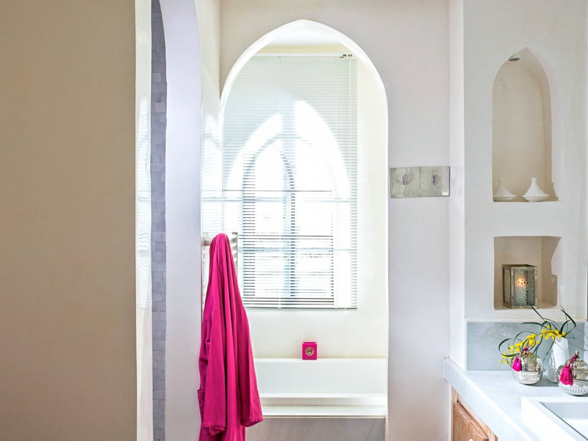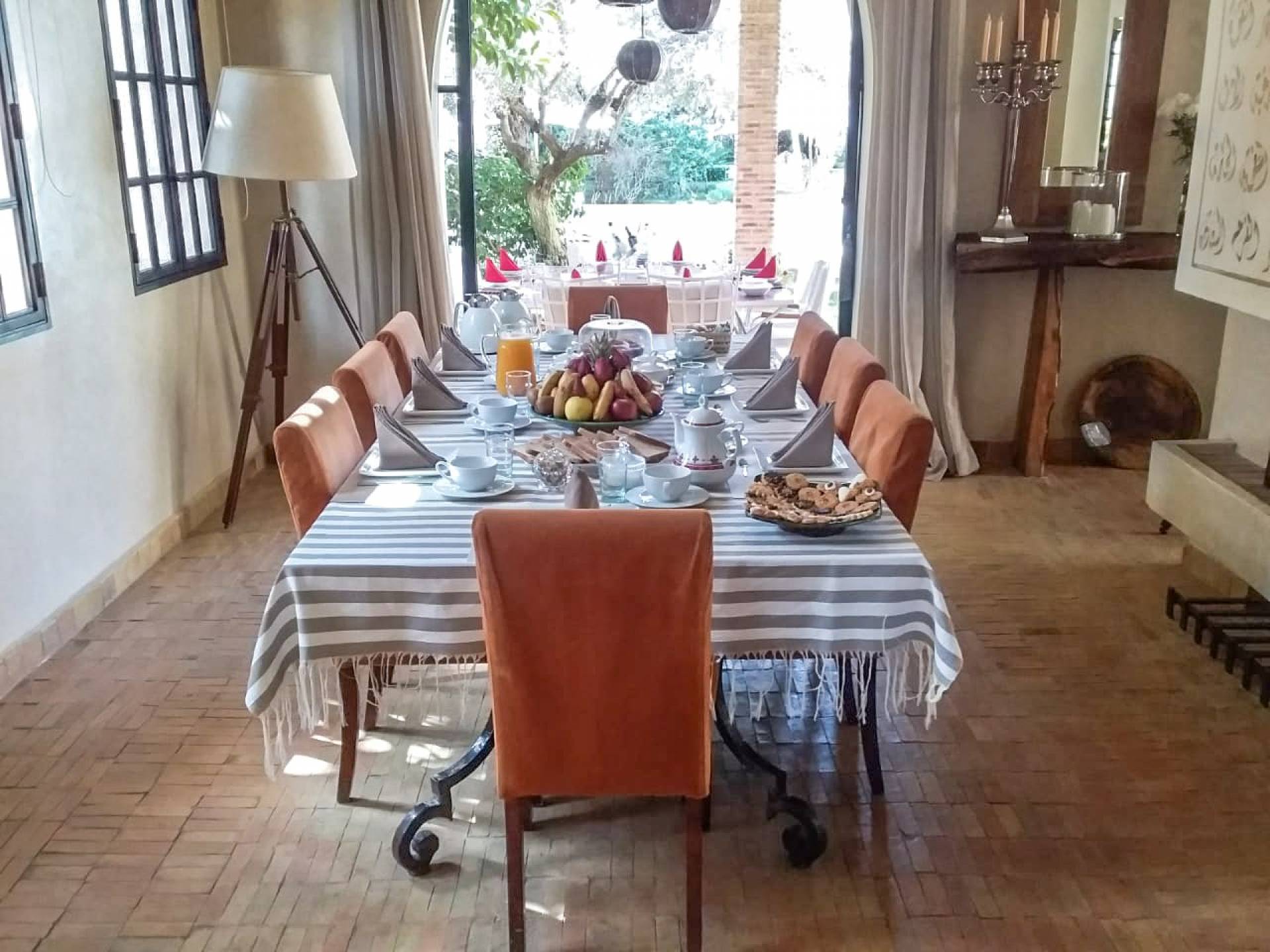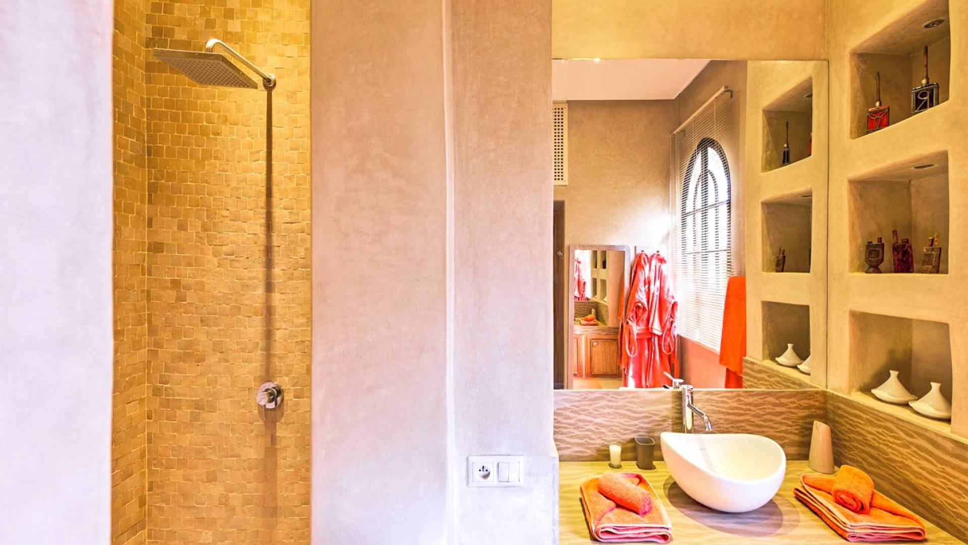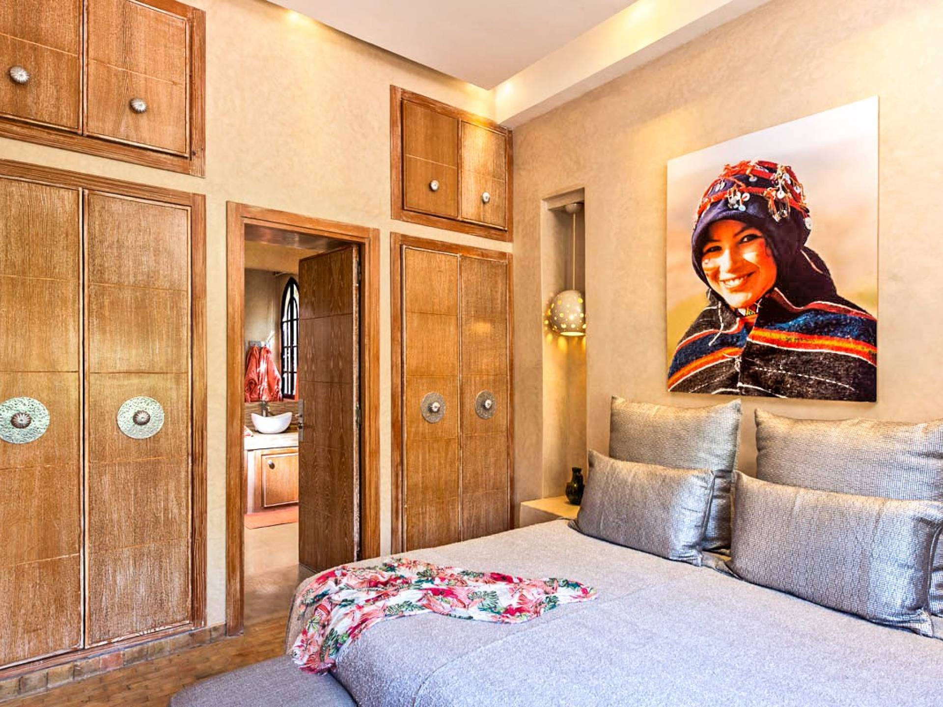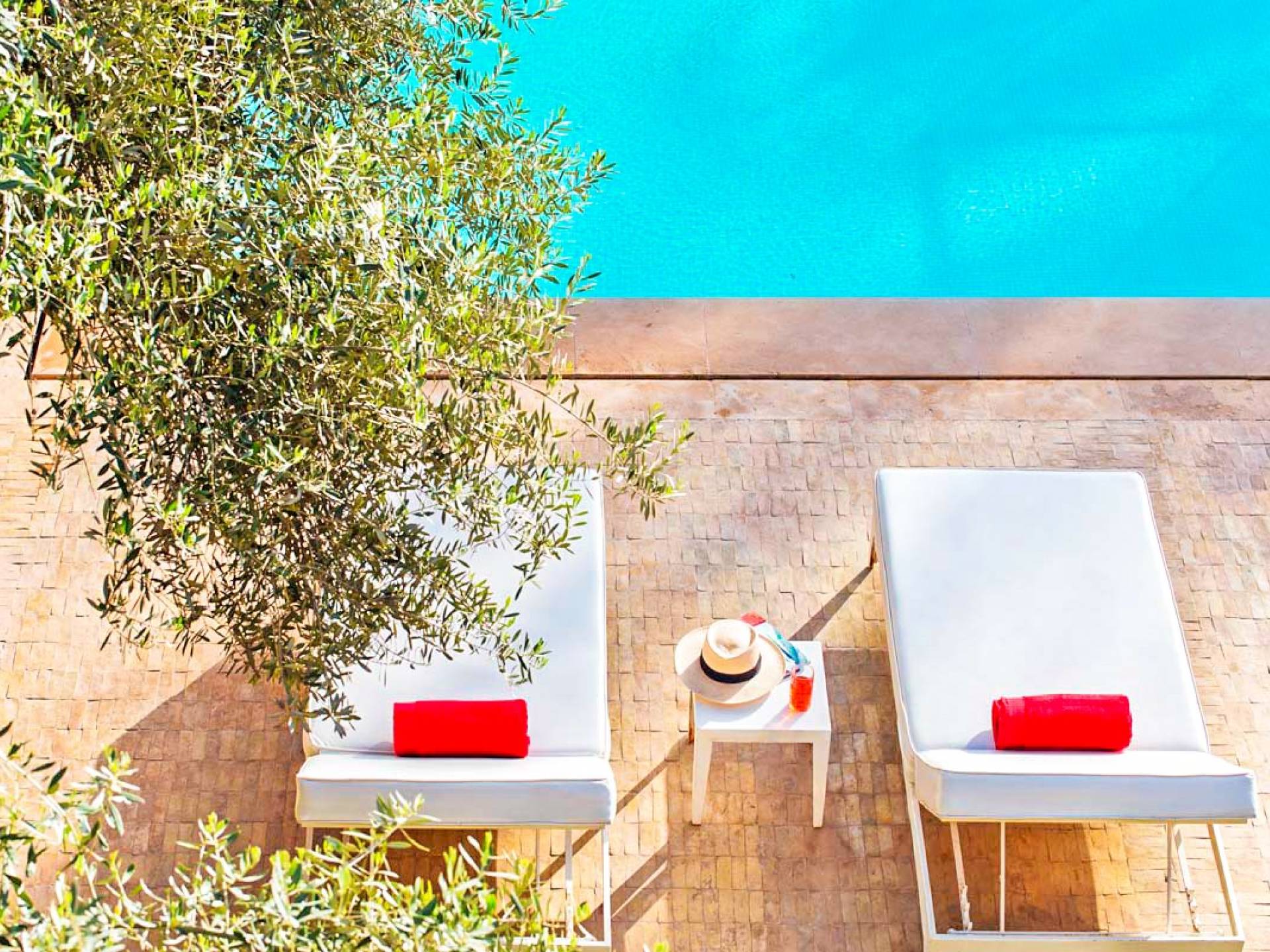 A large terrace overlooking the garden and the swimming pool where you can eat and relax in the open air and a perfectly fitted interior kitchen. An outdoor kitchen with plancha and barbecue and a laundry/laundry room. Villa Saada is designed around a patio pierced with arches of red briquettes over a large lush garden where the different species (olive trees, palm trees, orange trees, lemon trees, etc.) combine in perfect harmony. This villa is ideal for your stay with friends or family in Marrakech, 7 minutes from the famous Jemaa El Fna square in the Medina and from Guéliz the modern city.