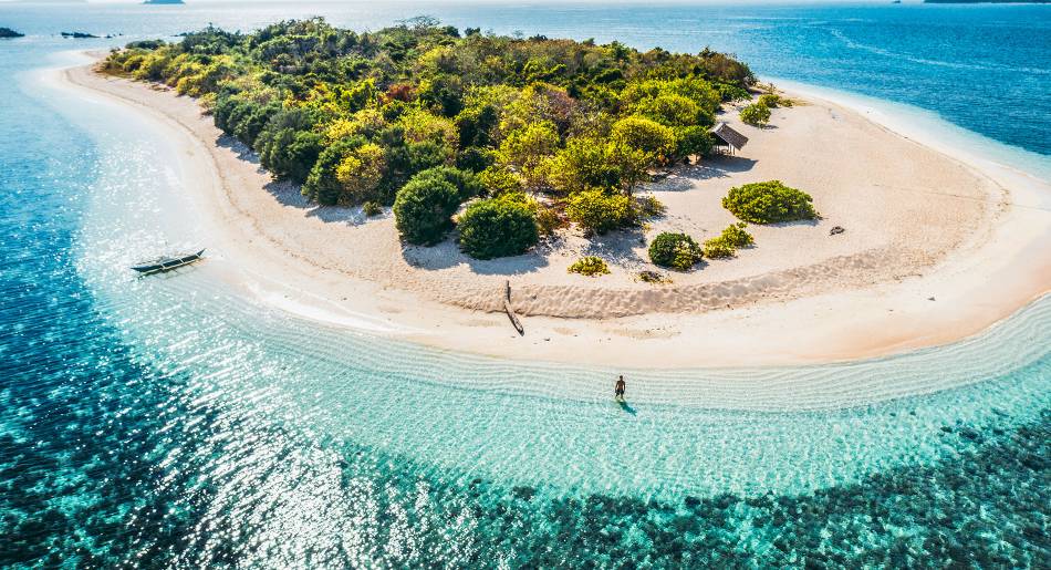 Pamalican Island is a small island of the Cuyo Islands in the Sulu Sea, between Palawan and Panay, in the north part of the Palawan Province of the Philippines. The island is set in the middle of a 7 square kilometer coral reef. It has a length of 2.5 kilometers and measures only 500 metres at its widest point. The island was originally exploited as a family-owned plantation but was then purchased by Andrés Soriano, a successful businessman whose children decided to build a resort on the island. Pamalican is found 360 kilometers south-west of Manila. Seven kilometers of reef surround the 85-hectare island on which hawksbill and green sea turtles found their home. Diving activities are available, allowing for nice coral viewing and encounters with large turtles and rays.
