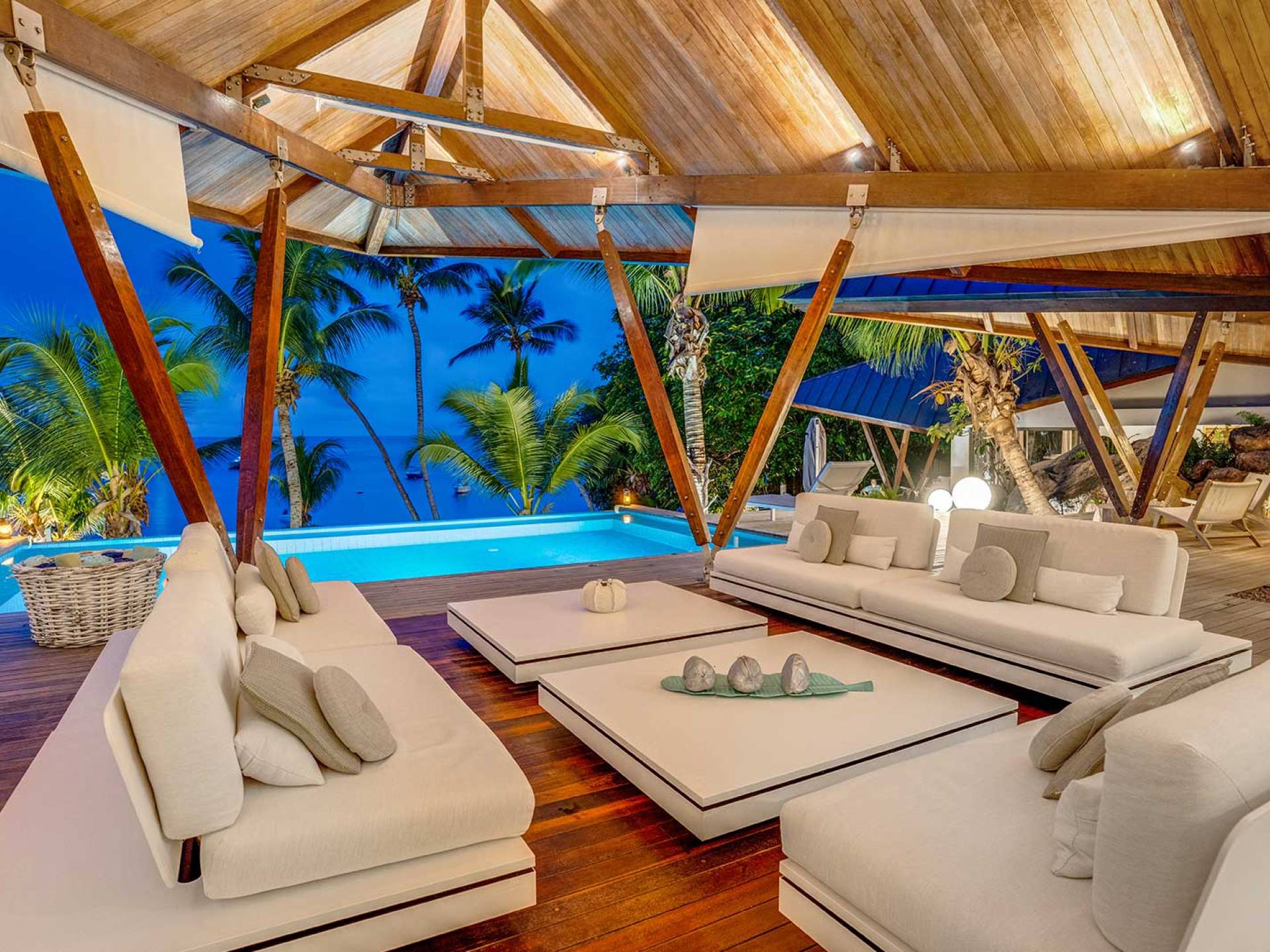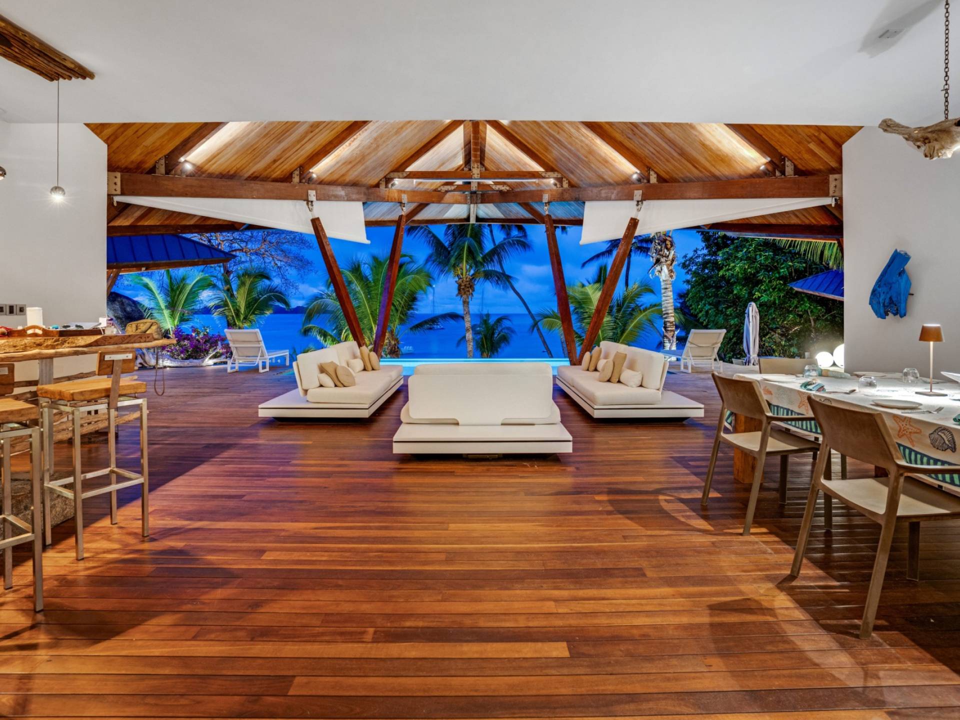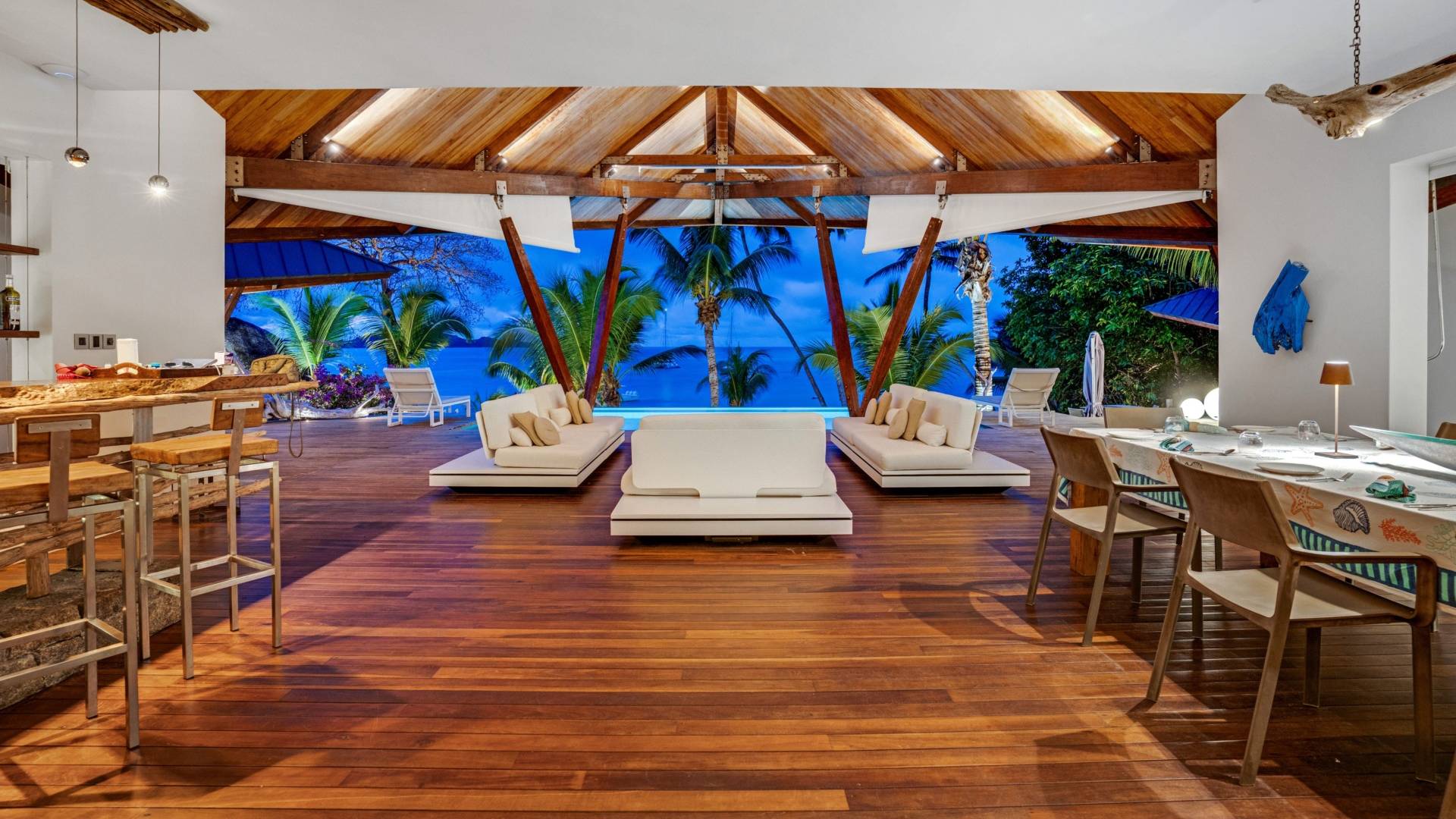 - Living Areas: Expansive indoor/outdoor lounges, dining area, fully equipped kitchen, TV room, and a bar.