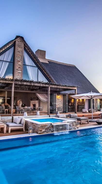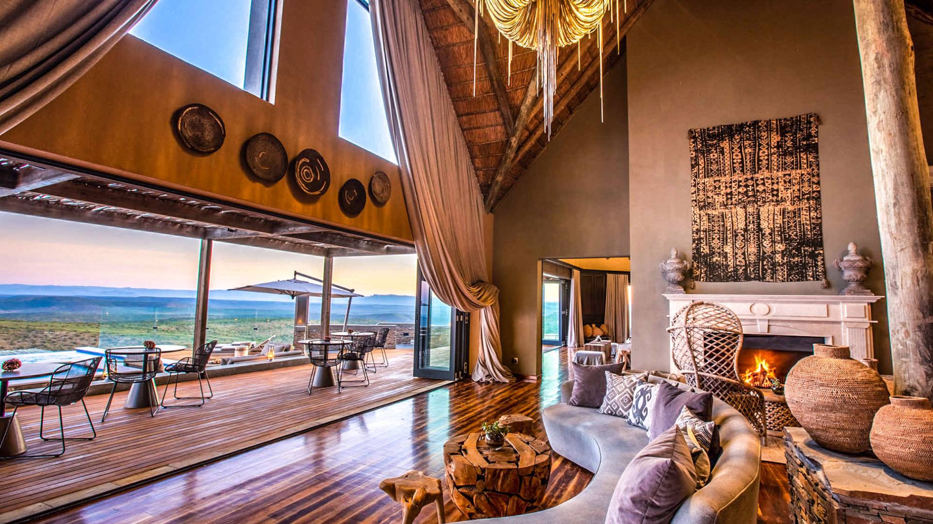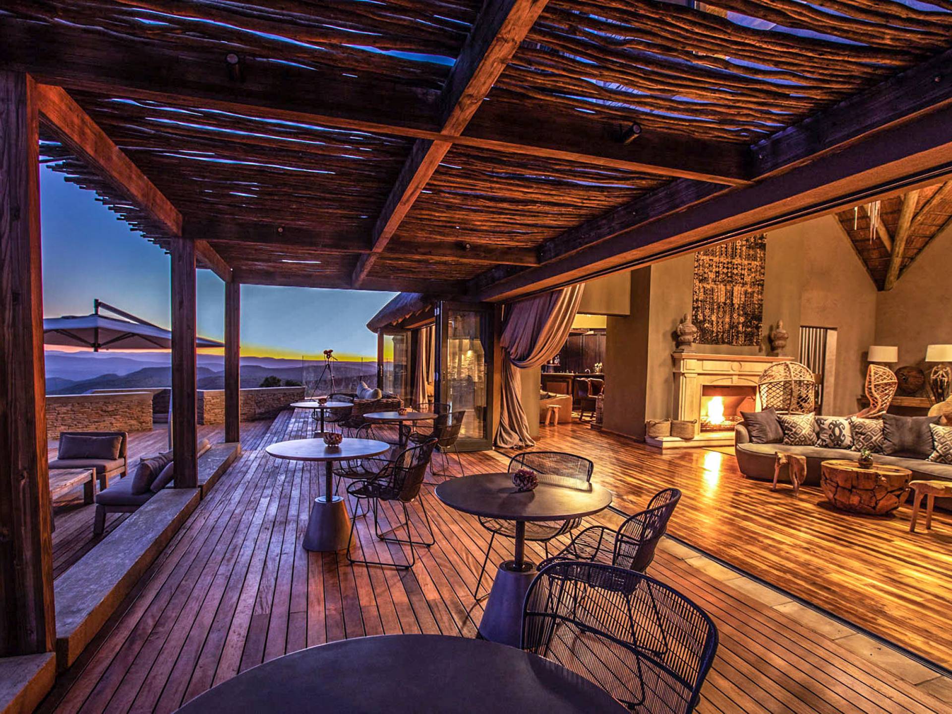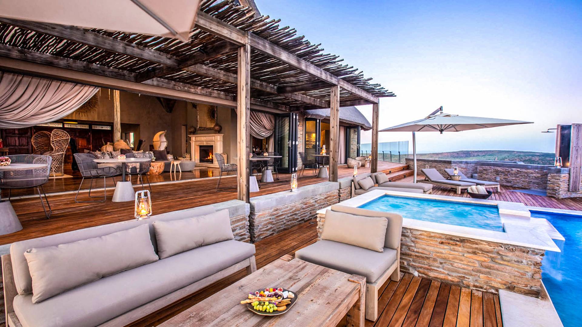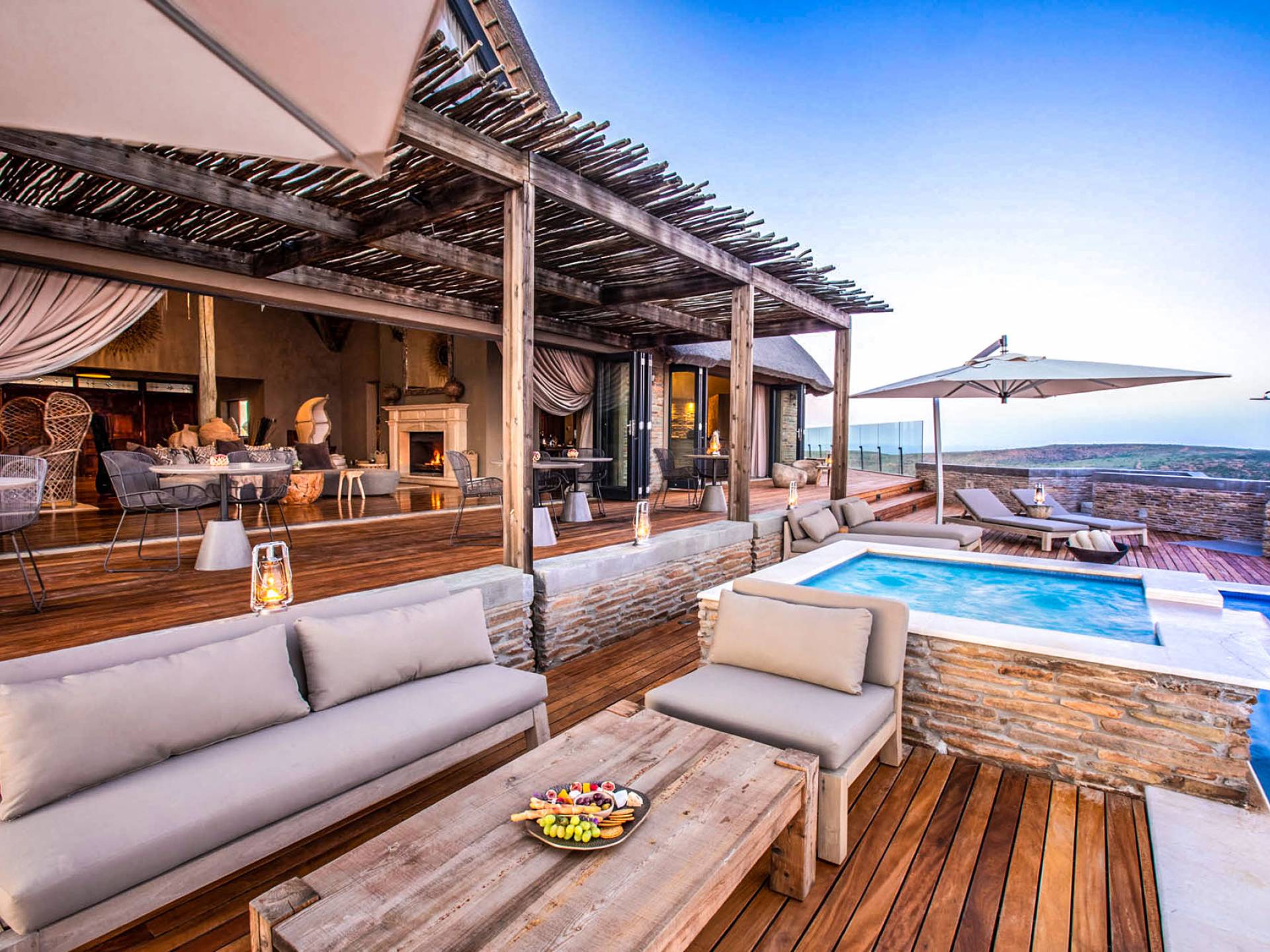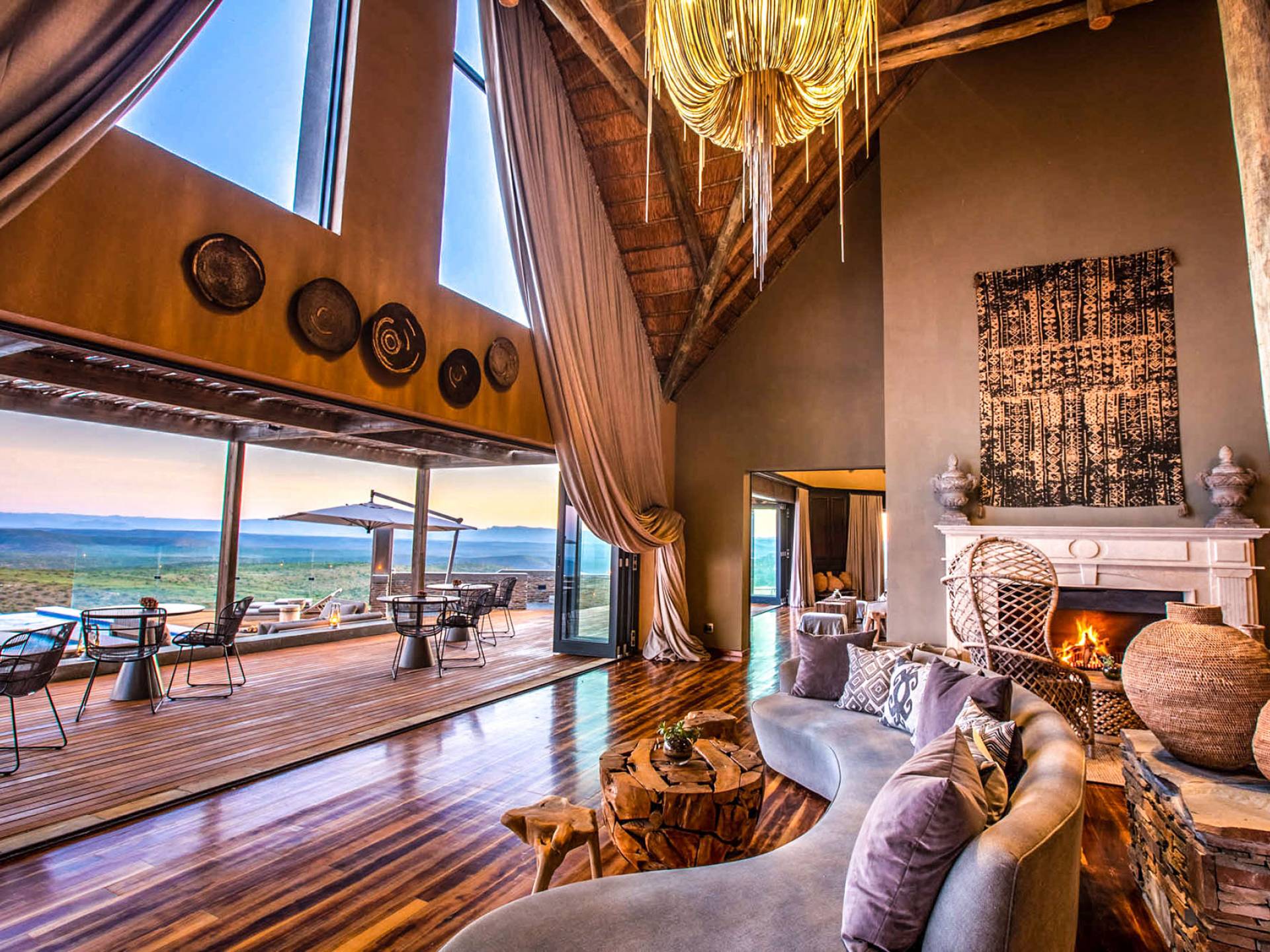 The décor and interiors feature earthy tones of brown and beige, which give the sense of a connection to the surrounding nature, as do the textures of wood, wool and similar natural fibres. Blazing fireplaces in each reception room keep guests cosy from the sometimes-nippy temperatures of the great outdoors, while the infinity pool is a sublime place to cool off when the mercury rises. Step out onto the sweeping decks and indulge in the magical silence of the night air and a glorious display of stars above.