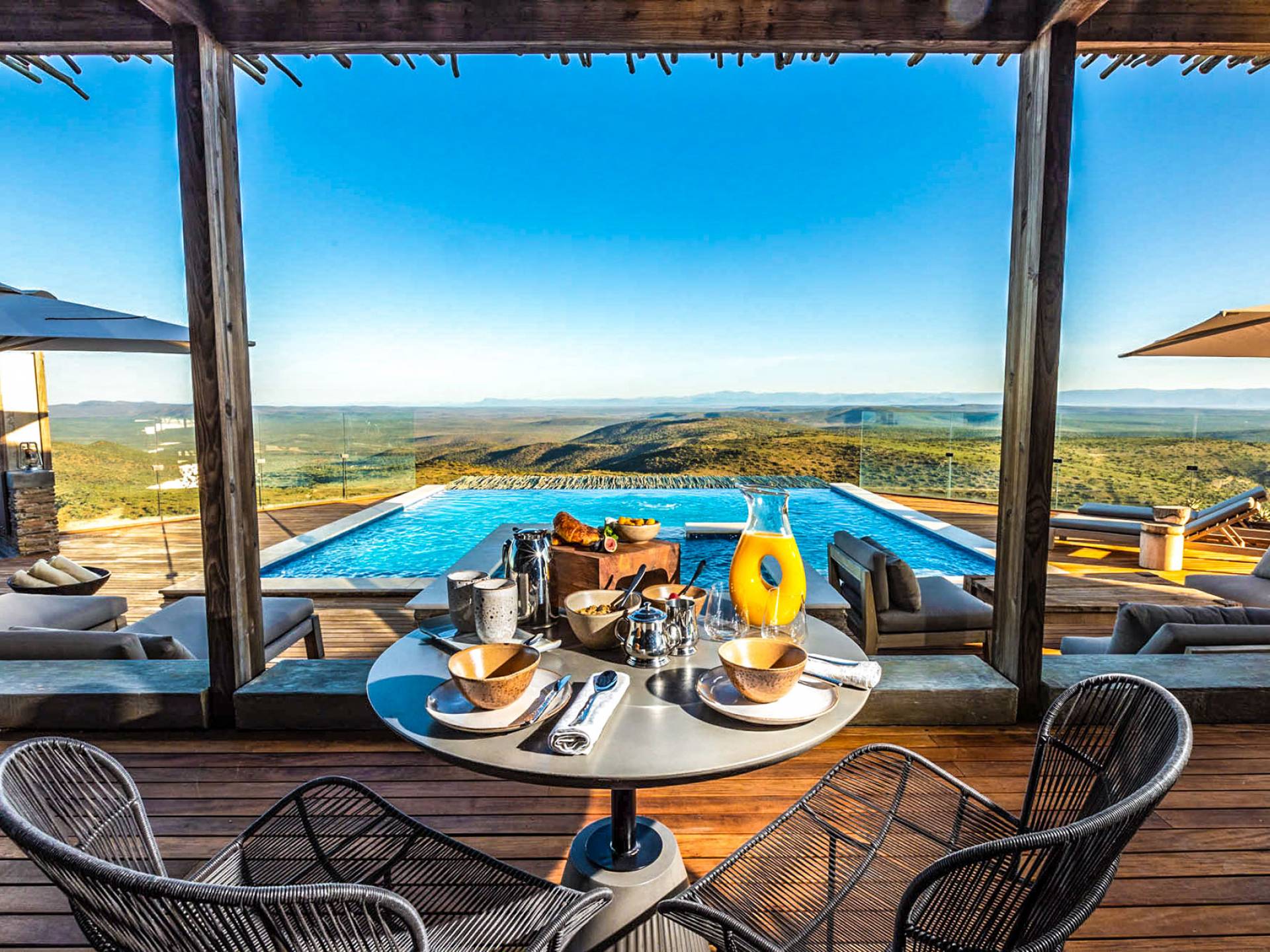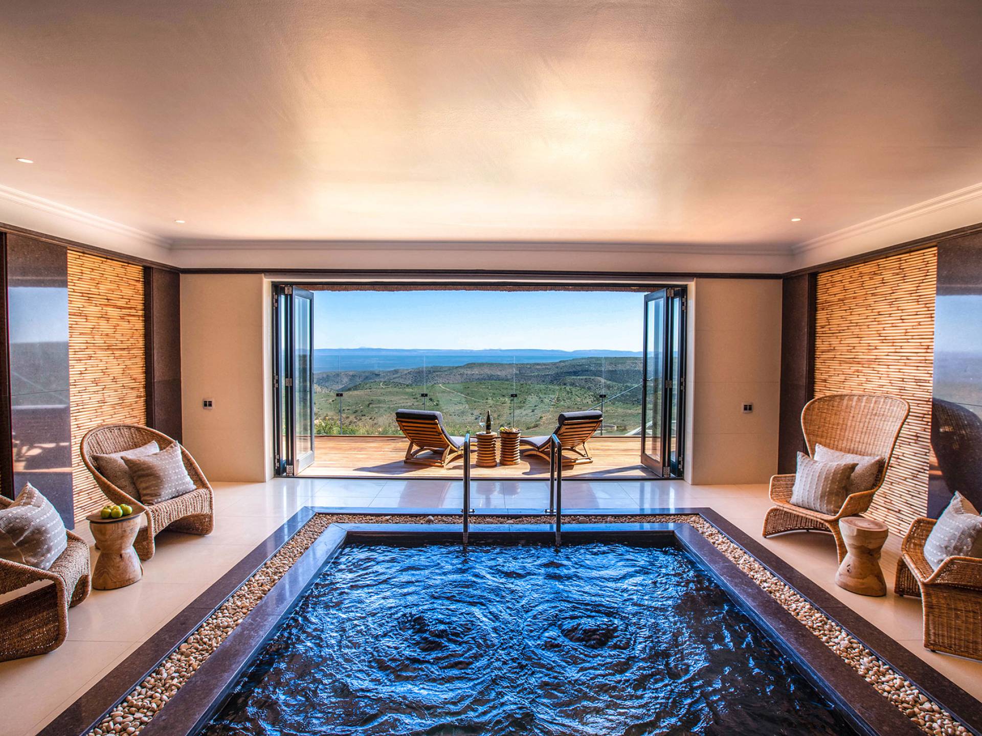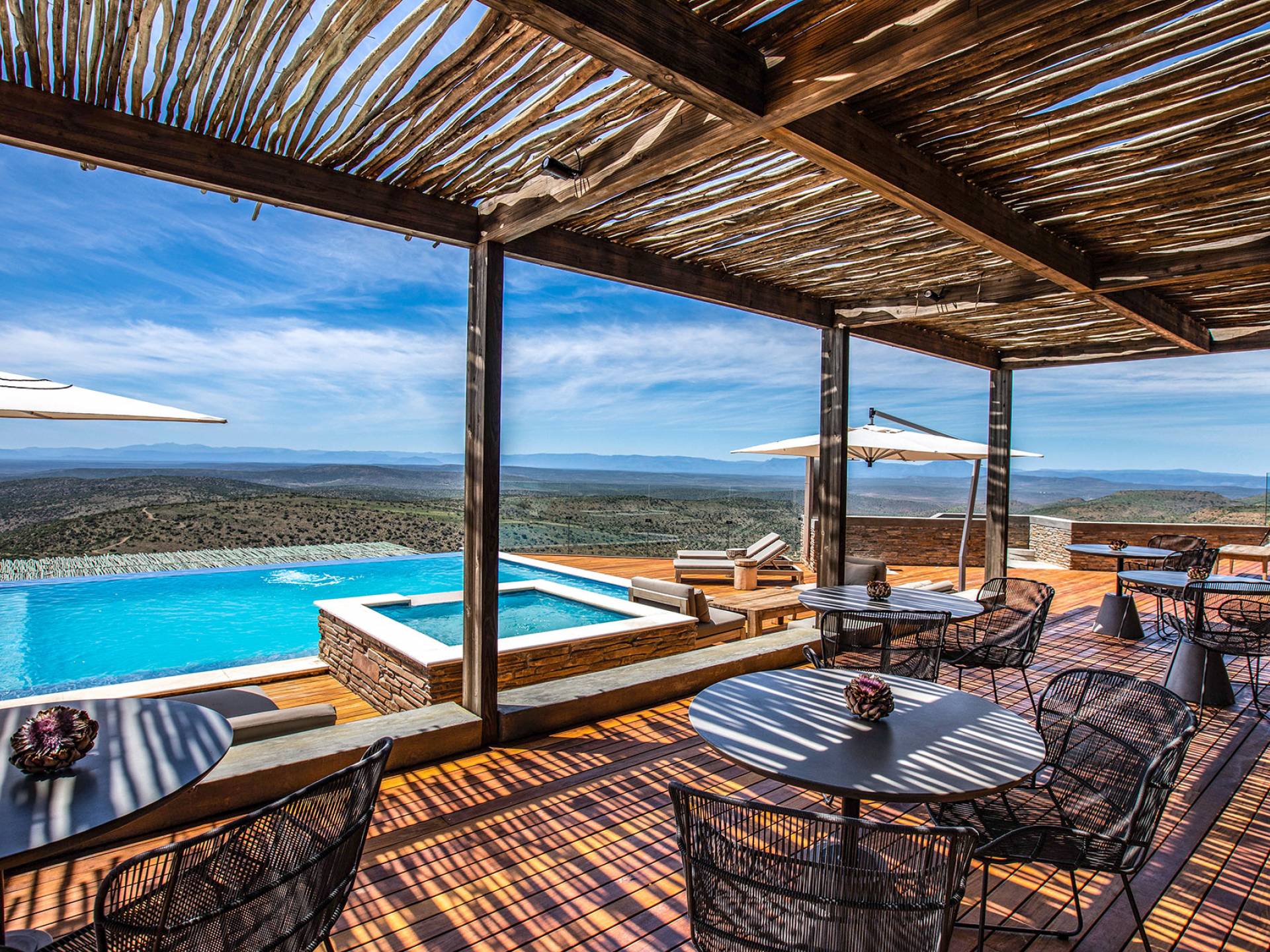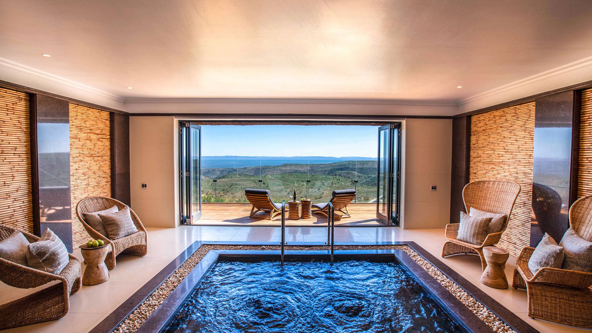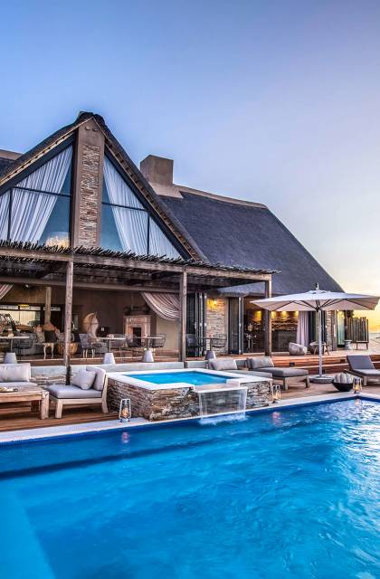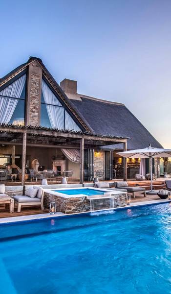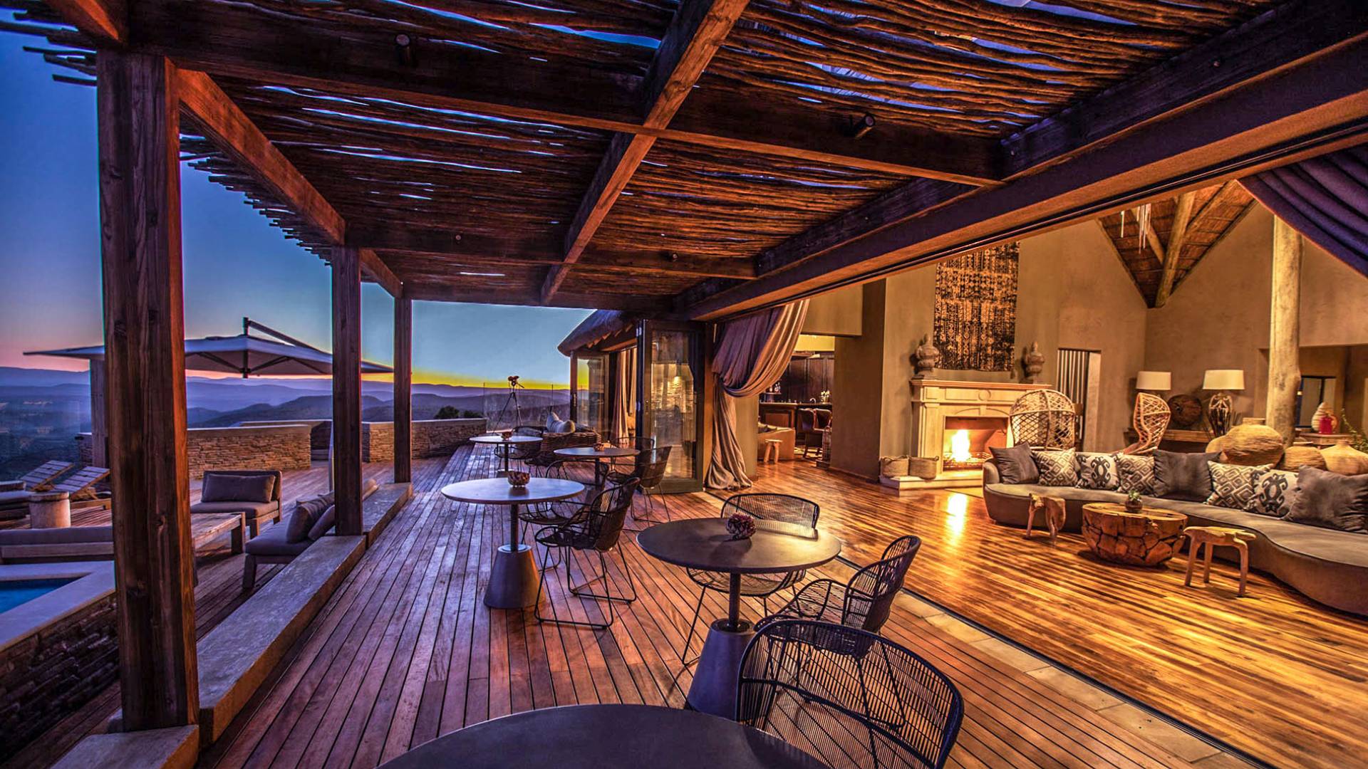 The décor and interiors feature earthy tones of brown and beige, which give the sense of a connection to the surrounding nature, as do the textures of wood, wool and similar natural fibres. Blazing fireplaces in each reception room keep guests cosy from the sometimes-nippy temperatures of the great outdoors, while the infinity pool is a sublime place to cool off when the mercury rises. Step out onto the sweeping decks and indulge in the magical silence of the night air and a glorious display of stars above.