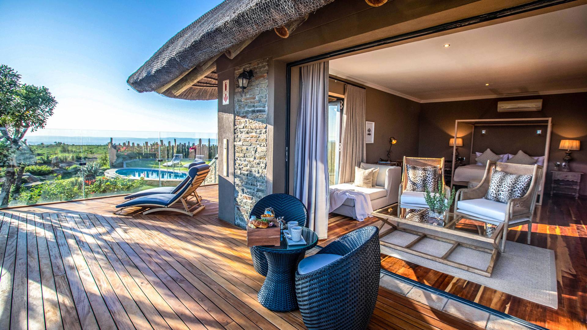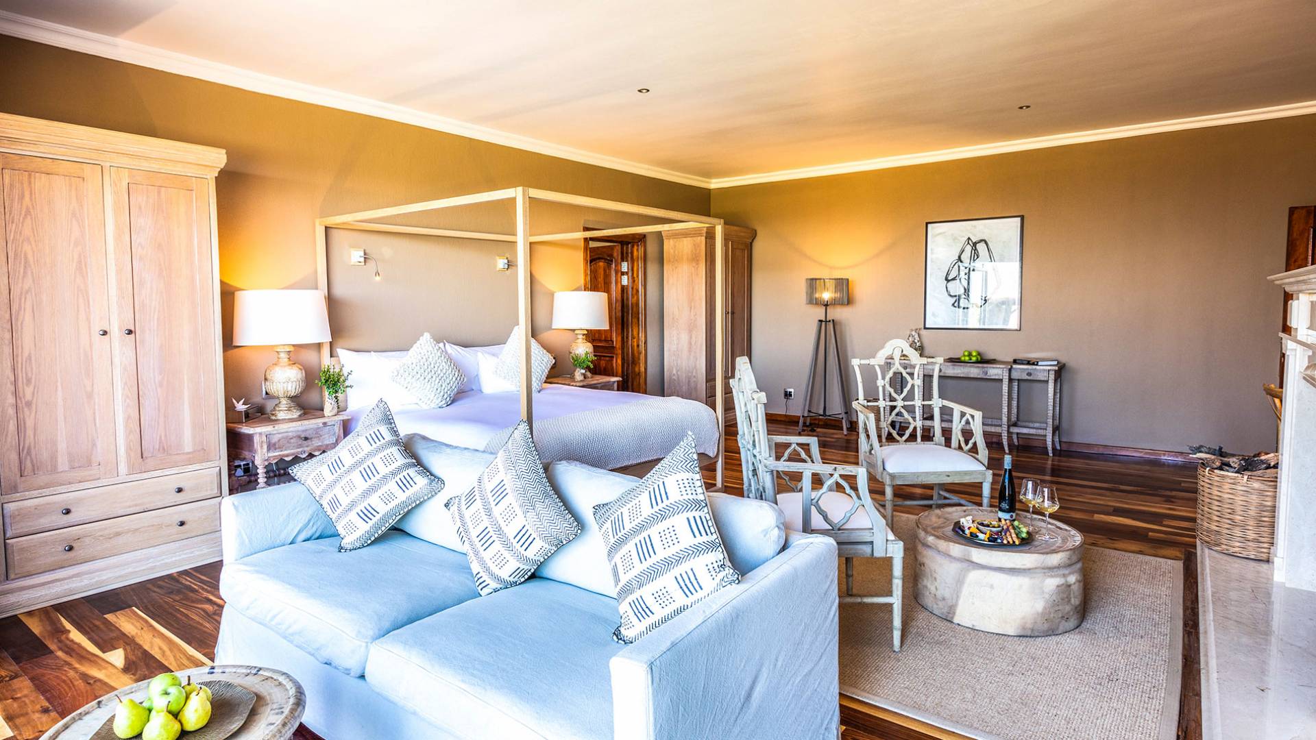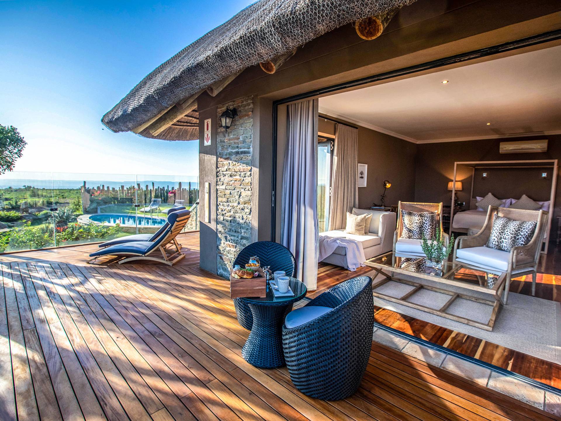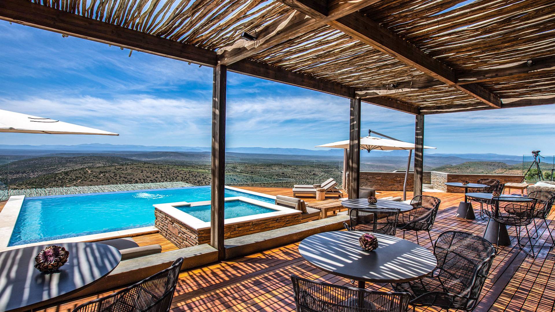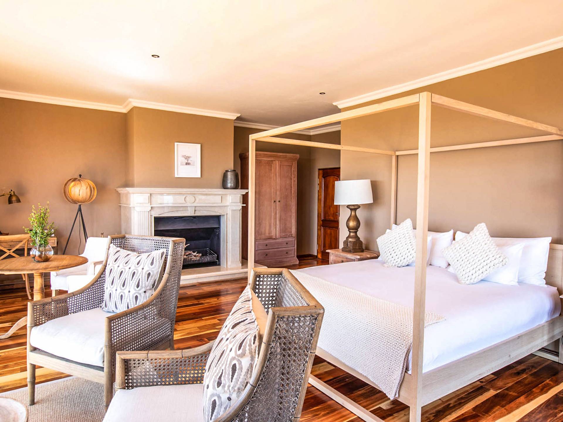 The décor and interiors feature earthy tones of brown and beige, which give the sense of a connection to the surrounding nature, as do the textures of wood, wool and similar natural fibres. Blazing fireplaces in each reception room keep guests cosy from the sometimes-nippy temperatures of the great outdoors, while the infinity pool is a sublime place to cool off when the mercury rises. Step out onto the sweeping decks and indulge in the magical silence of the night air and a glorious display of stars above.