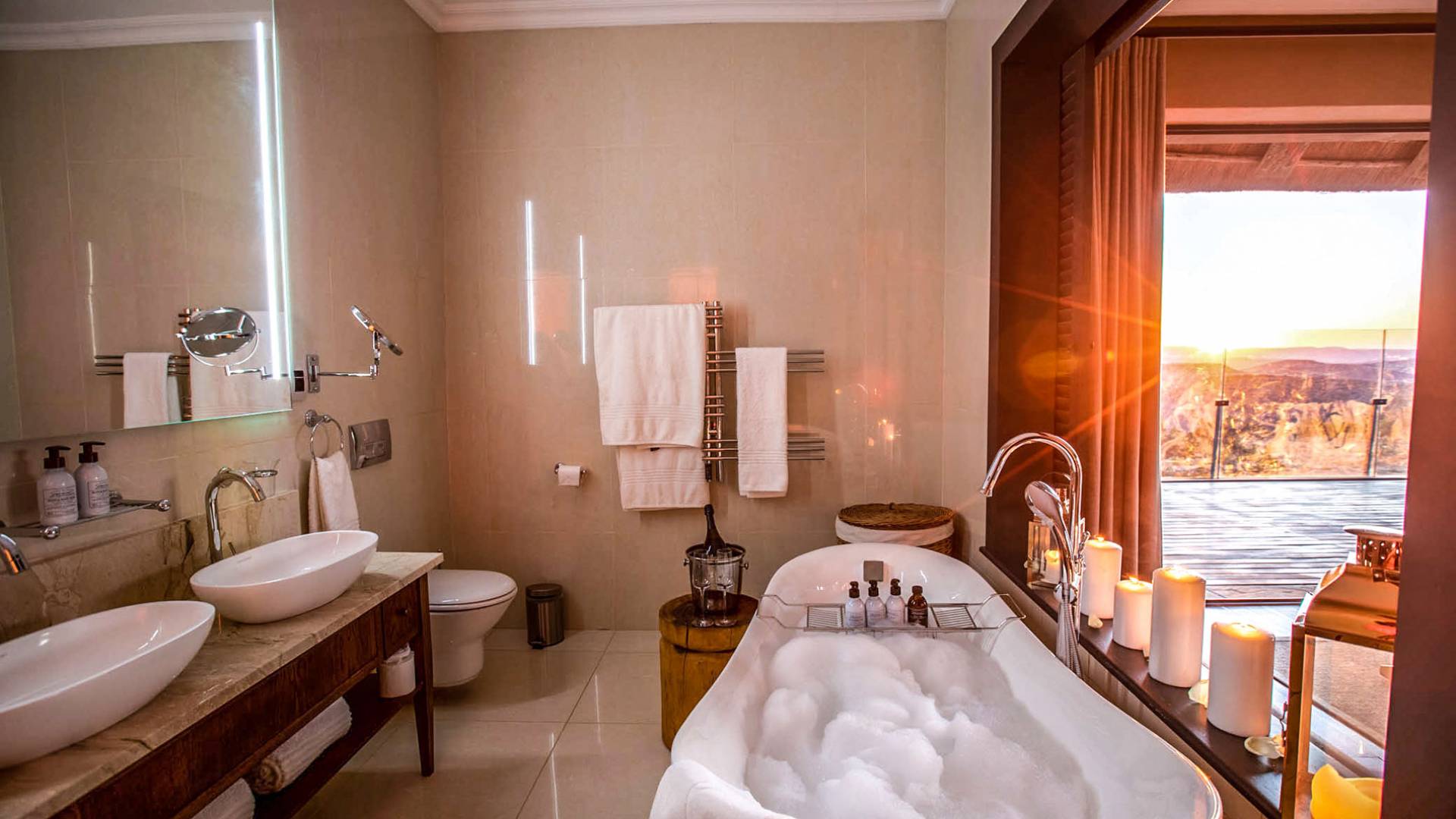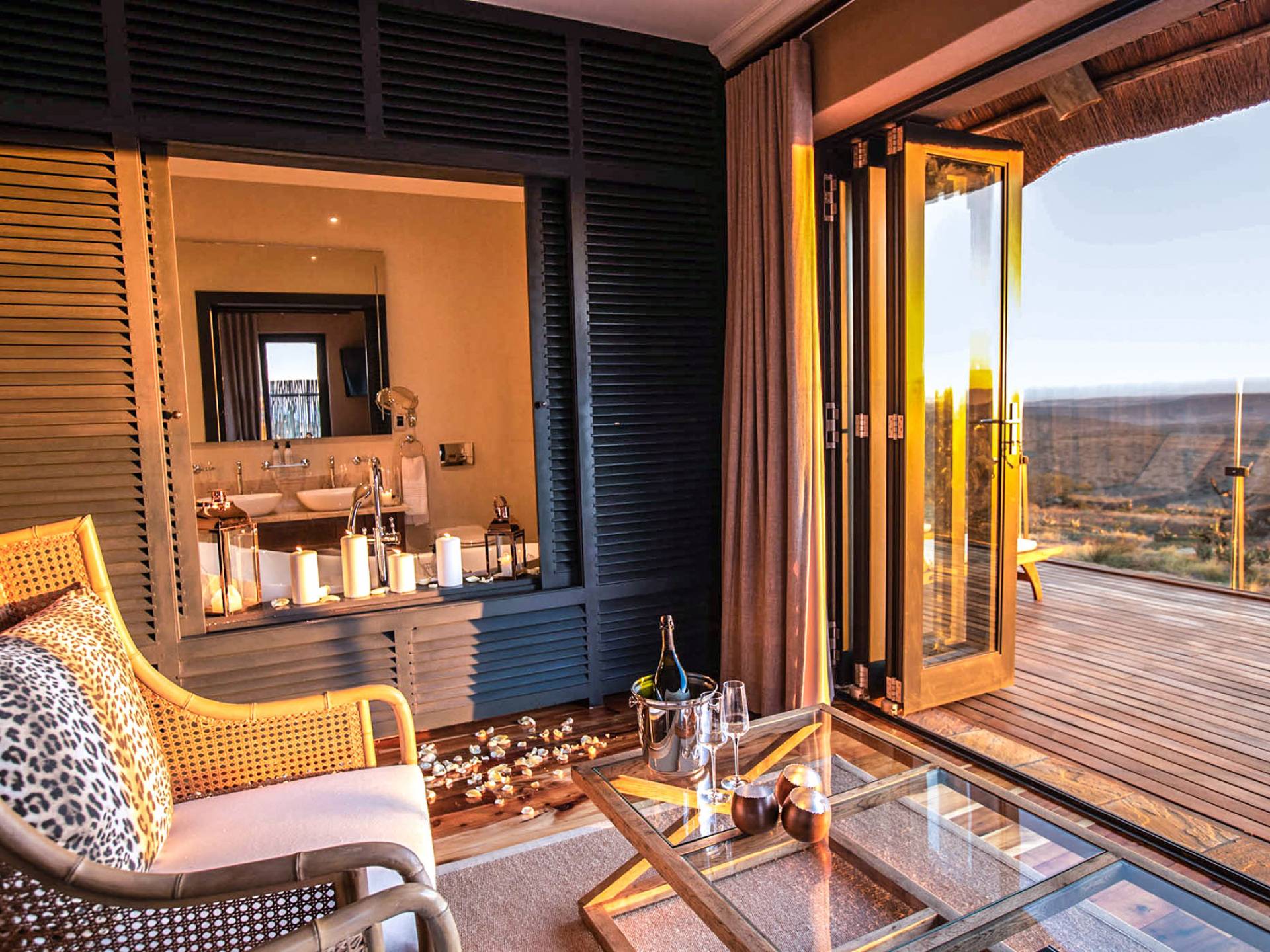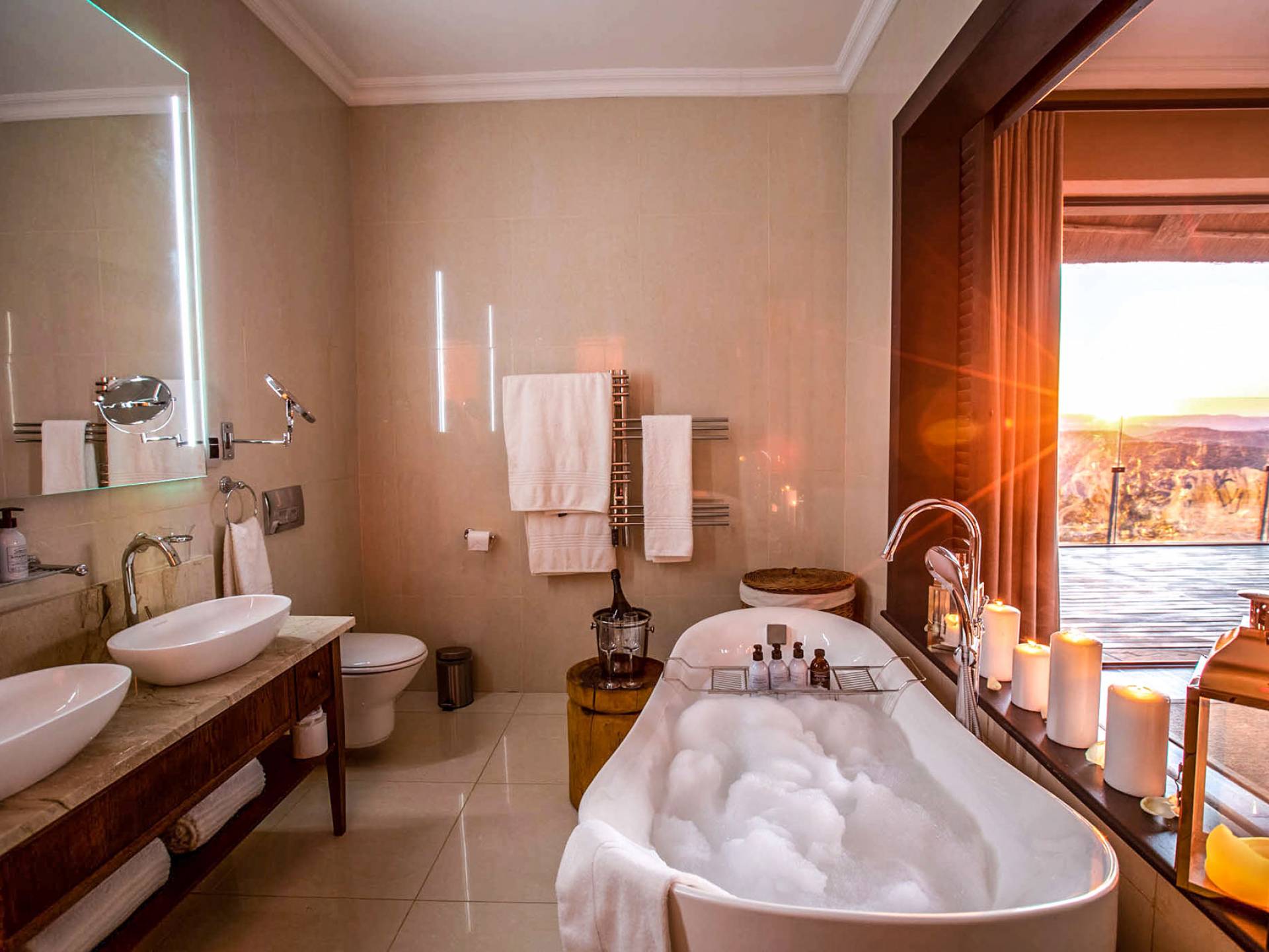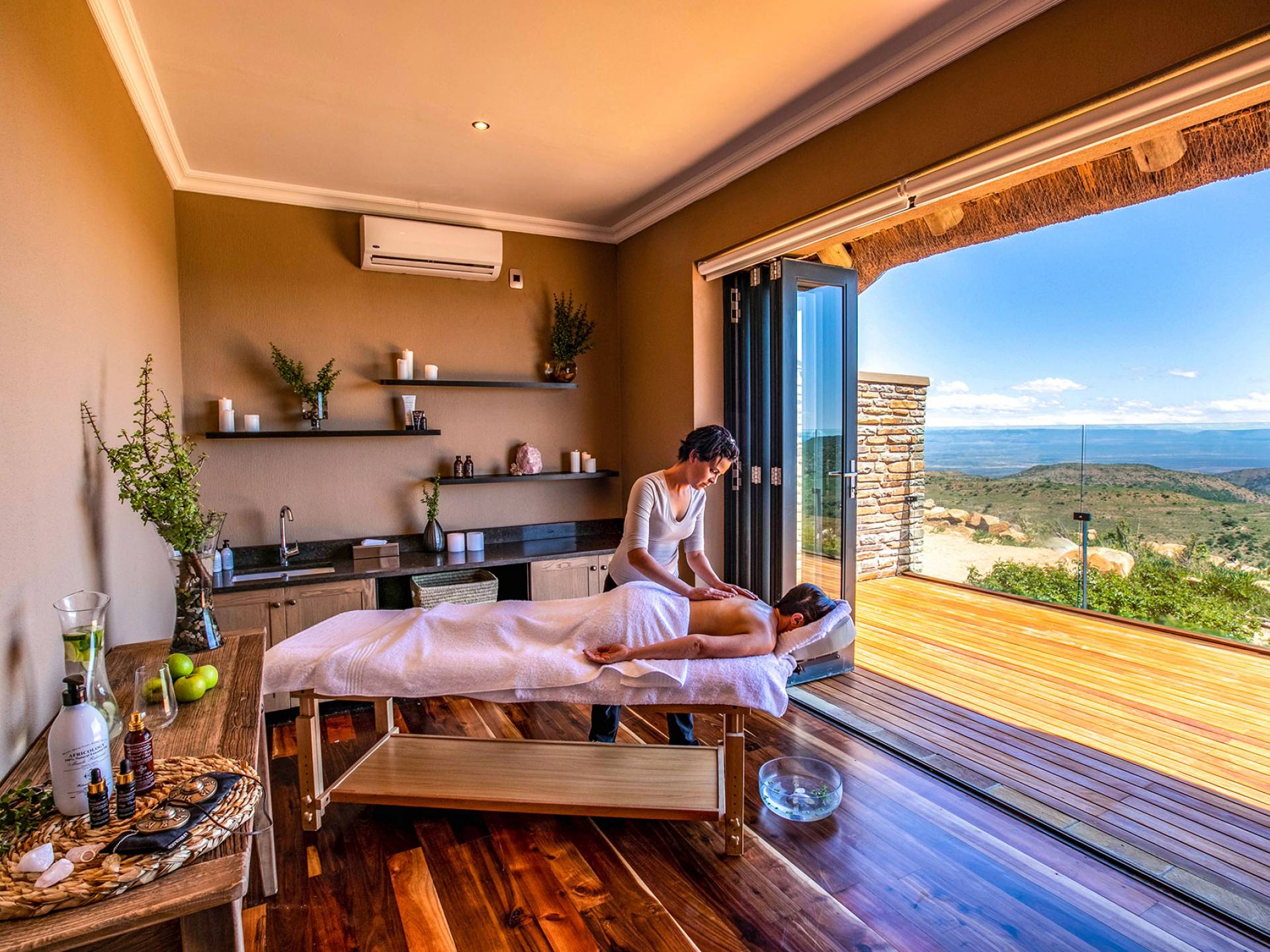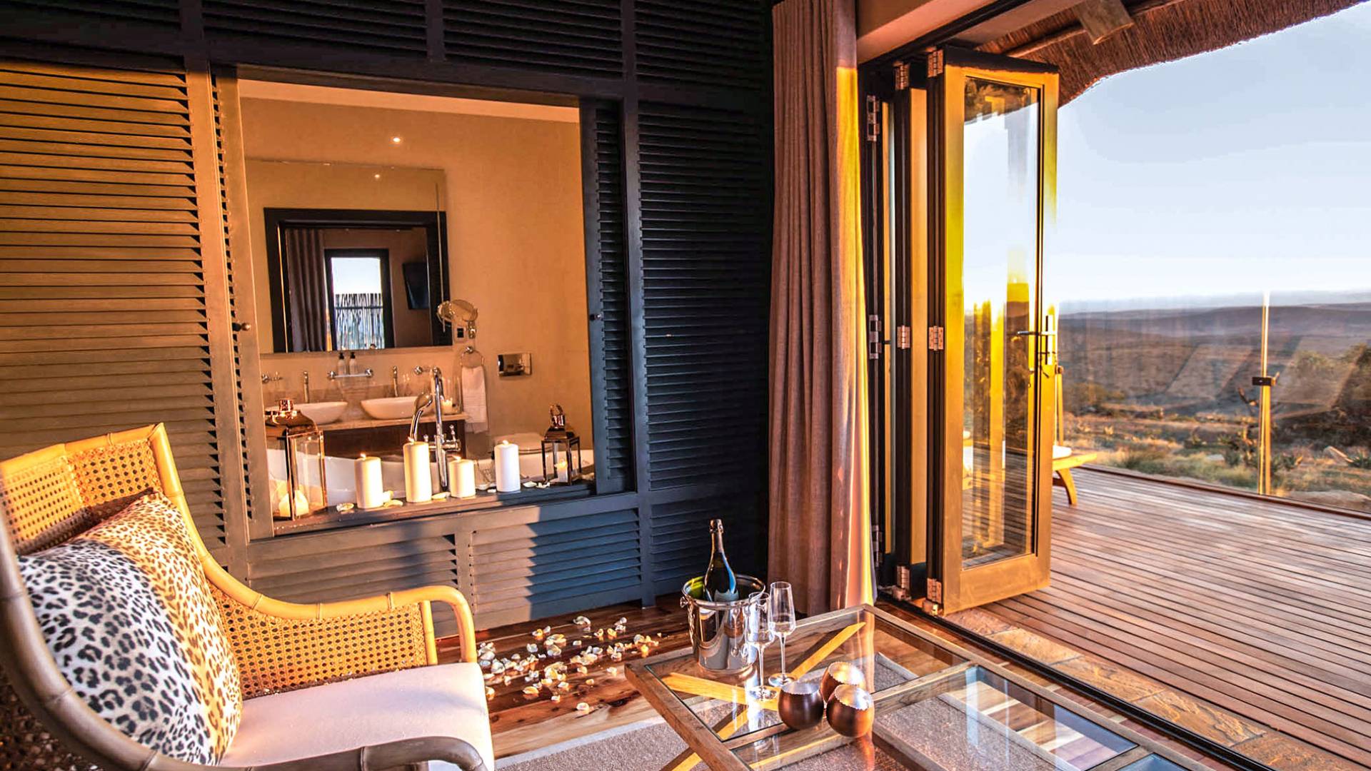 The décor and interiors feature earthy tones of brown and beige, which give the sense of a connection to the surrounding nature, as do the textures of wood, wool and similar natural fibres. Blazing fireplaces in each reception room keep guests cosy from the sometimes-nippy temperatures of the great outdoors, while the infinity pool is a sublime place to cool off when the mercury rises. Step out onto the sweeping decks and indulge in the magical silence of the night air and a glorious display of stars above.