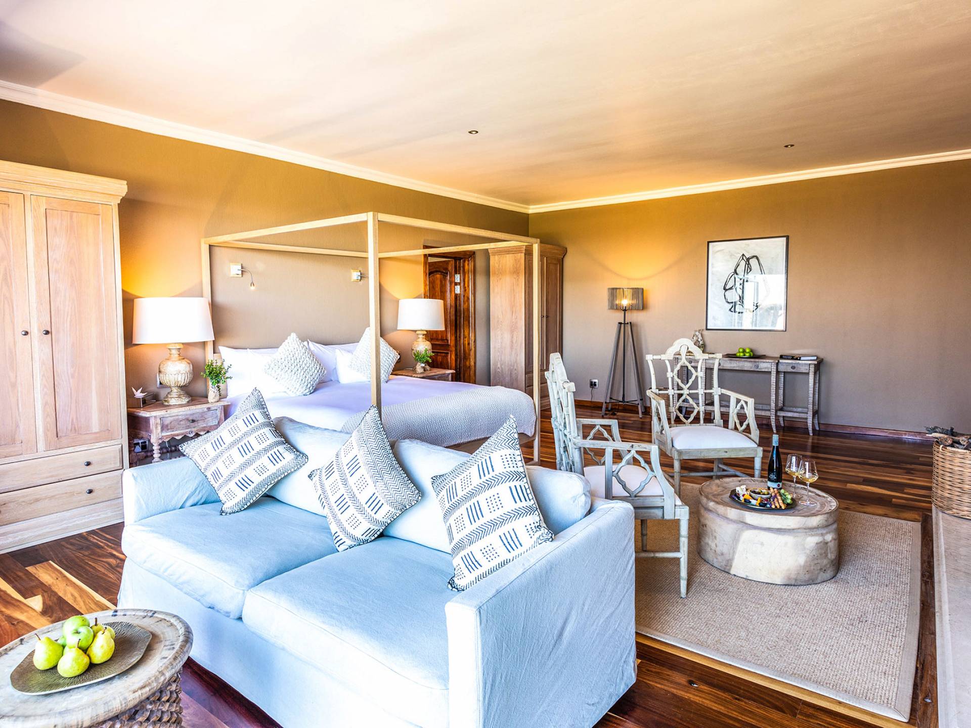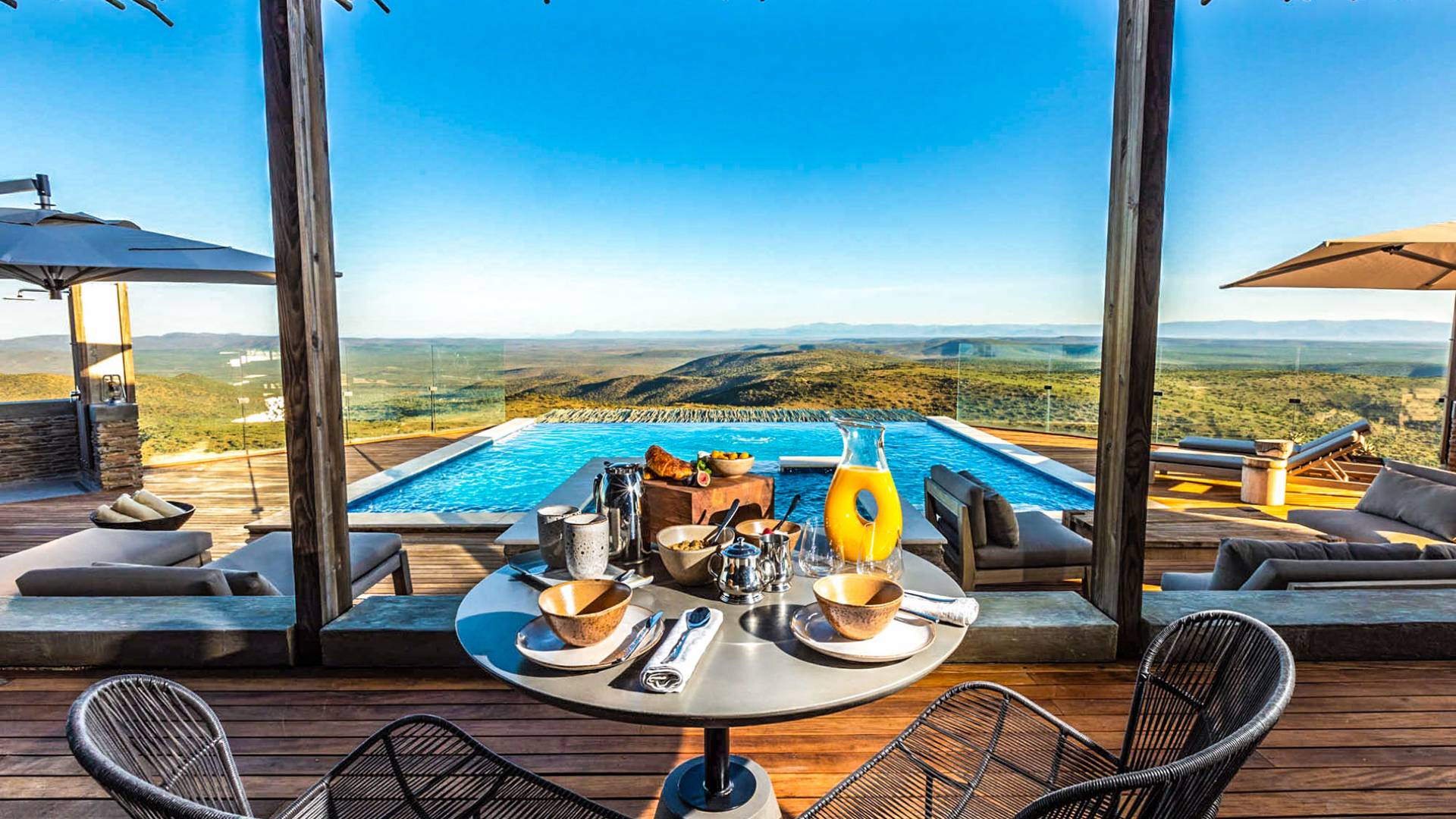 As if floating in an otherworldly atmosphere, Sky Lodge rests atop one of the highest mountains on the reserve. Floor-to-ceiling glass doors in the reception areas perfectly frame the magnificent surroundings. Comprising seven beautifully appointed suites and two separate apartments, it makes an ideal sole-use villa for extended families or groups of friends. Each suite is spacious, light-filled and furnished with all the modern amenities one would expect. Two of the suites also have their own private pools overlooking resplendent views that replenish the soul.