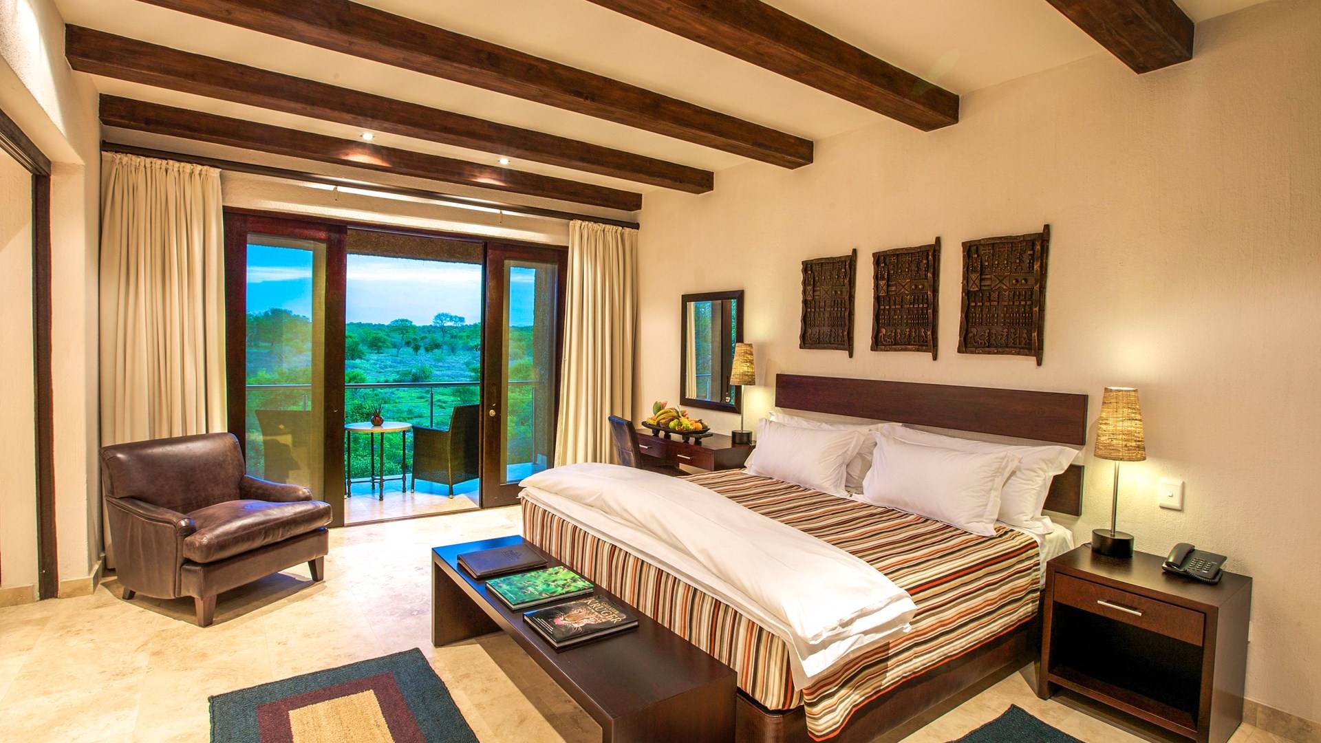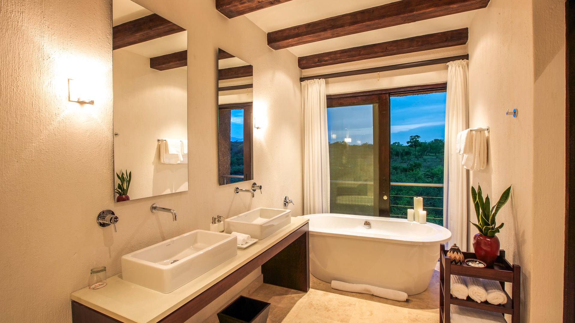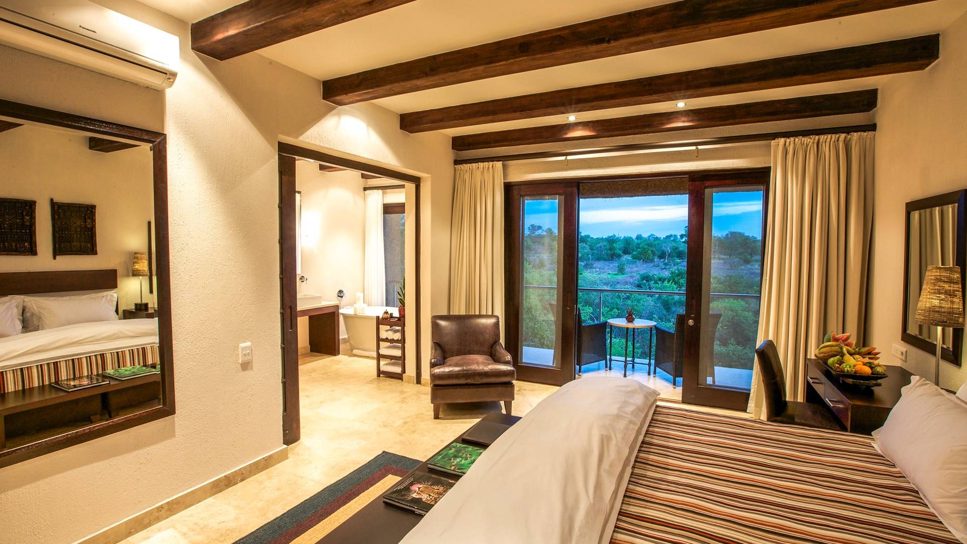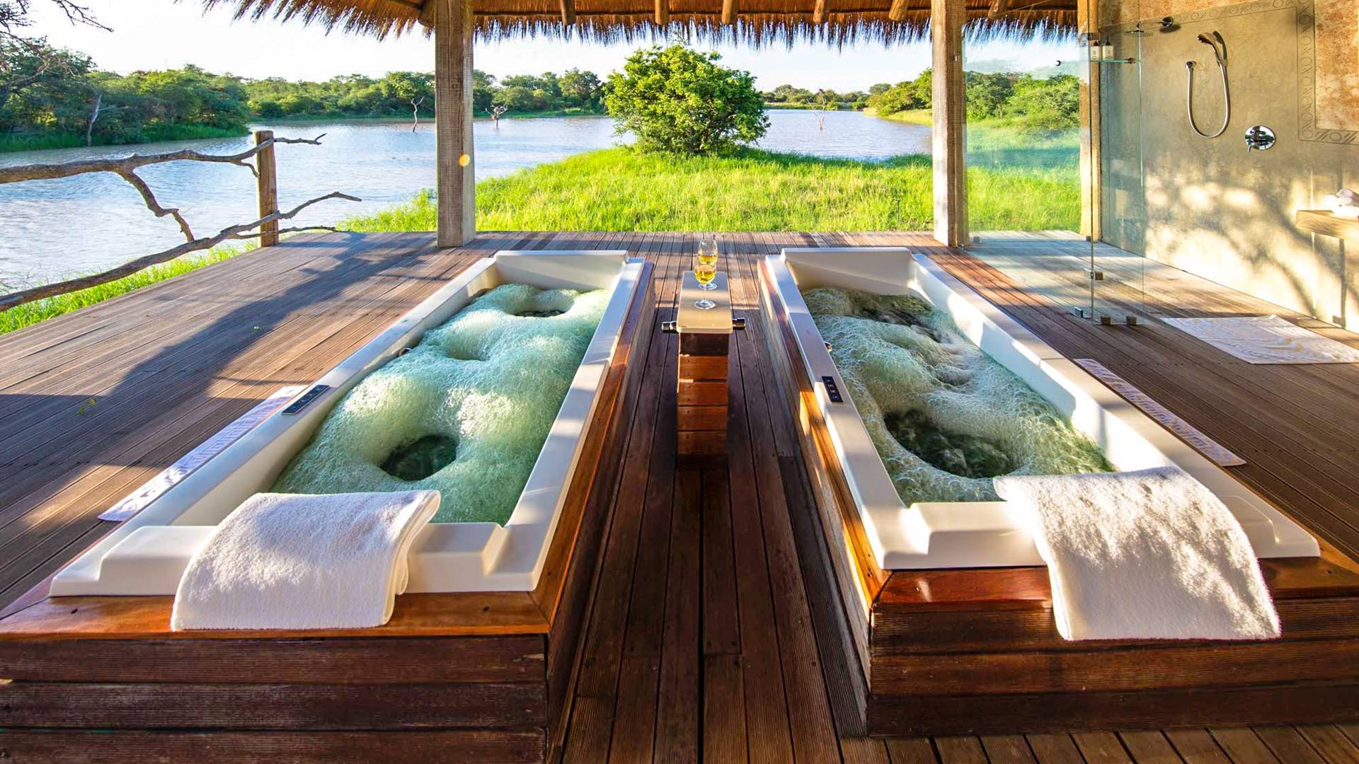 Tucked away in the privacy of the russet bushwillow trees surrounding the African spa, River Lodge Spa Suite features magnificent floor-to-ceiling glass doors and frameless windows that offer expansive views of the reserve – even from your bathroom. For those looking to find their zen, the spa suites come highly recommended, as does a spot of yoga from the privacy of your patio while overlooking the magnificence of the bush. The suite is equipped with an en-suite bathroom, air conditioning, coffee, and tea-making facilities, a minibar, as well as a lock-up safe, and international plugs.