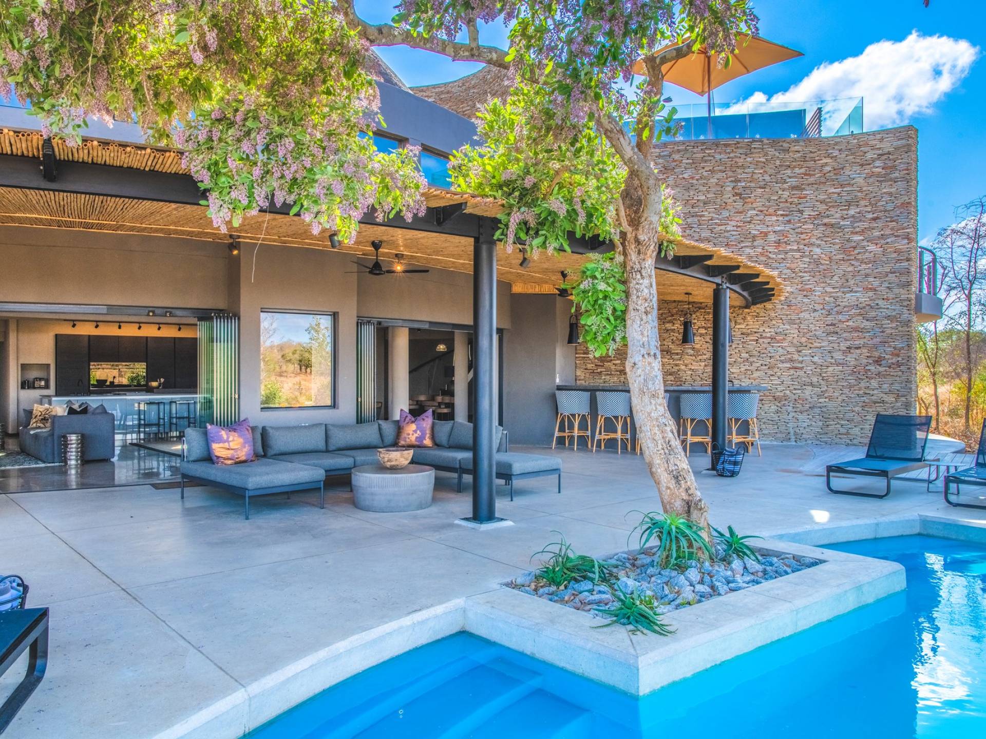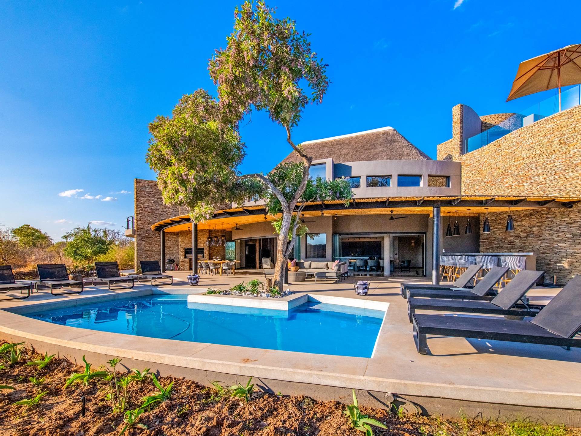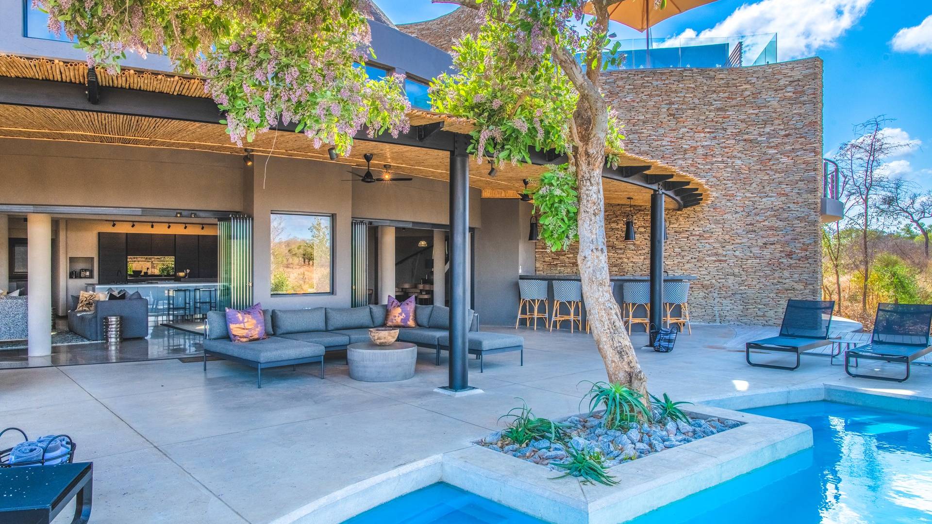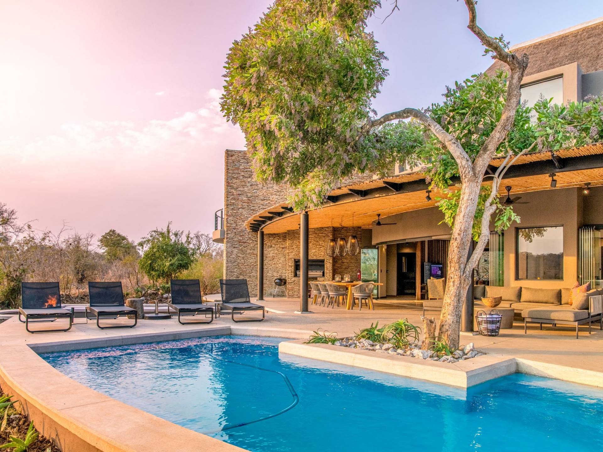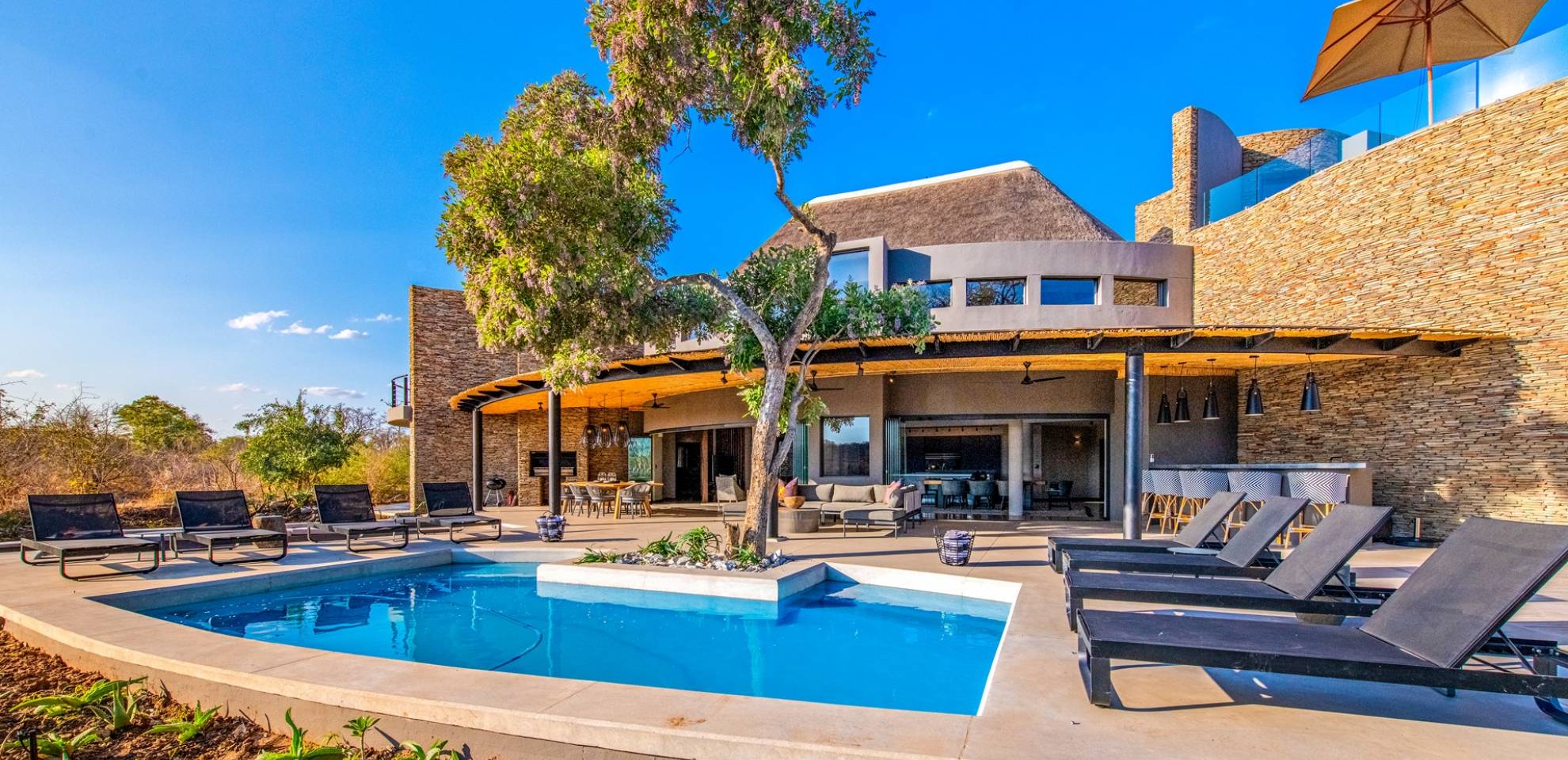 Mpfuvu Lodge at Elephant Point is a luxury villa rental with 4 bedrooms and a private pool. Elephant Point is located in Kruger National Park, South Africa. View photos, rates and info here.
