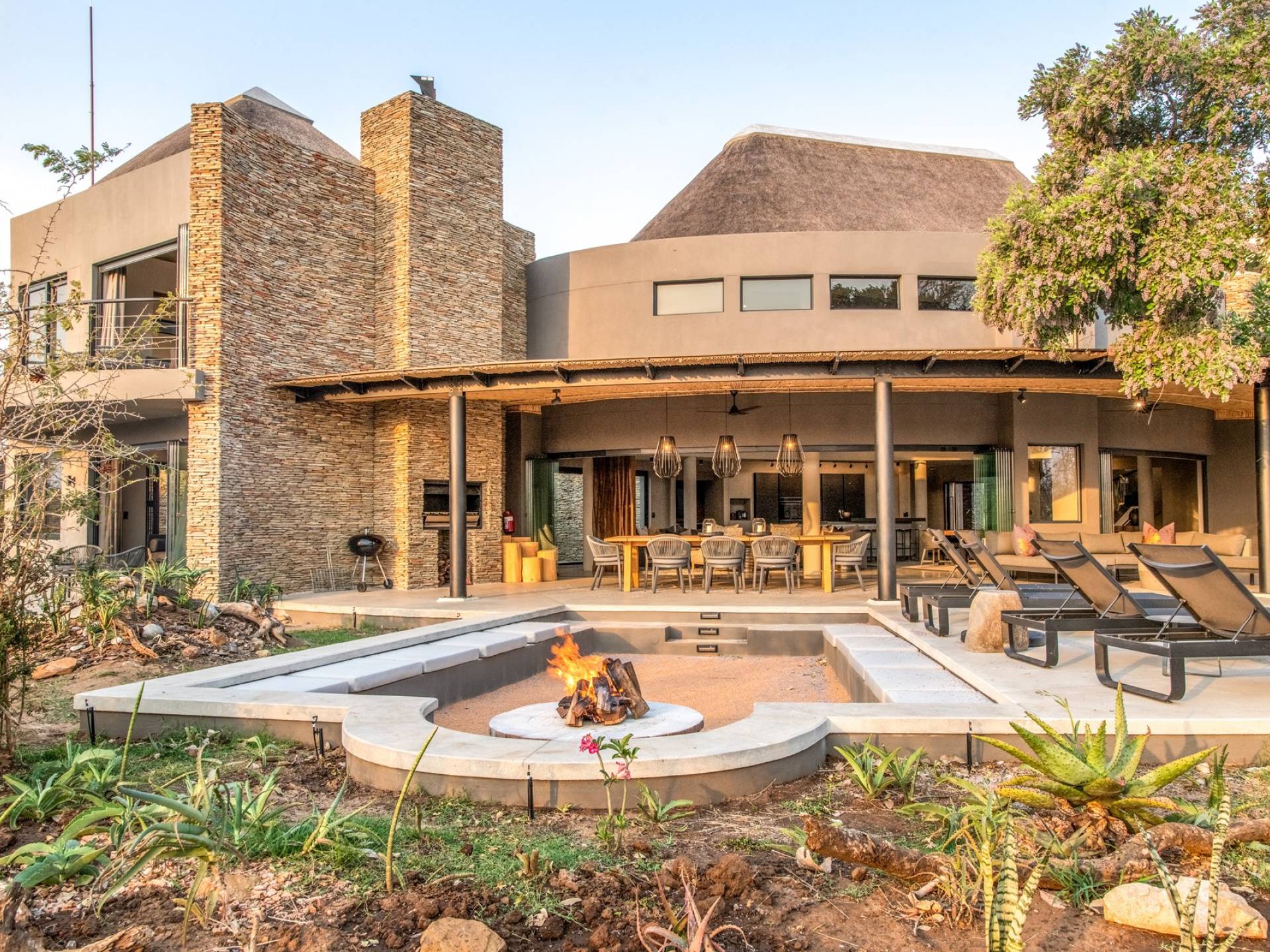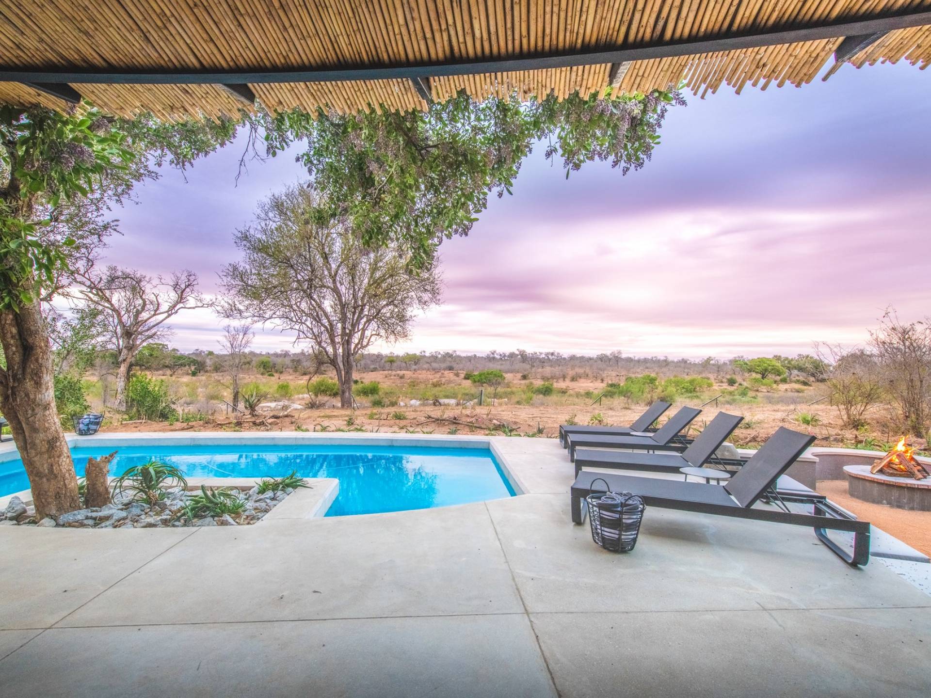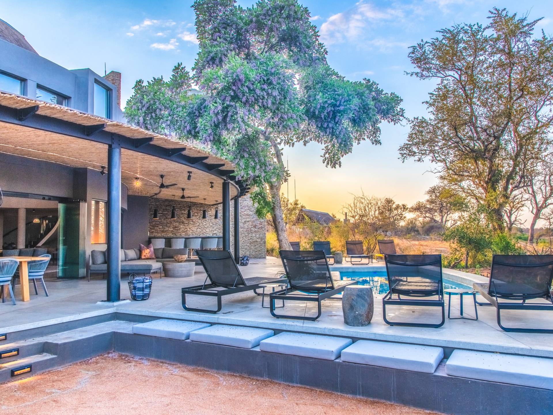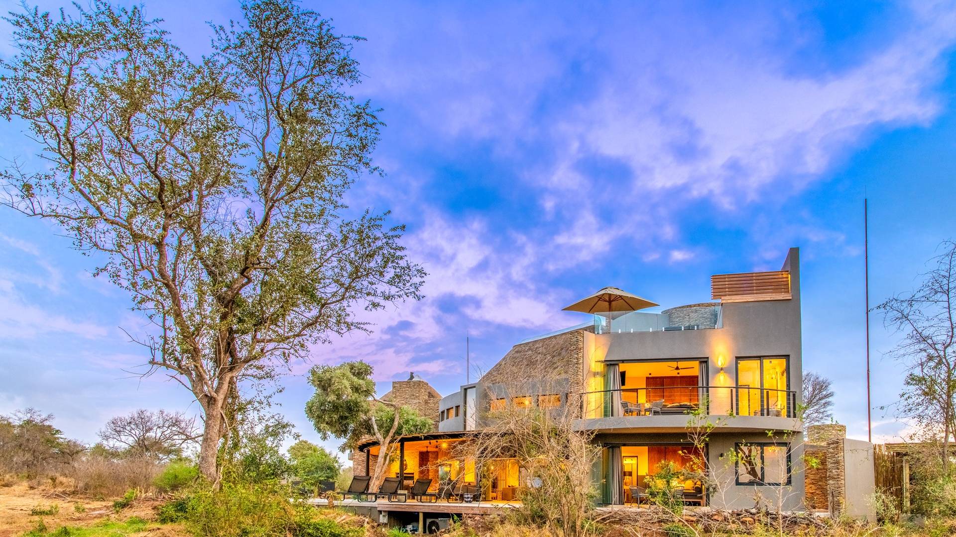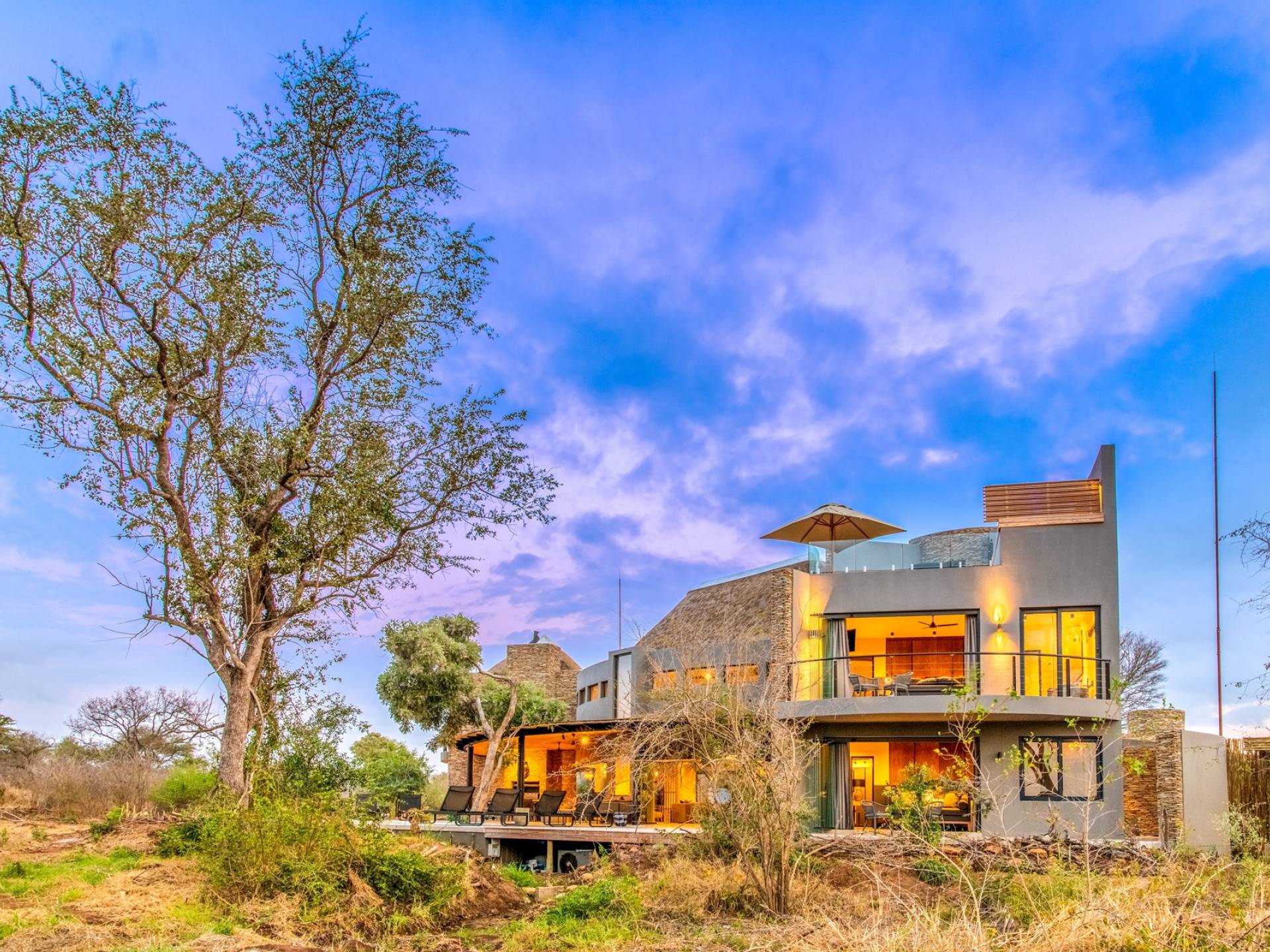 Mpfuvu Lodge is situated on the banks of the magnificent Sabi River, providing spectacular views over the river and into the Kruger National Park. It is a world-class masterpiece with its own allure, boasting a private pool, private deck, private boma, private parking, free WiFi, en-suite bathrooms, living areas, dining areas, kitchen, sensory comforts and intuitive service.