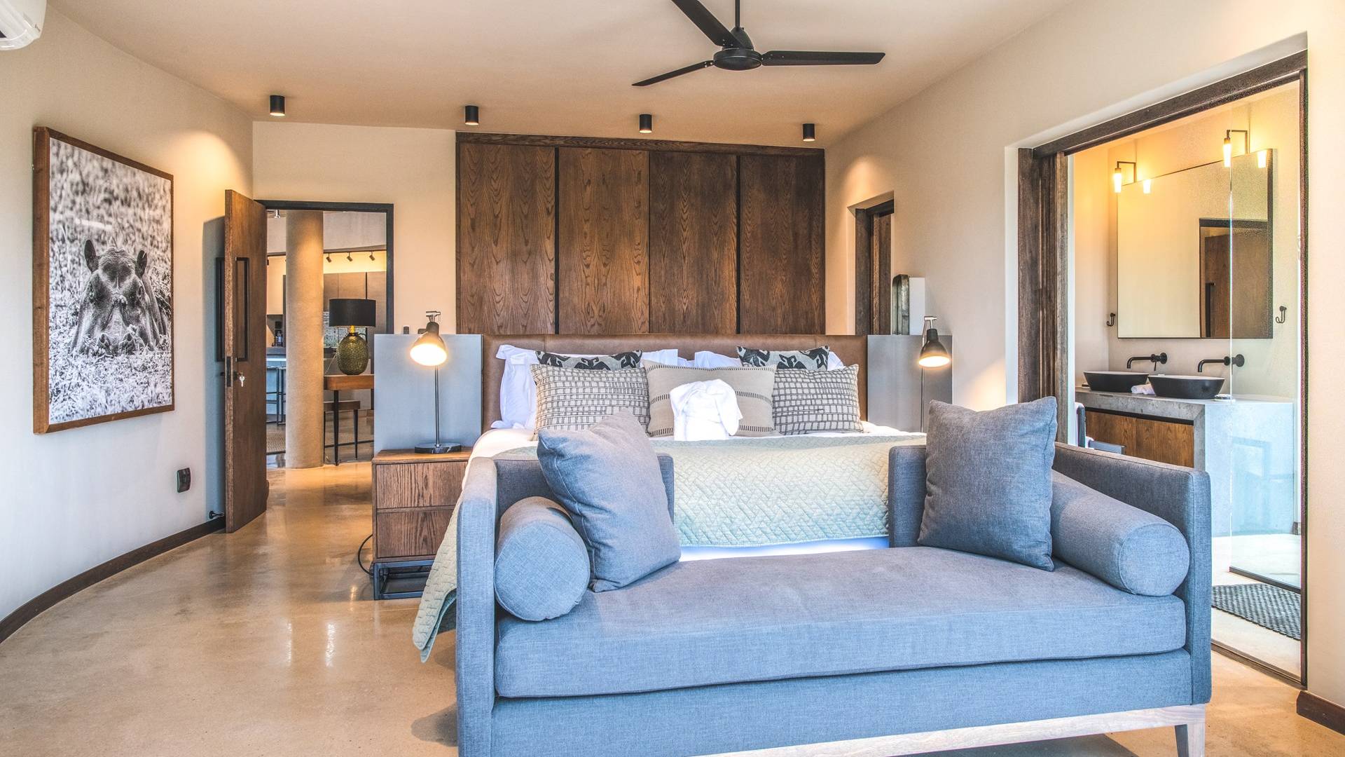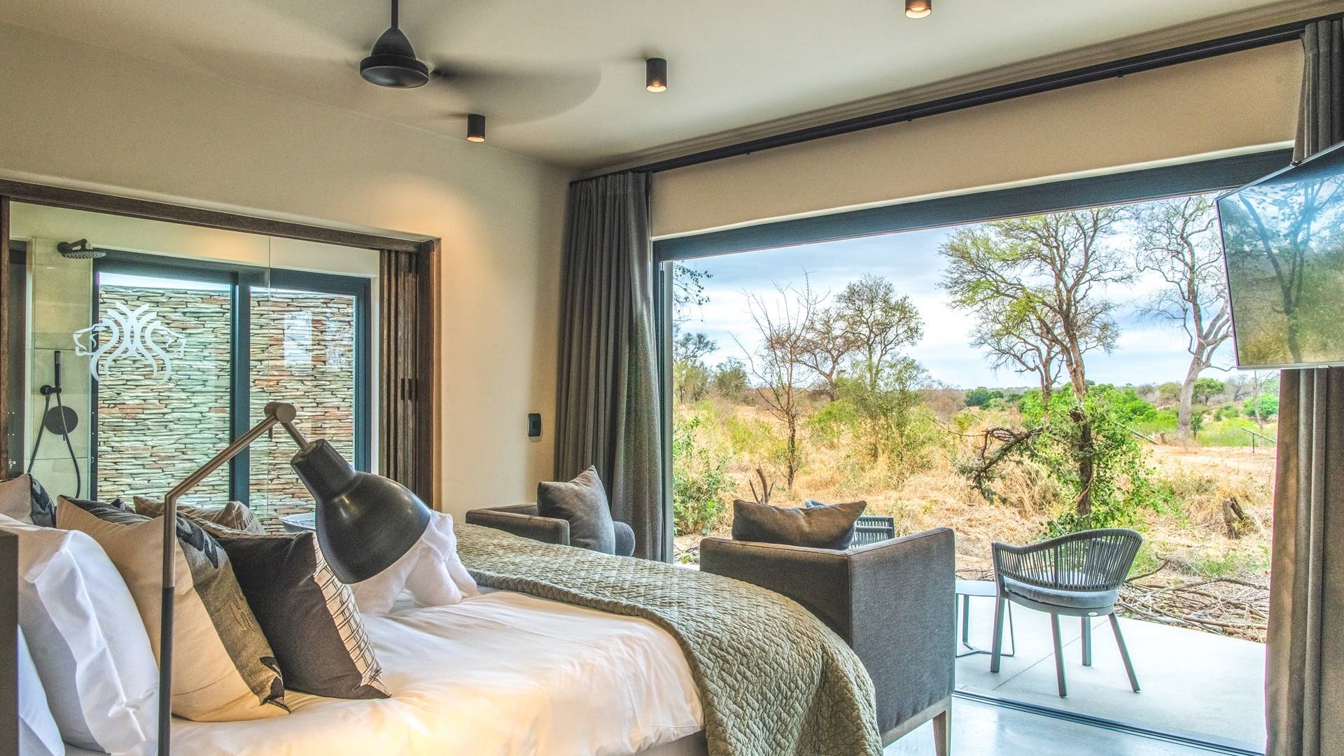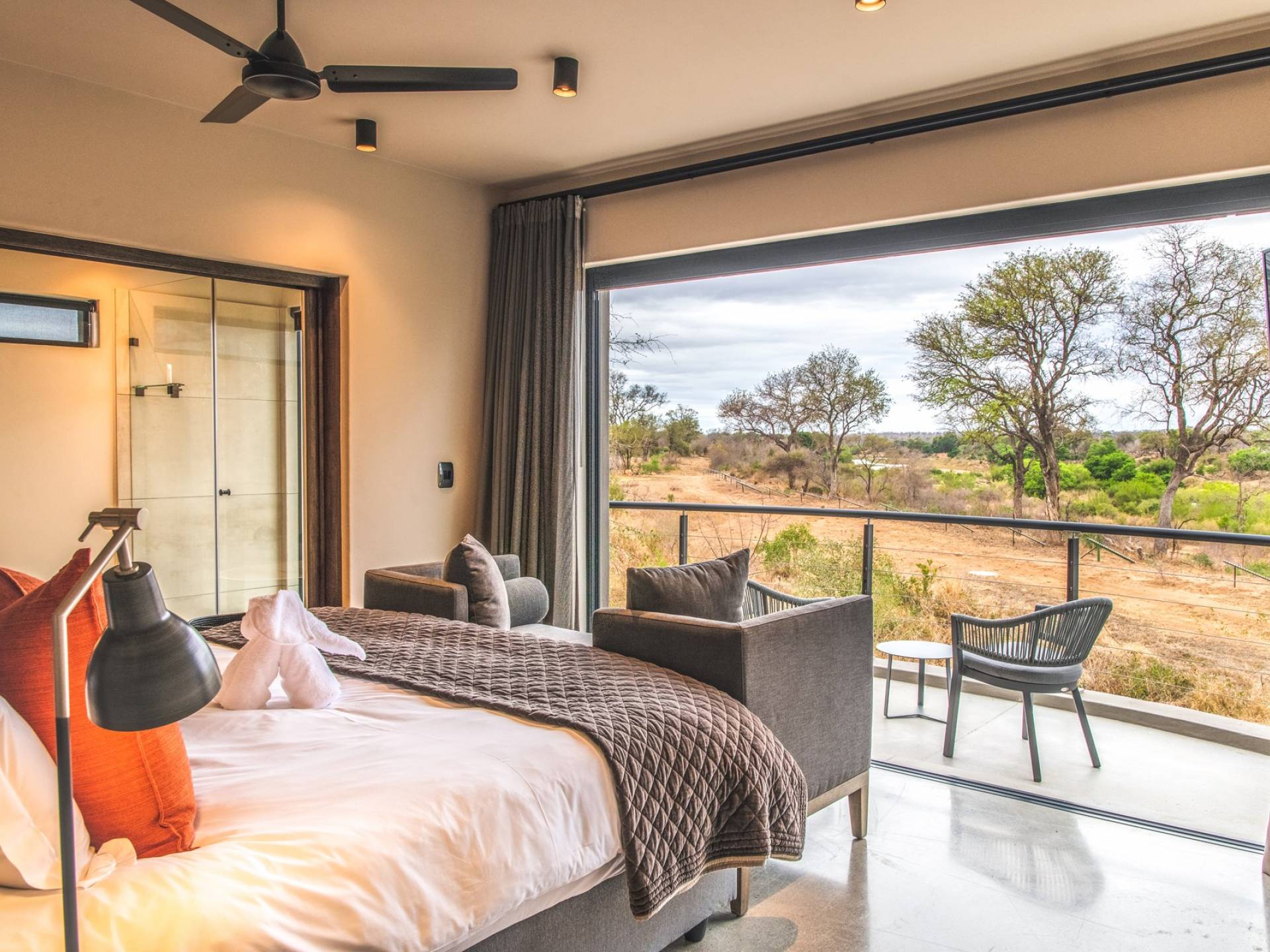 The estate is conveniently located only 6km from the Paul Kruger Gate, 26km from Skukuza Airport, or a 5-hour drive from Johannesburg. Although not in the park itself, the lodges are set alongside the banks of the majestic Sabie River where mighty Elephants can often be seen grazing and drinking – from which the estate takes its name. nWithin close proximity to other comparable exclusive world-famous game reserves, Elephant Point can be said to be in a league of its own. With every comfort possible, game viewing from your lodge, nature walks within the estate, various dining options available, a mobile spa on call, and intuitive service – you’ll never need to leave your luxurious private lodge.