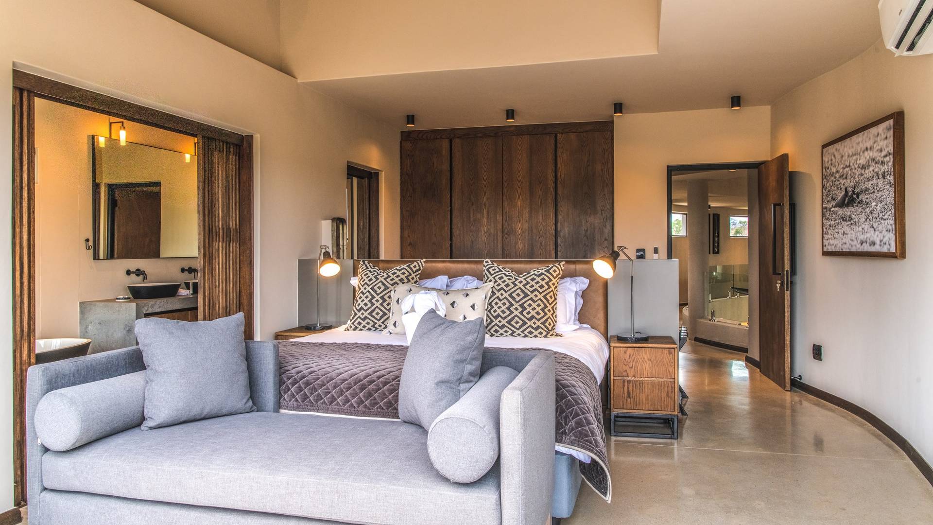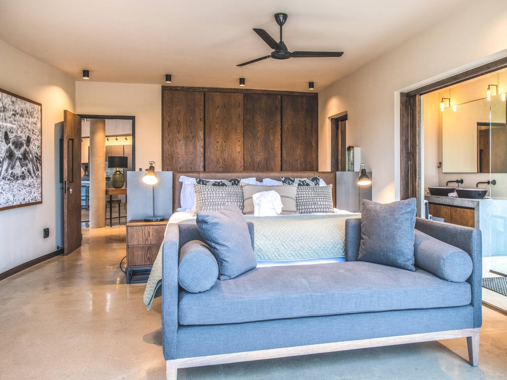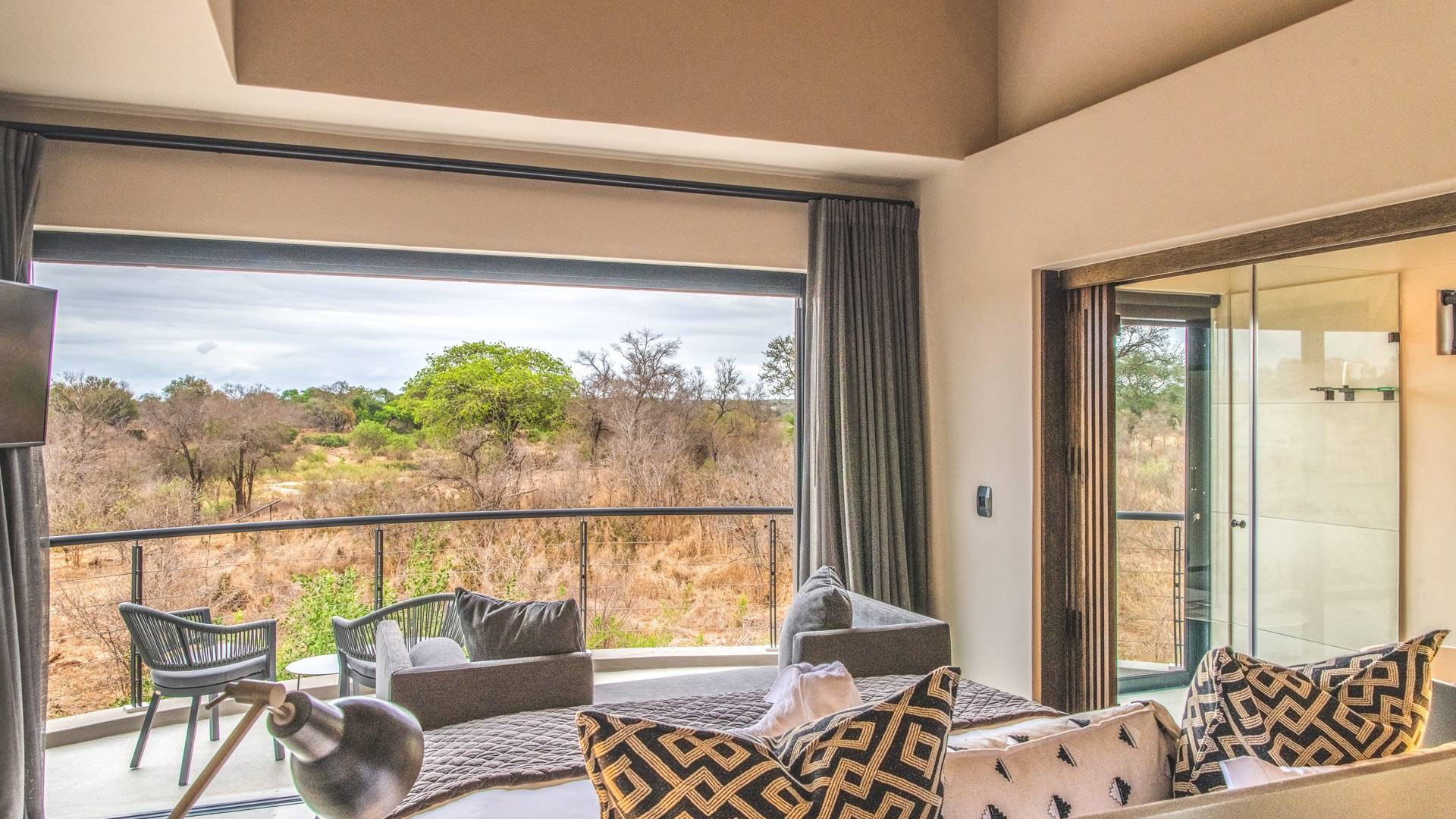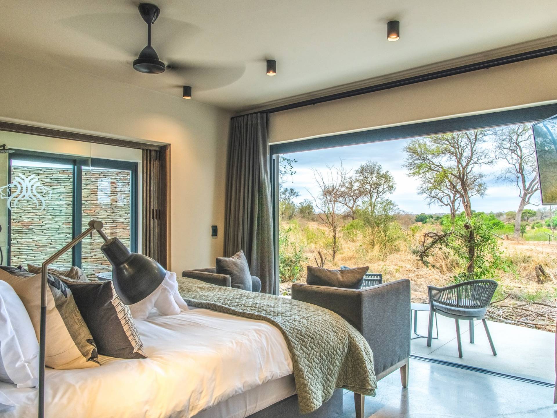 The estate is conveniently located only 6km from the Paul Kruger Gate, 26km from Skukuza Airport, or a 5-hour drive from Johannesburg. Although not in the park itself, the lodges are set alongside the banks of the majestic Sabie River where mighty Elephants can often be seen grazing and drinking – from which the estate takes its name. nWithin close proximity to other comparable exclusive world-famous game reserves, Elephant Point can be said to be in a league of its own. With every comfort possible, game viewing from your lodge, nature walks within the estate, various dining options available, a mobile spa on call, and intuitive service – you’ll never need to leave your luxurious private lodge.