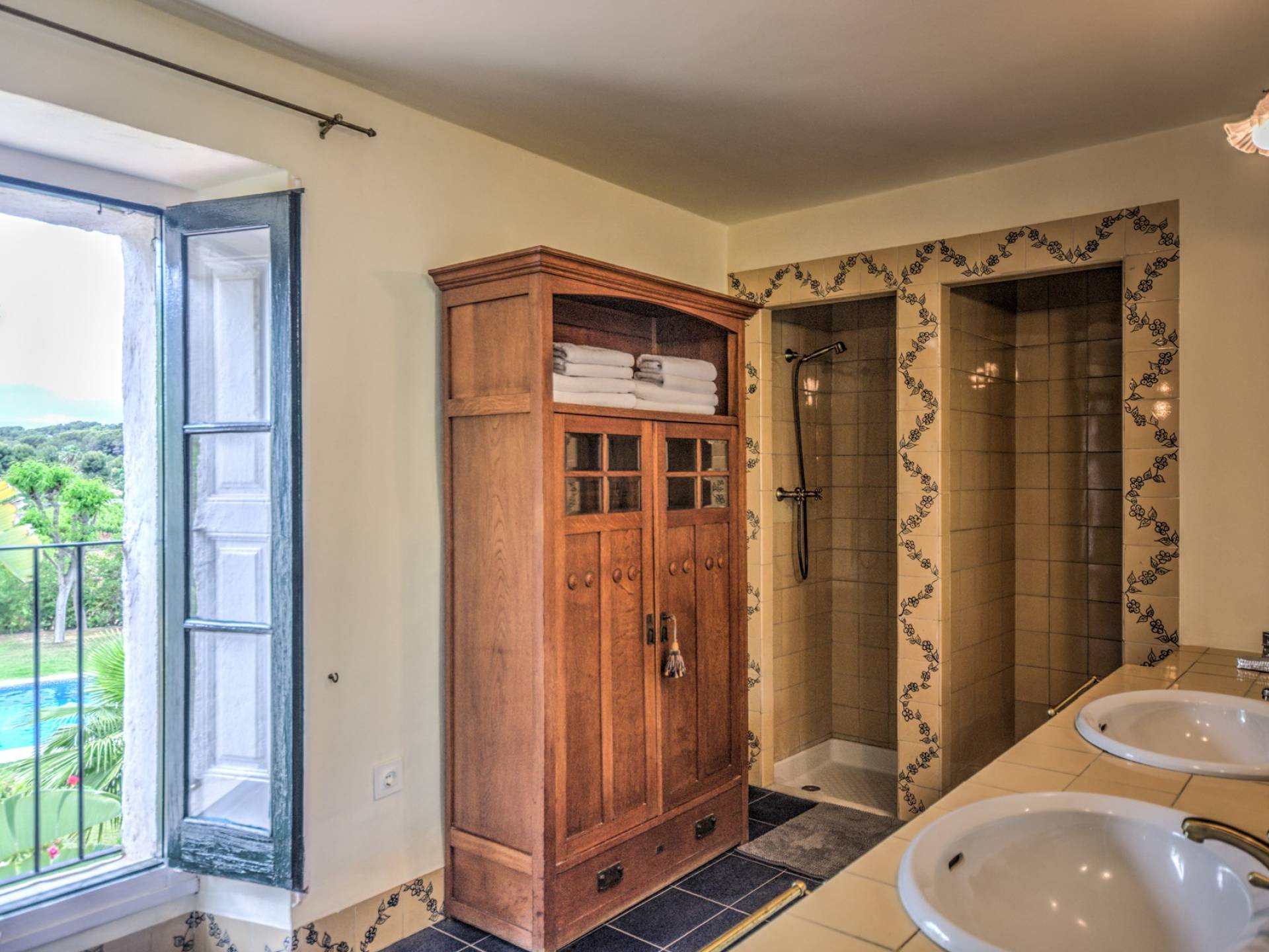 A sweeping staircase leads to the five bedrooms accommodated in the main house. Two of these bedrooms share a spacious bathroom. The master bedroom is also on this level and features an en-suite bathroom and private terrace of 25 m² with magnificent views over the vineyards. Two other bedrooms share a bathroom on this floor and also a 20 m² terrace. Located 15 meters from the main property is The White House, featuring its own terrace and private views - three more bedrooms are housed here. Thirty meters from the main villa is The Cottage, which has two bedrooms, two bathrooms, a kitchen, and a terrace and is perfect for couples with children.