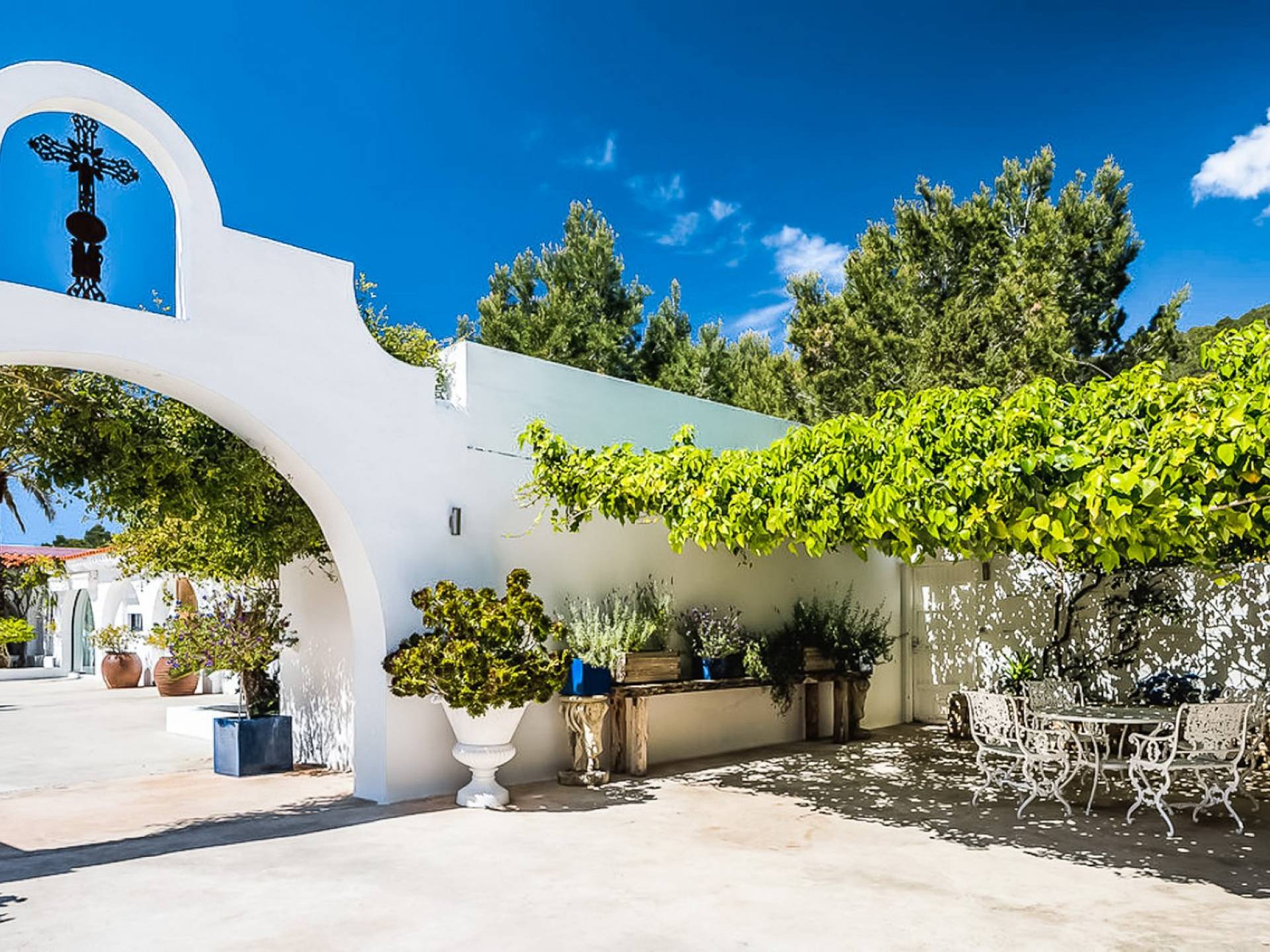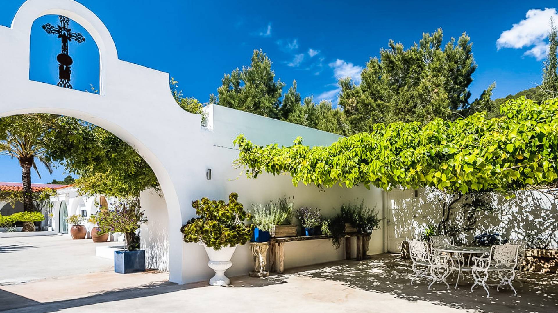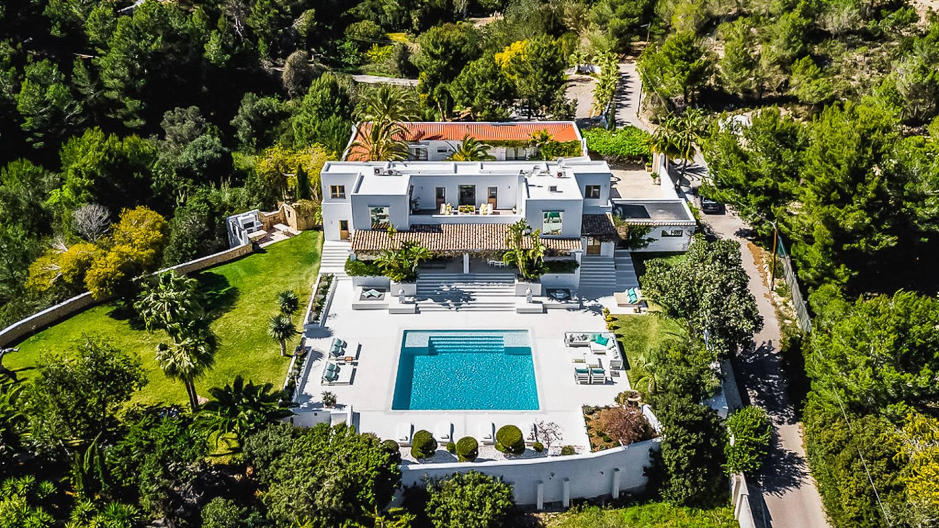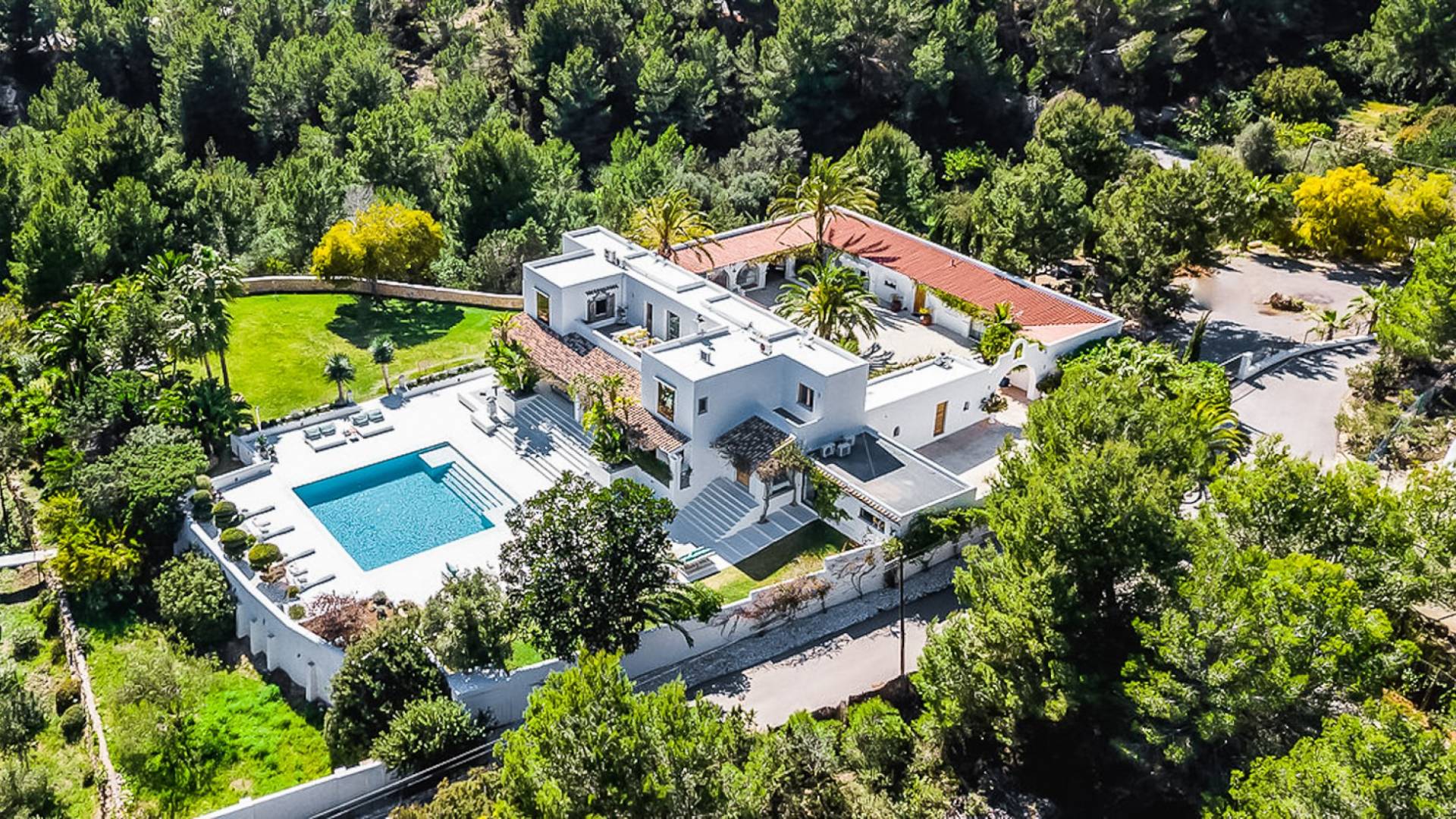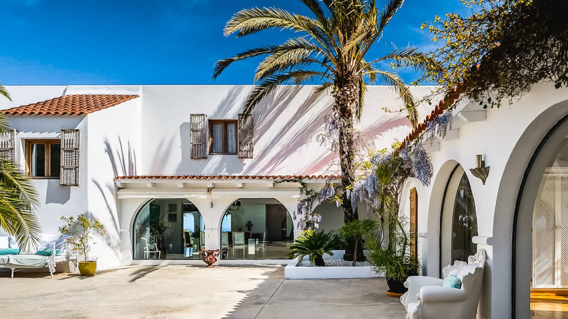 El Zafiro Villa Ibiza is located on a hill only 4 km away from Ibiza town and 5 minutes from the airport. The property is orientated south and has spectacular panoramic sea views overlooking Playa den Bossa, Salinas, Cap des Falco, and Formentera. The property sits on 8,000 m2 of land and the villa has 450 m2 plus a guesthouse of 120 m2.