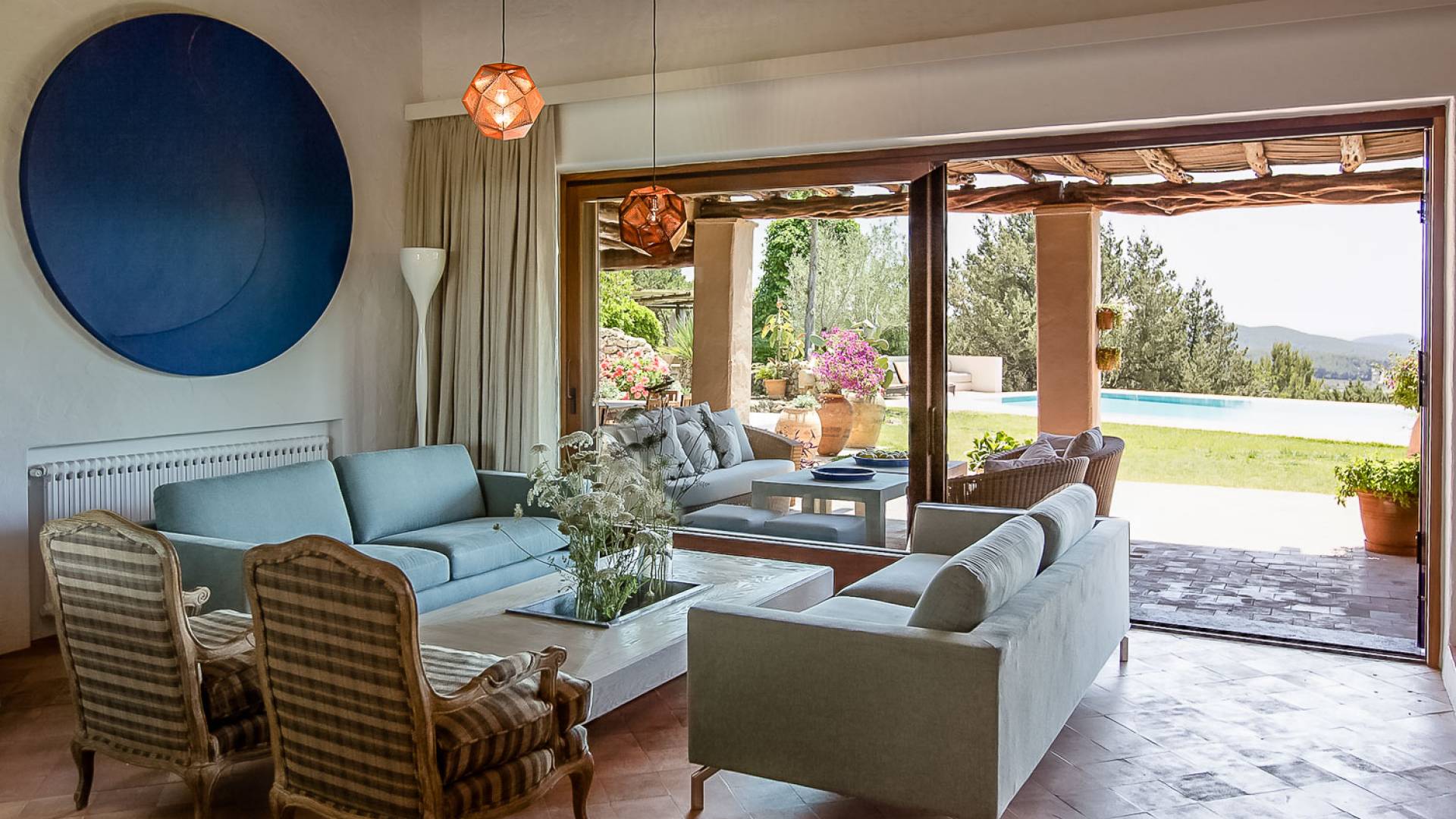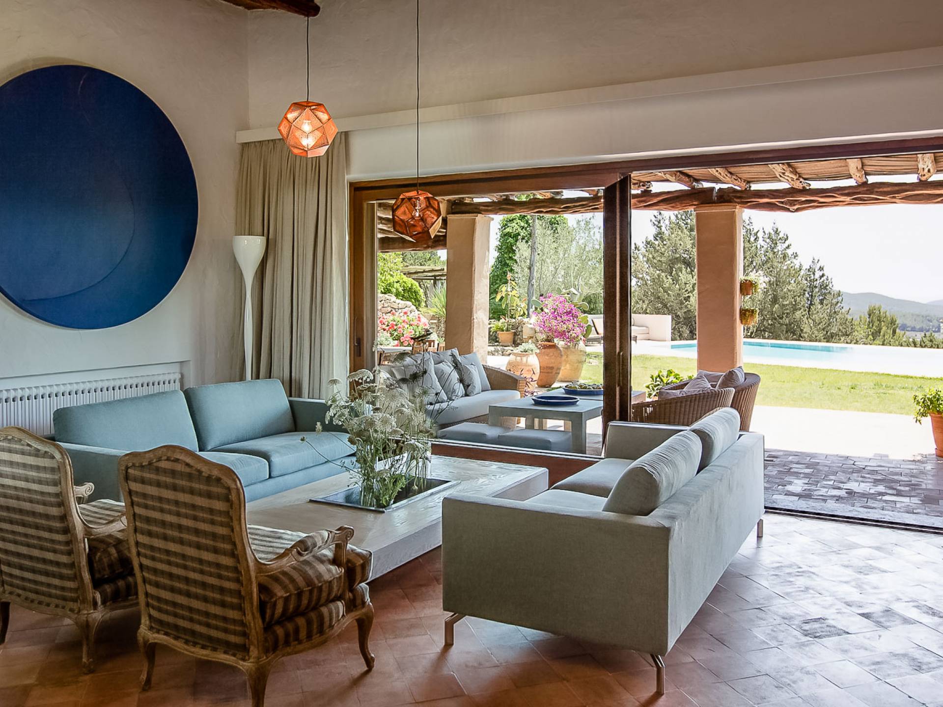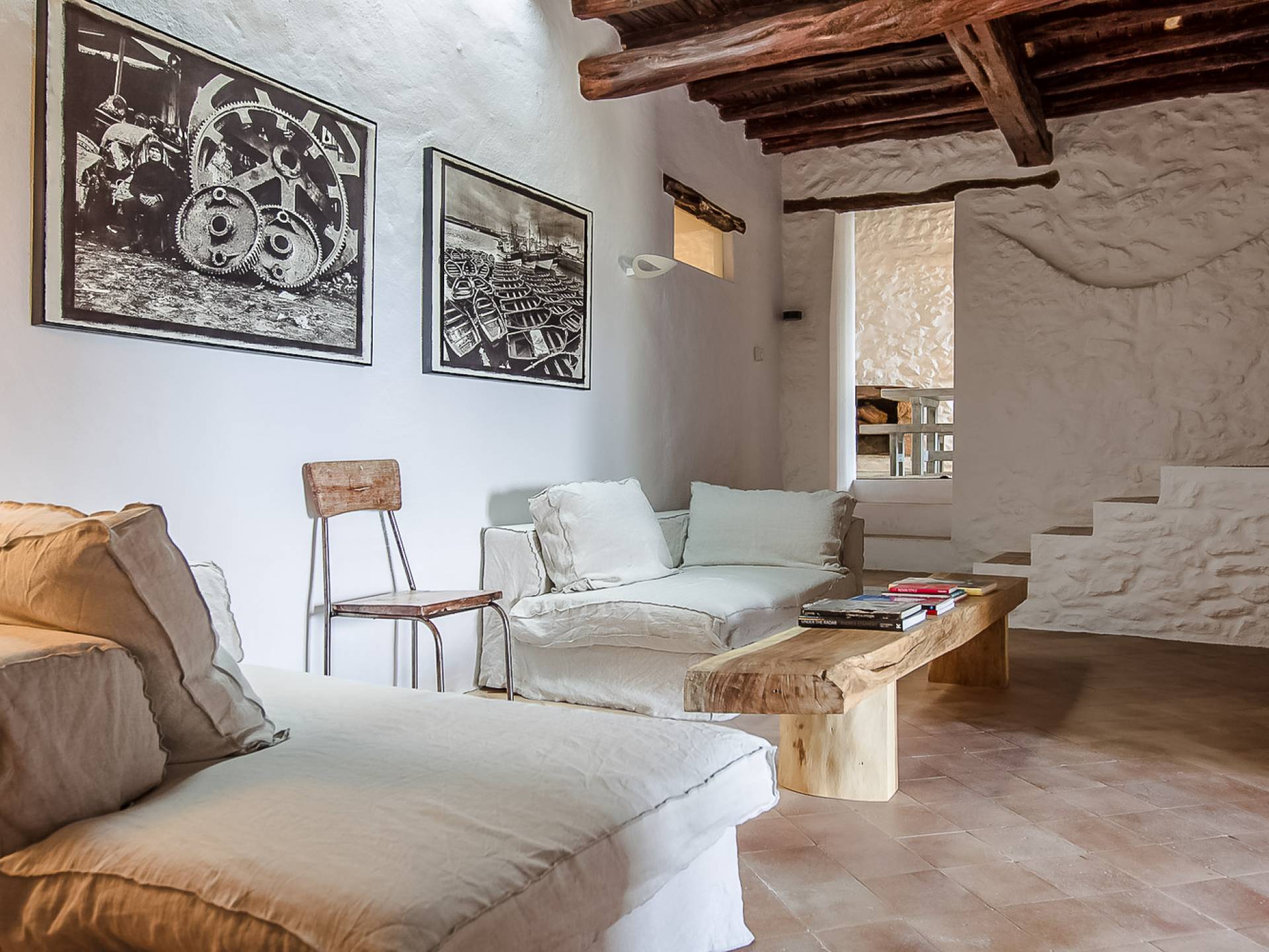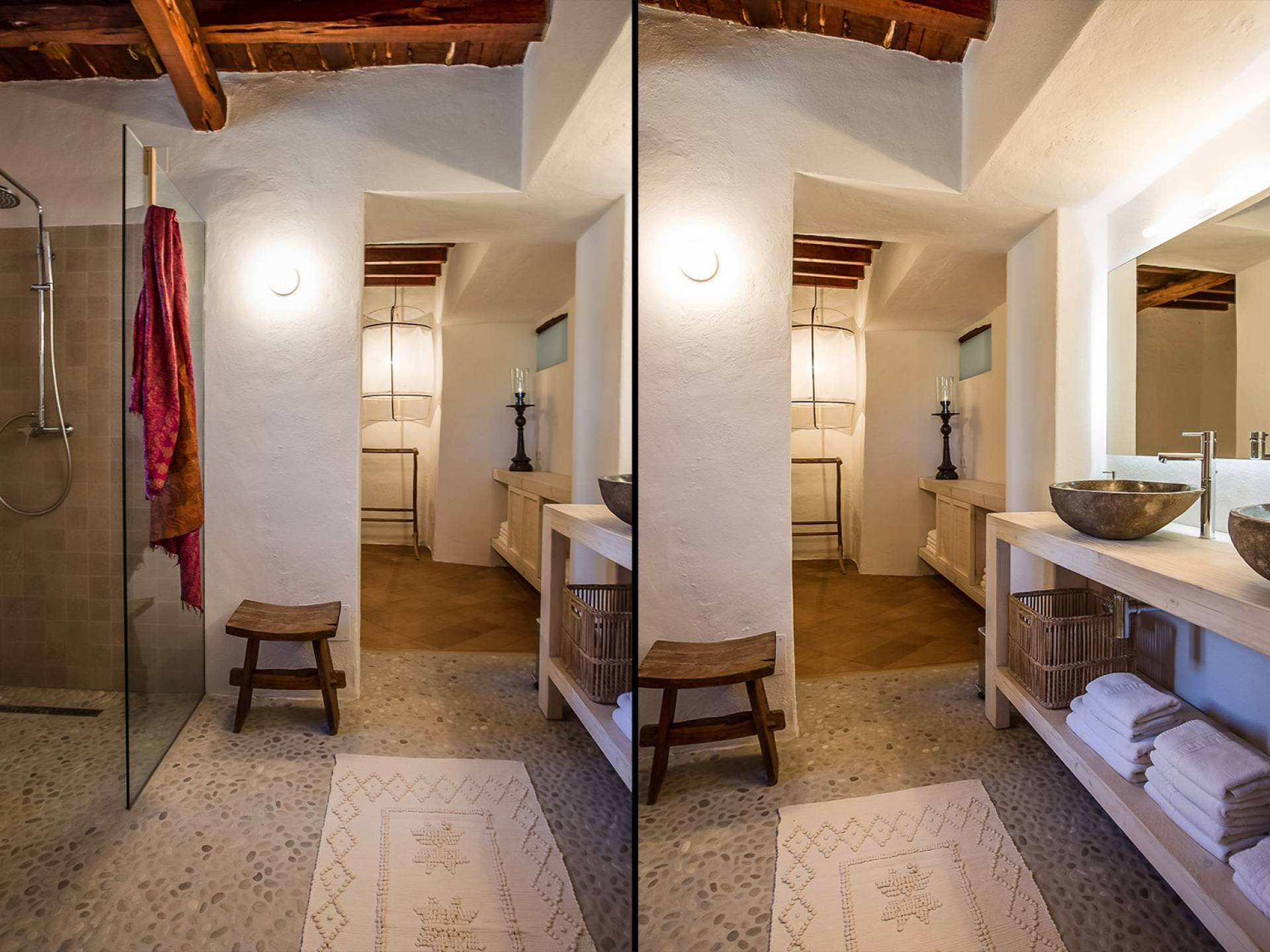 Can Paola Villa Ibiza mix the traditional Finca style with all modern comforts and finishes. The living areas are mainly open plan and there are several relaxing / lounging areas with large comfortable sofas - with the Finca style there are lots of nooks and crannies to relax in and catch up on your holiday hobbies. The dining area comfortably seats 10 people and an archway leads into a spacious, fully equipped modern kitchen.