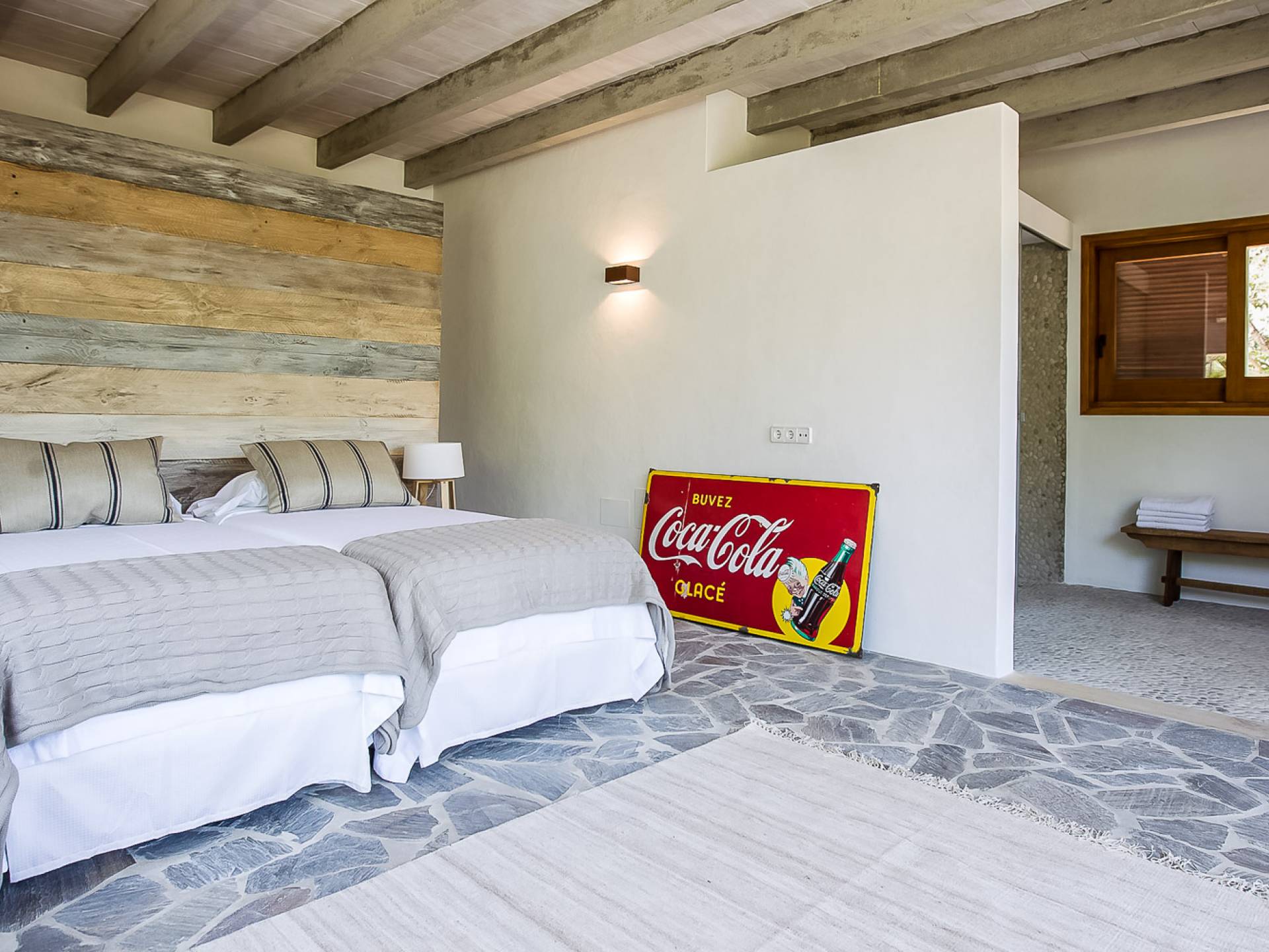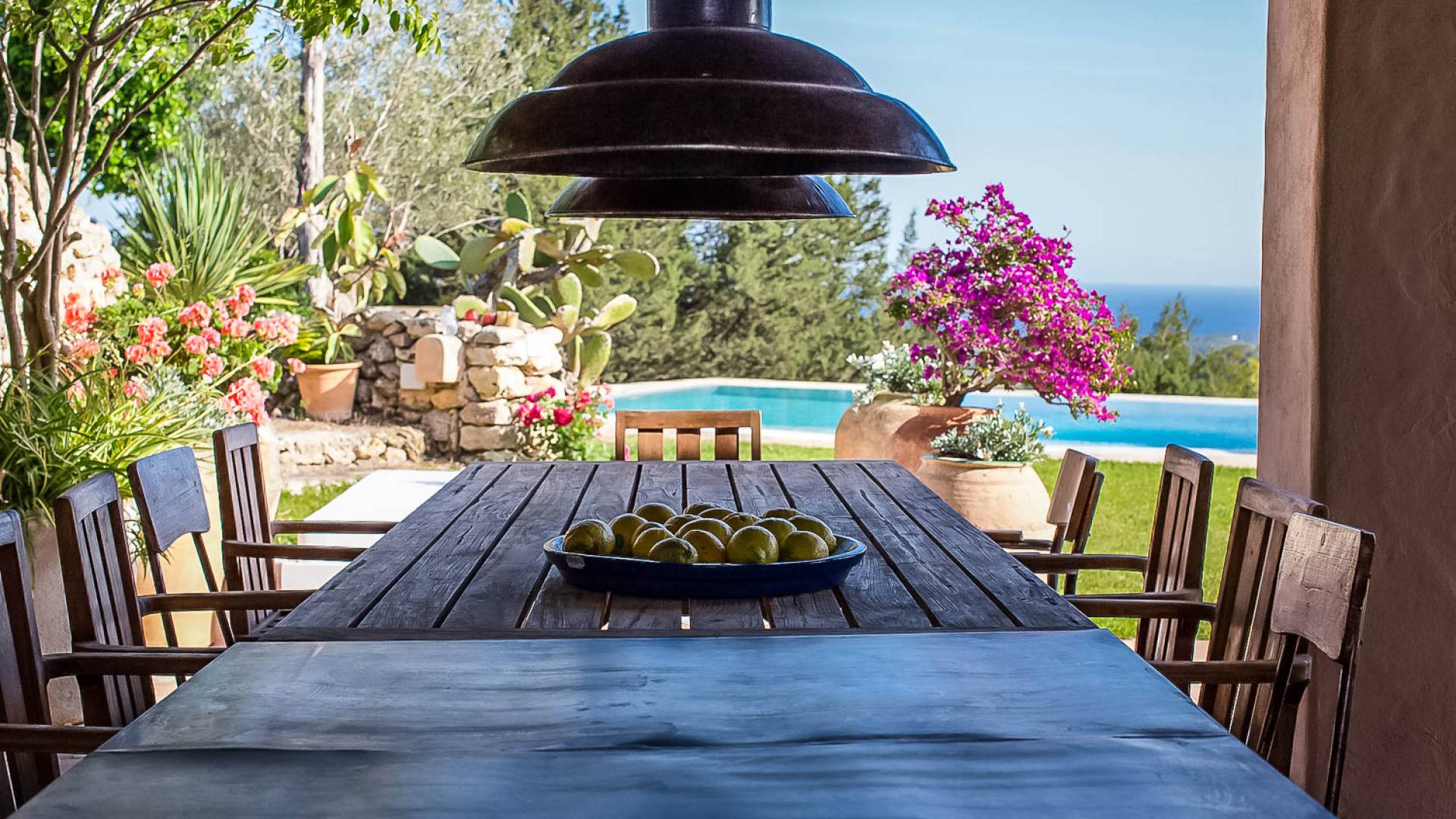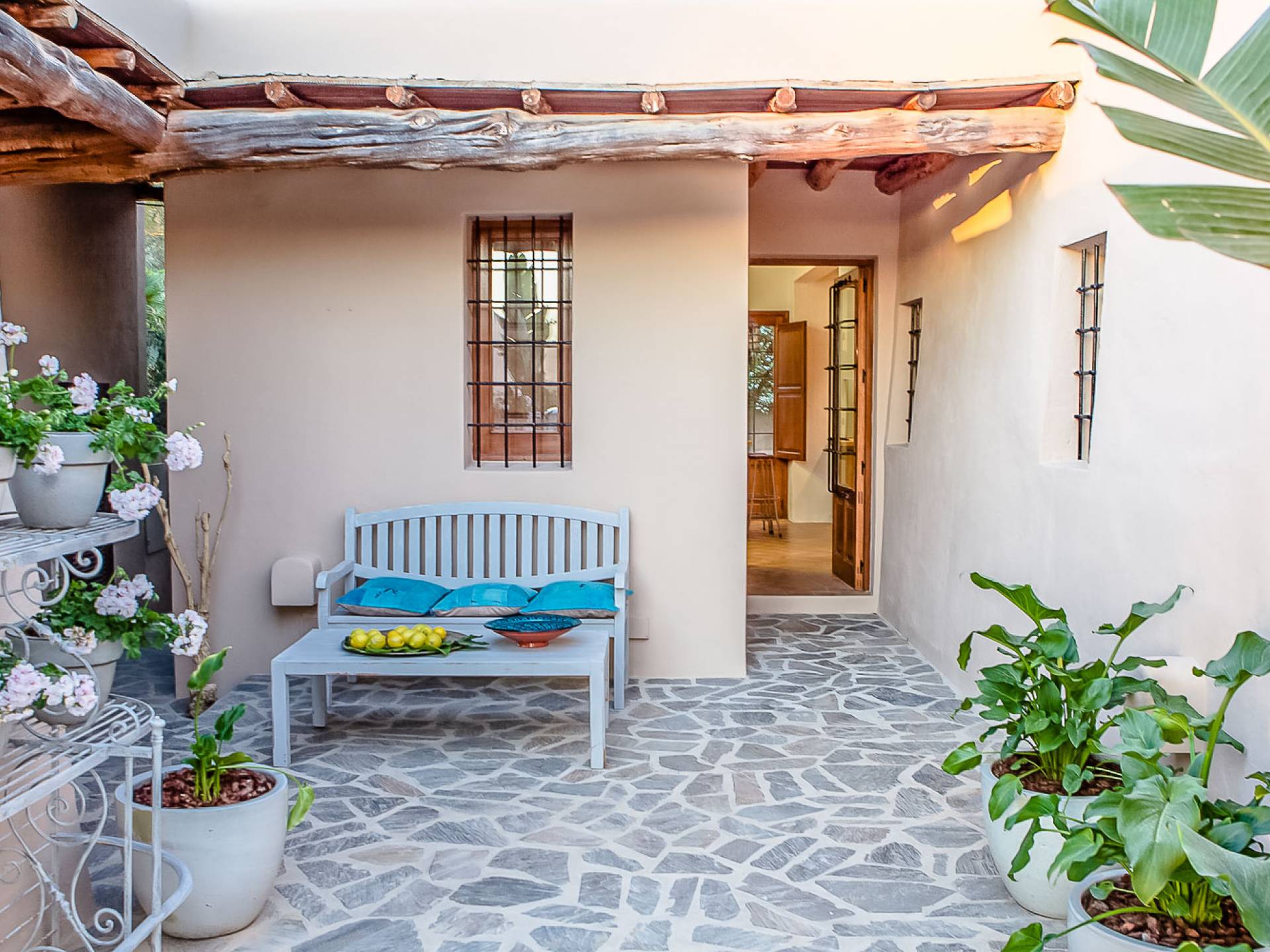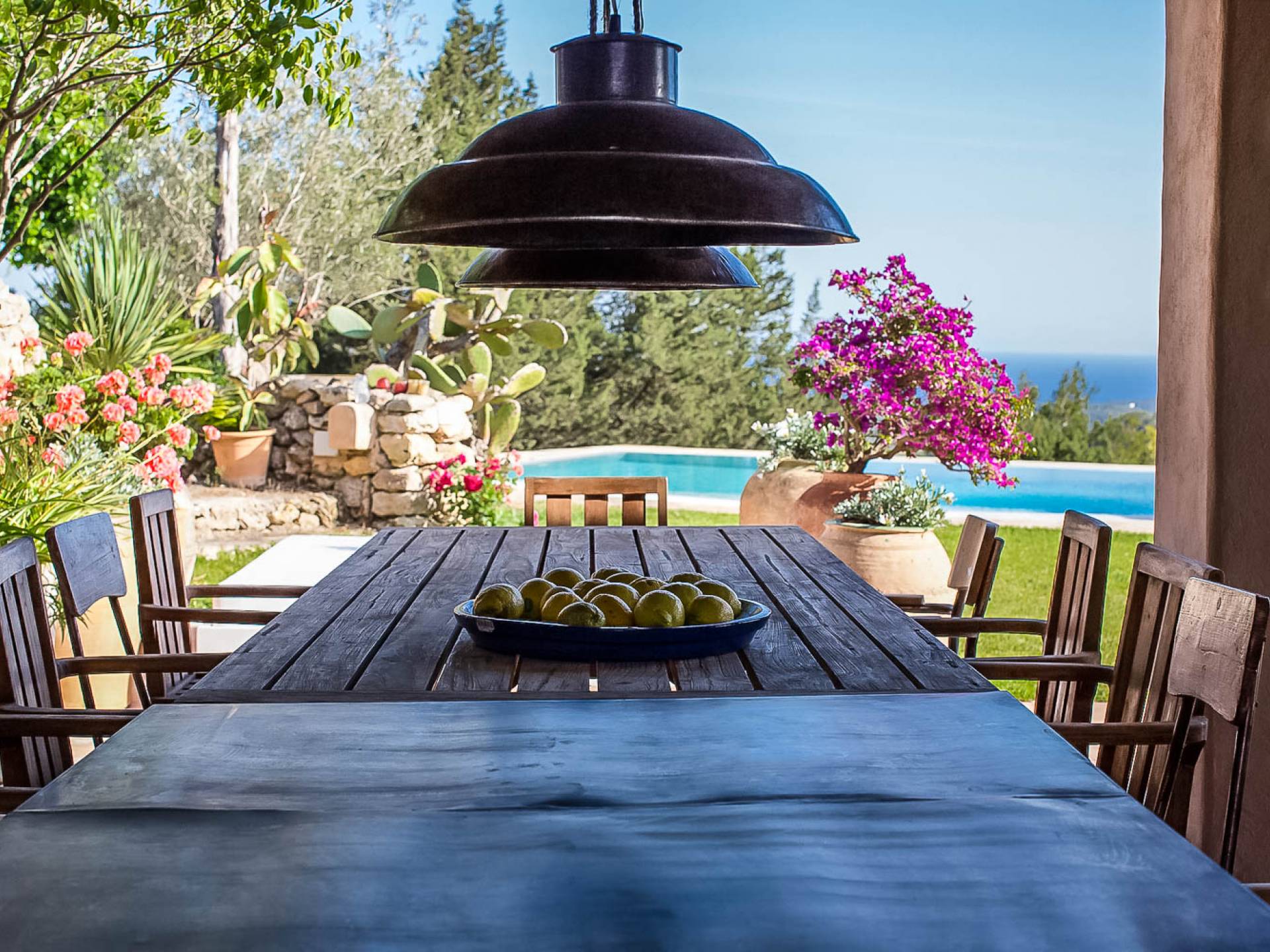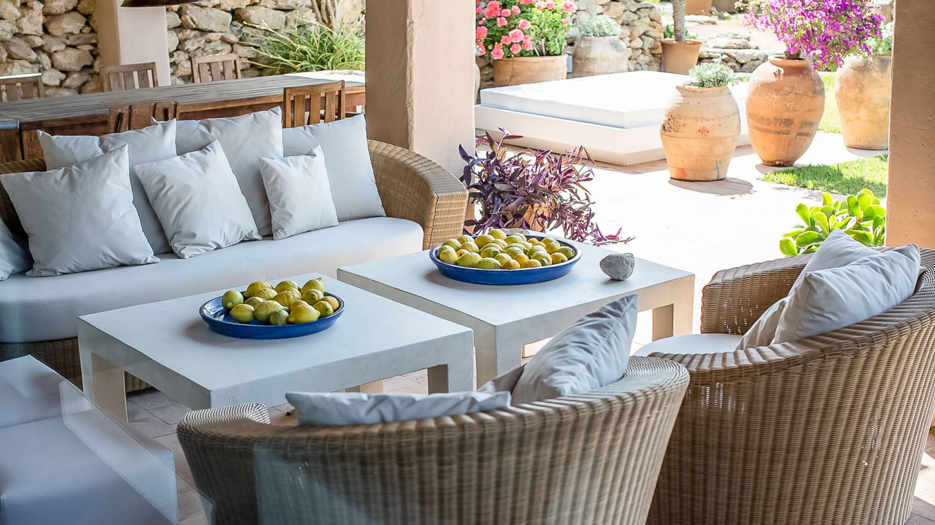 Can Paola Villa Ibiza mix the traditional Finca style with all modern comforts and finishes. The living areas are mainly open plan and there are several relaxing / lounging areas with large comfortable sofas - with the Finca style there are lots of nooks and crannies to relax in and catch up on your holiday hobbies. The dining area comfortably seats 10 people and an archway leads into a spacious, fully equipped modern kitchen.