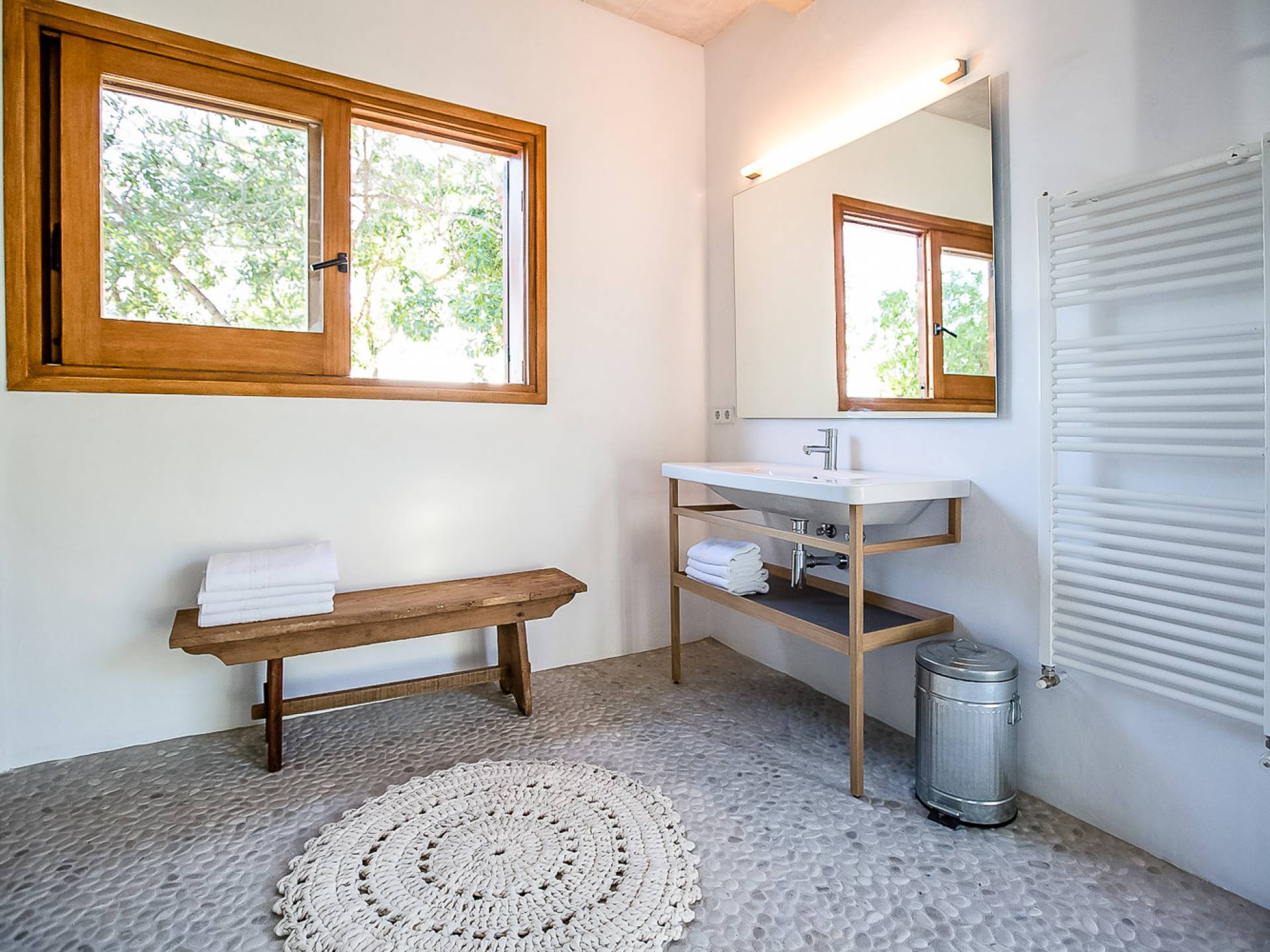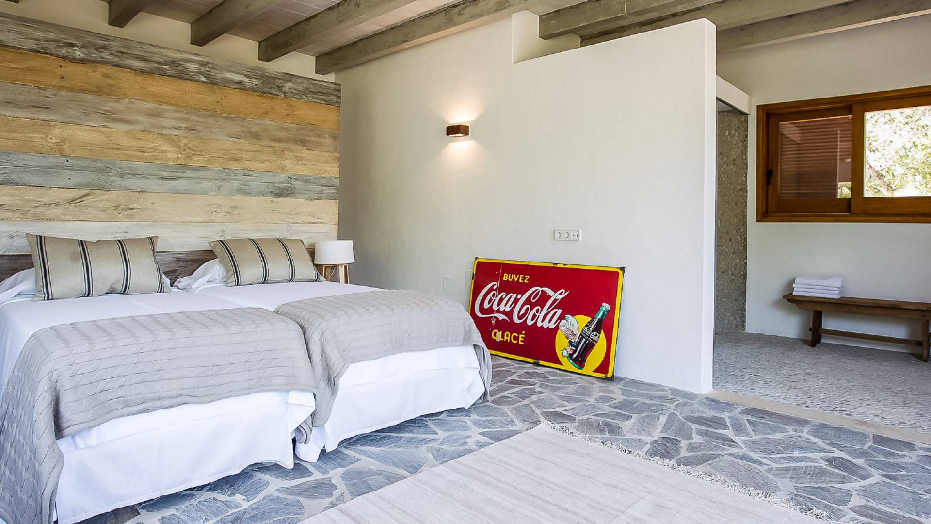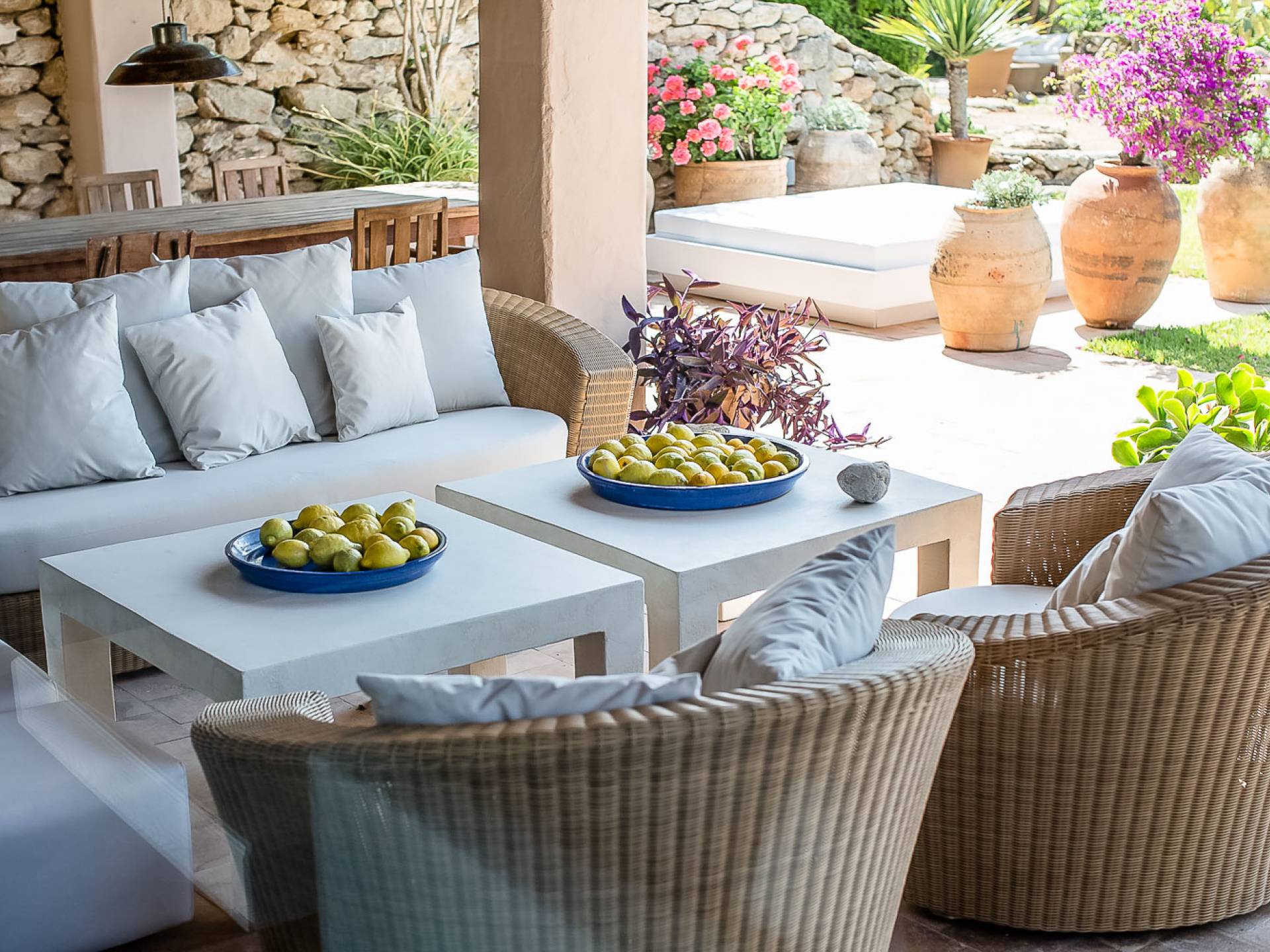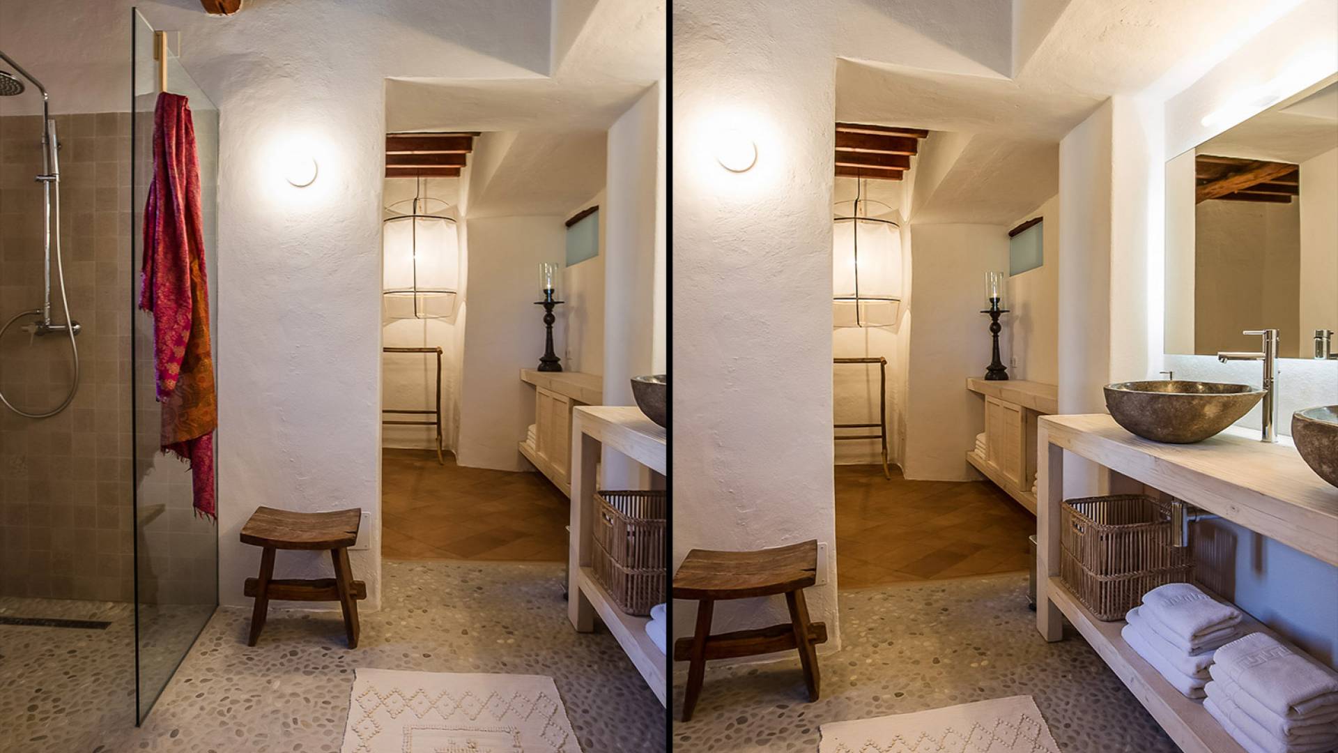 Can Paola Villa Ibiza mix the traditional Finca style with all modern comforts and finishes. The living areas are mainly open plan and there are several relaxing / lounging areas with large comfortable sofas - with the Finca style there are lots of nooks and crannies to relax in and catch up on your holiday hobbies. The dining area comfortably seats 10 people and an archway leads into a spacious, fully equipped modern kitchen.